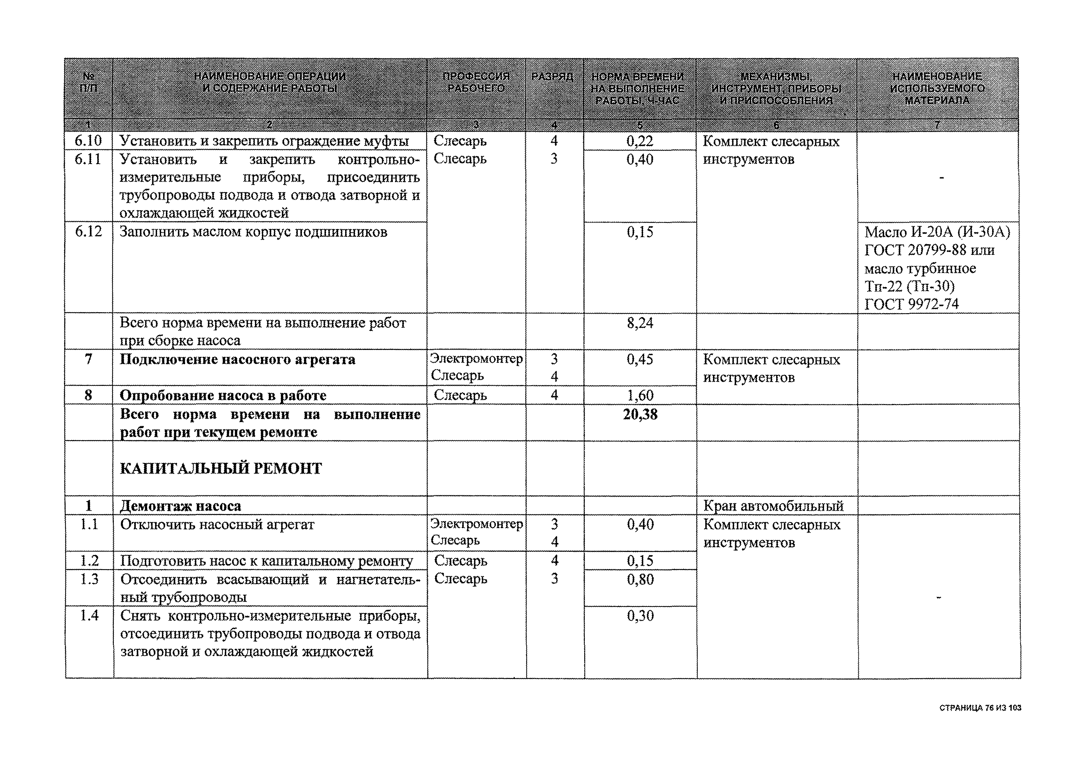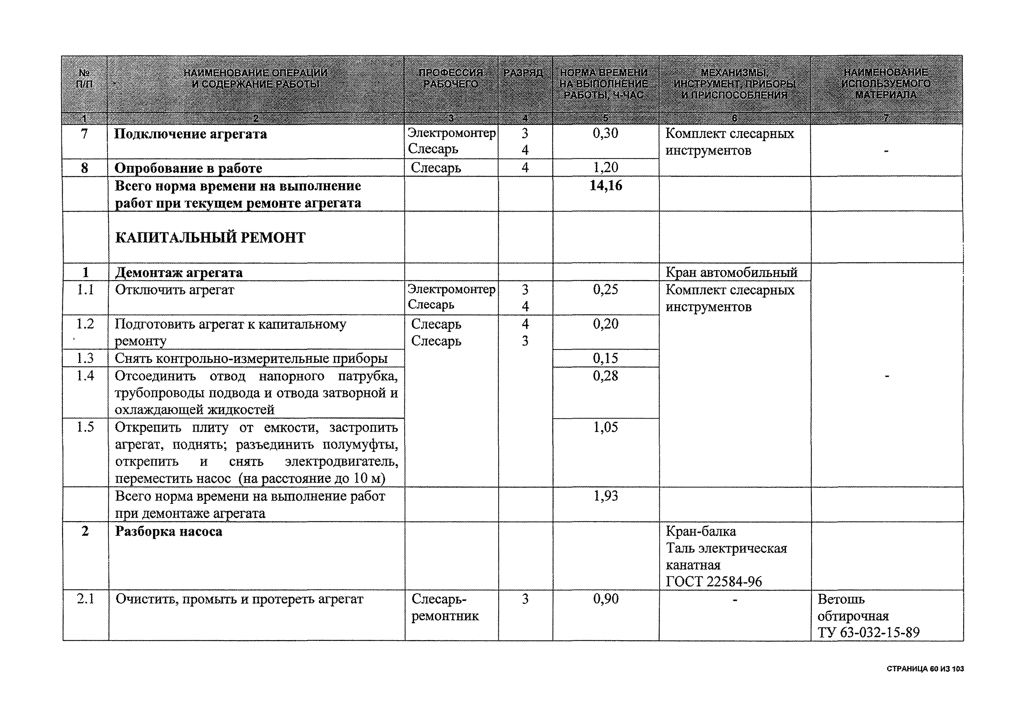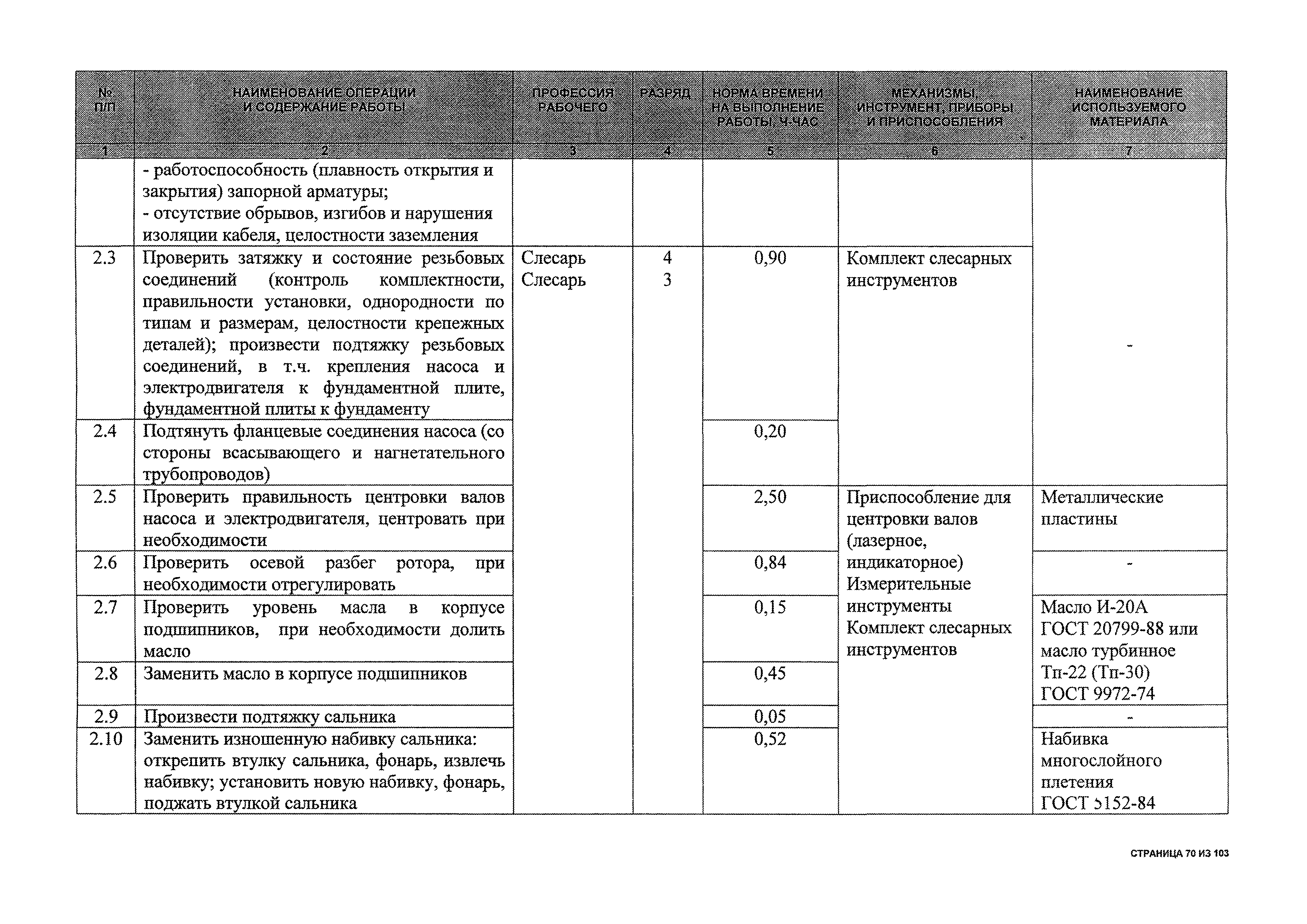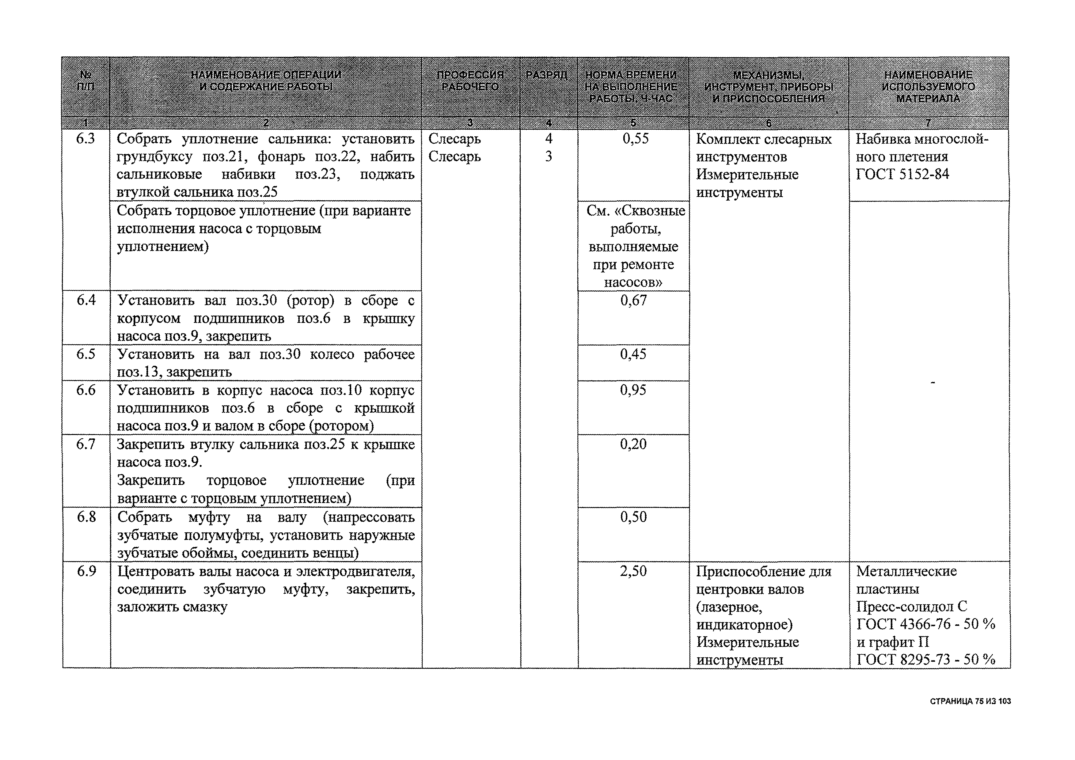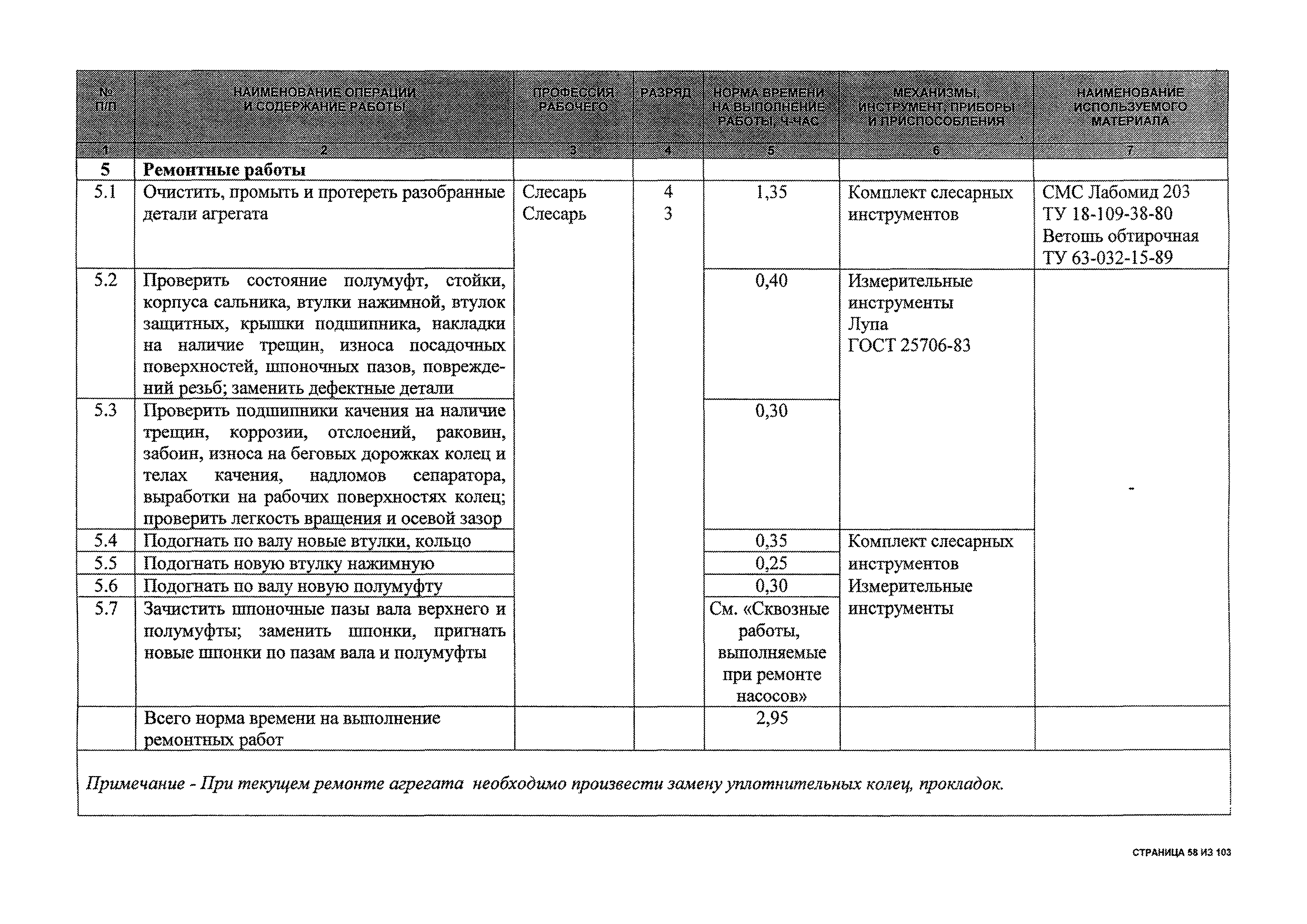| Оглавление: | 1 Общая часть 2 Карты технического обслуживания, текущего и капитального ремонтов насосов: НБ-32 12НА-9Х4 10НД-6ХI АХП-45/31 НК560/300 3 Сквозные работы, выполняемые при ремонте насосов 3.1 Вырубка смазочных канавок крейцмейселем 3.2 Нарезание резьбы на стержнях плашкой 3.3 Калибровка резьбы на стержнях плашкой 3.4 Нарезание резьбы в сквозных отверстиях вручную 3.5 Калибровка резьбы в сквозных отверстиях вручную 3.6 Вырубка прямоугольных, фасонных и круглых прокладок 3.7 Пробивка отверстий в прокладках 3.8 Удаление сломанных шпилек, болтов 3.9 Шабрение разъема корпуса насоса 3.10 Подгонка и установка призматических шпонок 3.11 Заливка вкладышей баббитом 3.12 Шабрение бронзовых втулок 3.13 Шабрение бронзовых вкладышей 3.14 Ремонт торцовых уплотнений 3.15 Правка вала 3.16 Балансировка рабочих колес 3.17 Восстановление деталей насоса наплавкой электродами диаметром 4 мм 3.18 Покраска насоса после ремонта |