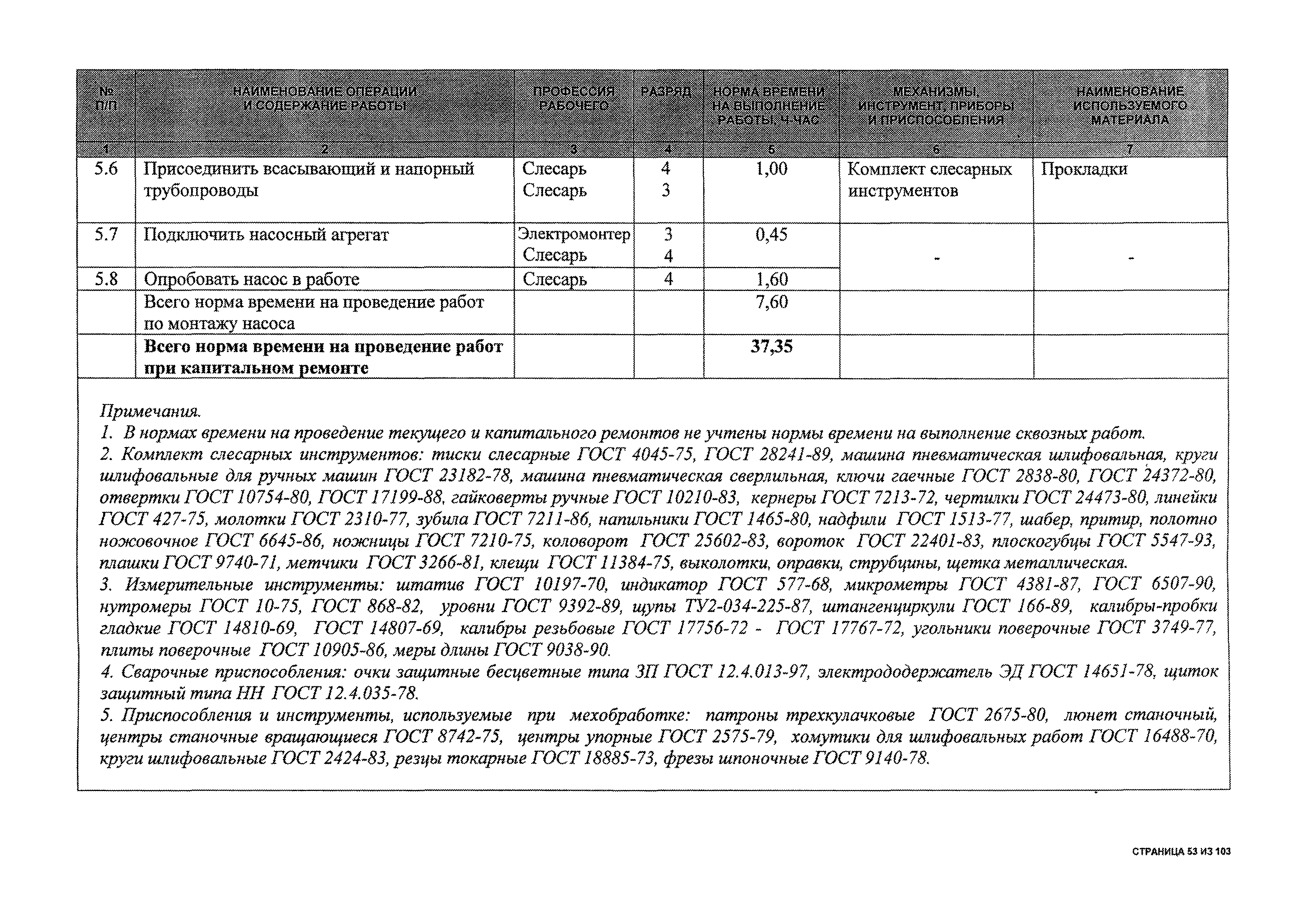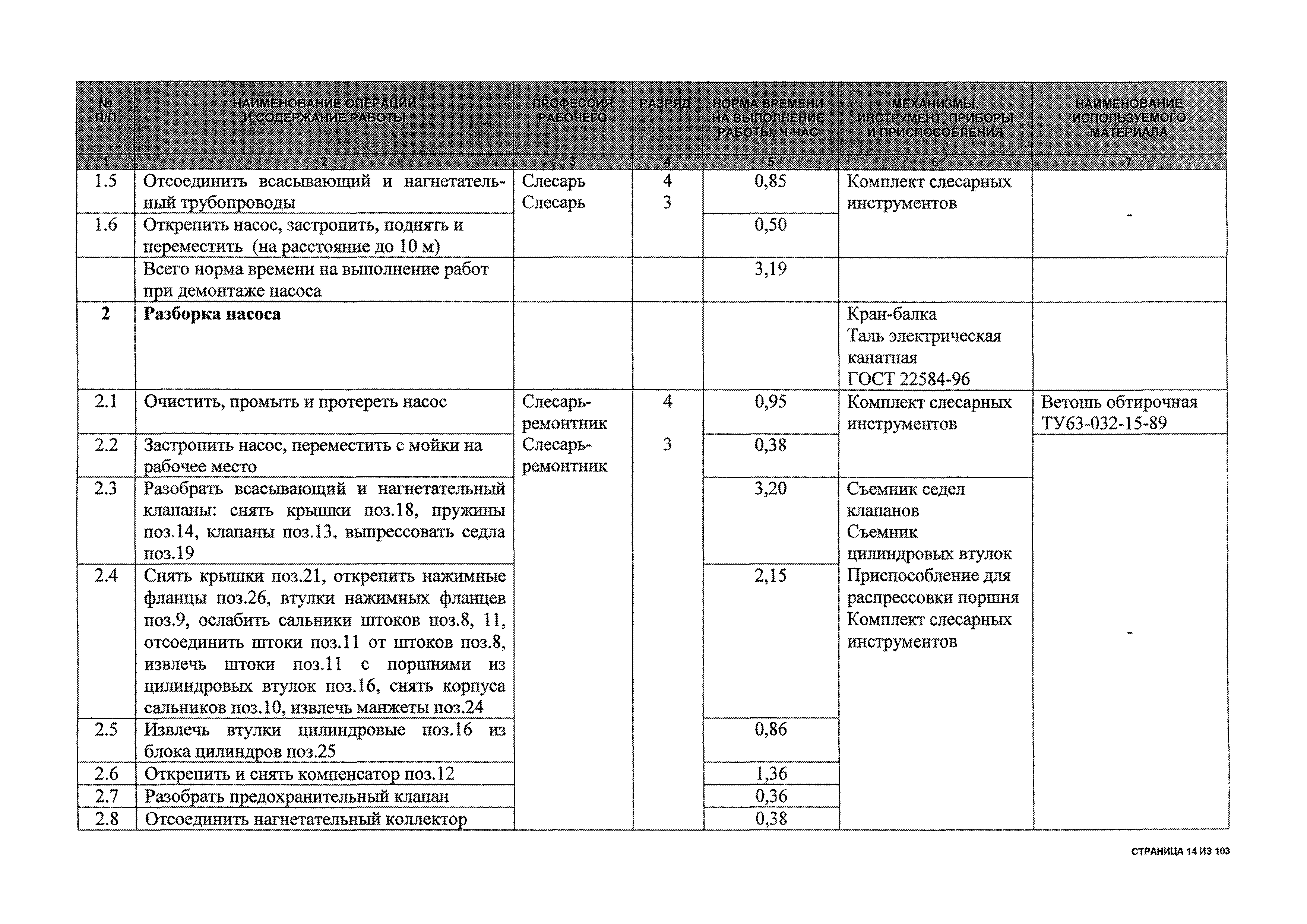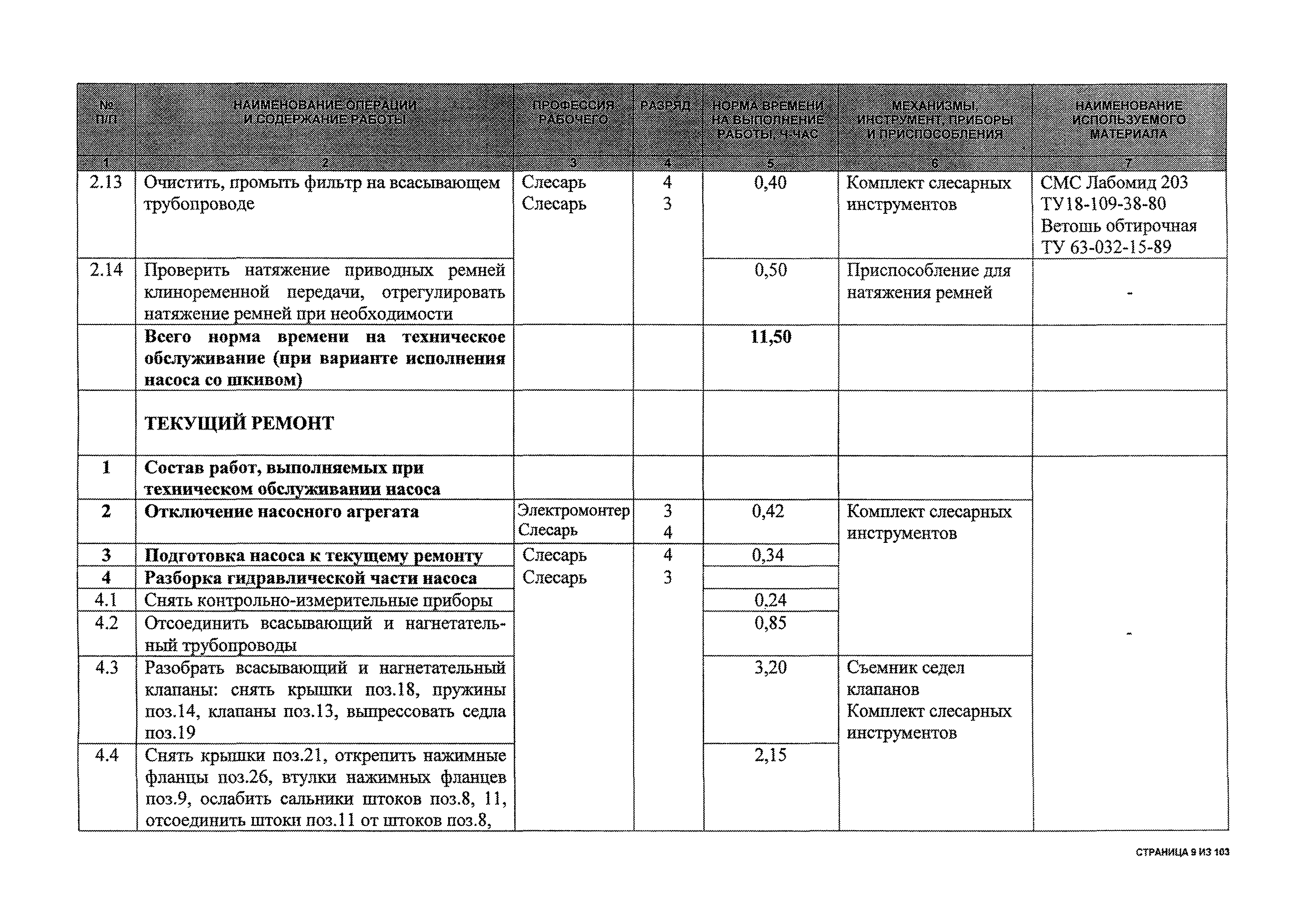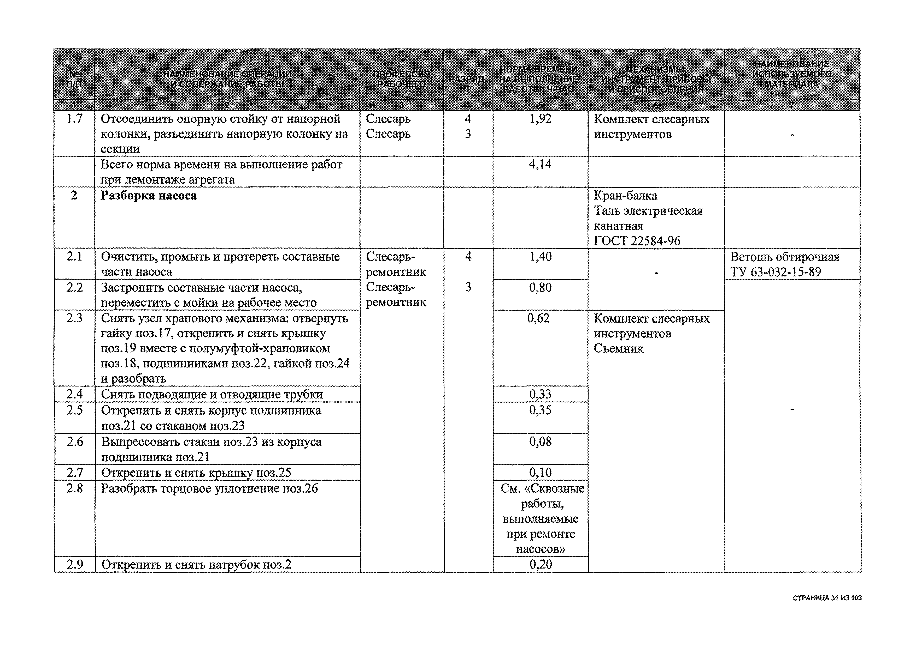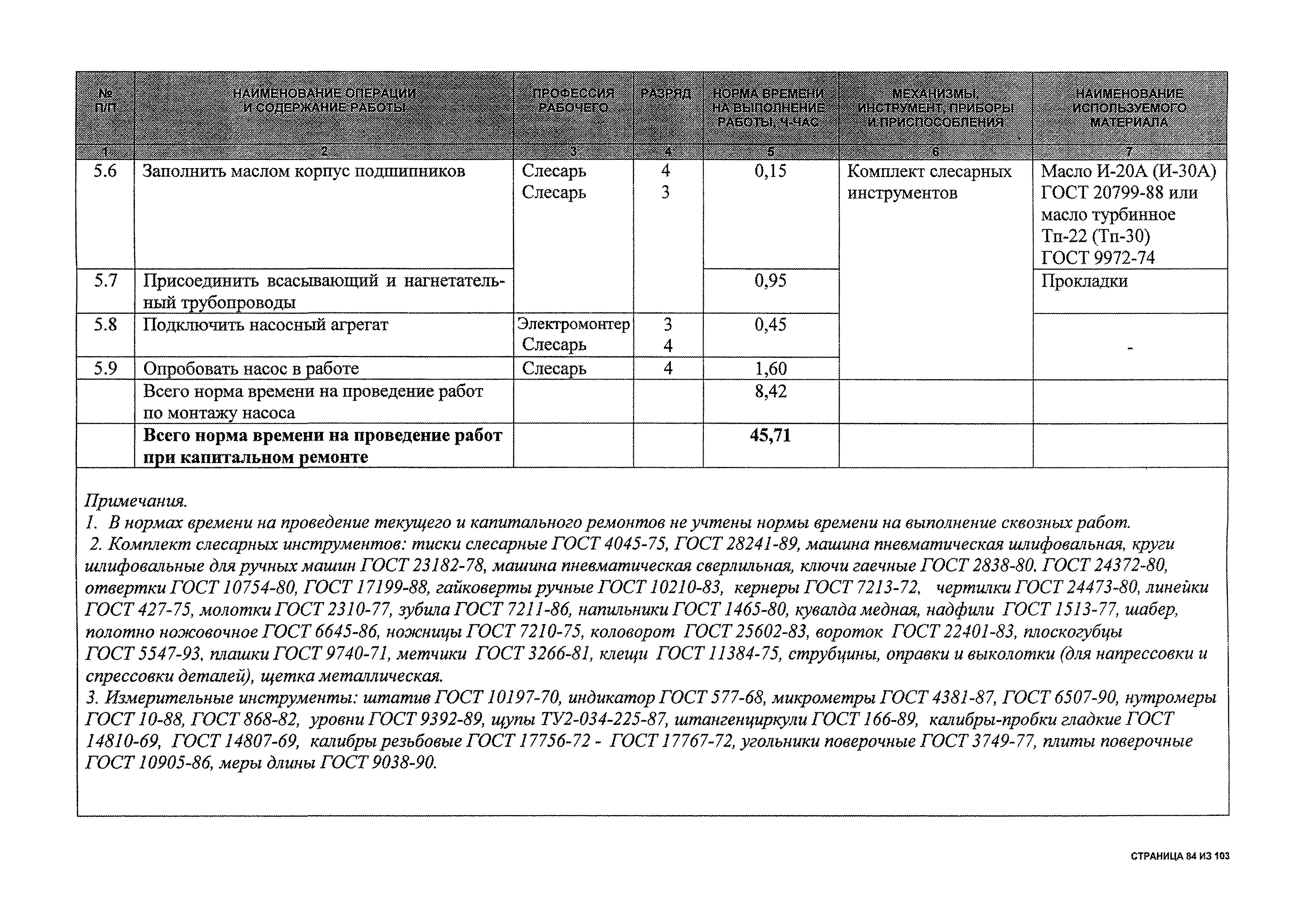 | Оглавление: | 1 Общая часть 2 Карты технического обслуживания, текущего и капитального ремонтов насосов: НБ-32 12НА-9Х4 10НД-6ХI АХП-45/31 НК560/300 3 Сквозные работы, выполняемые при ремонте насосов 3.1 Вырубка смазочных канавок крейцмейселем 3.2 Нарезание резьбы на стержнях плашкой 3.3 Калибровка резьбы на стержнях плашкой 3.4 Нарезание резьбы в сквозных отверстиях вручную 3.5 Калибровка резьбы в сквозных отверстиях вручную 3.6 Вырубка прямоугольных, фасонных и круглых прокладок 3.7 Пробивка отверстий в прокладках 3.8 Удаление сломанных шпилек, болтов 3.9 Шабрение разъема корпуса насоса 3.10 Подгонка и установка призматических шпонок 3.11 Заливка вкладышей баббитом 3.12 Шабрение бронзовых втулок 3.13 Шабрение бронзовых вкладышей 3.14 Ремонт торцовых уплотнений 3.15 Правка вала 3.16 Балансировка рабочих колес 3.17 Восстановление деталей насоса наплавкой электродами диаметром 4 мм 3.18 Покраска насоса после ремонта |