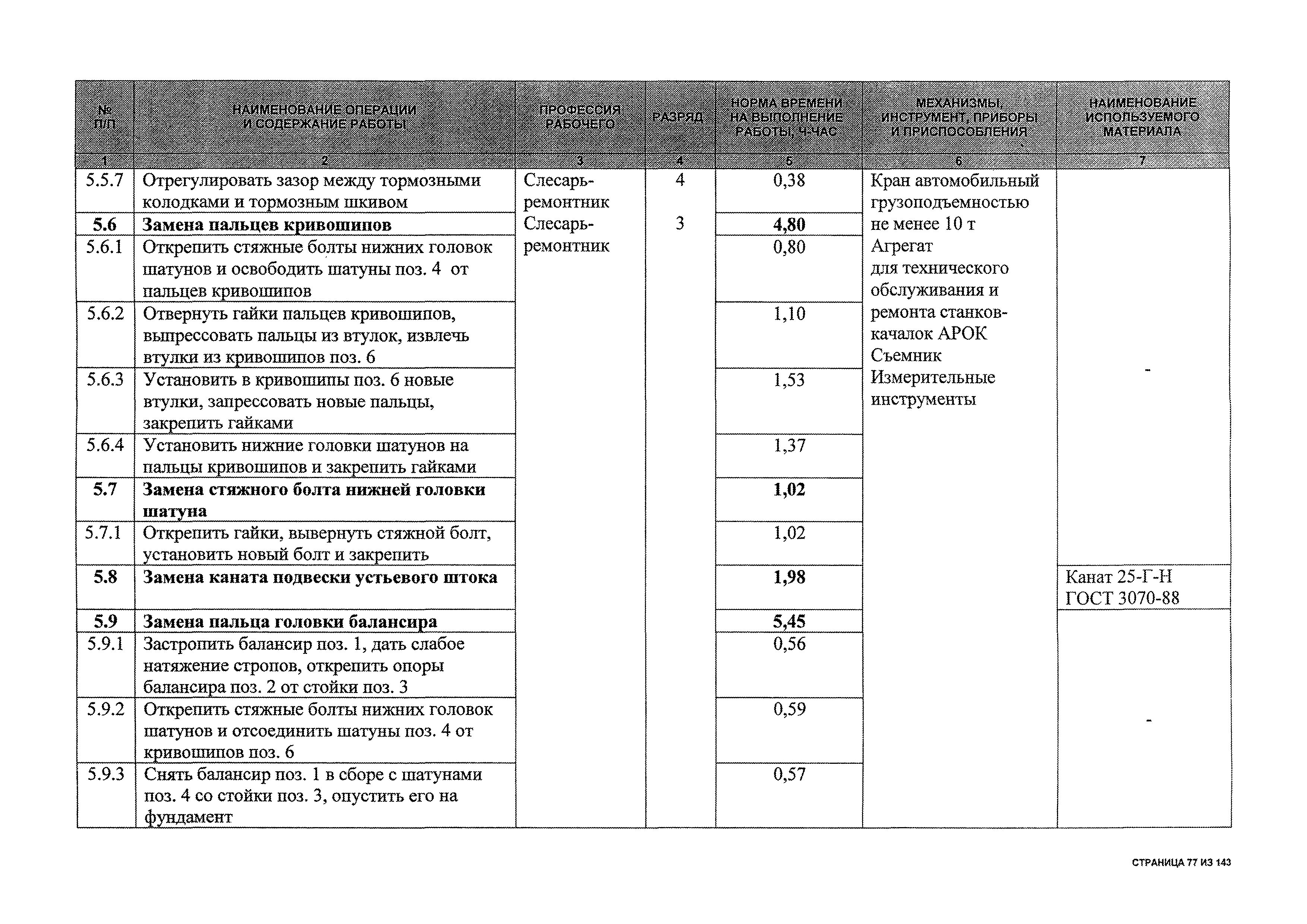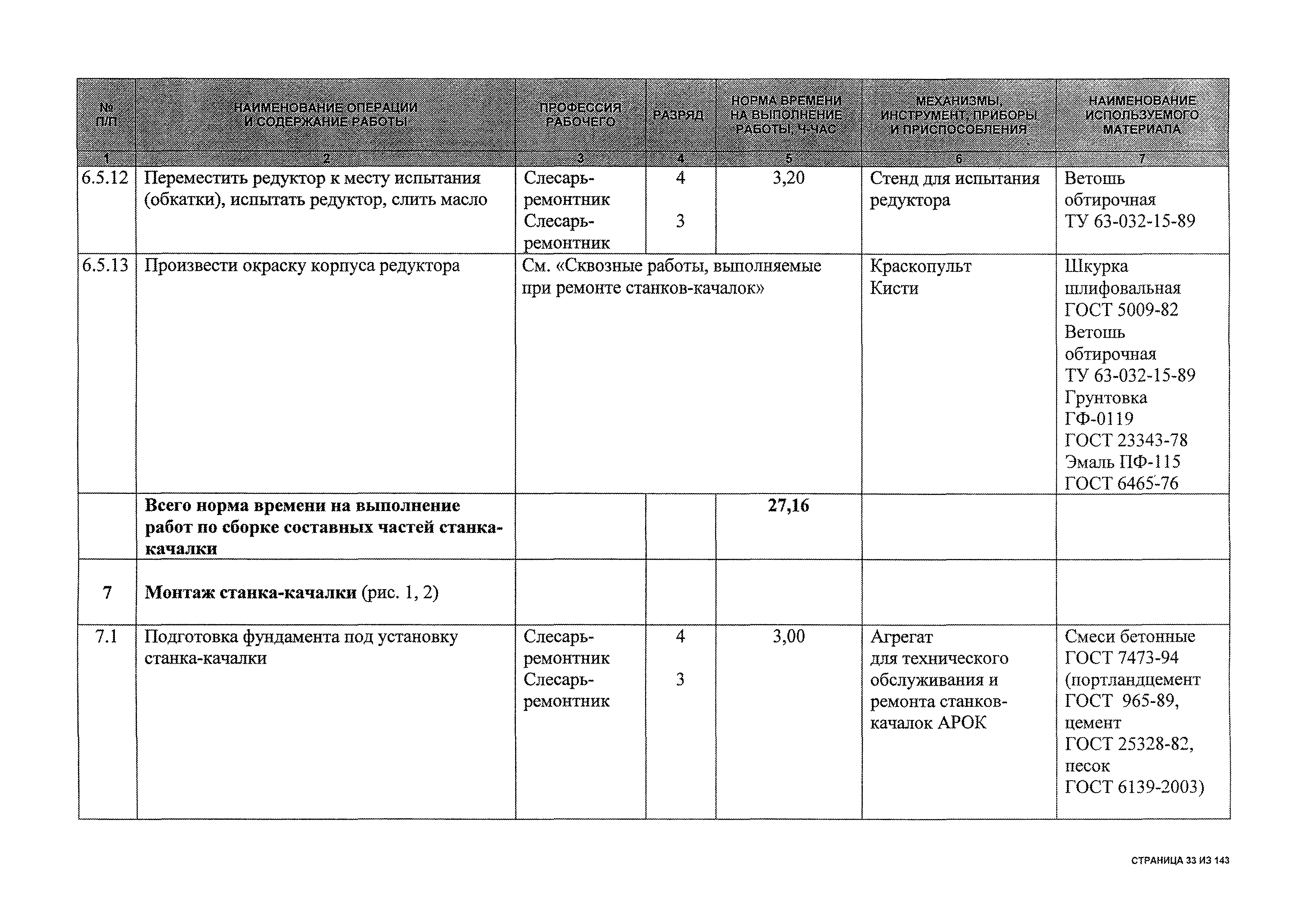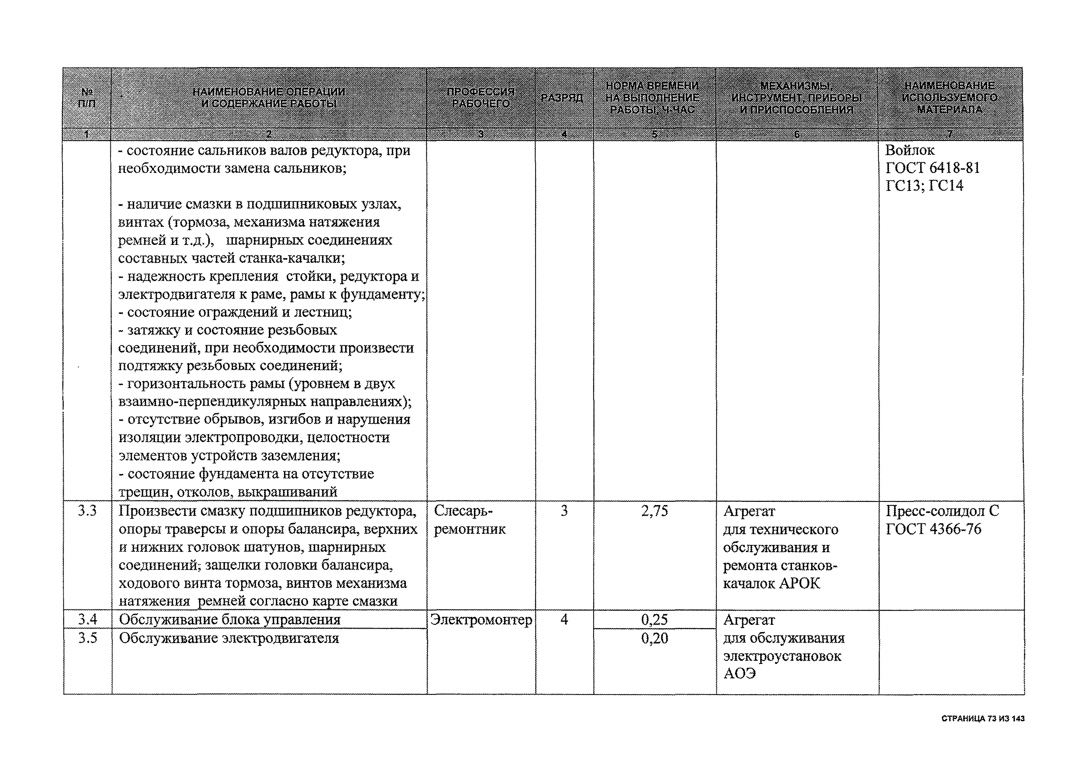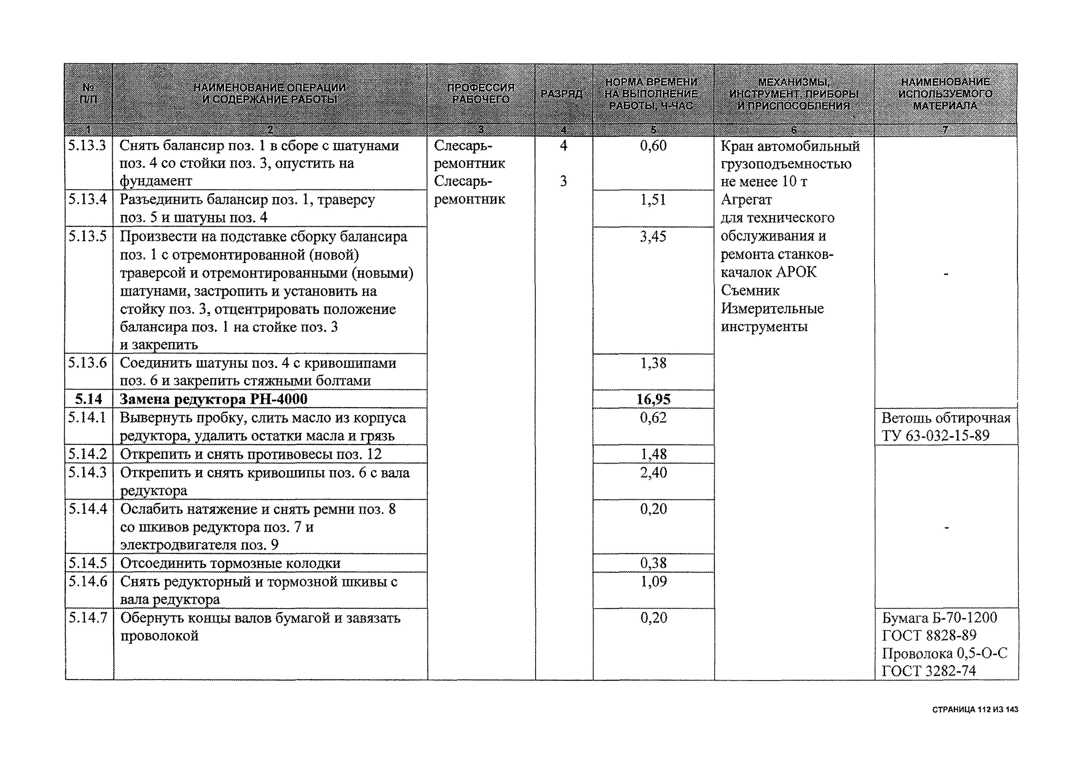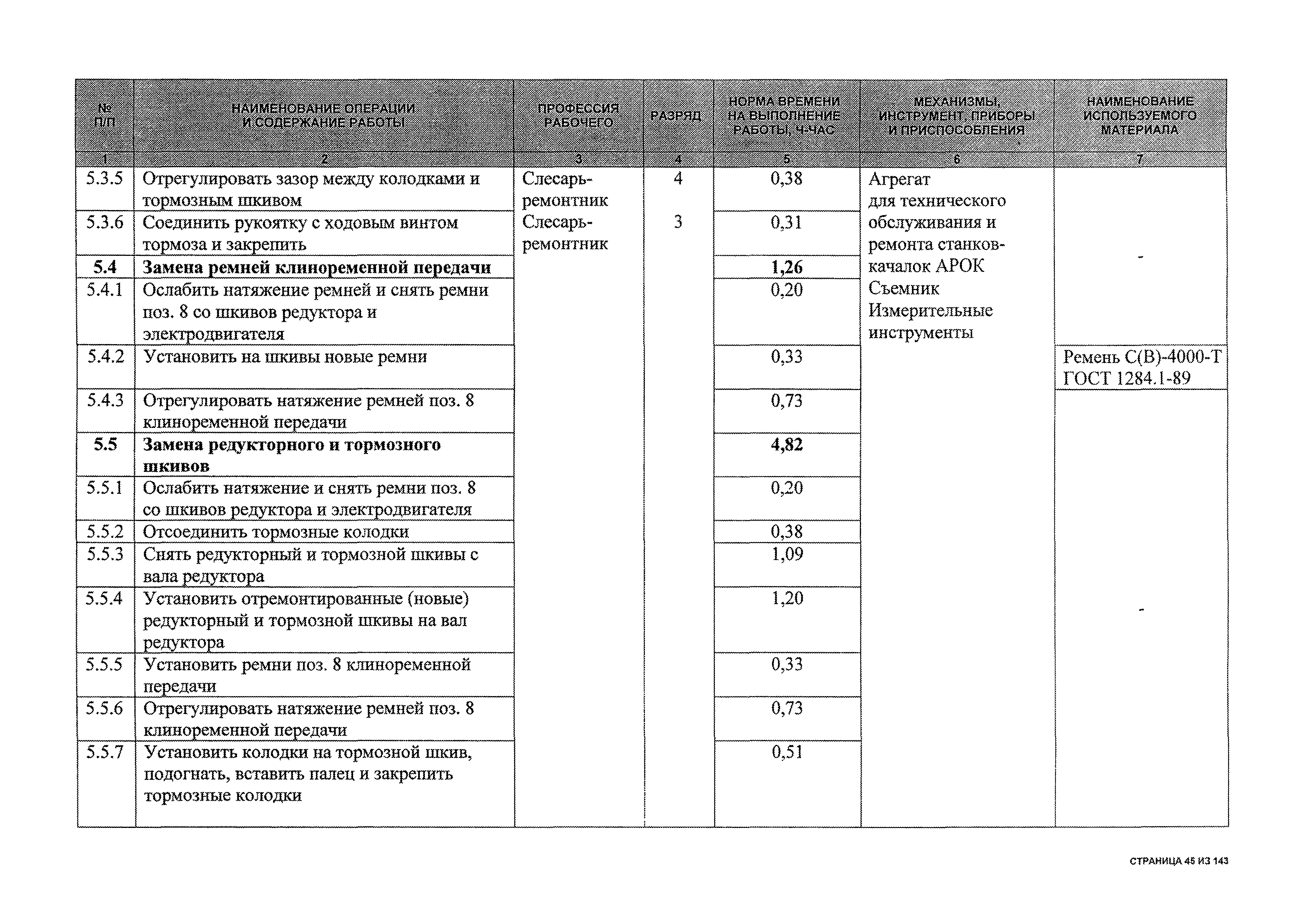 | Оглавление: | 1 Общая часть 2 Карты технического обслуживания, текущего и капитального ремонтов станков-качалок СК6-2,1-2500, СКД6-2,5-2800 (с редуктором Ц2НШ-450) СК8-3,5-4000, СК12-2,5-4000, СКД8-3-4000 (с редуктором Ц2НШ-750) СКН5-3015 (с редуктором РН-2300) СКН10-3315 (с редуктором РН-4000) 3 Сквозные работы, выполняемые при ремонте станка-качалки 3.1 Нарезание резьбы на стержнях плашкой 3.2 Калибровка резьбы на стержнях плашкой 3.3 Нарезание резьбы в сквозных отверстиях вручную 3.4 Калибровка резьбы в сквозных отверстиях вручную 3.5 Вырубка прямоугольных, фасонных и круглых прокладок 3.6 Пробивка отверстий в прокладках 3.7 Удаление сломанных шпилек, болтов 3.8 Шабрение разъема корпуса редуктора 3.9 Подгонка и установка призматических шпонок 3.10 Правка вала 3.11 Восстановление деталей станка-качалки наплавкой электродами диаметром 4 мм 3.12 Покраска станка-качалки после ремонта |