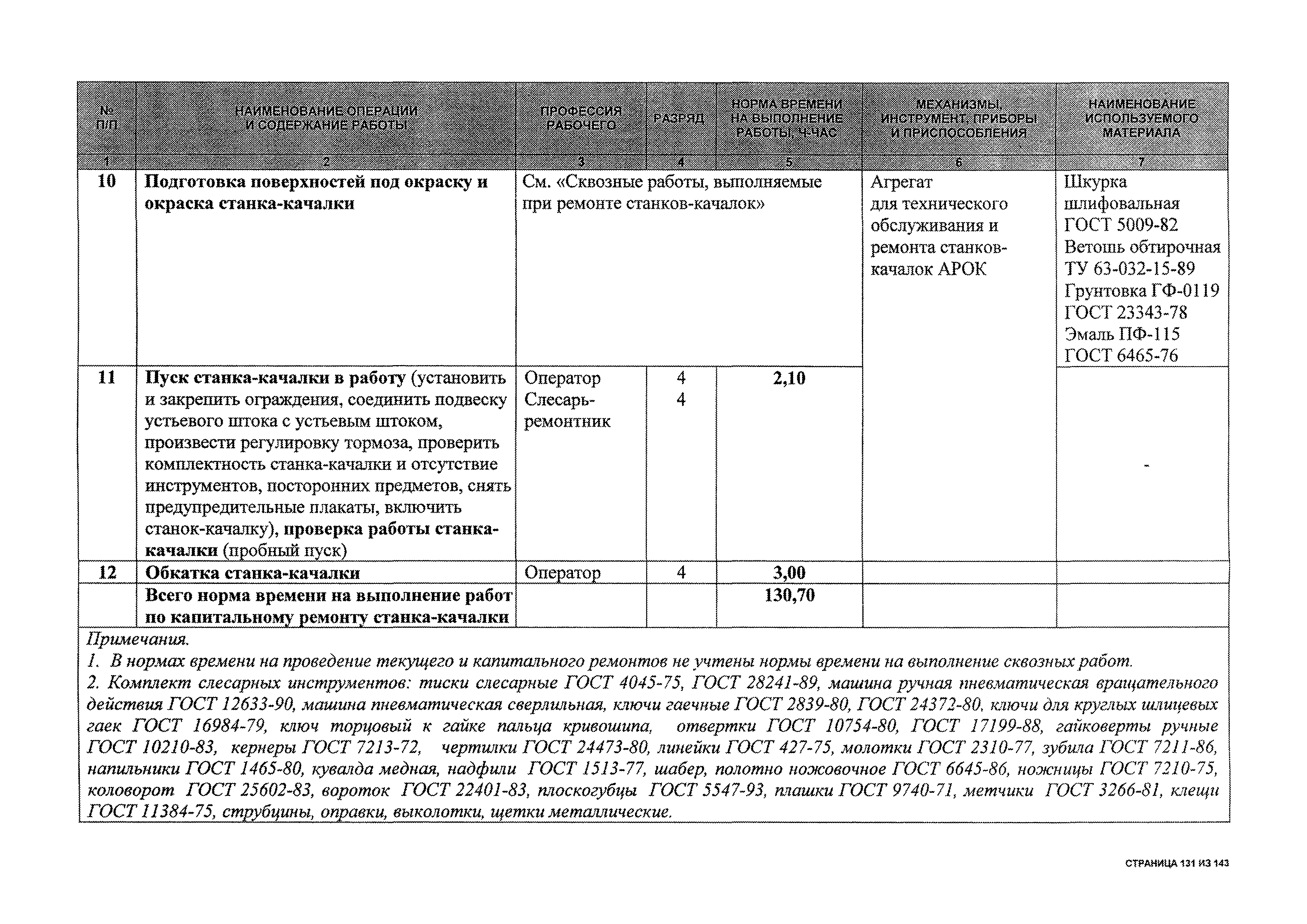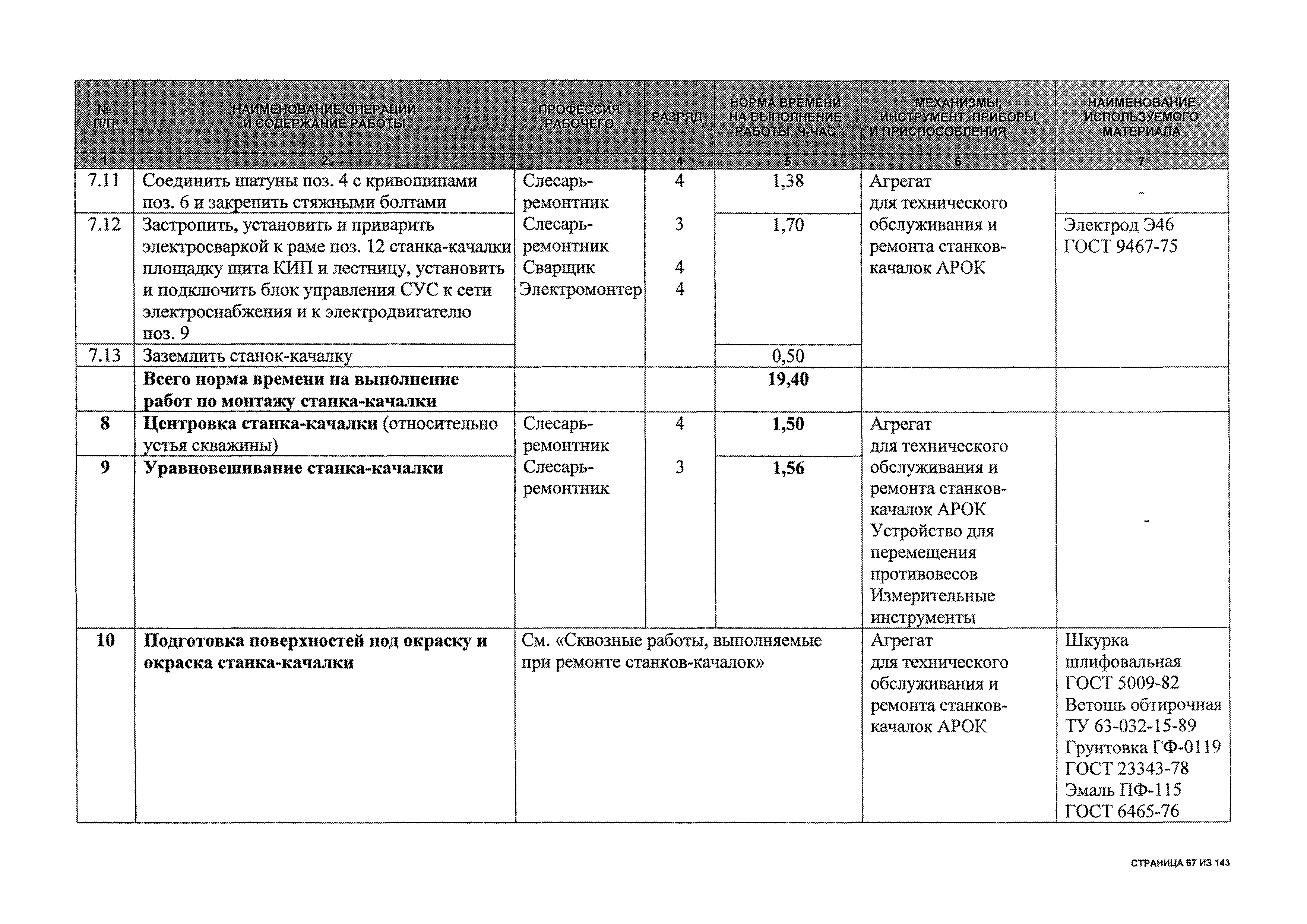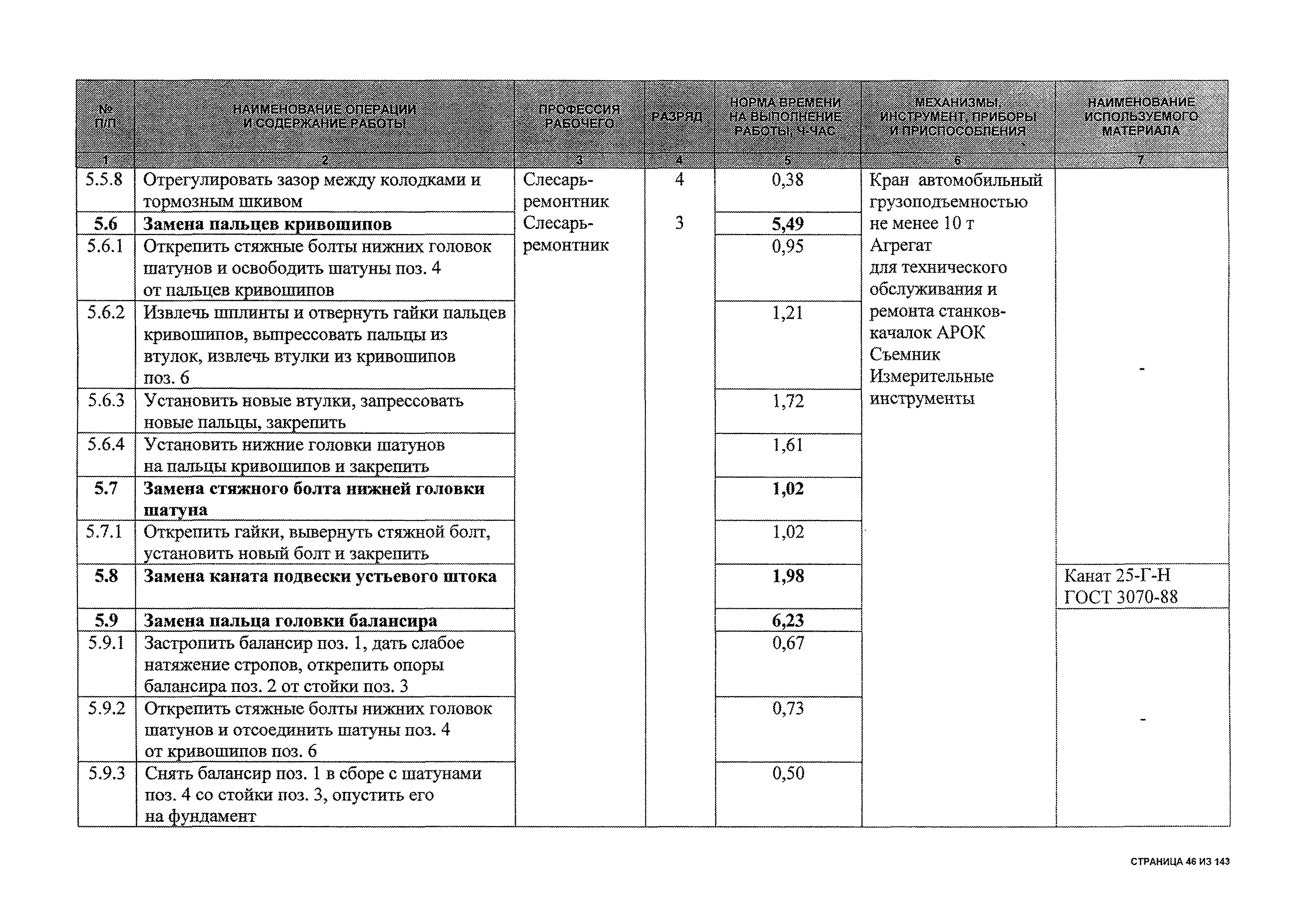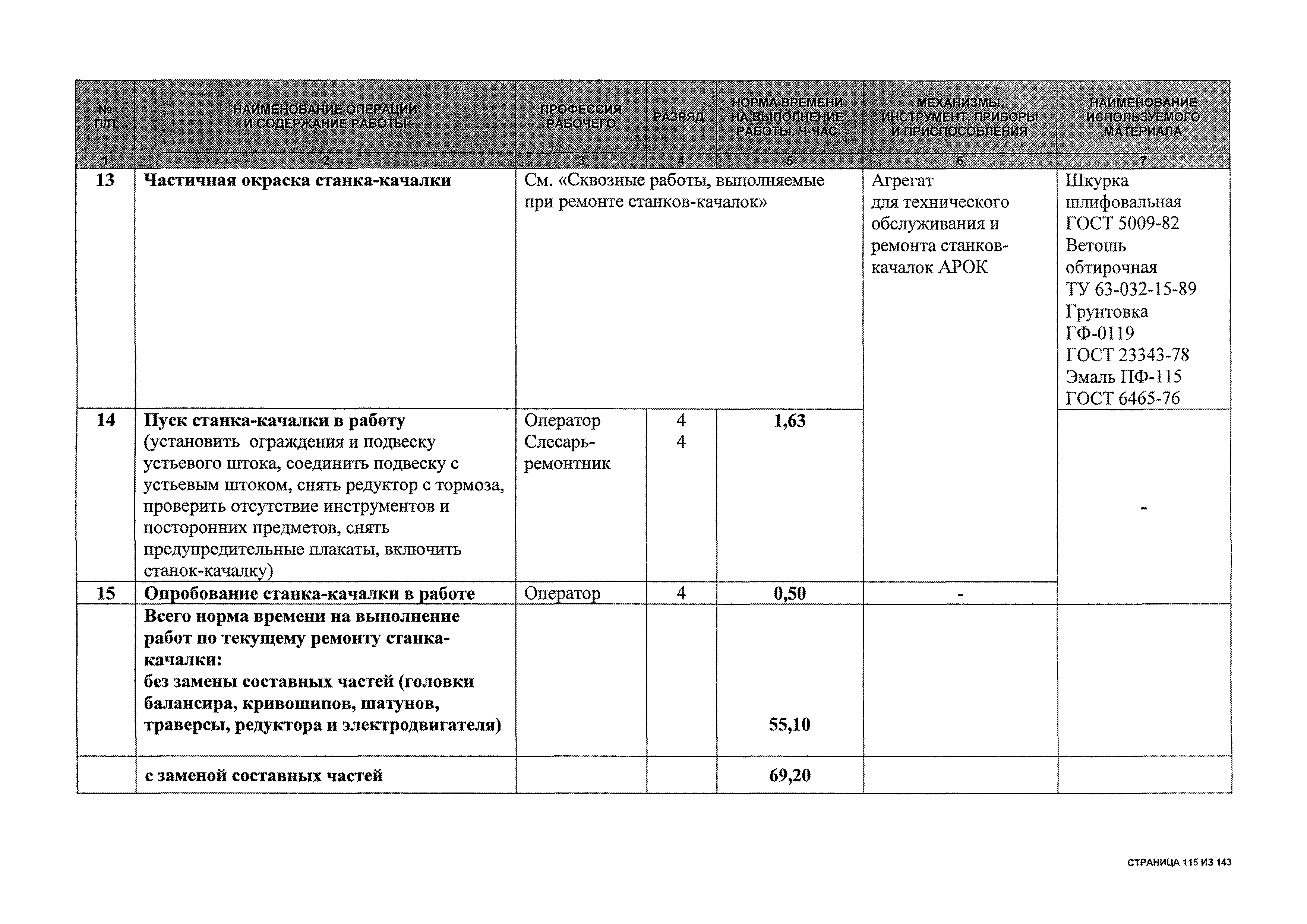 | Оглавление: | 1 Общая часть 2 Карты технического обслуживания, текущего и капитального ремонтов станков-качалок СК6-2,1-2500, СКД6-2,5-2800 (с редуктором Ц2НШ-450) СК8-3,5-4000, СК12-2,5-4000, СКД8-3-4000 (с редуктором Ц2НШ-750) СКН5-3015 (с редуктором РН-2300) СКН10-3315 (с редуктором РН-4000) 3 Сквозные работы, выполняемые при ремонте станка-качалки 3.1 Нарезание резьбы на стержнях плашкой 3.2 Калибровка резьбы на стержнях плашкой 3.3 Нарезание резьбы в сквозных отверстиях вручную 3.4 Калибровка резьбы в сквозных отверстиях вручную 3.5 Вырубка прямоугольных, фасонных и круглых прокладок 3.6 Пробивка отверстий в прокладках 3.7 Удаление сломанных шпилек, болтов 3.8 Шабрение разъема корпуса редуктора 3.9 Подгонка и установка призматических шпонок 3.10 Правка вала 3.11 Восстановление деталей станка-качалки наплавкой электродами диаметром 4 мм 3.12 Покраска станка-качалки после ремонта |