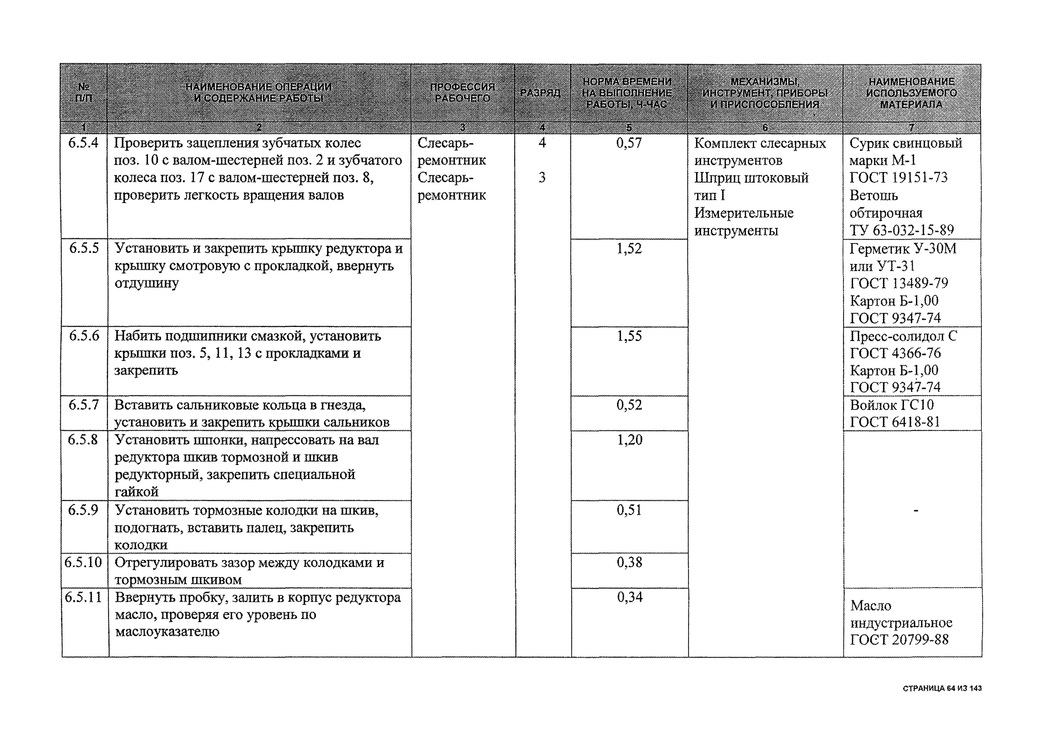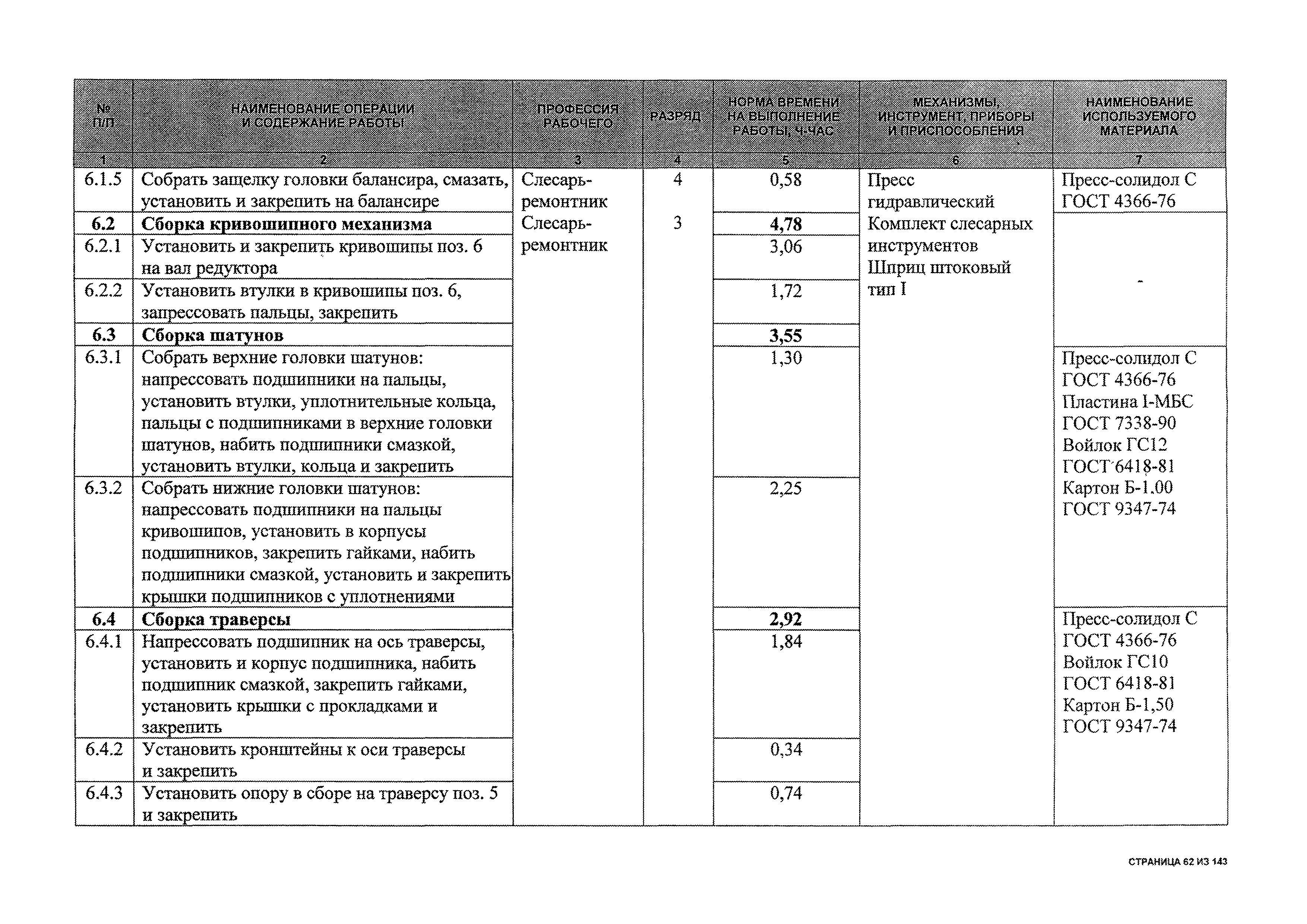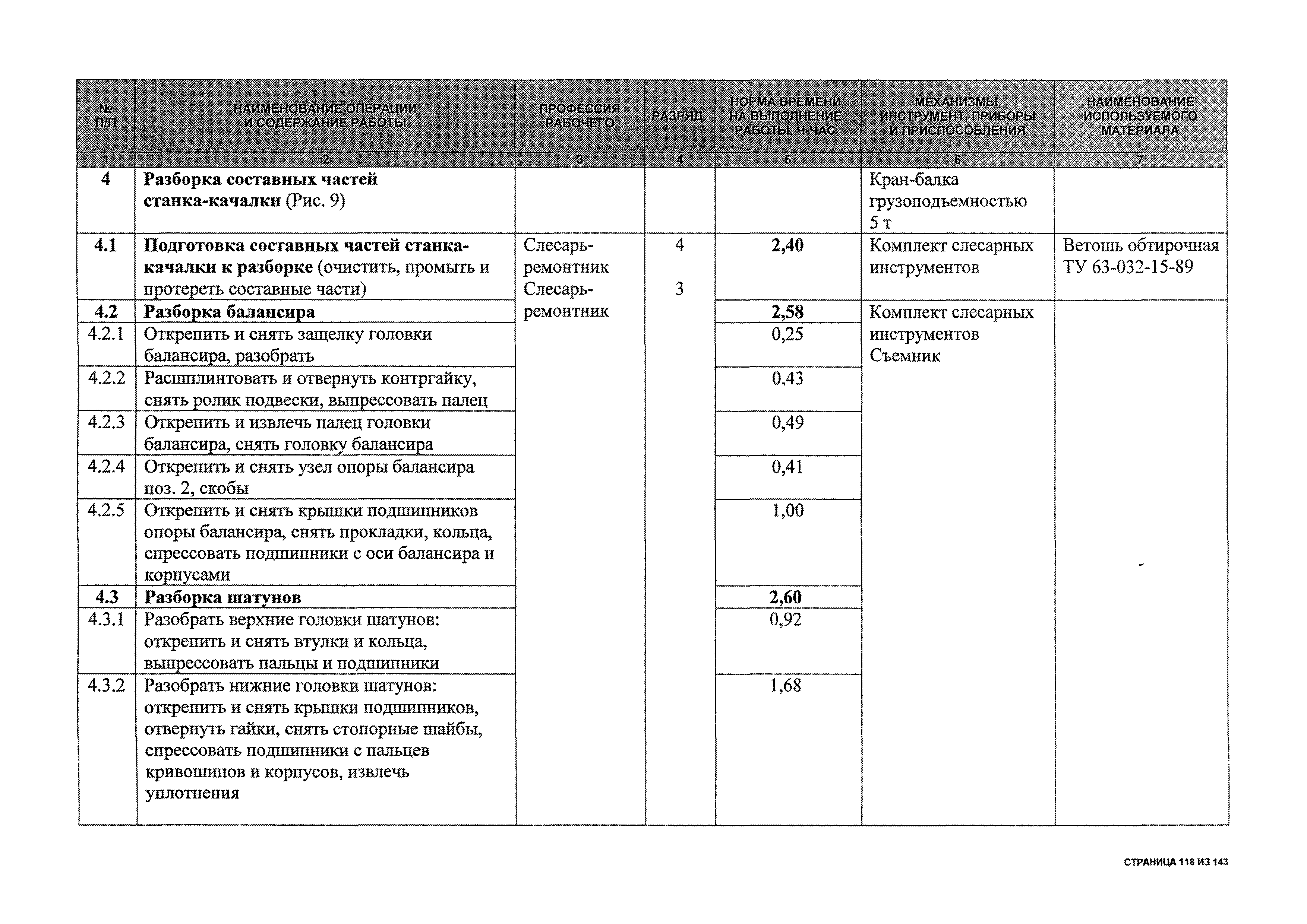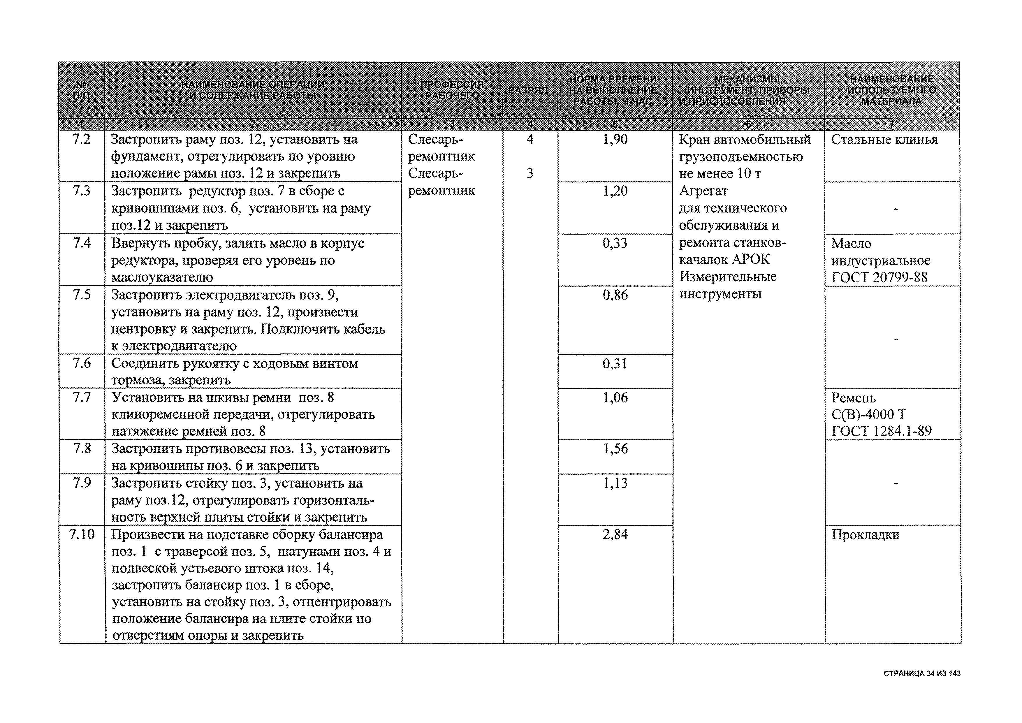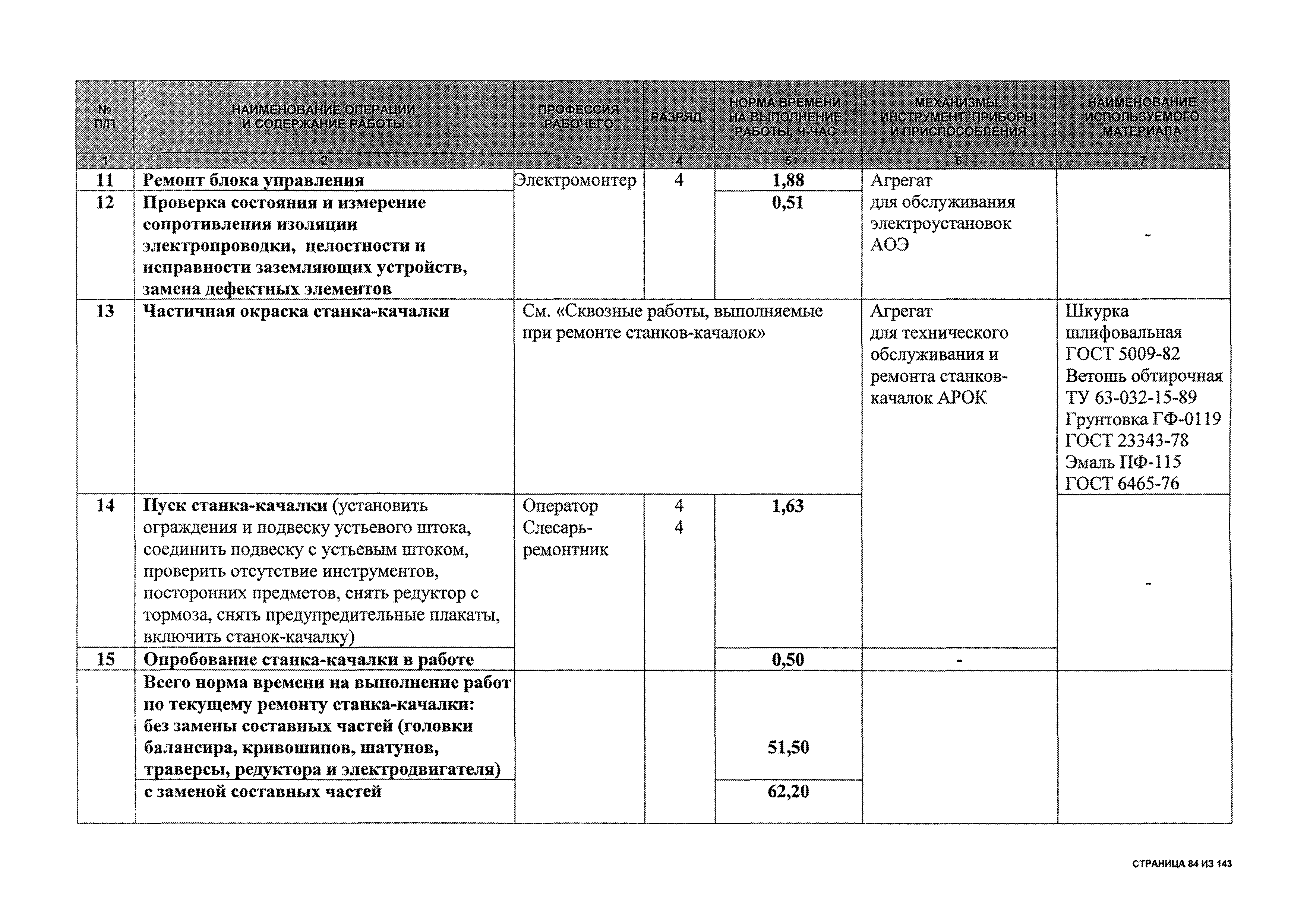 | Оглавление: | 1 Общая часть 2 Карты технического обслуживания, текущего и капитального ремонтов станков-качалок СК6-2,1-2500, СКД6-2,5-2800 (с редуктором Ц2НШ-450) СК8-3,5-4000, СК12-2,5-4000, СКД8-3-4000 (с редуктором Ц2НШ-750) СКН5-3015 (с редуктором РН-2300) СКН10-3315 (с редуктором РН-4000) 3 Сквозные работы, выполняемые при ремонте станка-качалки 3.1 Нарезание резьбы на стержнях плашкой 3.2 Калибровка резьбы на стержнях плашкой 3.3 Нарезание резьбы в сквозных отверстиях вручную 3.4 Калибровка резьбы в сквозных отверстиях вручную 3.5 Вырубка прямоугольных, фасонных и круглых прокладок 3.6 Пробивка отверстий в прокладках 3.7 Удаление сломанных шпилек, болтов 3.8 Шабрение разъема корпуса редуктора 3.9 Подгонка и установка призматических шпонок 3.10 Правка вала 3.11 Восстановление деталей станка-качалки наплавкой электродами диаметром 4 мм 3.12 Покраска станка-качалки после ремонта |