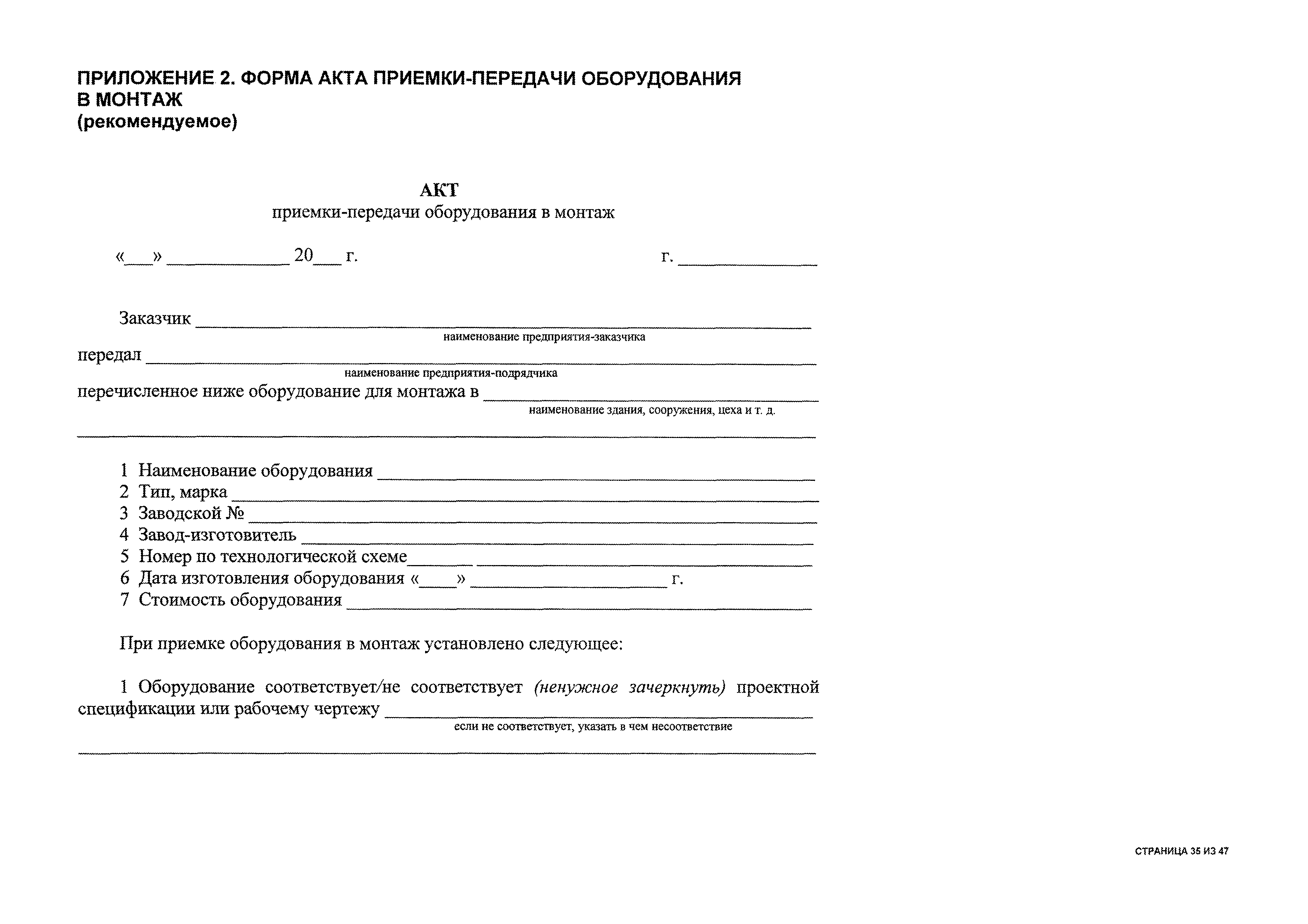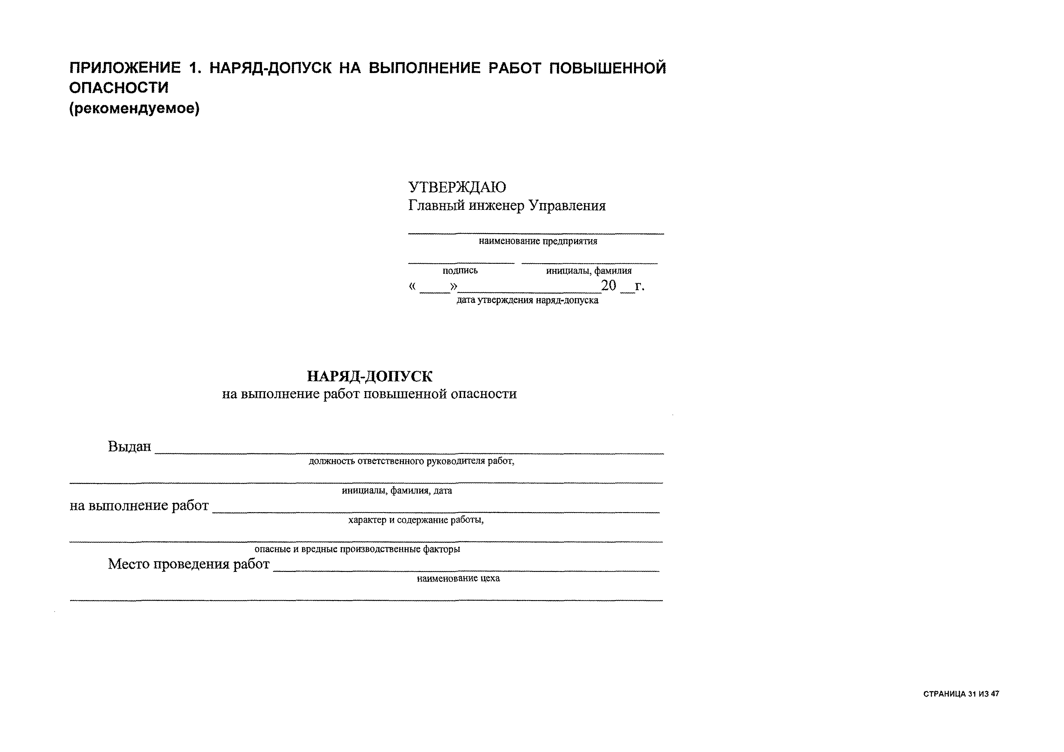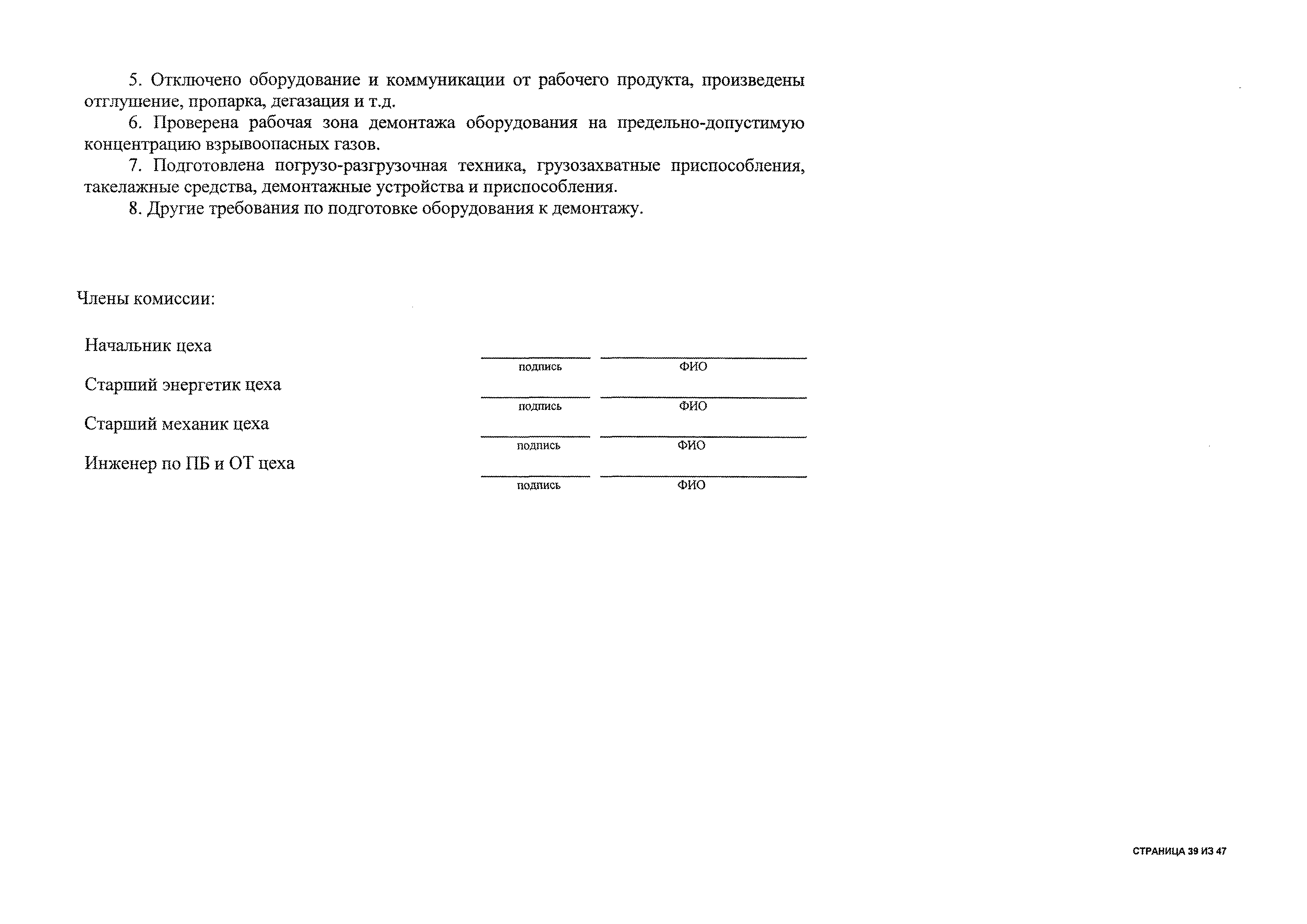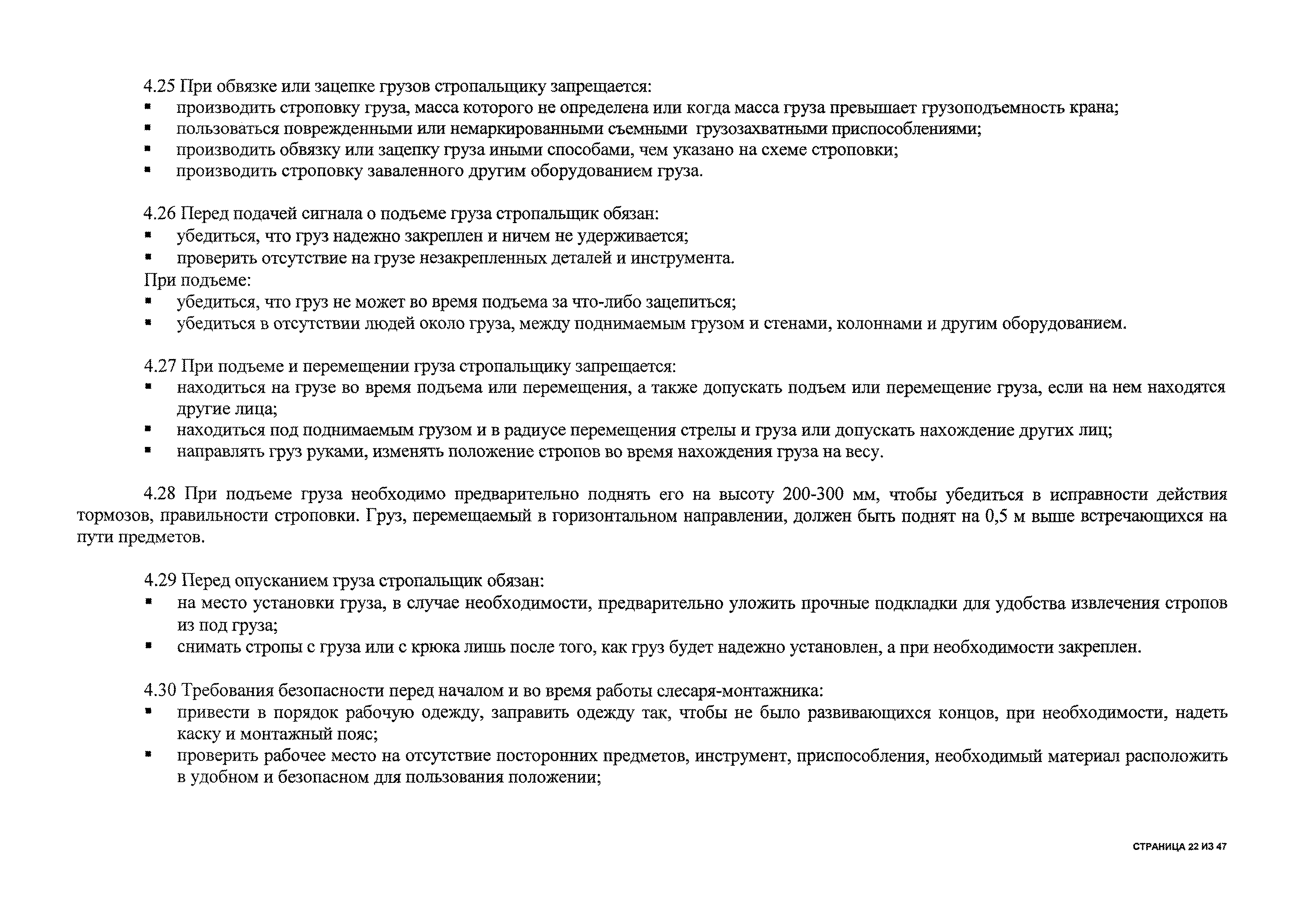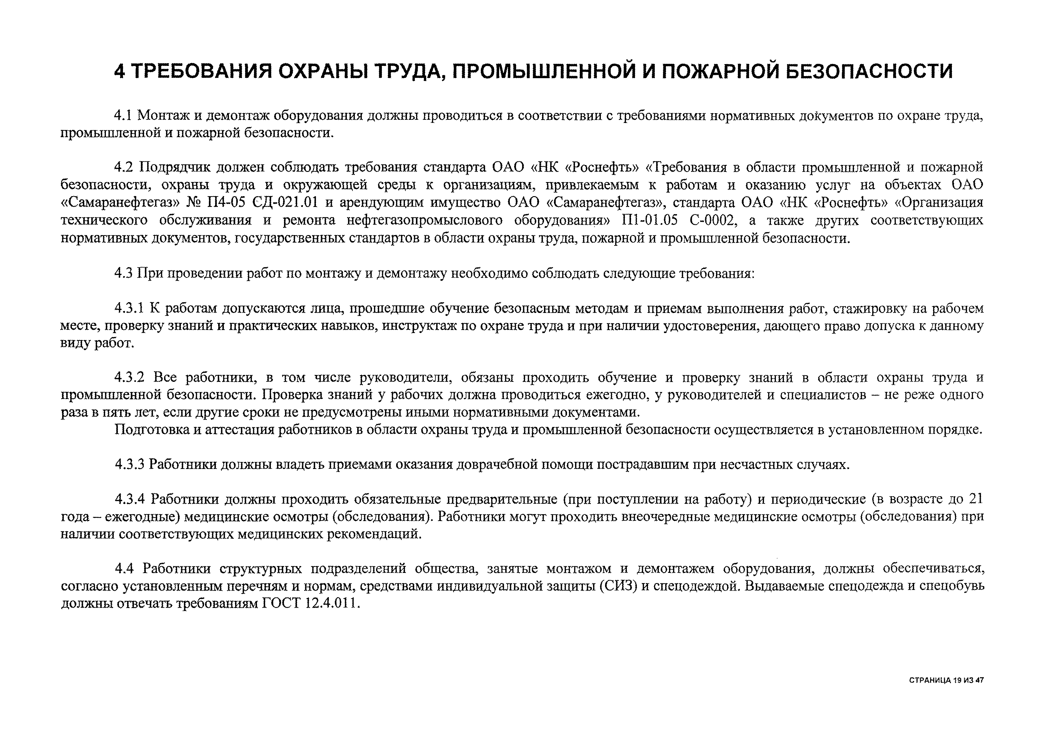 | Оглавление: | 1 Общие положения 2 Организация работ 3 Типовая карта по монтажу насосных агрегатов типа ЦНС 4 Требования охраны труда, промышленной и пожарной безопасности 5 Нормативы трудоемкости на монтаж и демонтаж насосных агрегатов типа ЦНС Приложение 1. Наряд-допуск на выполнение работ повышенной опасности Приложение 2. Форма акта приемки-передачи оборудования в монтаж Приложение 3. Форма акта на сдачу оборудования в демонтаж Приложение 4. Форма акта готовности оборудования к демонтажу Приложение 5. Порядок определения границы опасной зоны Приложение 6. Перечень оборудования, инструмента, грузозахватных приспособлений и материалов для производства монтажа и демонтажа насосных агрегатов типа ЦНС Приложение 7. Габаритные размеры и масса насосных агрегатов типа ЦНС Приложение 8. Стропы, применяемые при монтаже и демонтаже насосных агрегатов типа ЦНС |