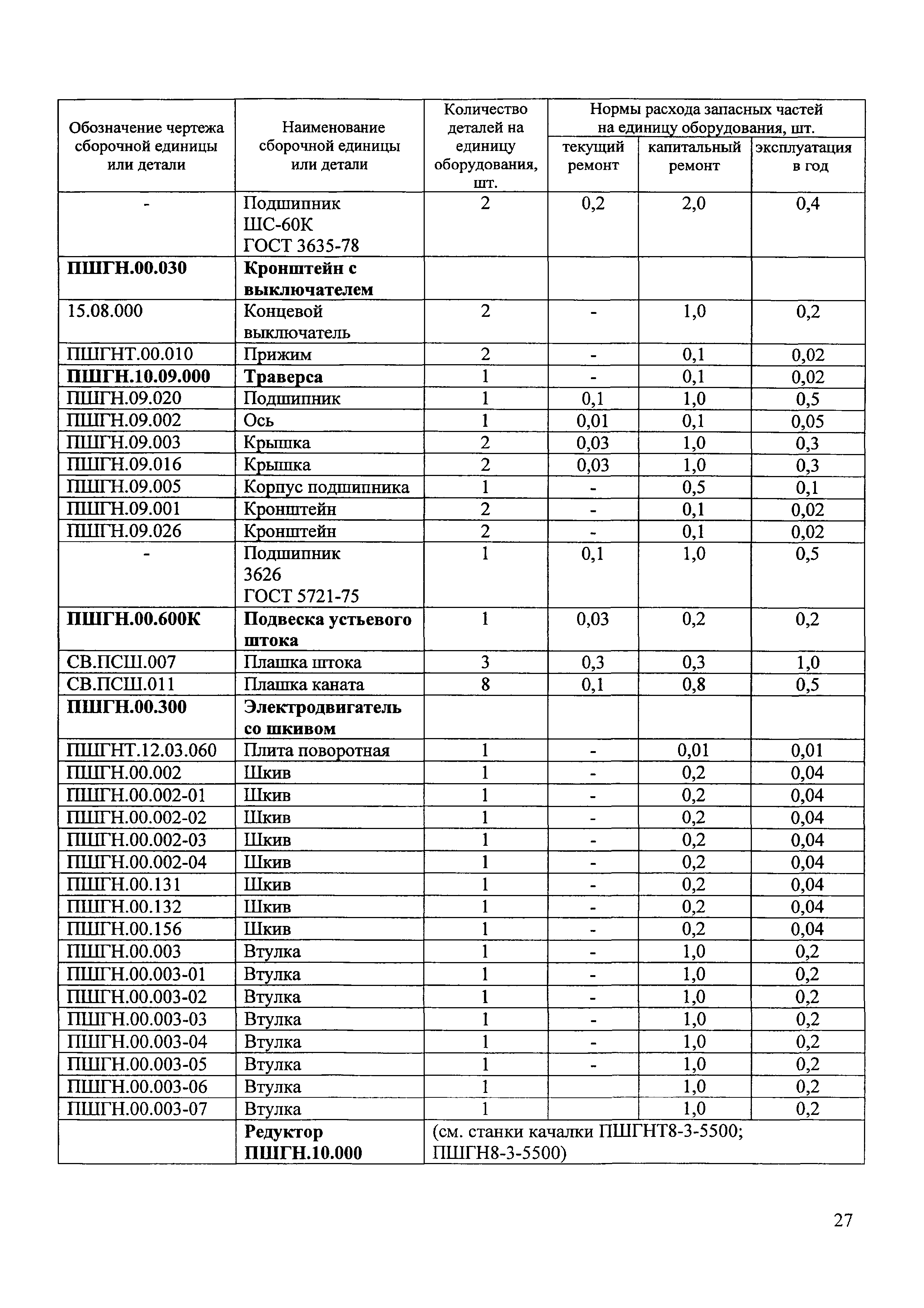 | Область применения: | Нормы расхода запасных частей предназначены для обеспечения рационального использования средств, необходимых для поддержания в работоспособном состоянии нефтепромыслового оборудования, путем оптимизации потребности в запасных частях при эксплуатации и ремонте, а также осуществления оптимального планирования (закупки и производства) запасных частей |