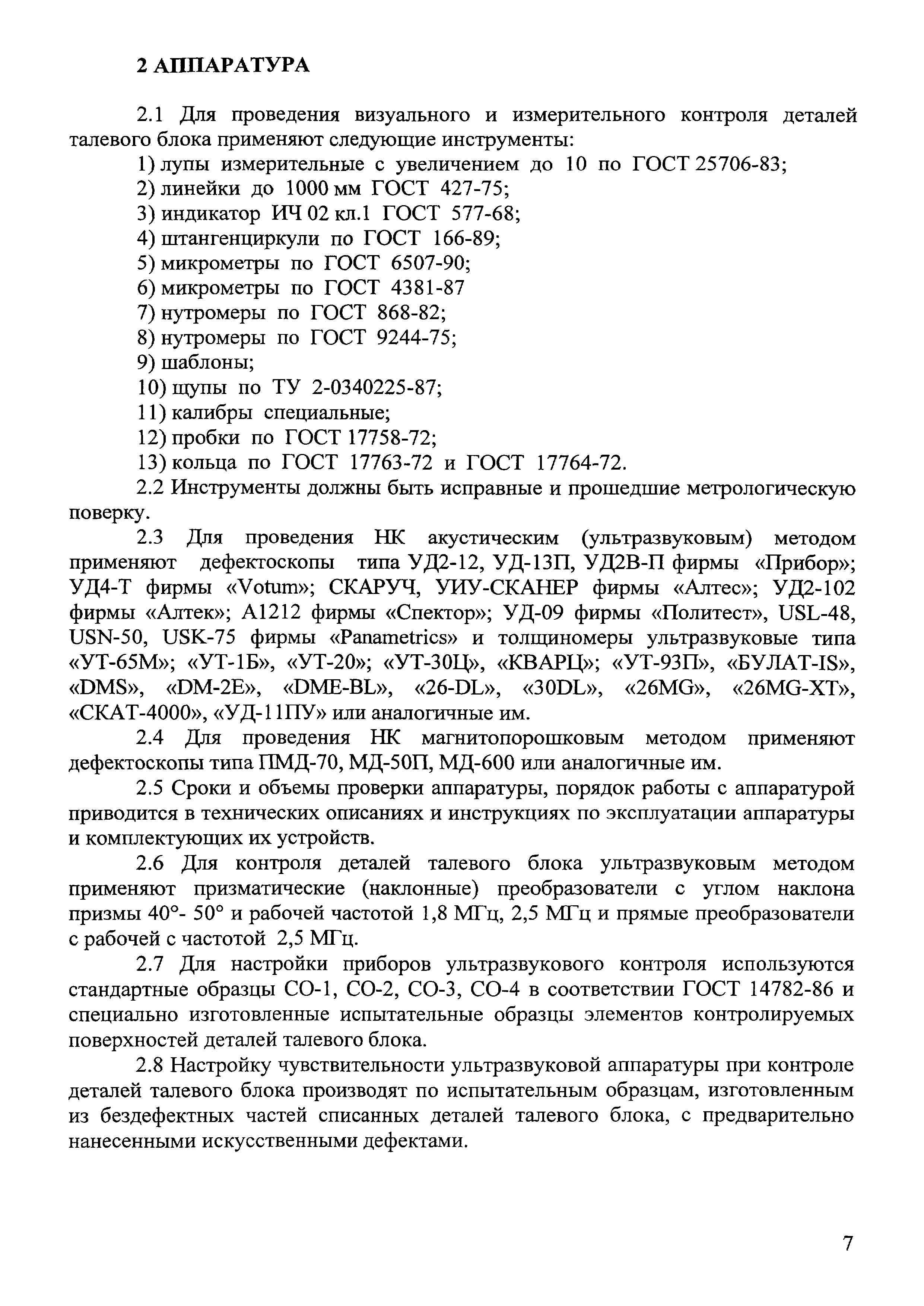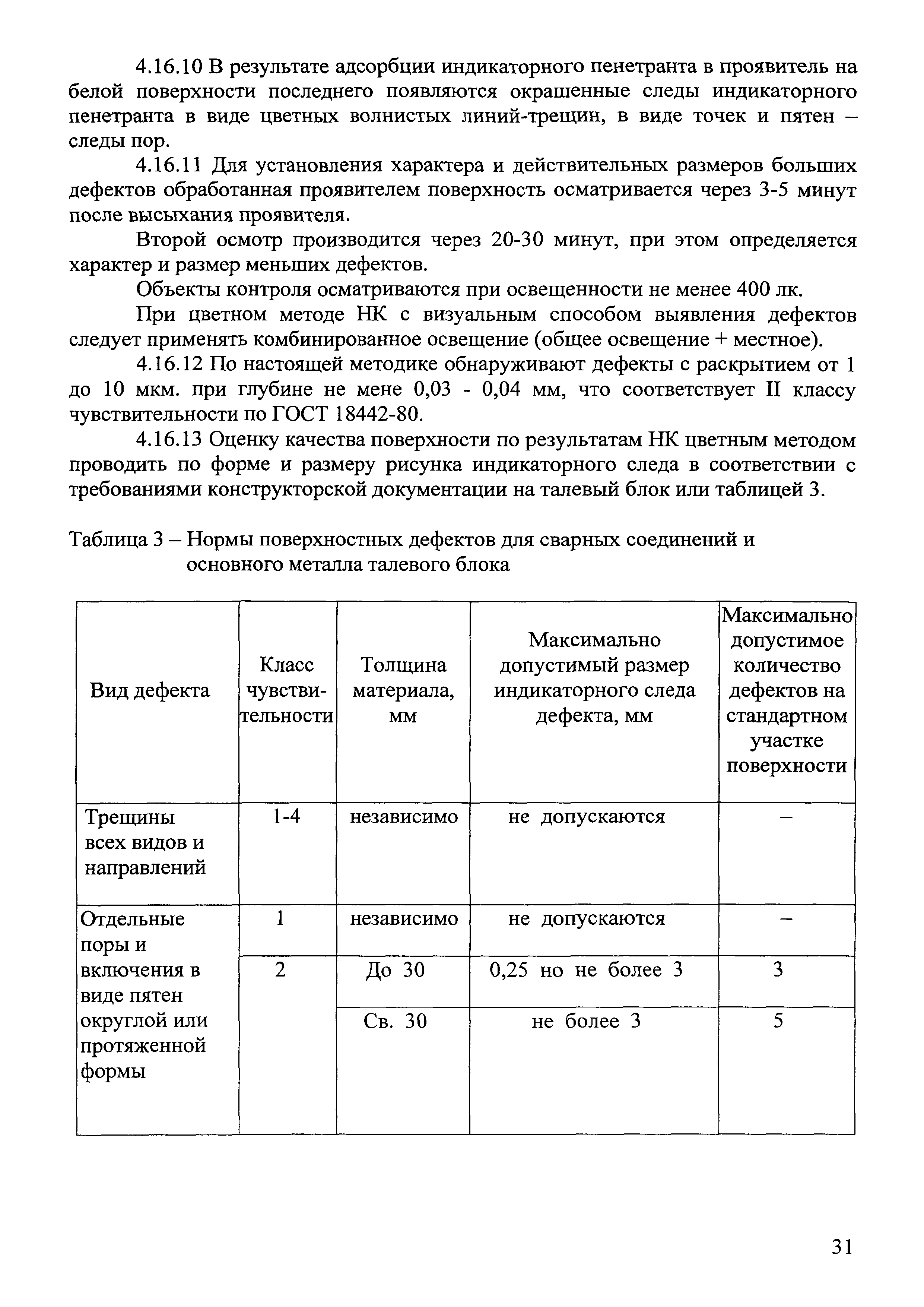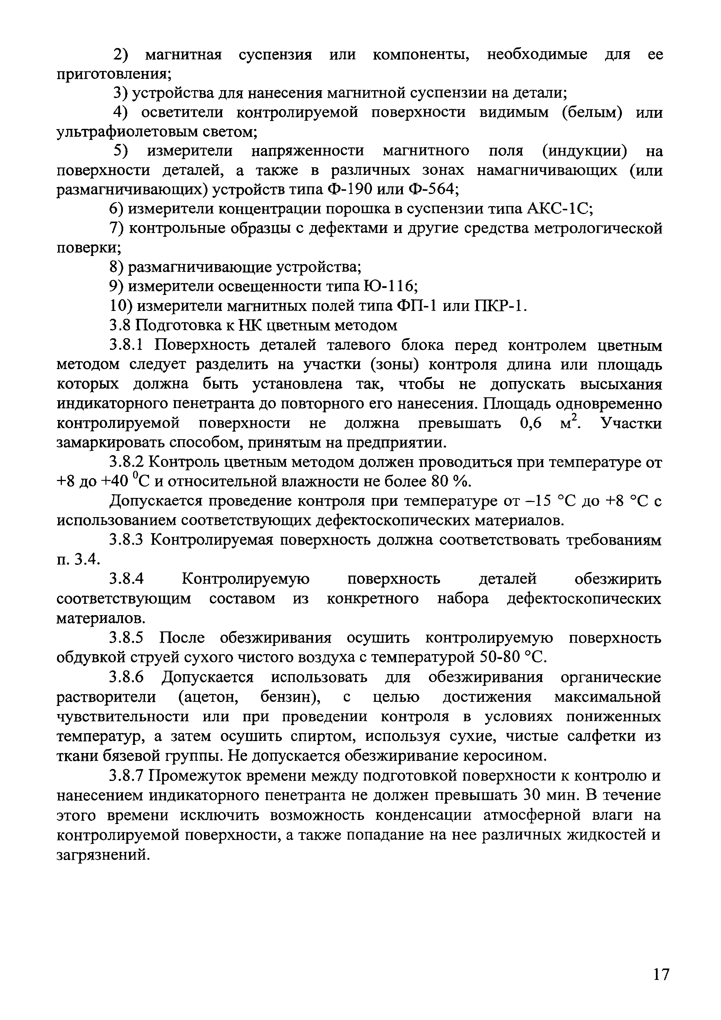 | Оглавление: | 1 Общие положения 2 Аппаратура 3 Подготовка к контролю 4 Порядок контроля 5 Оформление результатов контроля 6 Техника безопасности Приложение А. Акт результатов неразрушающего контроля Приложение Б. Индикаторные материалы, применяемые при магнитопорошковом контроле Приложение В. Дефектоскопические материалы, применяемые при цветном методе контроля Приложение Г. Перечень материалов и реактивов. применяемых при проведении цветного контроля |
