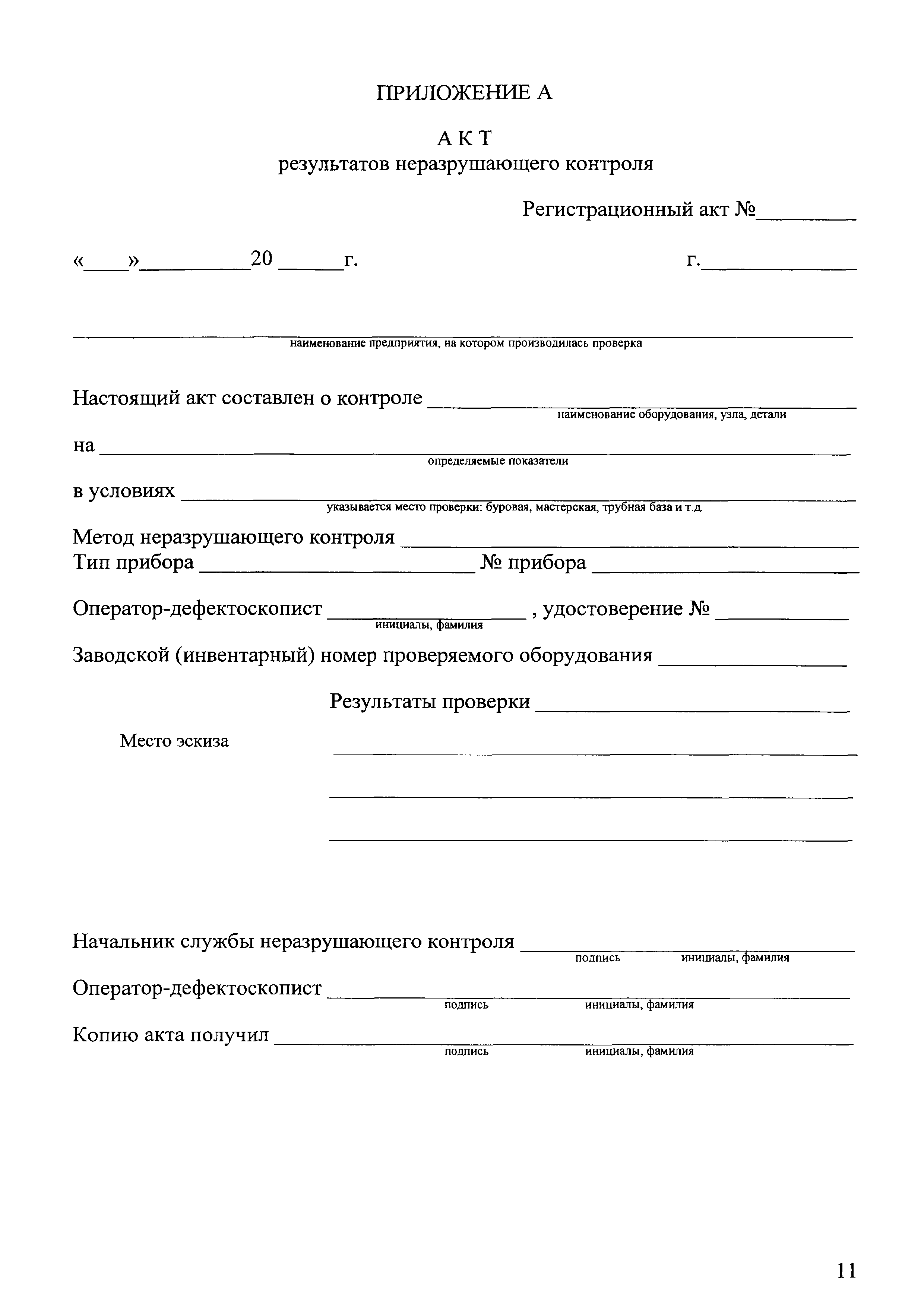 | Оглавление: | 1 Общие положения 2 Инструменты для контроля 3 Подготовка к контролю 4 Порядок контроля 5 Оформление результатов контроля 6 Техника безопасности Приложение А. Акт результатов неразрушающего контроля |