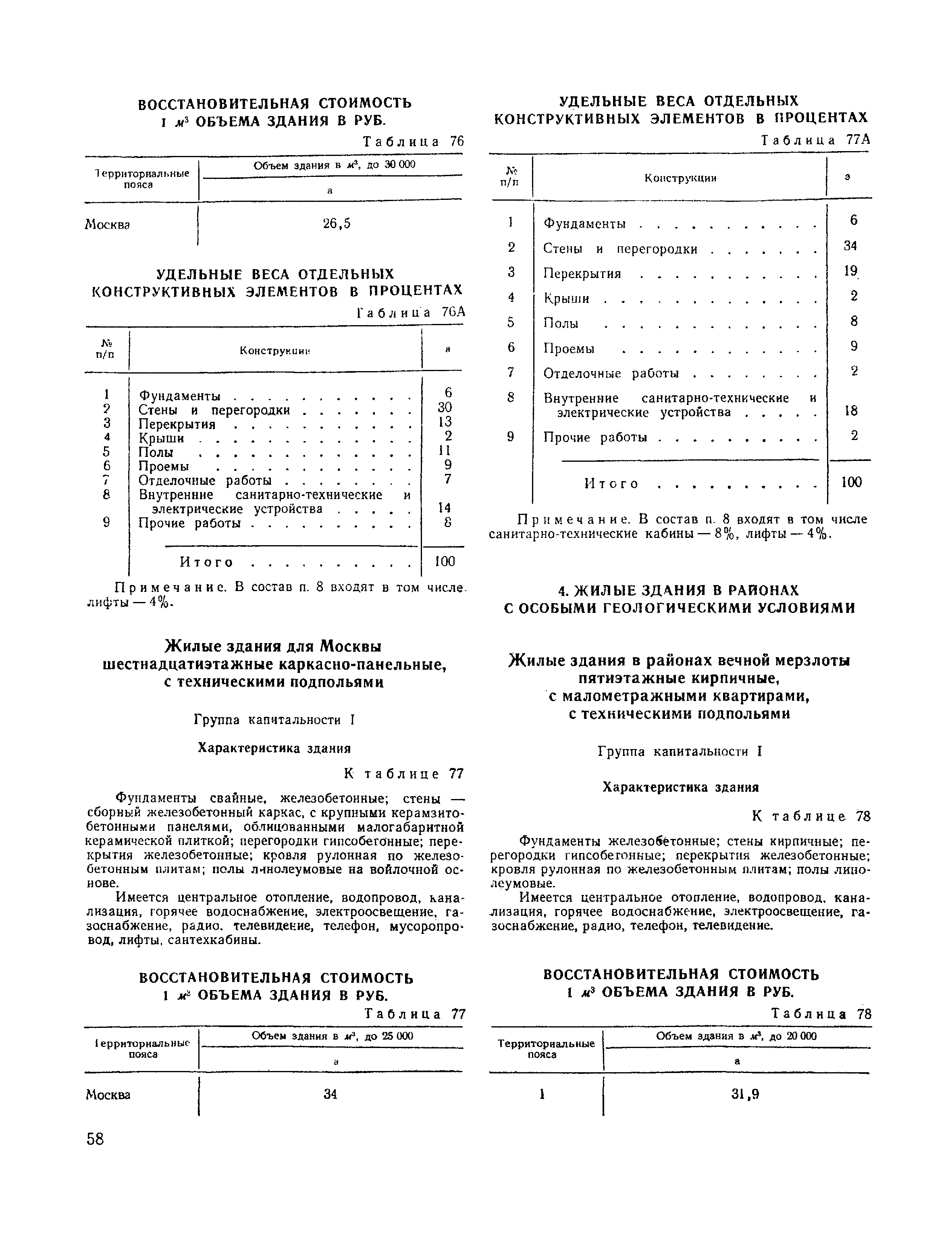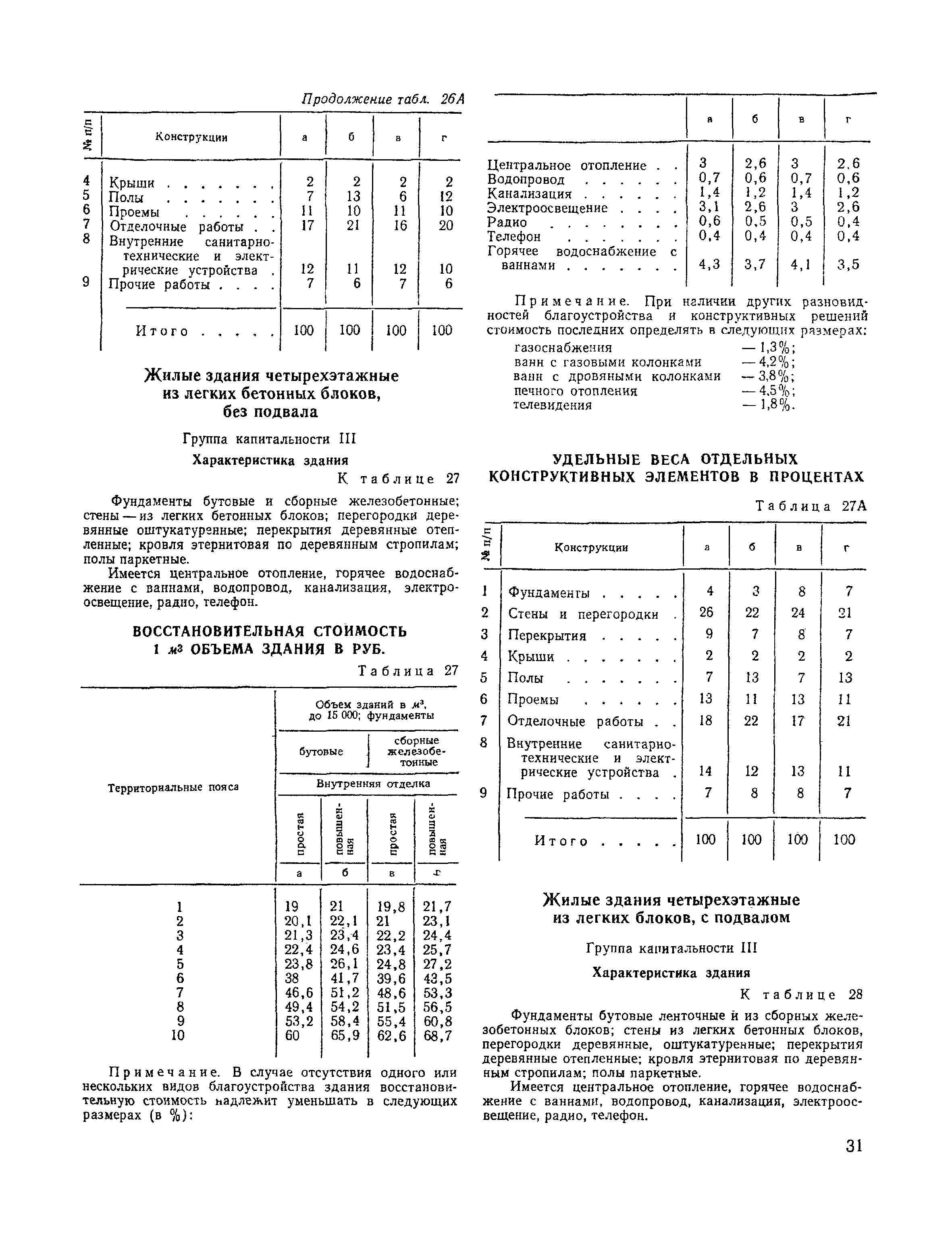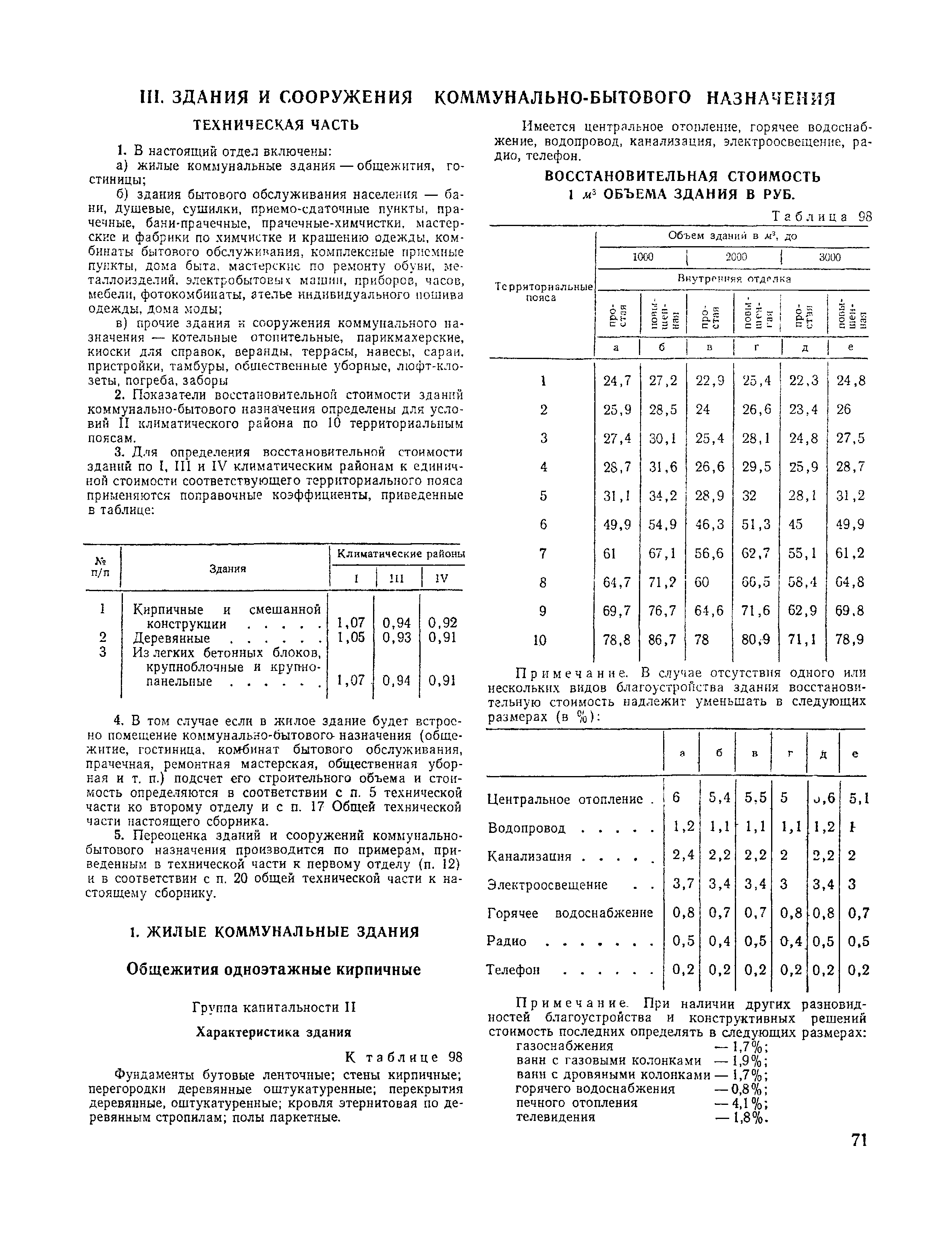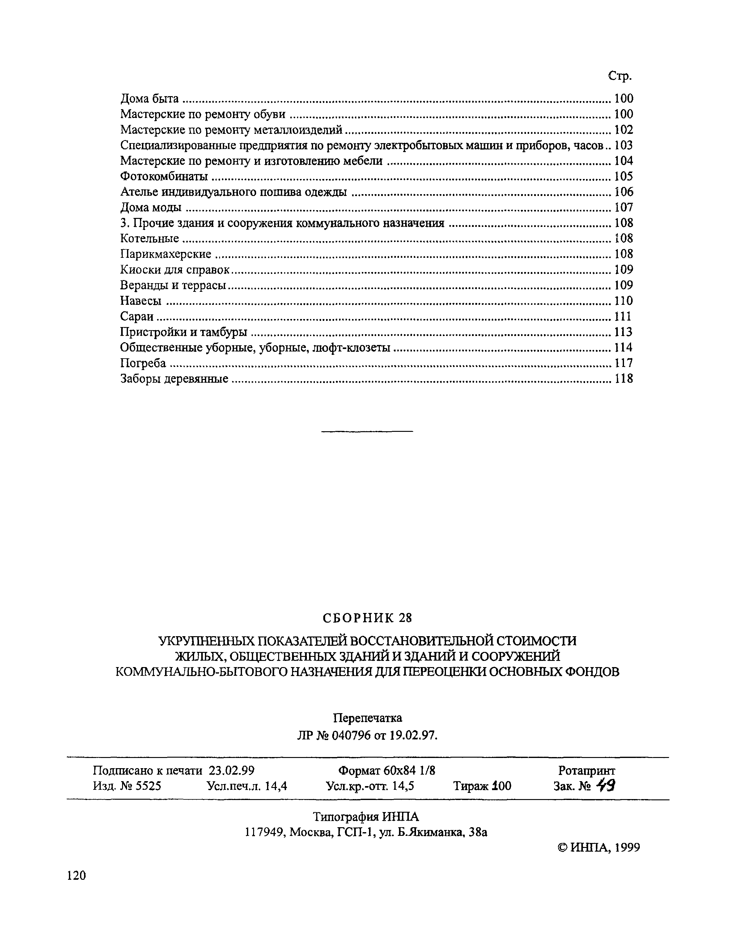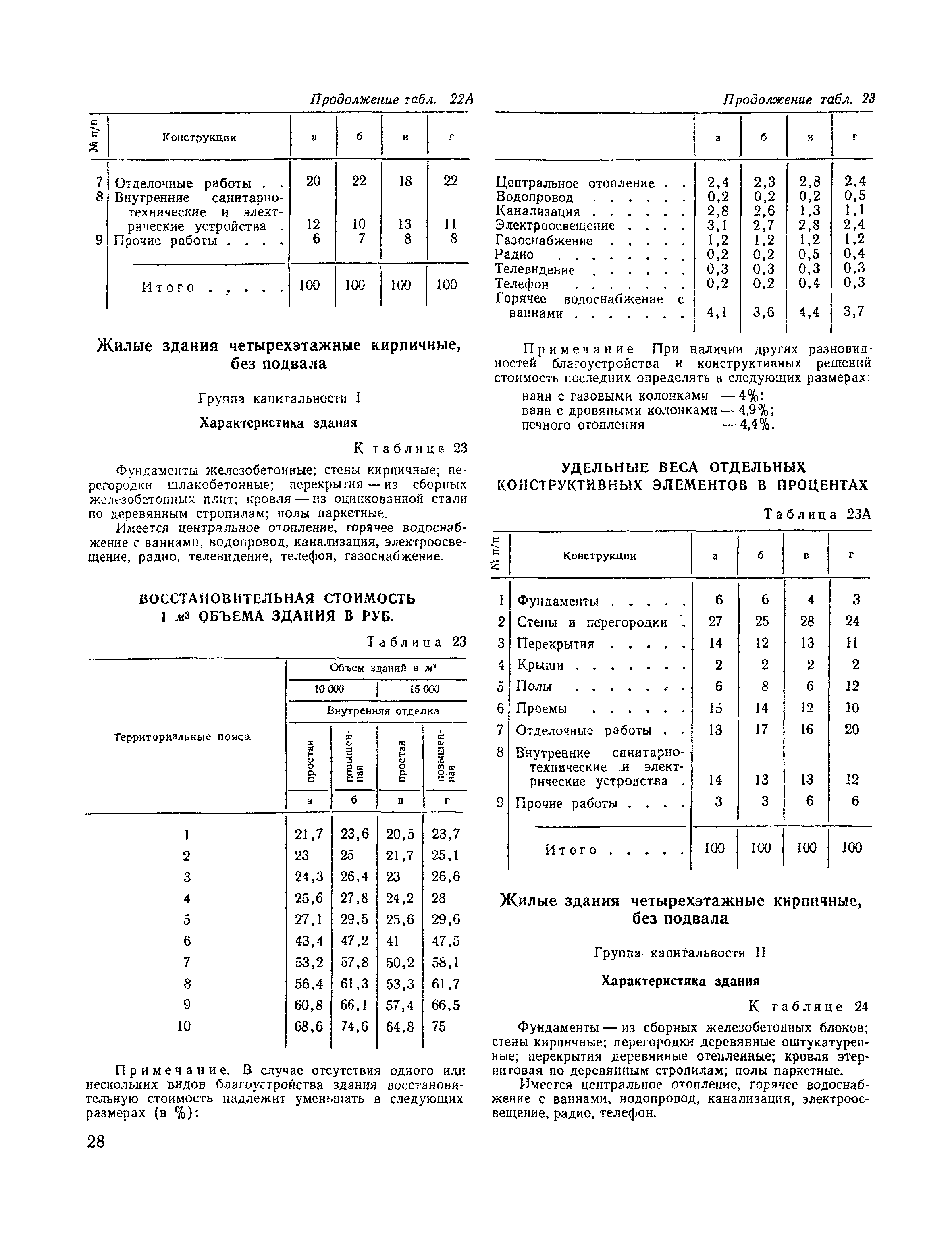 Сборник № 28 укрупненных показателей восстановительной стоимости жилых, общественных зданий и зданий и сооружений коммунально-бытового назначения для переоценки основных фондов| Статус: | справочные материалы, мп, тпр | | Название рус.: | Сборник № 28 укрупненных показателей восстановительной стоимости жилых, общественных зданий и зданий и сооружений коммунально-бытового назначения для переоценки основных фондов | | Дата добавления в базу: | 01.10.2014 | | Дата актуализации: | 01.01.2021 | | Область применения: | Сборник содержит укрупненные показатели восстановительной стоимости жилых, общественных зданий и зданий коммунально-бытового назначения и предназначается для переоценки основных фондов. | | Оглавление: | Техническая часть I. Жилые здания 1. Жилые здания с полнометражными квартирами 1-этажные 2-этажные 3-этажные 4-этажные 5-этажные 6-этажные 7-этажные 8-этажные 9-этажные 10-этажные 12-этажные 2. Жилые здания с малометражными квартирами 5-этажные 9-этажные 3. Жилые здания с малометражными квартирами для Москвы 5-этажные 9-этажные 12-этажные 14-этажные 16-этажные 4. Жилые здания в районах с особыми геологическими условиями для районов вечной мерзлоты для районов с сейсмичностью: 7 баллов 7-8 баллов 9 баллов II. Общественные здания Техническая часть Административные здании Библиотеки Танцевальные площадки III. Здания н сооружения коммунально-бытового назначения Техническая часть 1. Жилые коммунальные здания Общежития Гостиницы 2. Здания бытового обслуживания населения . Бани, Душевые, сушилки, приемо-сдаточные пункты Прачечные, бани-прачечные Прачечные-химчистки Мастерские и фабрики химчистки и крашения одежды Комбинаты бытового обслуживания Комплексные приемные пункты Дома быта Мастерские по ремонту обуви Мастерские по ремонту металлоизделий Специализированные предприятия по ремонту электробытовых машин и приборов, часов Мастерские по ремонту и изготовлению мебели Фотокомбинаты Ателье индивидуального пошива одежды Дома моды 3. Прочие здания и сооружения коммунального назначения Котельные Парикмахерские Киоски для справок Веранды и террасы Навесы Сараи Пристройки и тамбуры Общественные уборные, уборные, люфт-клозеты Погреба Заборы деревянные | | Разработан: | ЦНИИЭП зрелищных зданий и спортивных сооружений Госгражданстроя Гипробытпром Гипрокоммунстрой ЦНИИЭП торговых зданий Госгражданстроя СССР ЦНИИЭП жилища Московский научно-исследовательский институт типового и экспериментального проектирования ГлавАПУ Мосгорисполкома Мосжилпроект