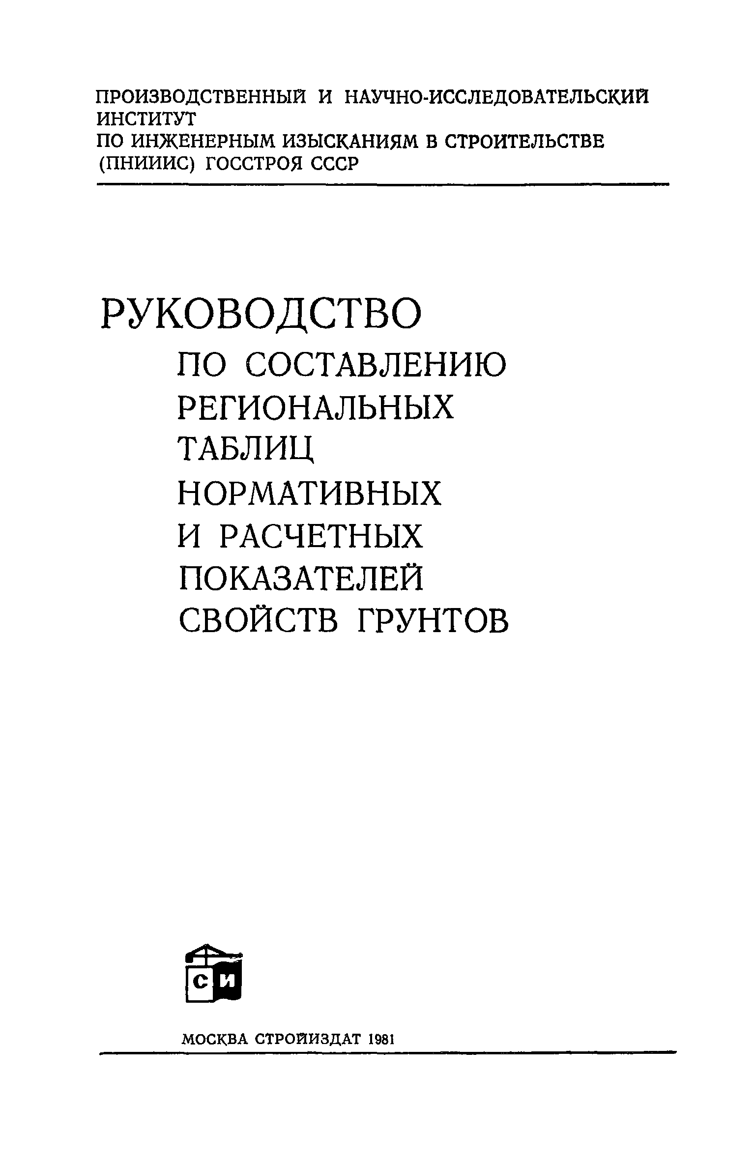 | Название рус.: | Руководство по составлению региональных таблиц нормативных и расчетных показателей свойств грунтов |