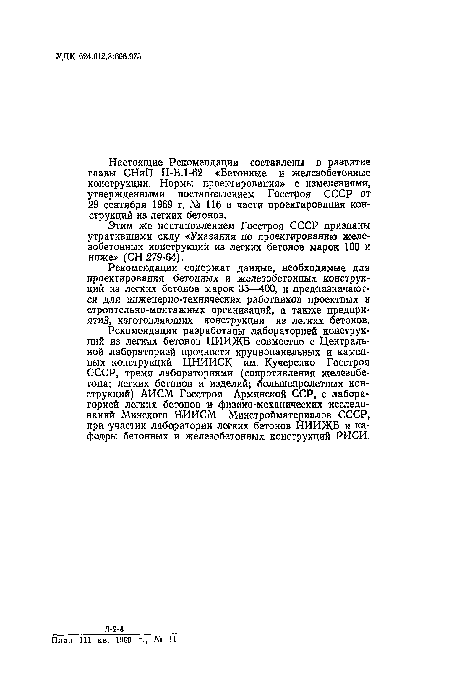 - СН 279-64 «Указания по проектированию железобетонных конструкций из легких бетонов