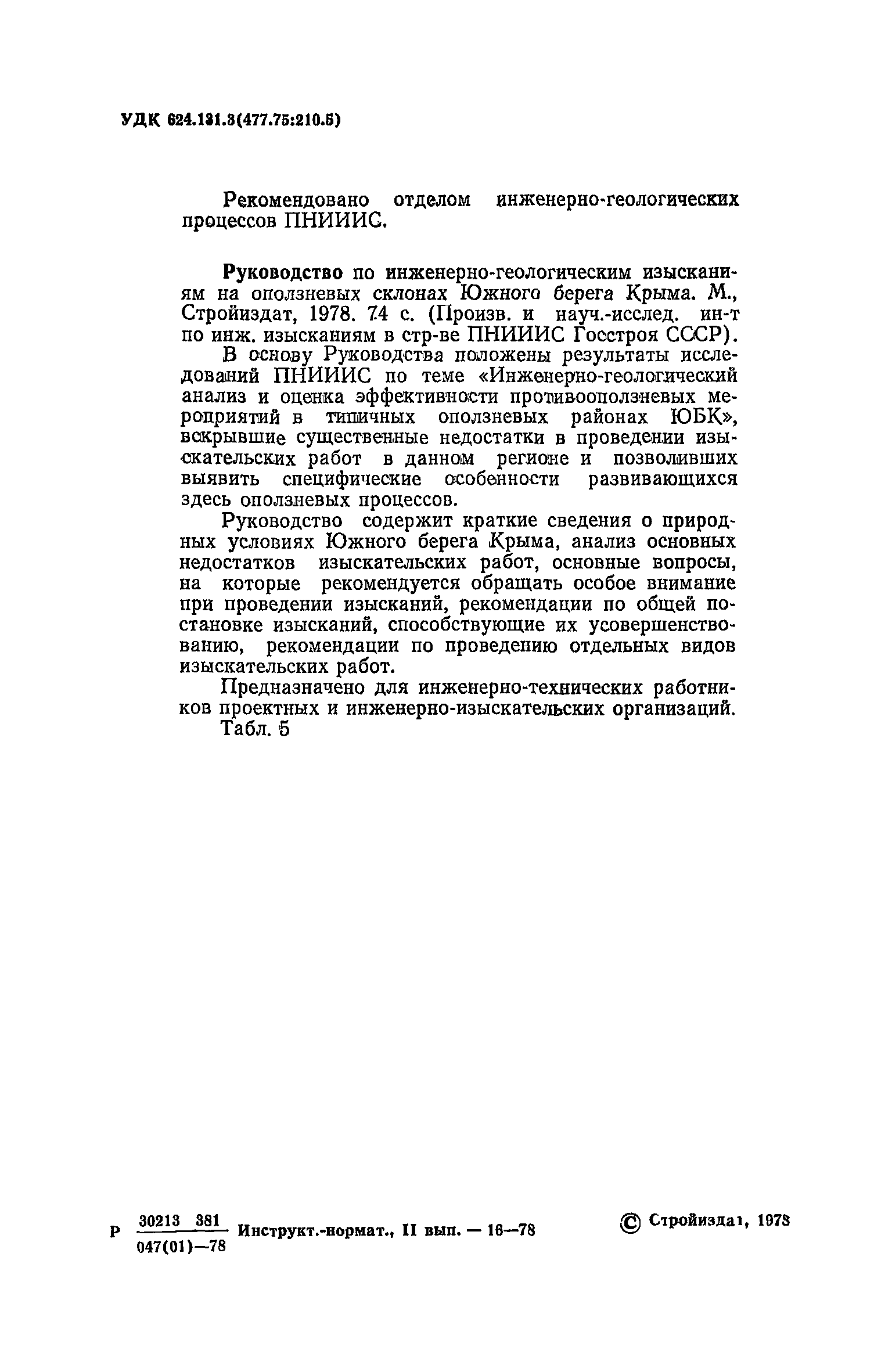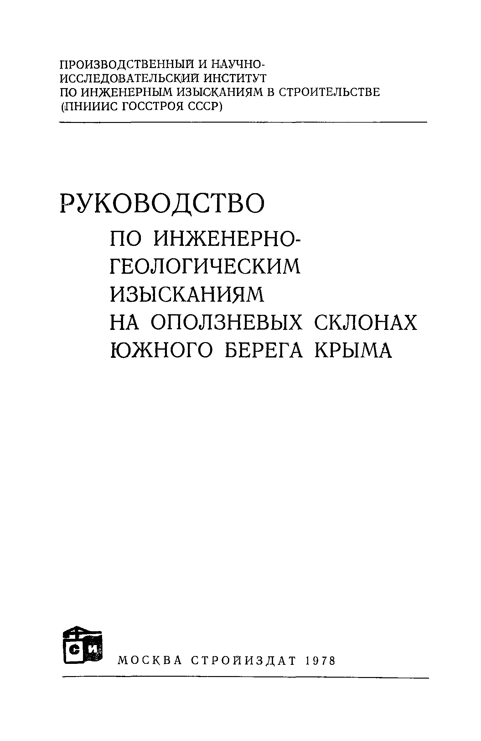 | Название рус.: | Руководство по инженерно-геологическим изысканиям на оползневых склонах Южного берега Крыма |