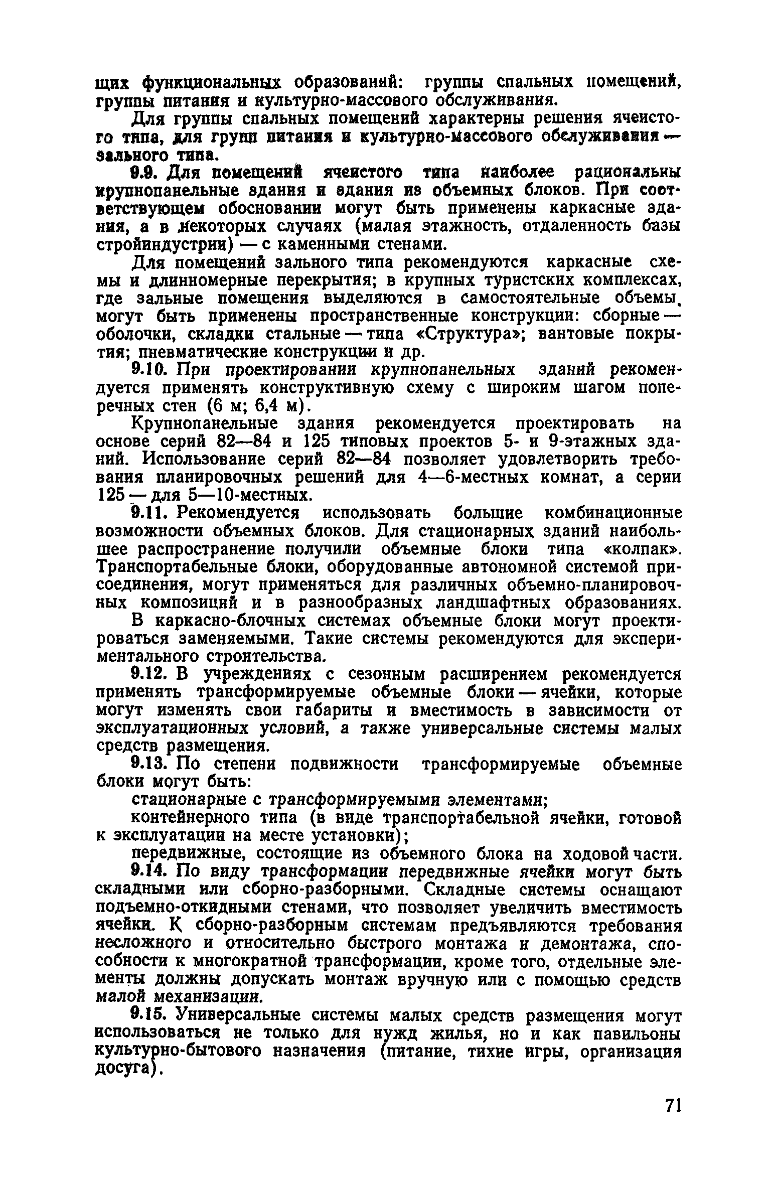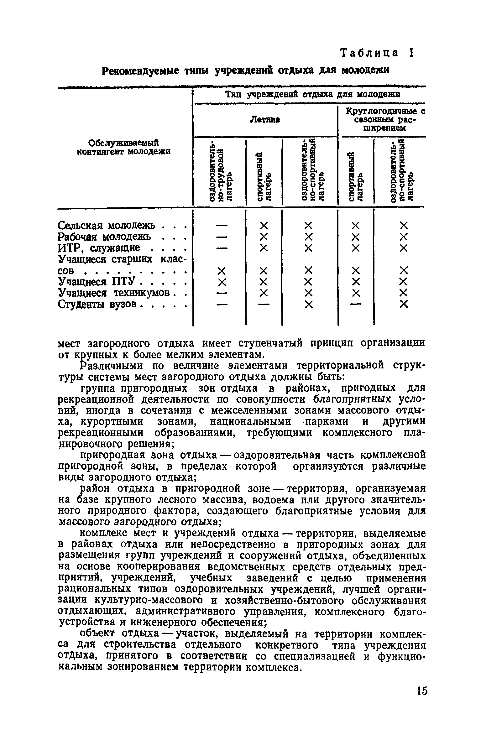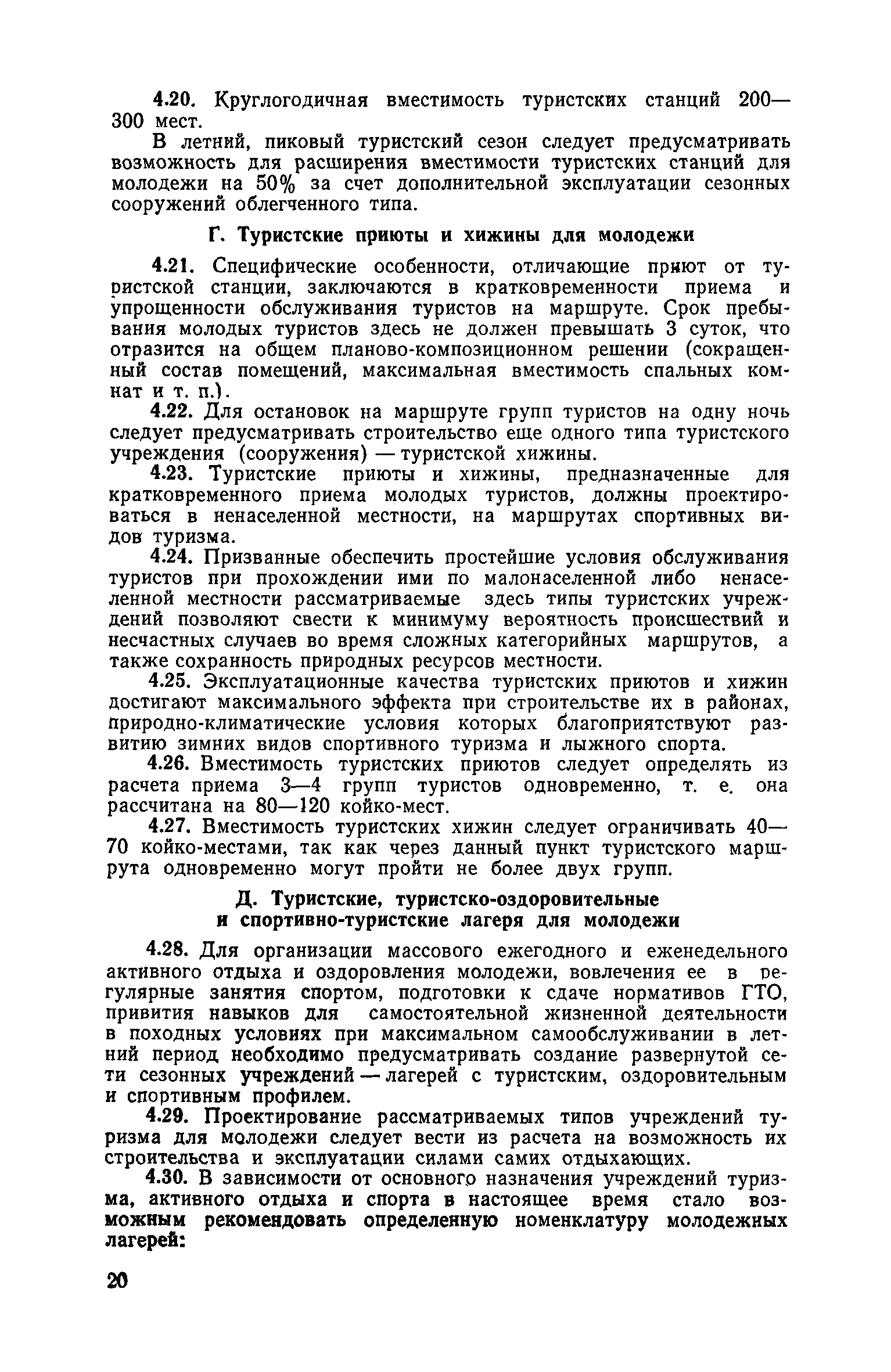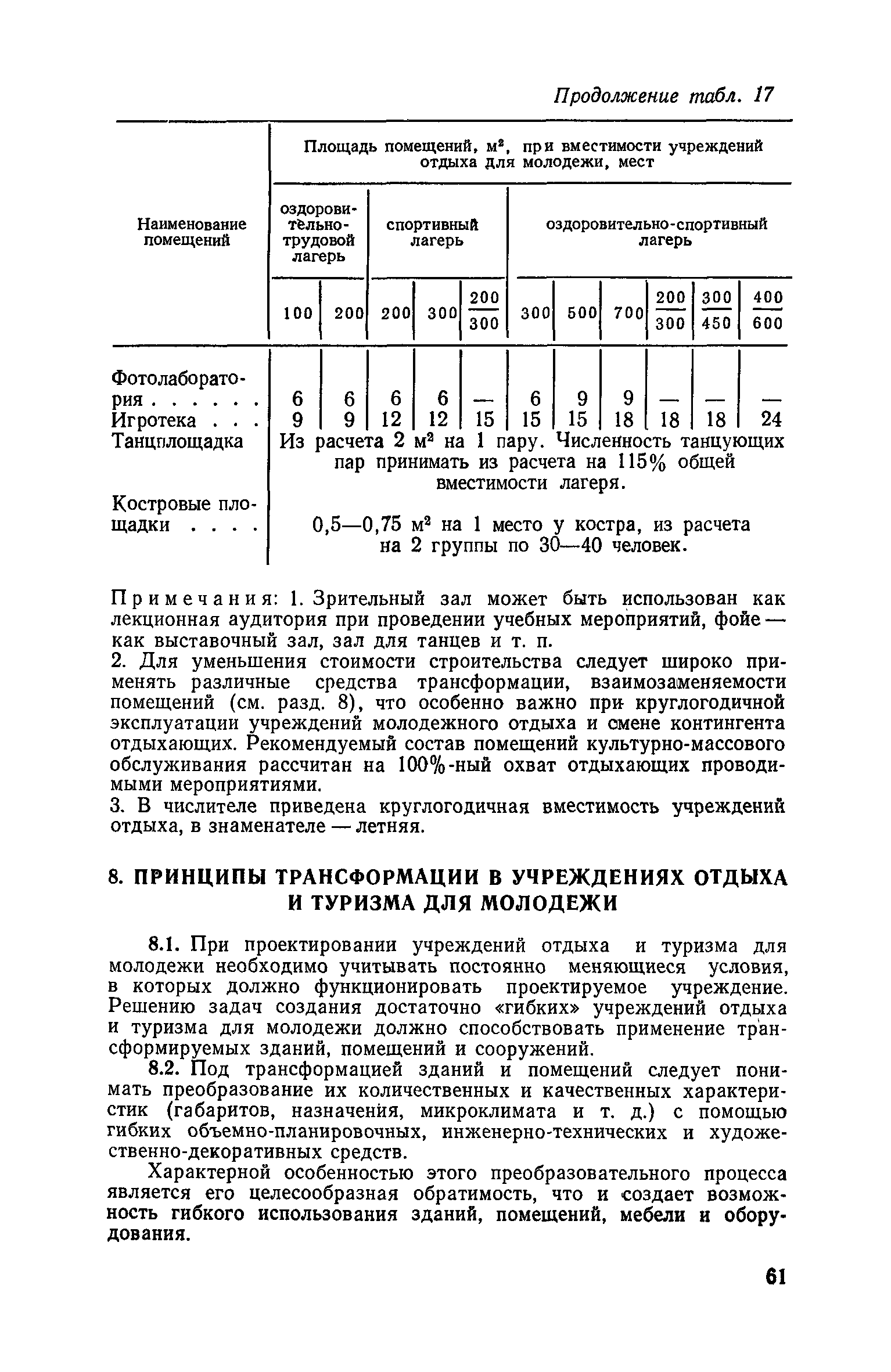 Рекомендации по совершенствованию типов учреждений отдыха и туризма для молодежи (на примере УССР)| Статус: | справочные материалы, мп, тпр | | Название рус.: | Рекомендации по совершенствованию типов учреждений отдыха и туризма для молодежи (на примере УССР) | | Дата добавления в базу: | 01.10.2014 | | Дата актуализации: | 01.01.2021 | | Область применения: | Документ освещает основные принципы типологической классификации учреждений отдыха и туризма для молодежи по конкретным признакам (по назначению, принципам размещения, вместимости, уровню комфорта, продолжительности пребывания и т. п.), особенности архитектурно-планировочной и объемно-пространственной организации прогрессивных типов учреждений молодежного отдыха и туризма с учетом дифференциации молодежи по возрастной принадлежности, профессиональным особенностям, возможности для проведения длительного отдыха в течение года. Рекомендации способствуют упорядочению номенклатуры различных типов учреждений, снижению материальных затрат на строительство и эксплуатацию. Рекомендации предназначены для архитекторов, инженеров и научных работников, работающих в области проектирования учреждений молодежного отдыха и туризма, для сотрудников туристских и спортивных ведомств и организаций, а также для преподавателей и студентов архитектурных вузов и факультетов. | | Оглавление: | Введение 1. Общие положения 2. Классификация типов учреждений отдыха и туризма для молодежи 3. Типы учреждений отдыха для молодежи и студентов 4. Типы учреждений туризма для молодежи 5. Учет природно-климатических условий при проектировании учреждений отдыха и туризма для молодежи на территории Украинской ССР 6. Архитектурно-планировочная организация территории учреждений отдыха и туризма для молодежи 7. Выбор рациональных планово-композиционных приемов и объемно-пространственных решений основных зданий и помещений 8. Принципы трансформации в учреждениях отдыха и туризма для молодежи 9. Применение современных конструктивных решений при проектировании учреждений отдыха и туризма для молодежи 10. Инженерное оборудование и сети | | Разработан: | НИЛЭП ОИСИ Одесский инженерно-строительный институт (ОИСИ)