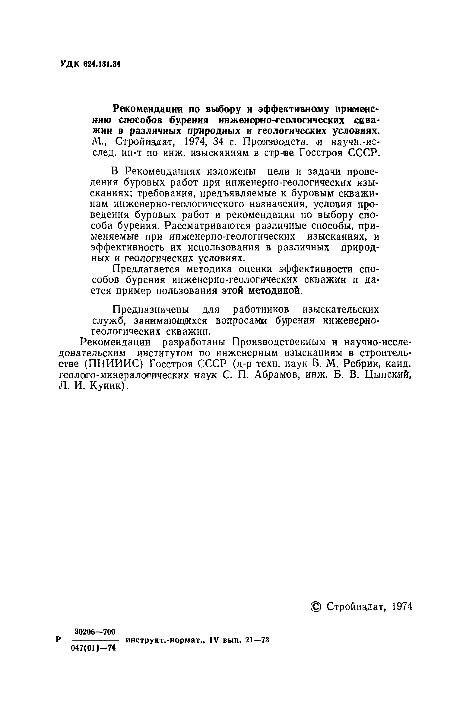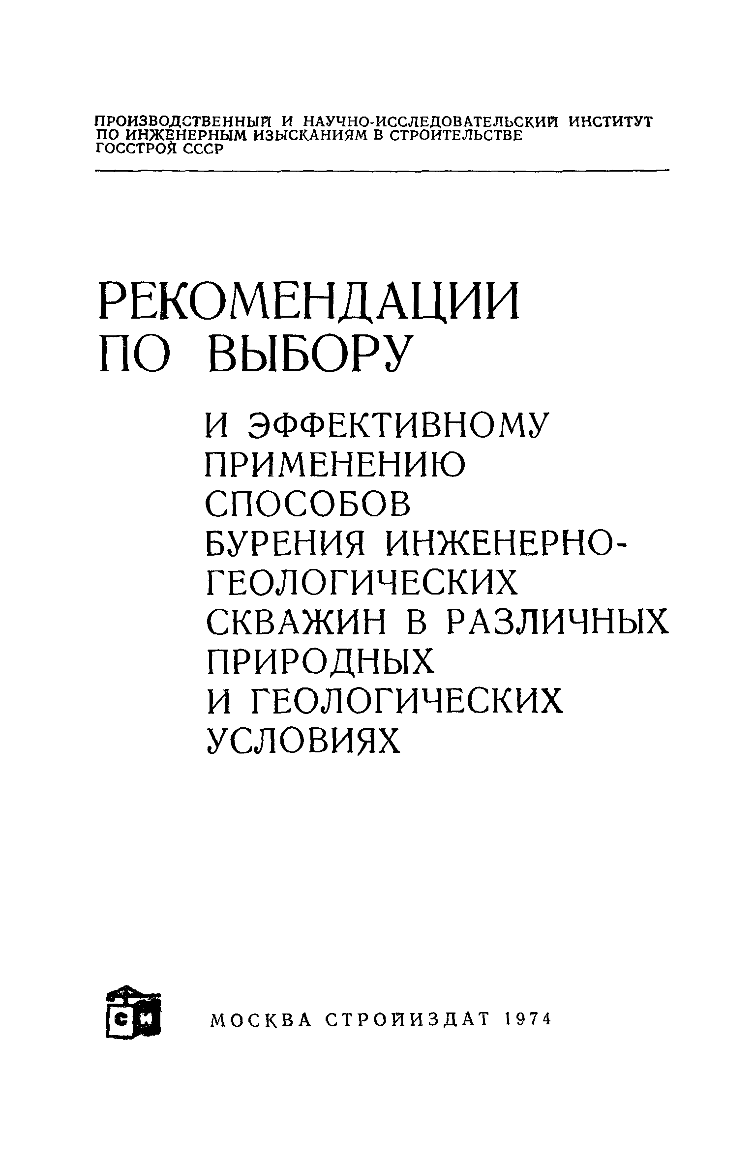 | Название рус.: | Рекомендации по выбору и эффективному применению способов бурения инженерно-геологических скважин в различных природных и геологических условиях |