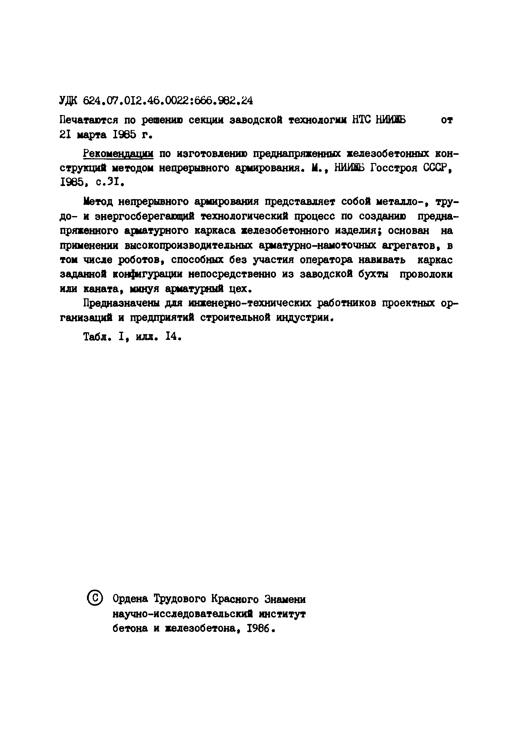 | Название рус.: | Рекомендации по изготовлению преднапряженных железобетонных конструкций методом непрерывного армирования |
