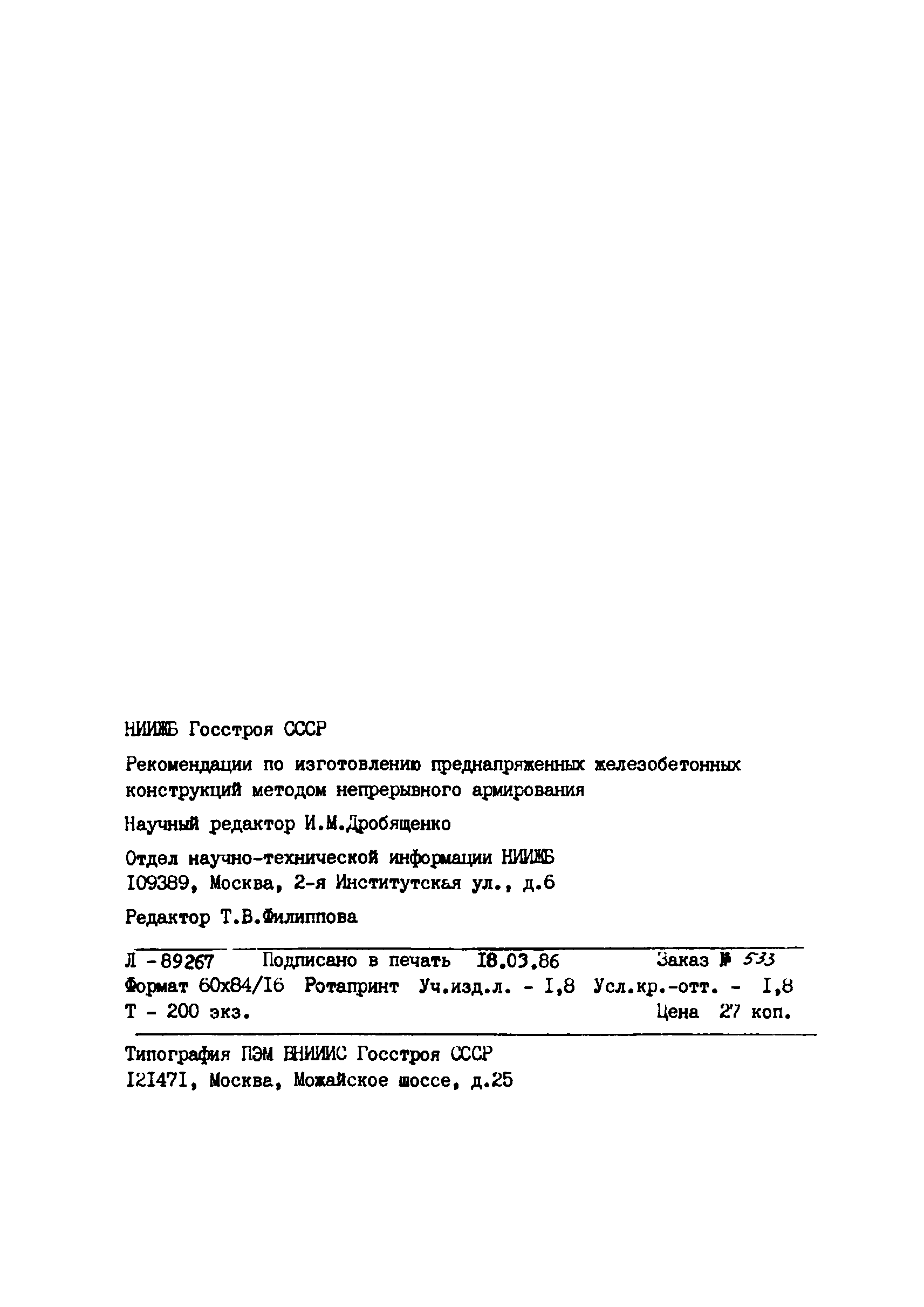 | Утверждён: | 04.07.1986 НИИЖБ Госстроя СССР (NIIZhB, USSR Gosstroy ) |