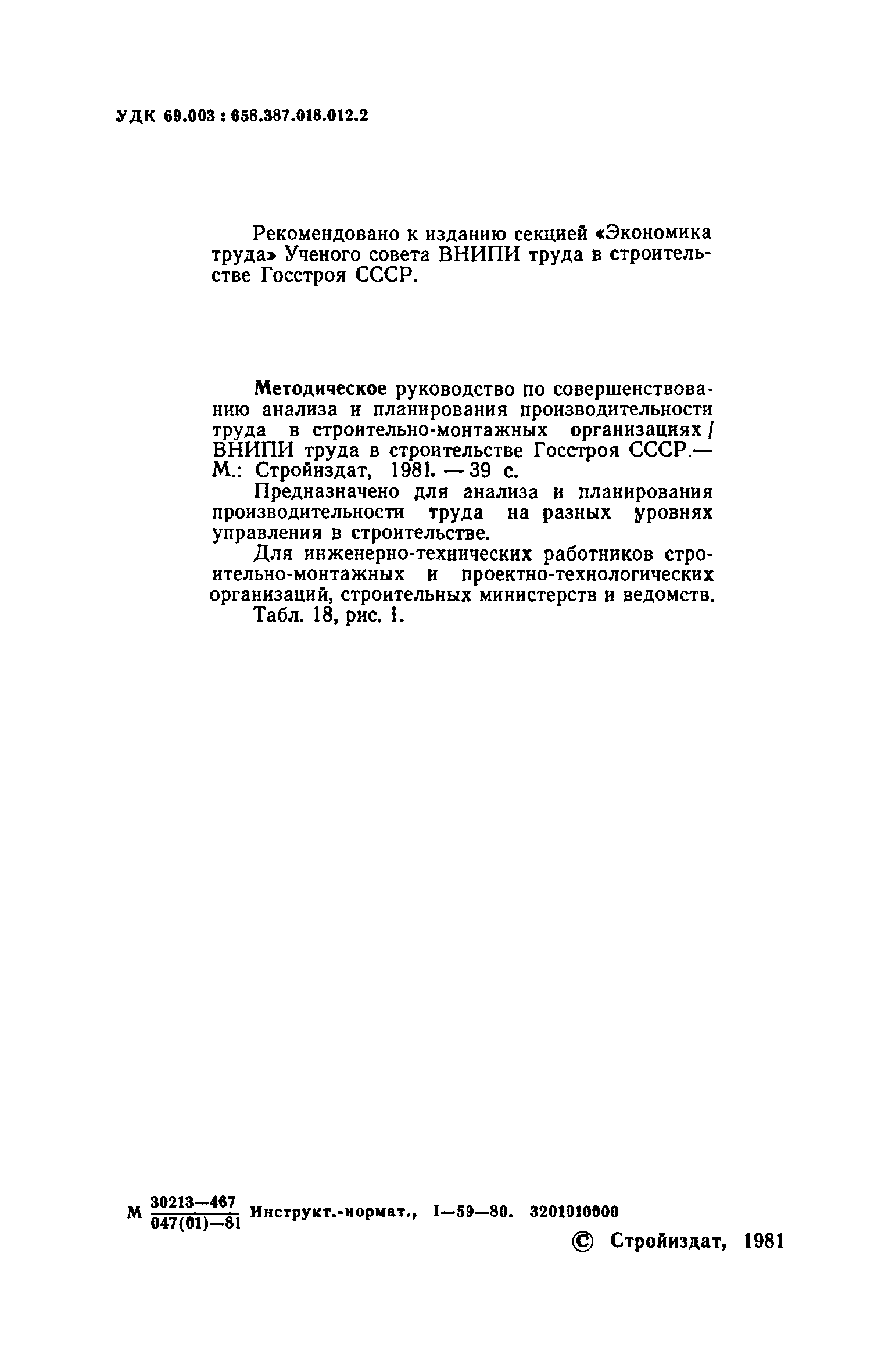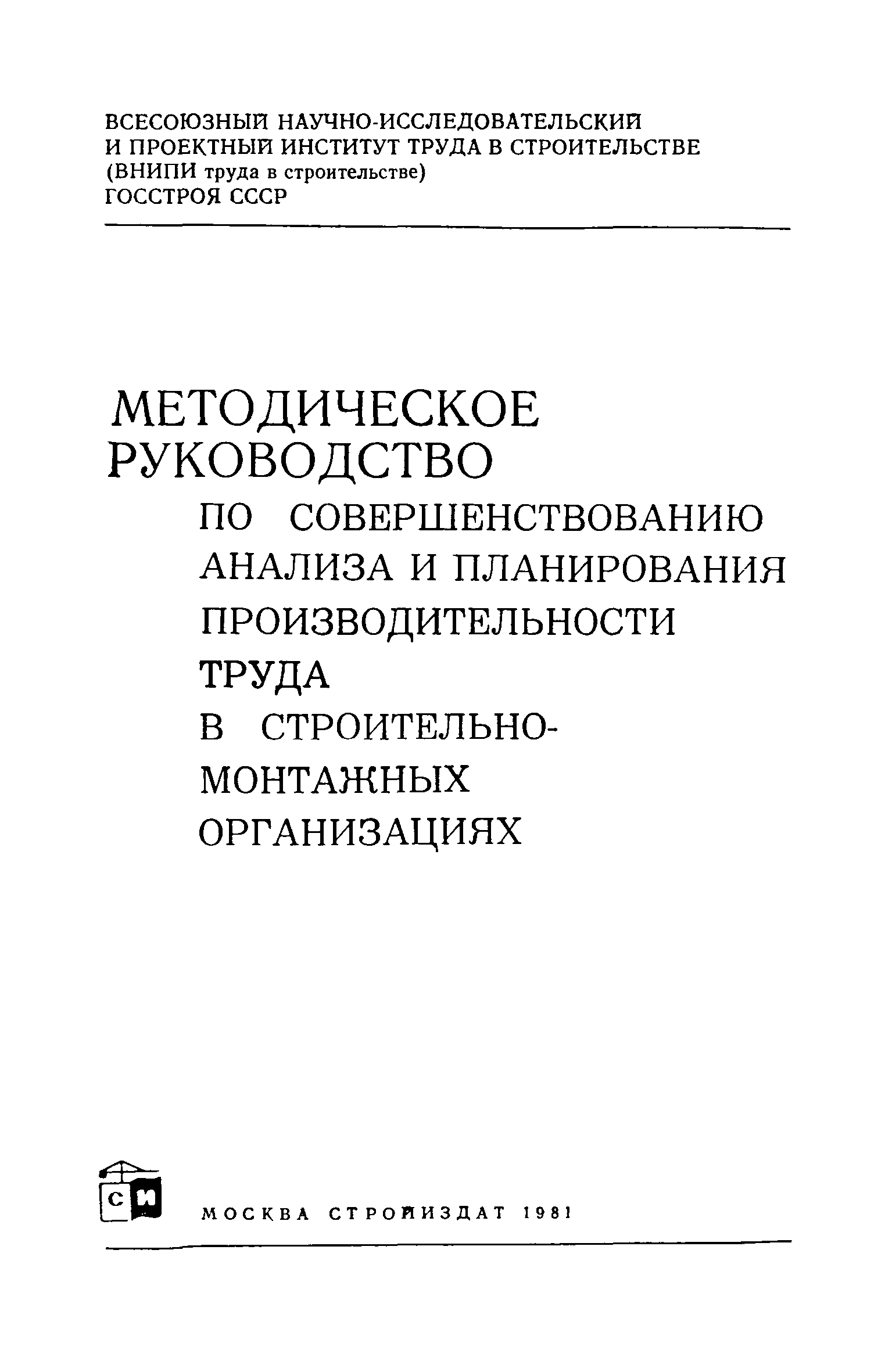 | Название рус.: | Методическое руководство по совершенствованию анализа и планирования производительности труда в строительно-монтажных организациях |