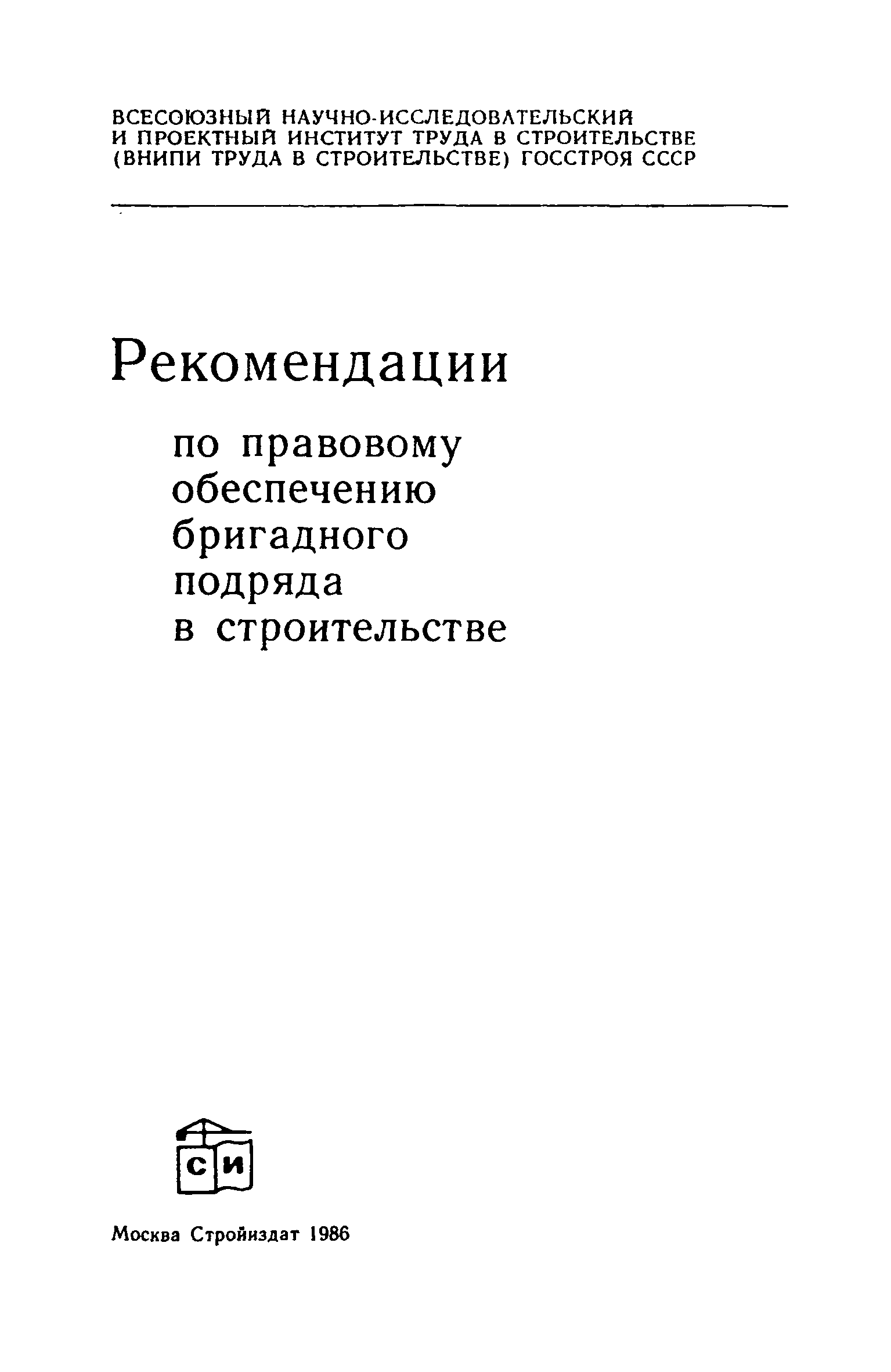 | Название рус.: | Рекомендации по правовому обеспечению бригадного подряда в строительстве |