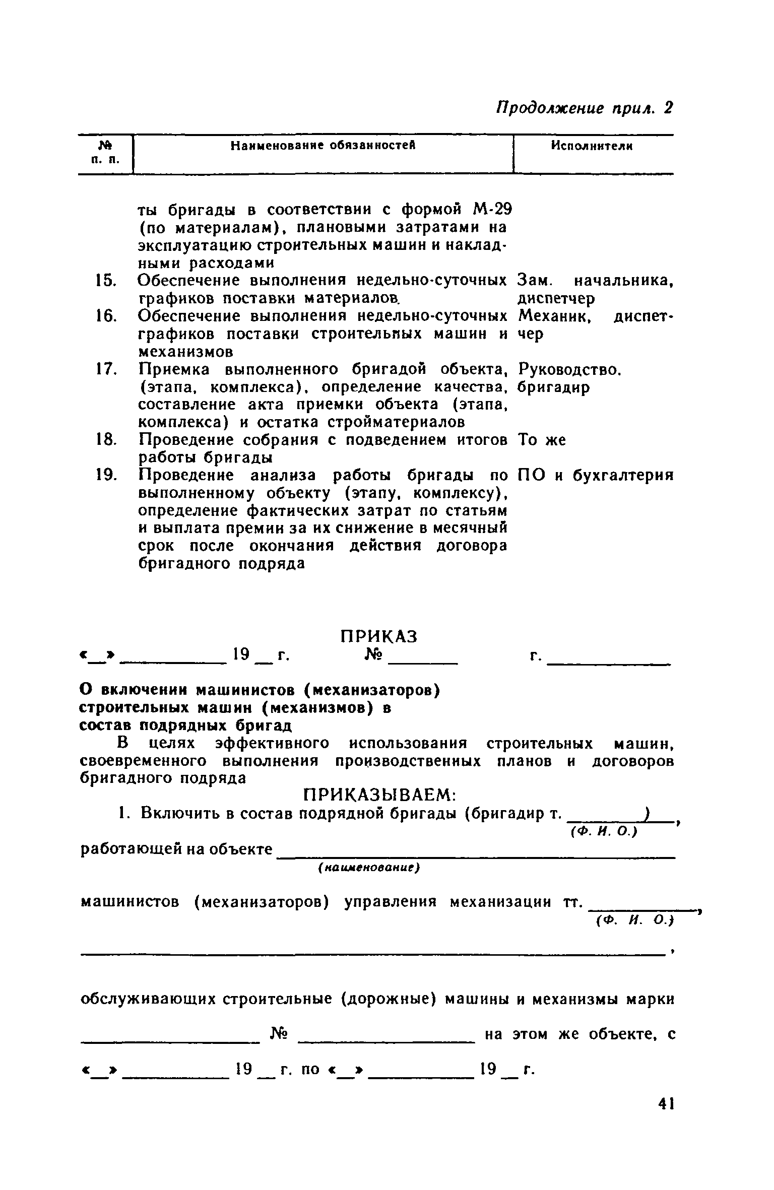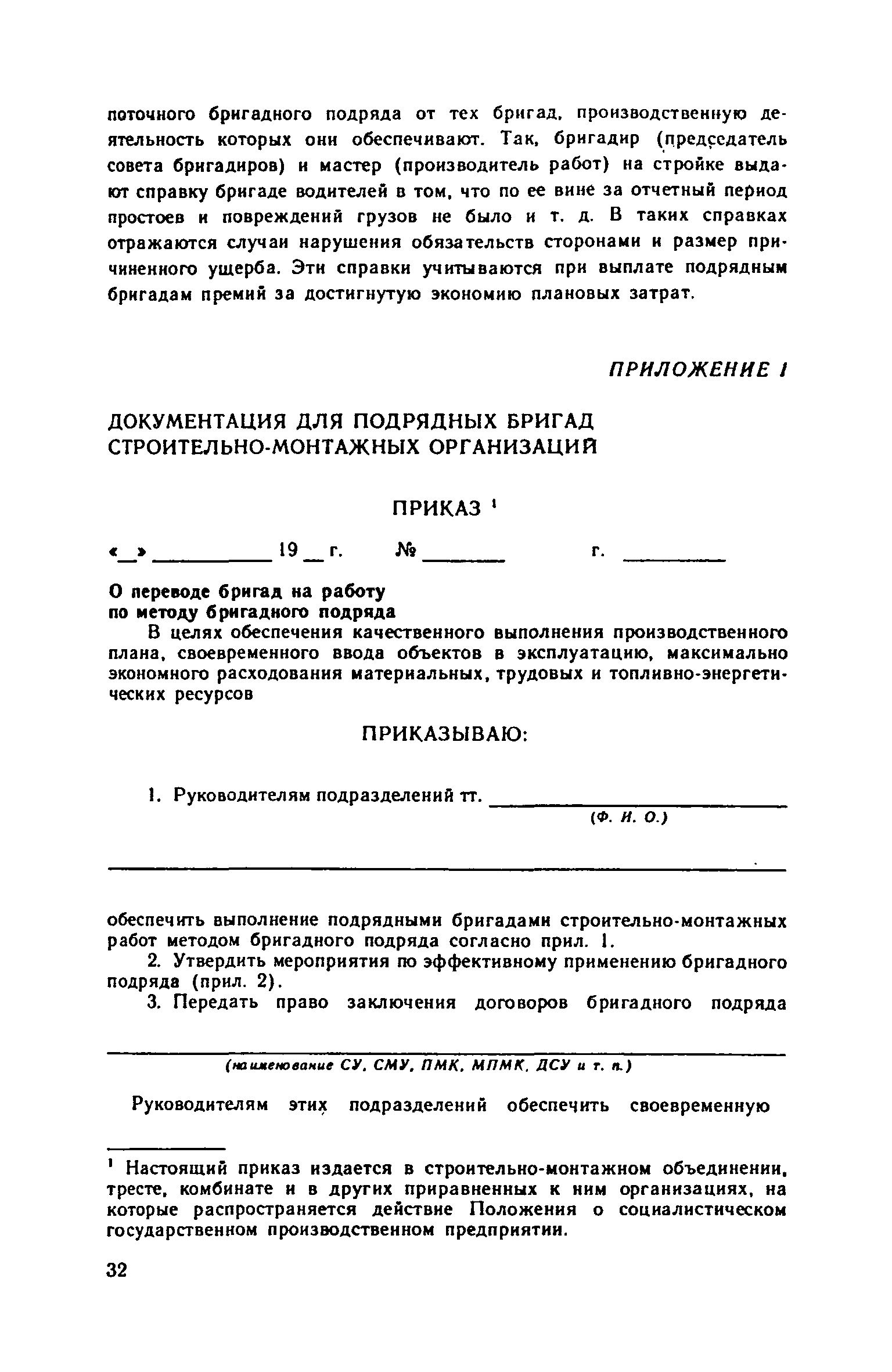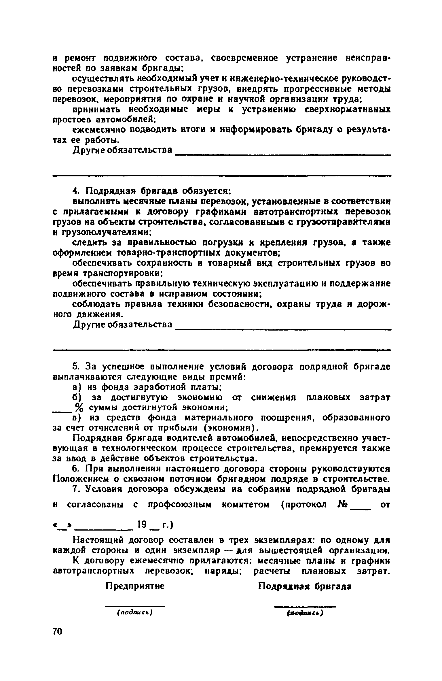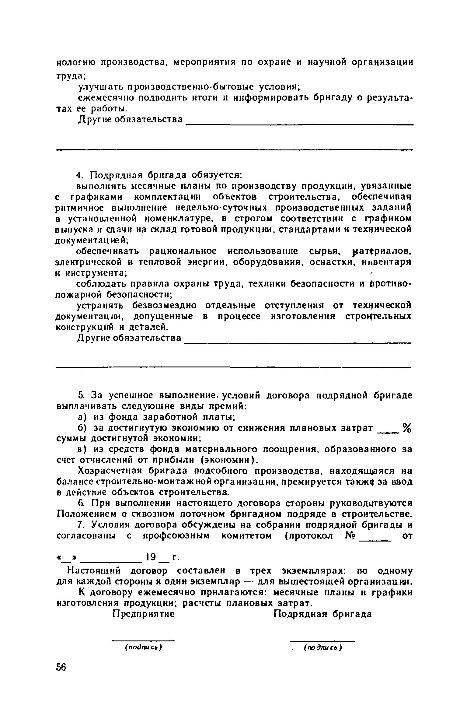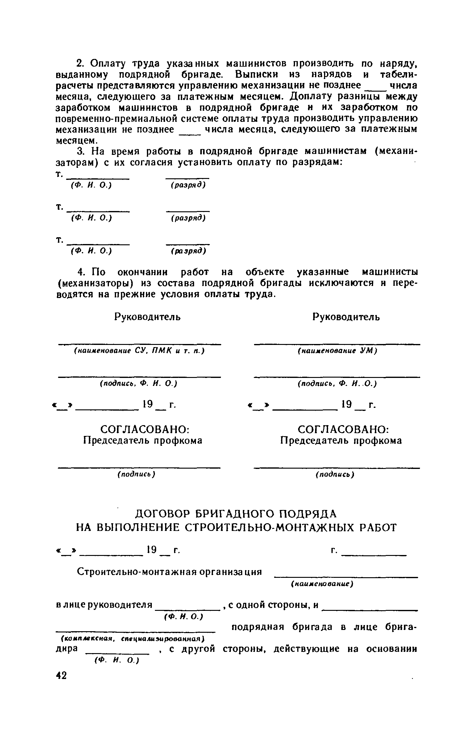 | Оглавление: | Предисловие 1. Общие положения 2. Управление бригадным подрядом в организация (на предприятии) 3. Заключение договоров бригадного подряда 4. Исполнение договоров бригадного подряда 5. Оплата и материальное стимулирование труда 6. Ответственность сторон и рассмотрение споров 7. Особенности правового обеспечения сквозного поточного бригадного подряда Приложение 1. Документация для подрядных бригад строительно-монтажных организаций Приложение 2. Документация для подрядных бригад предприятий стройиндустрии Приложение 3. Документация для подрядных бригад организаций производственно-технологической комплектации Приложение 4. Документация для подрядных бригад автотранспортных предприятий Приложение 5. Документация для подрядных бригад в условиях сквозного поточного бригадного подряда |