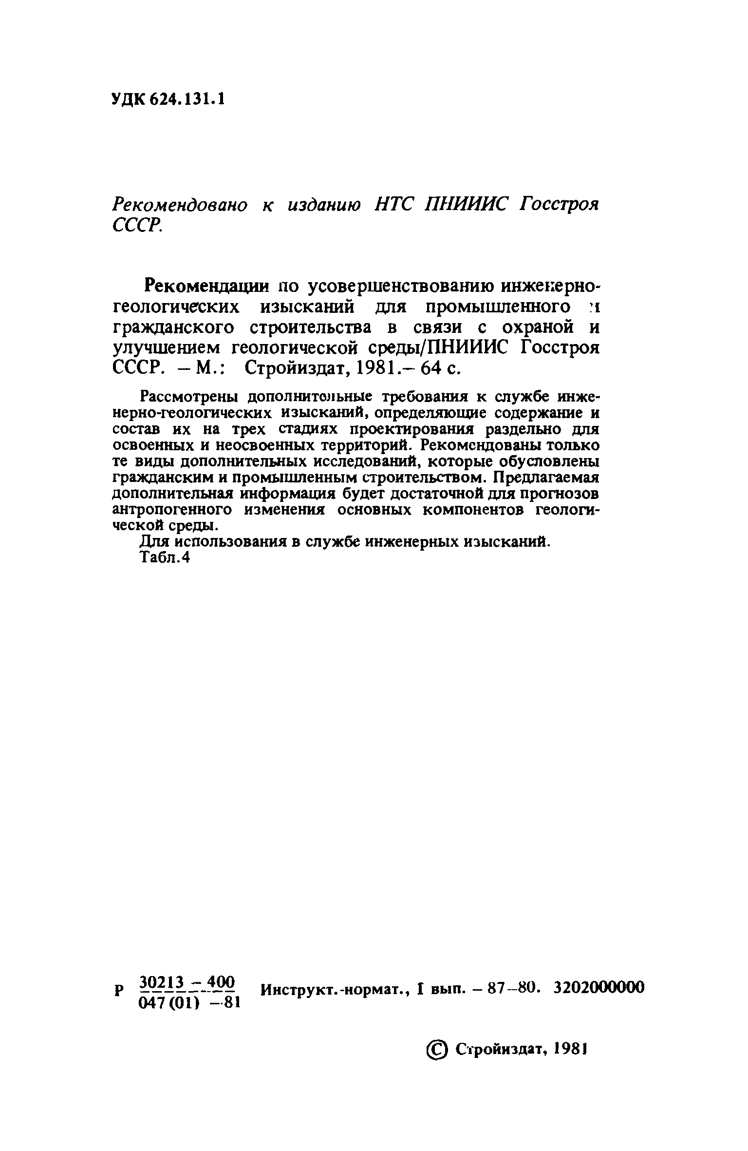 | Название рус.: | Рекомендации по усовершенствованию инженерно-геологических изысканий для промышленного и гражданского строительства в связи с охраной и улучшением геологической среды |