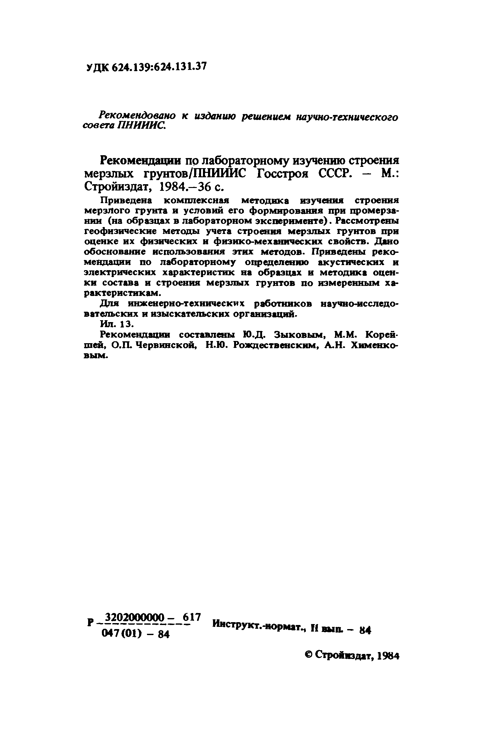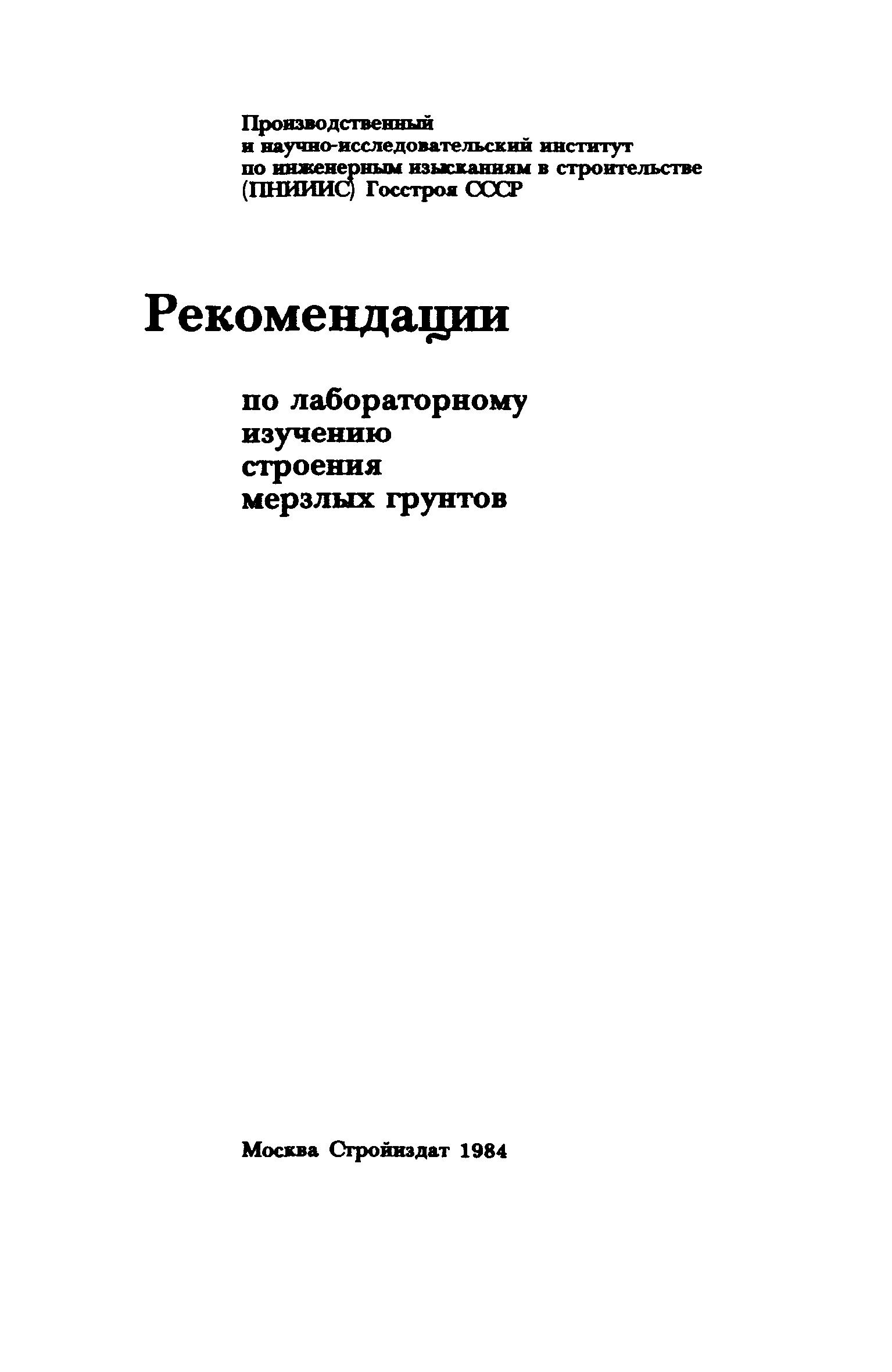 | Название рус.: | Рекомендации по лабораторному изучению строения мерзлых грунтов |