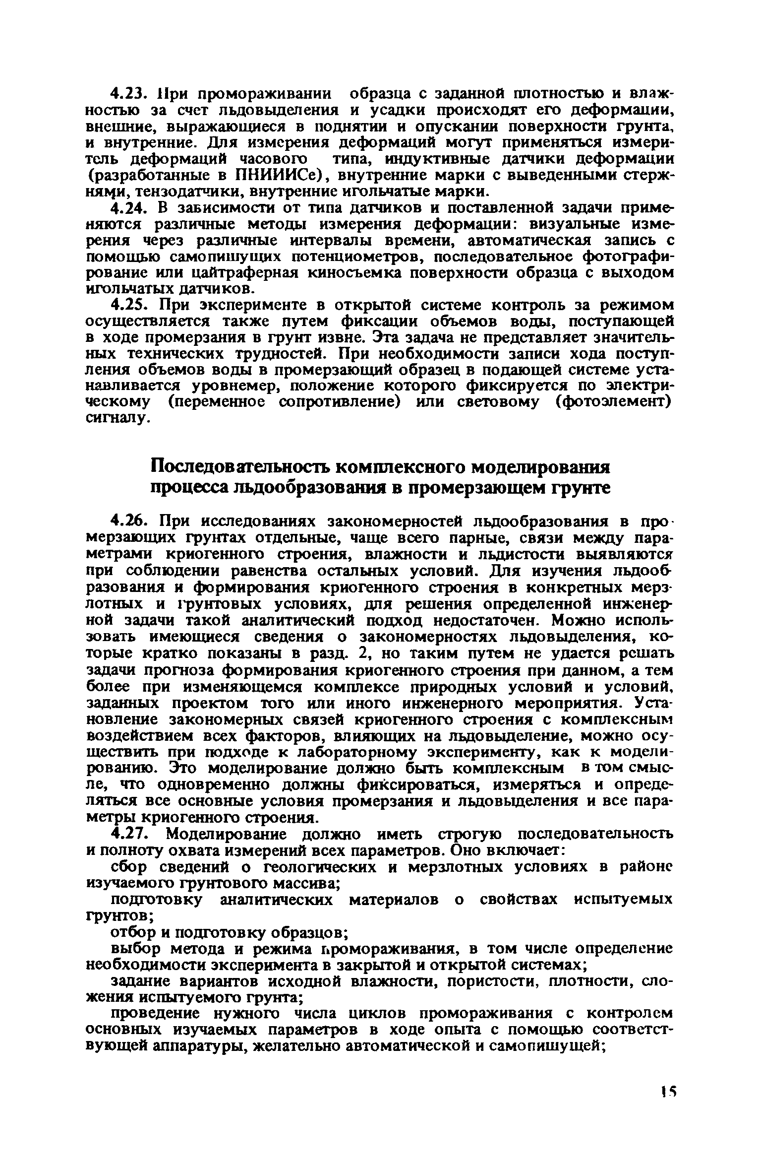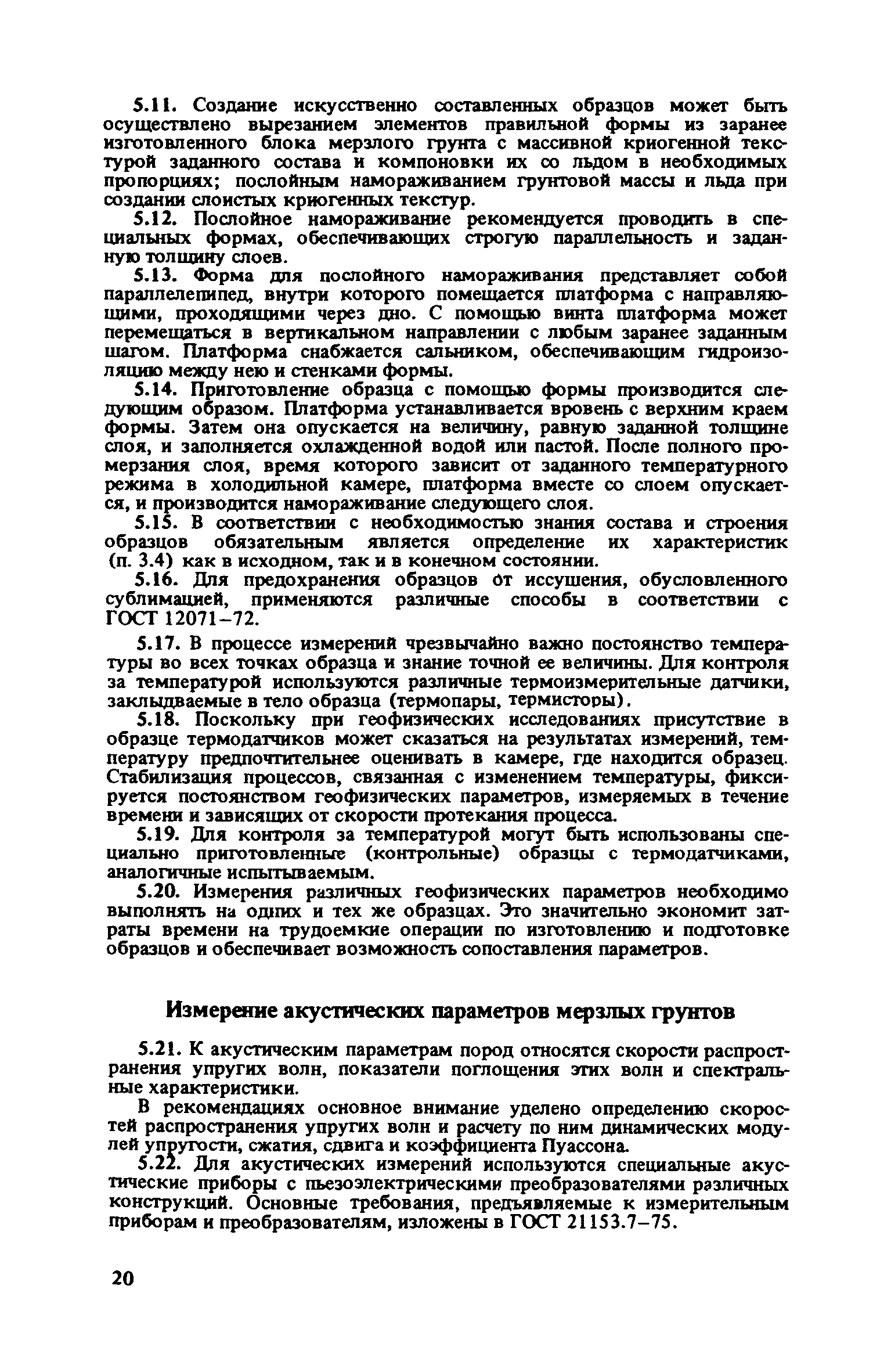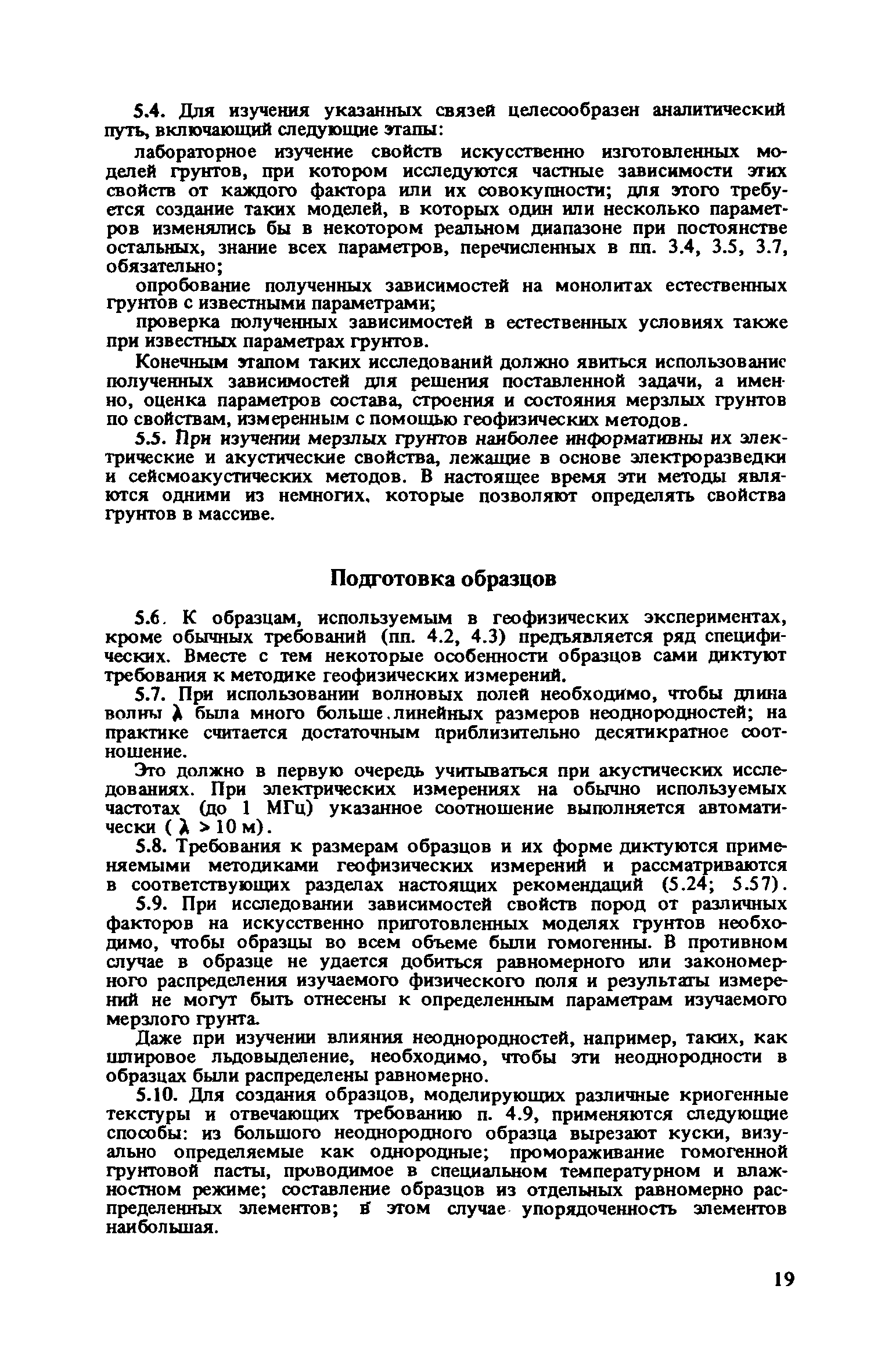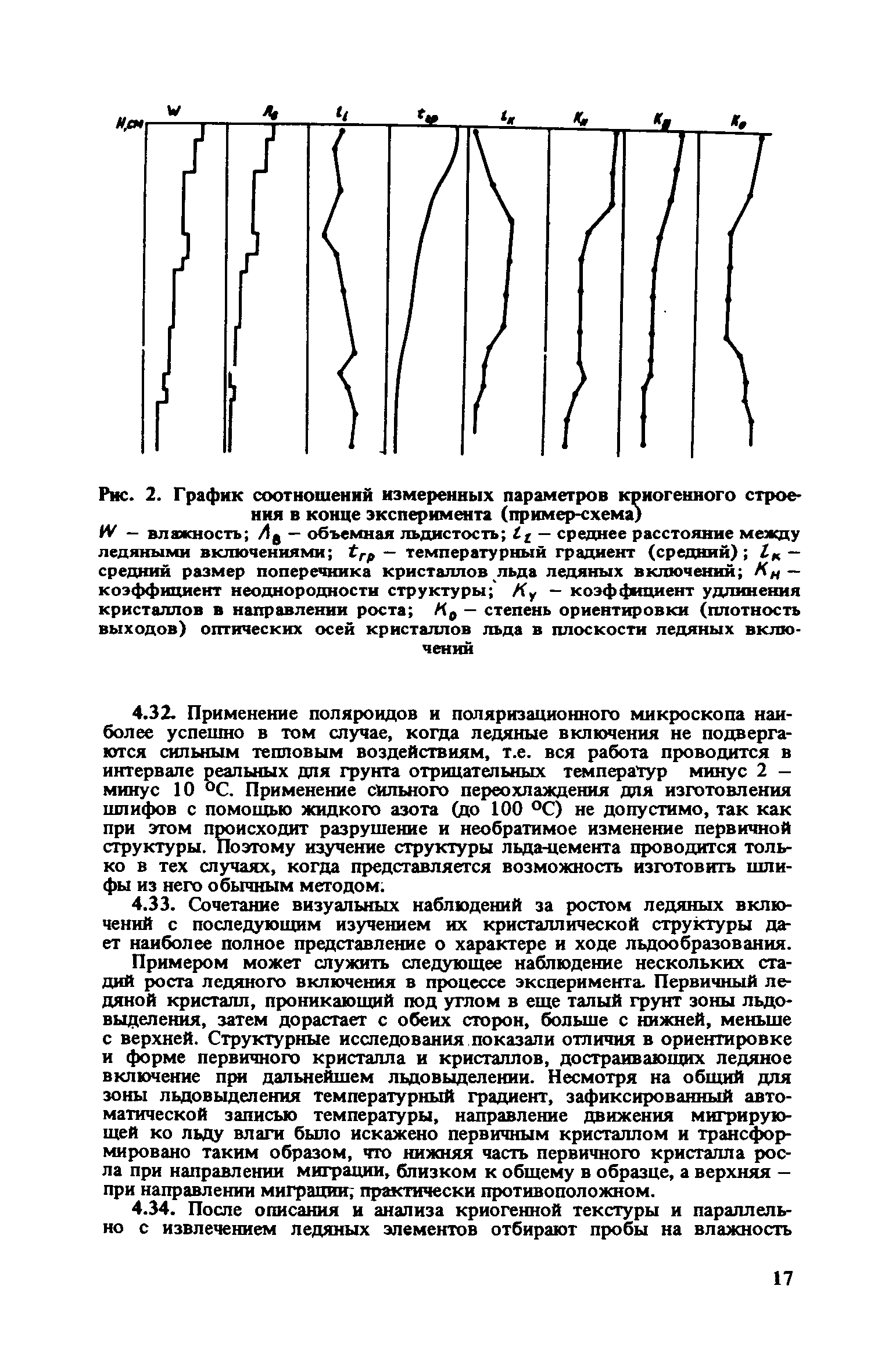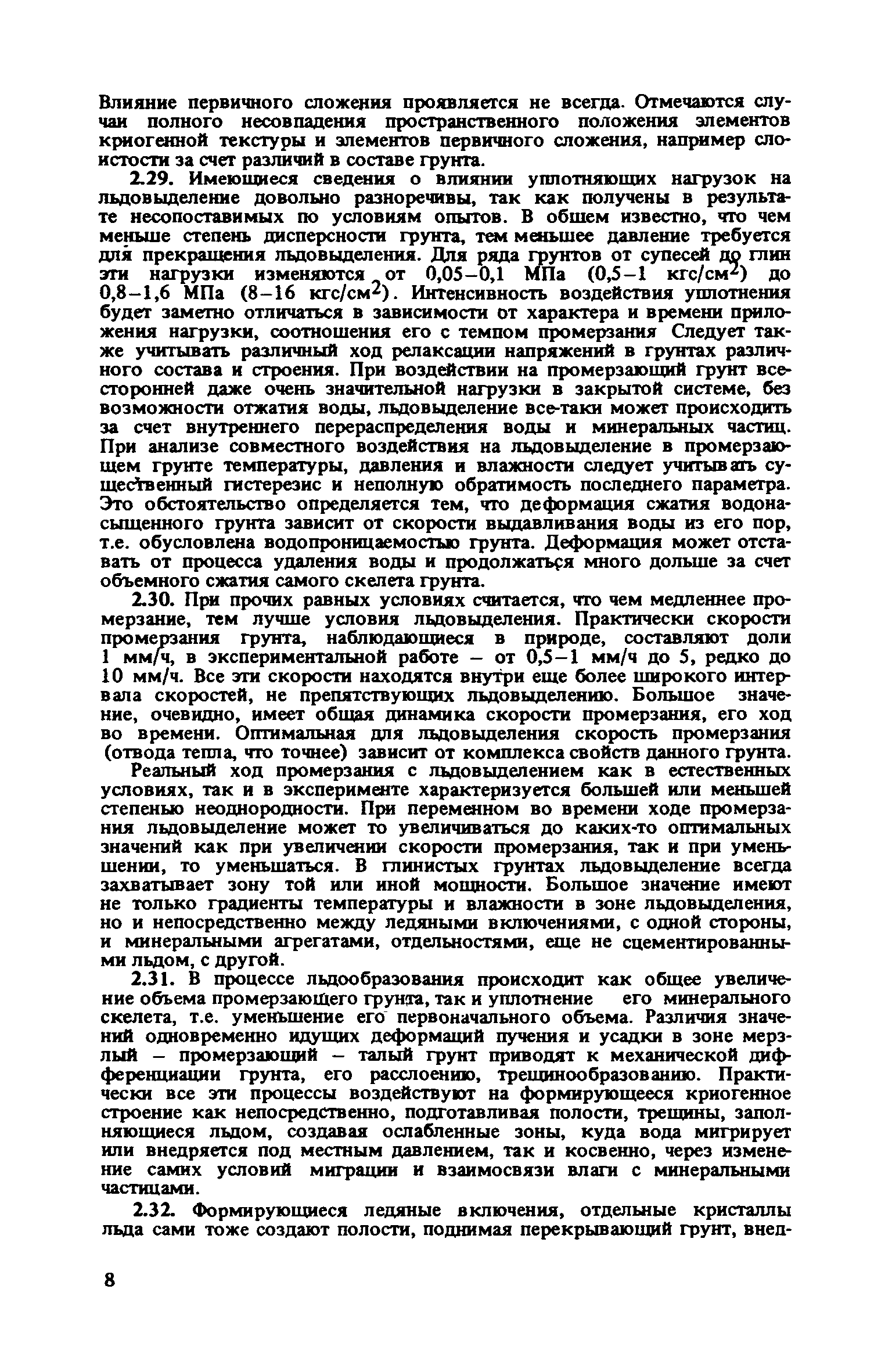 | Оглавление: | 1. Общие положения 2. Формирование строения мерзлого грунта Основные понятия и определения Физические условия формирования криогенного строения 3. Основные параметры, определяемые при лабораторных исследованиях 4. Методика экспериментального изучения формирования криогенного строения грунтов Отбор и подготовка образцов Основные требования к производству и технике экспериментального промораживания образцов грунта Последовательность комплексного моделирования процесса льдообразования в промерзающем грунте Изучение криогенного строения 5. Геофизические исследования Общие положения Подготовка образцов Измерение акустических параметров мерзлых грунтов Акустическое просвечивание Акустическое профилирование Измерение электрических параметров мерзлых грунтов Изучение состава и криогенного строения мерзлого грунта с помощью геофизических методов |