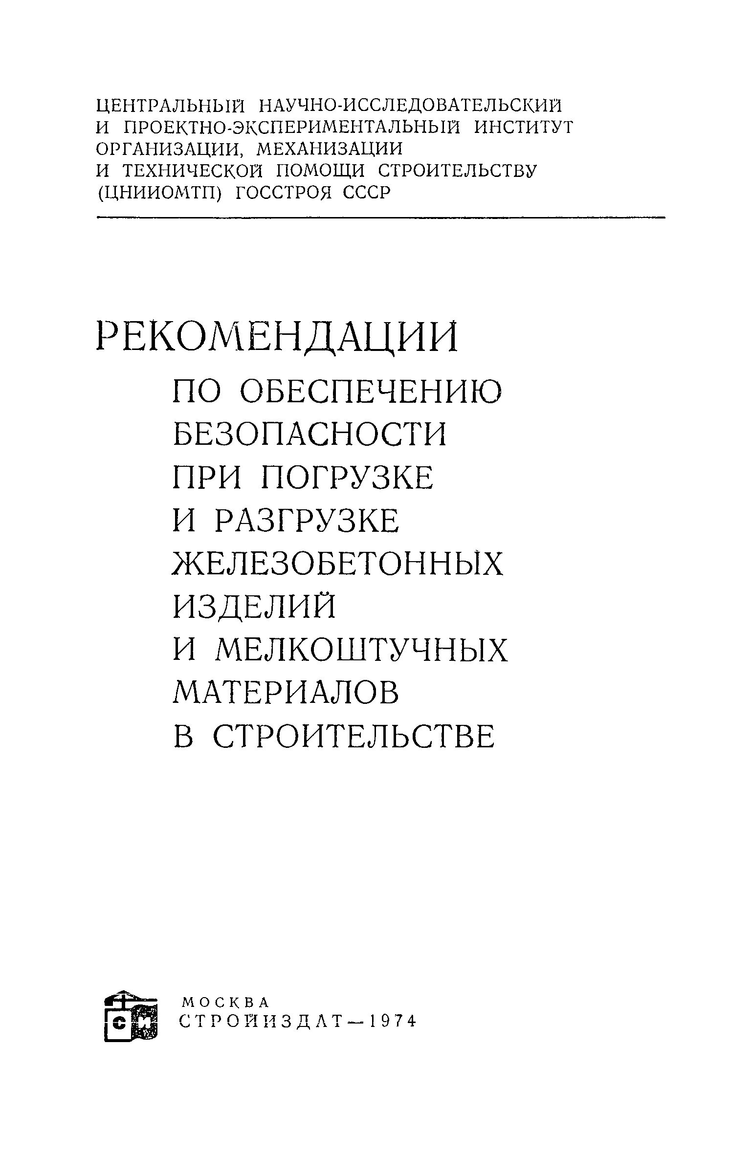 | Название рус.: | Рекомендации по обеспечению безопасности при погрузке и разгрузке железобетонных изделий и мелкоштучных материалов в строительстве |