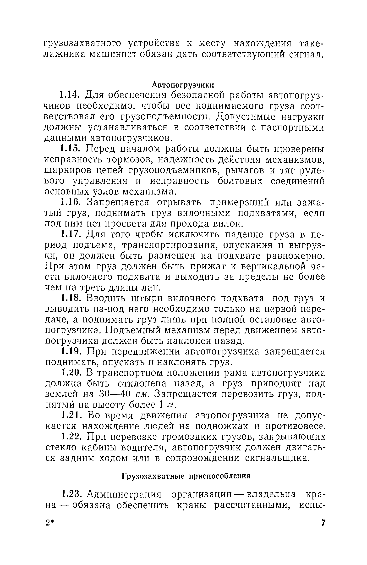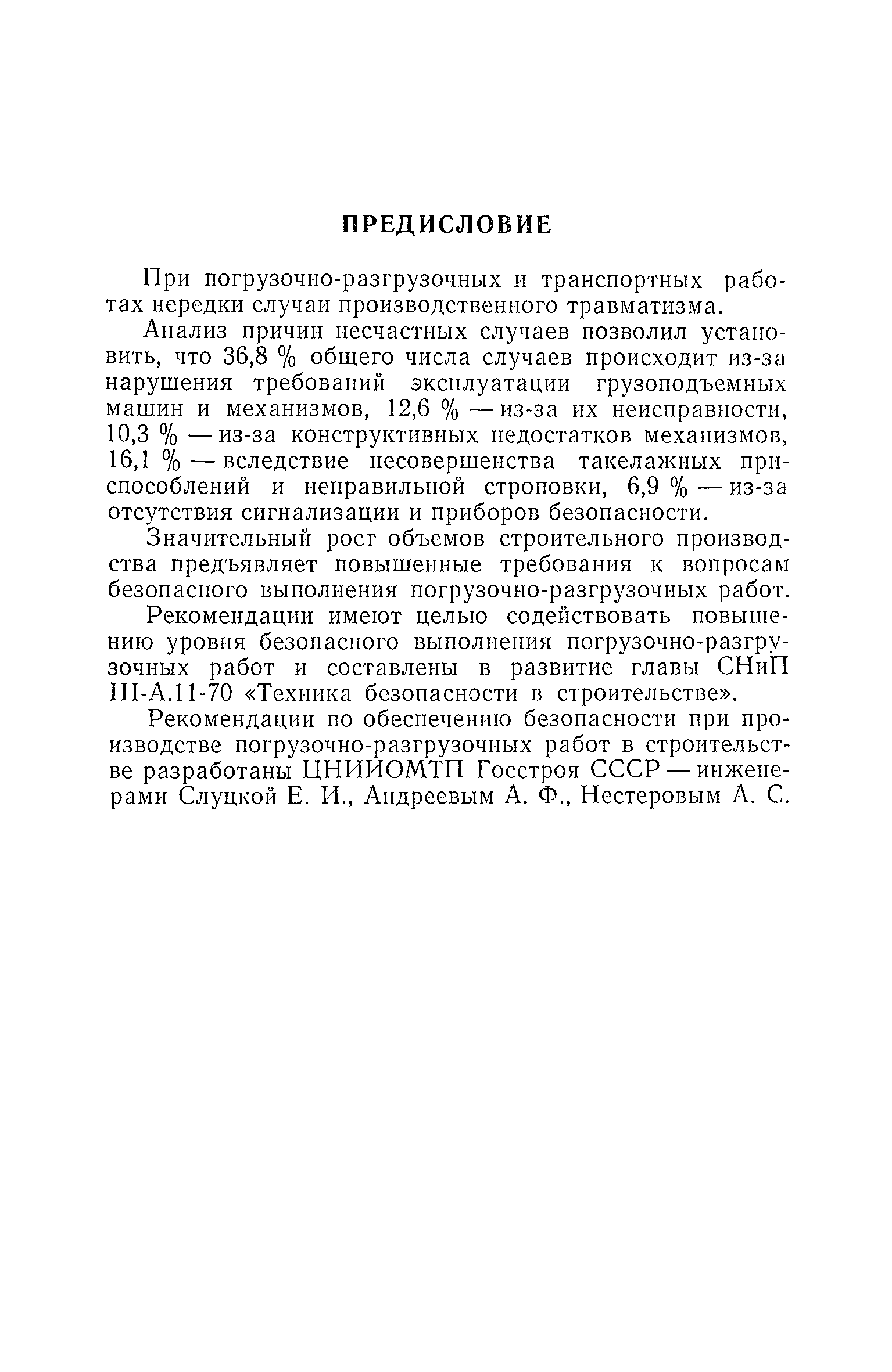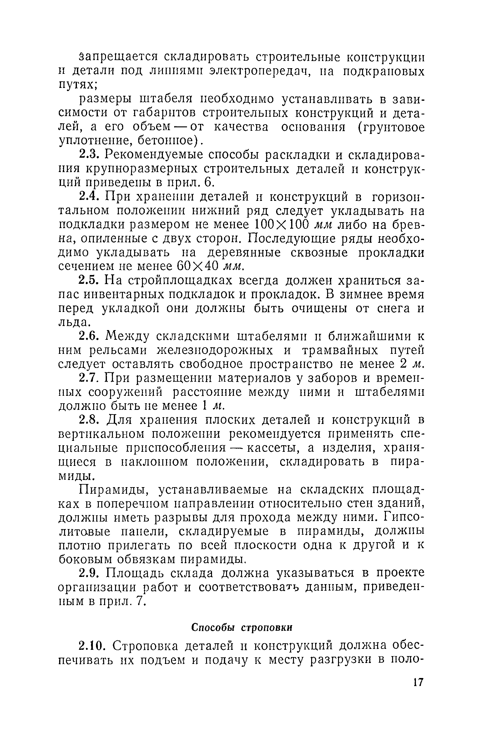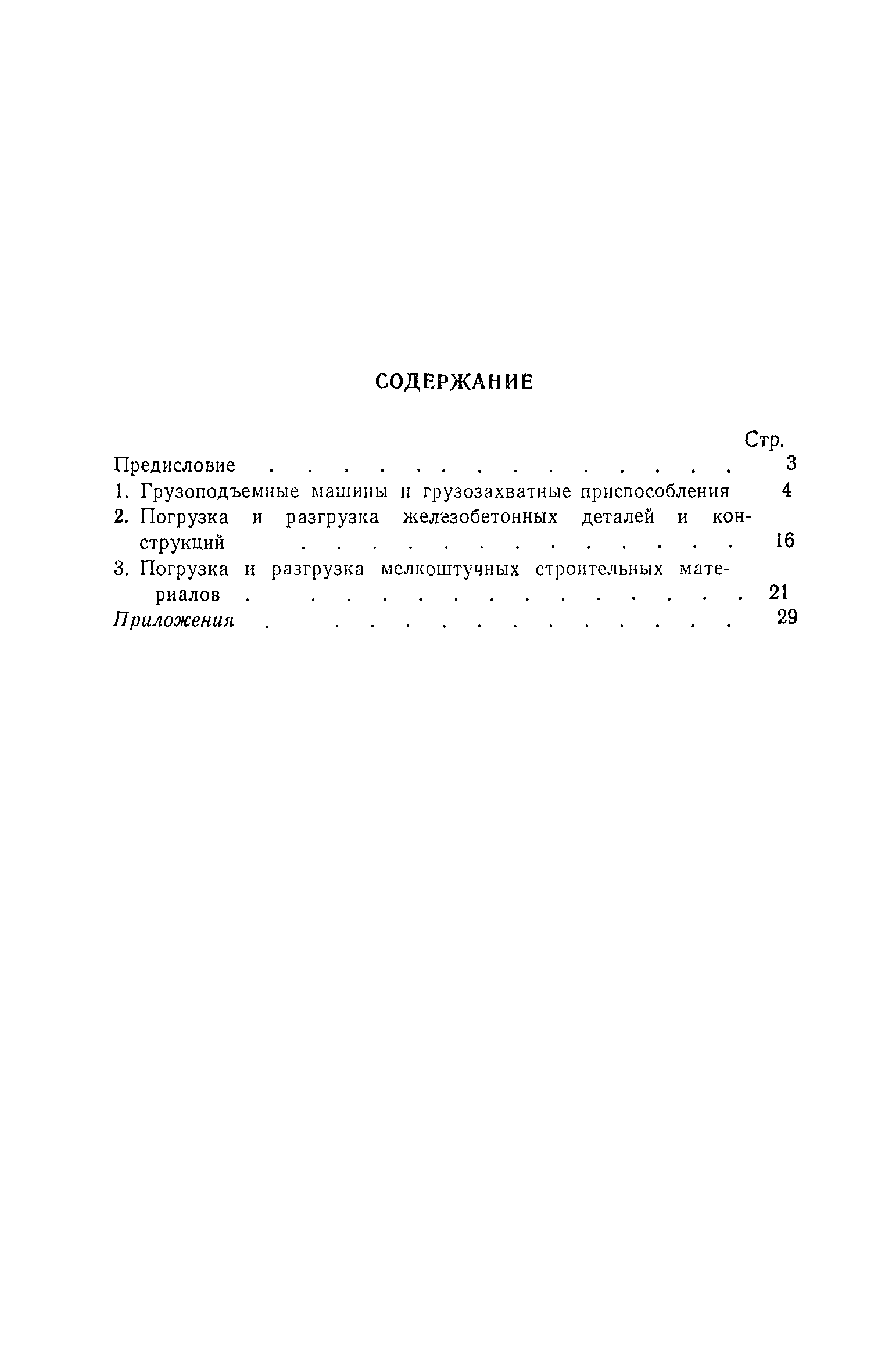 | Оглавление: | Предисловие 1. Грузоподъемные машины и грузозахватные приспособления 2. Погрузка и разгрузка железобетонных деталей и конструкций 3. Погрузка и разгрузка мелкоштучных строительных материалов Приложение 1. Наименьшее допустимое расстояние по воздуху от подъемной или выдвижной части машины или от груза до провода под напряжением Приложение 2. Нагрузка на ветви канатных стропов Приложение 3. Наименьший допускаемый коэффициент запаса прочности стальных канатов Приложение 4. Число обрывов проволок по дине одного шага свивки каната, при котором канат должен быть забракован Приложение 5. Допуски шероховатости в мм Приложение 6. Примеры складирования Приложение 7. Допускаемая общая высота штабеля |