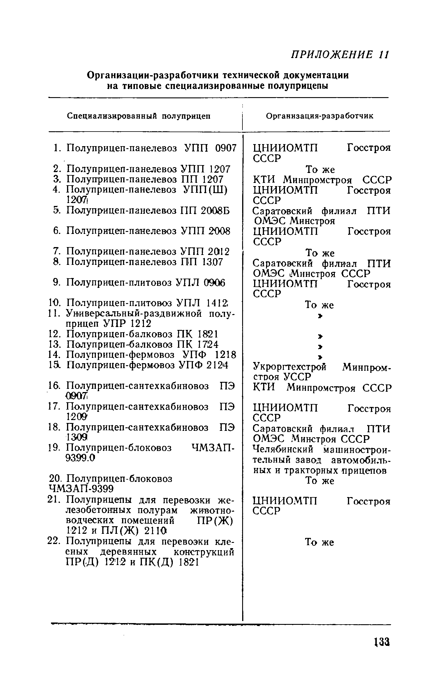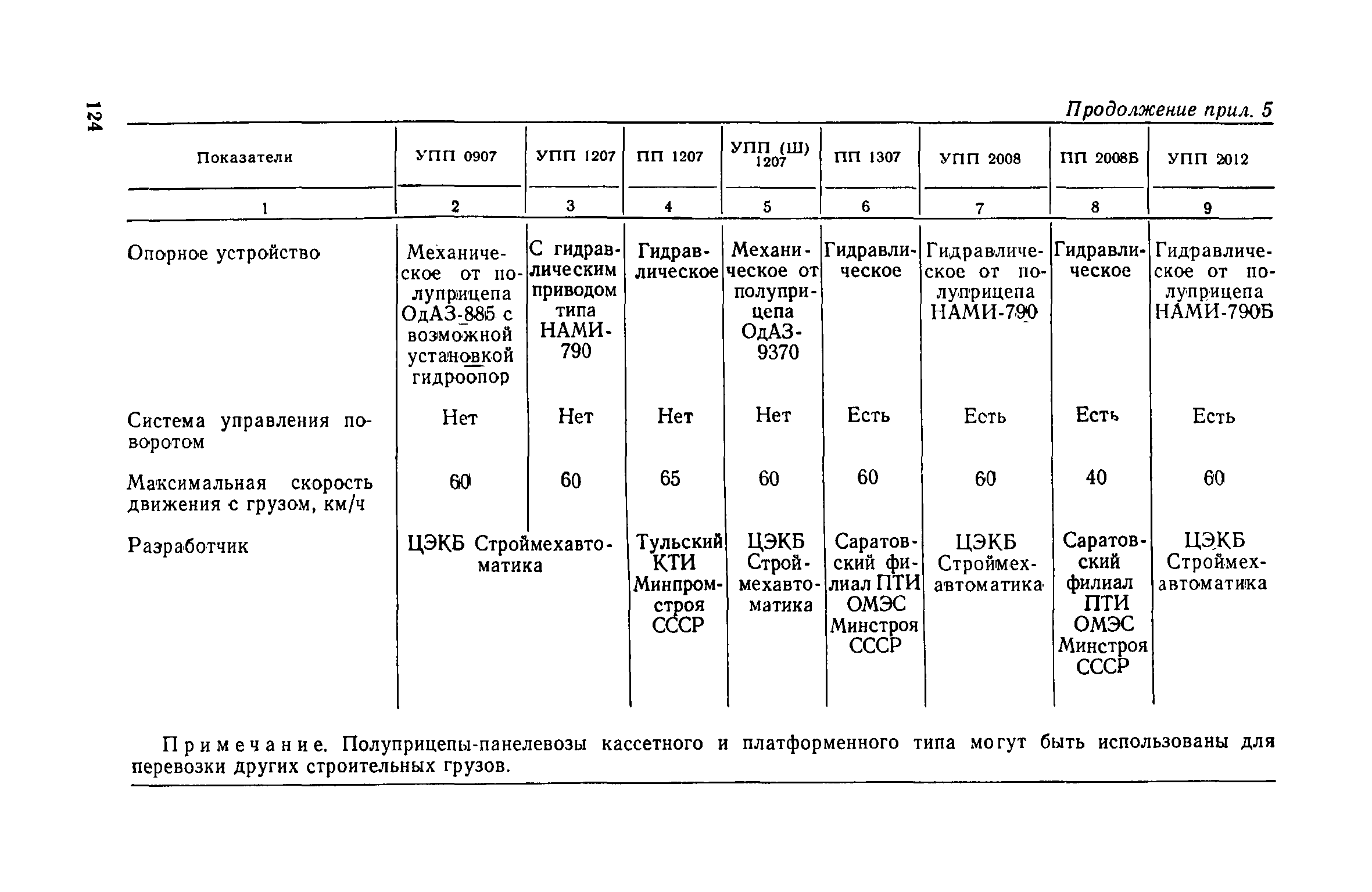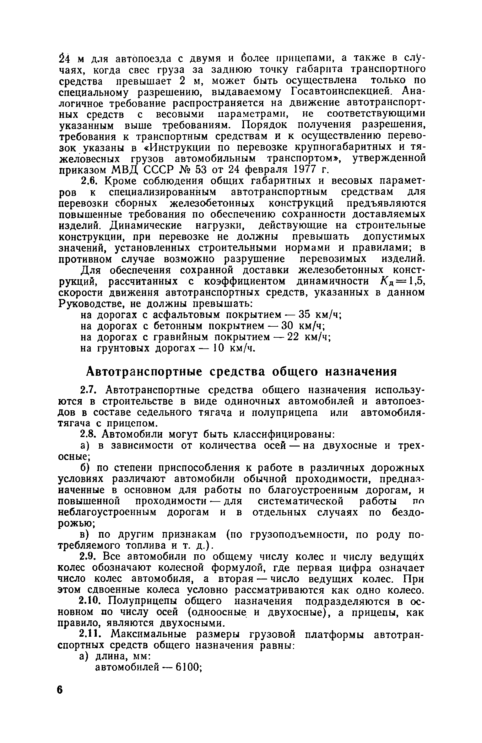 Для инженерно-технических работников, занимающихся вопросами перевозки и создания строительных конструкций, а также разработкой специализированных автотранспортных средств для их доставки. | | Оглавление: | 1. Общие положения 2. Автотранспортные средства для перевозки строительных конструкций Общие требования к автотранспортным средствам Автотранспортные средства общего назначения Специализированные автотранспортные средства Способы организации перевозки строительных конструкций и подбор автотранспортных средств Определение производительности автотранспортных средств и себестоимости перевозки строительных конструкций 3. Перевозка строительных конструкций Общие положения Стеновые панели Стеновые и перегородочные панели для цилиндрических и прямоугольных сооружений Диафрагмы жесткости Панели и плиты перекрытий и покрытий Колонны Сваи Балки и ригели Стойки опор воздушных линий электропередач ВЛ 35 кВ Фермы Объемные блоки Санитарно-технические кабины. Блоки шахт лифтов Железобетонные полурамы животноводческих помещений Клееные деревянные несущие конструкции для сельского строительства Приложение 1. Техническая характеристика грузовых автомобилей с бортовой платформой Приложение 2. Техническая характеристика прицепов общего назначения Приложение 3. Техническая характеристика седельных тягачей Приложение 4. Техническая характеристика полуприцепов общего назначения Приложение 5. Техническая характеристика полуприцепов панелевозов Приложение 6. Техническая характеристика полуприцепов плитовозов и полуприцепов-балковозов Приложение 7. Техническая характеристика полуприцепов фермовозов Приложение 8. Техническая характеристика полуприцепов сантехкабиновозов Приложение 9. Техническая характеристика полуприцепов блоковозов Приложение 10. Техническая характеристика полуприцепов для перевозки железобетонных полурам животноводческих помещений Приложение 11. Организации-разработчики технической документации на типовые специализированные полуприцепы Приложение 12. Себестоимость перевозки 1 т строительных конструкций автотранспортными средствами | | Разработан: | ЦНИИОМТП Госстроя СССР