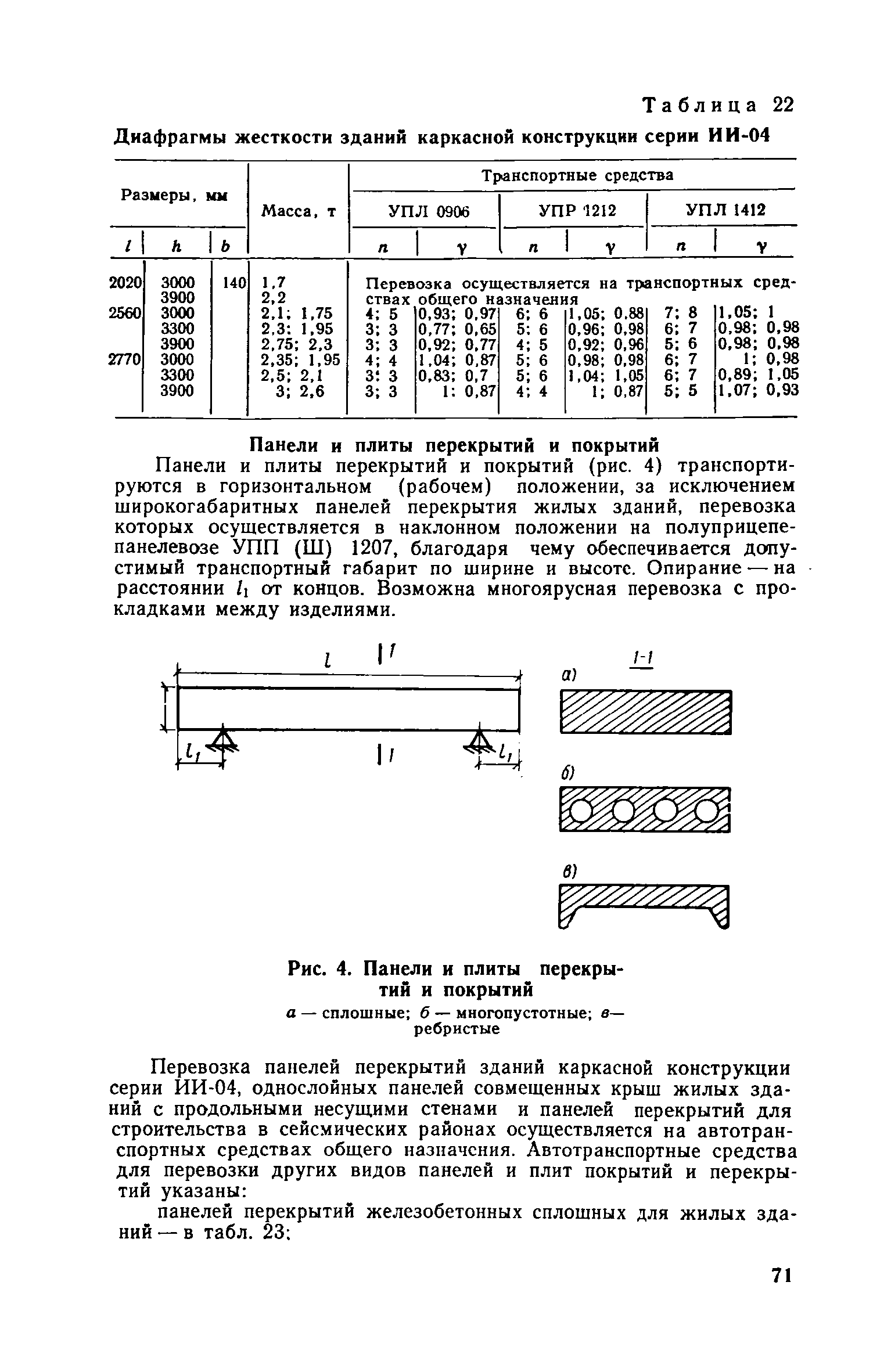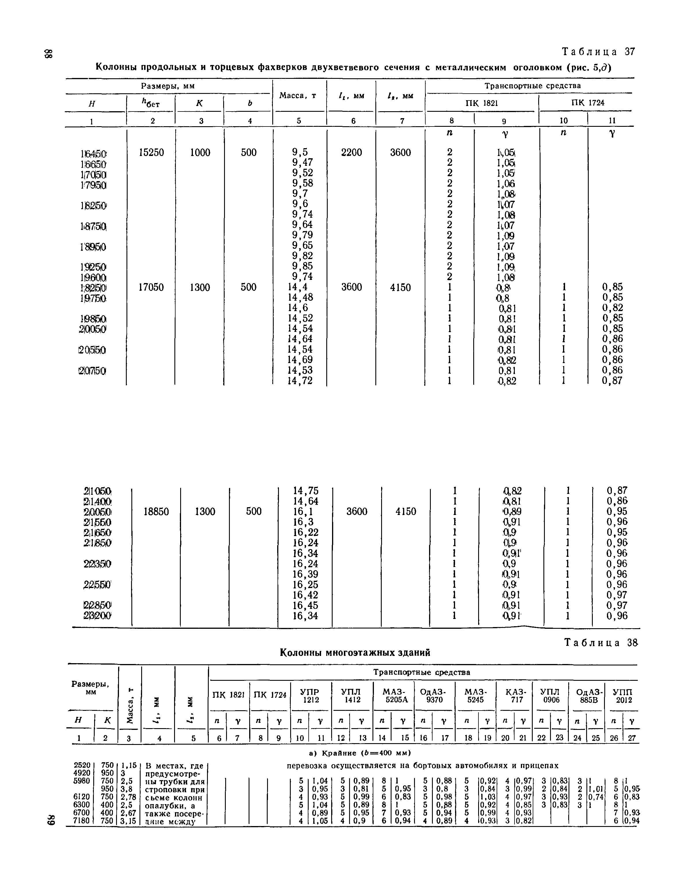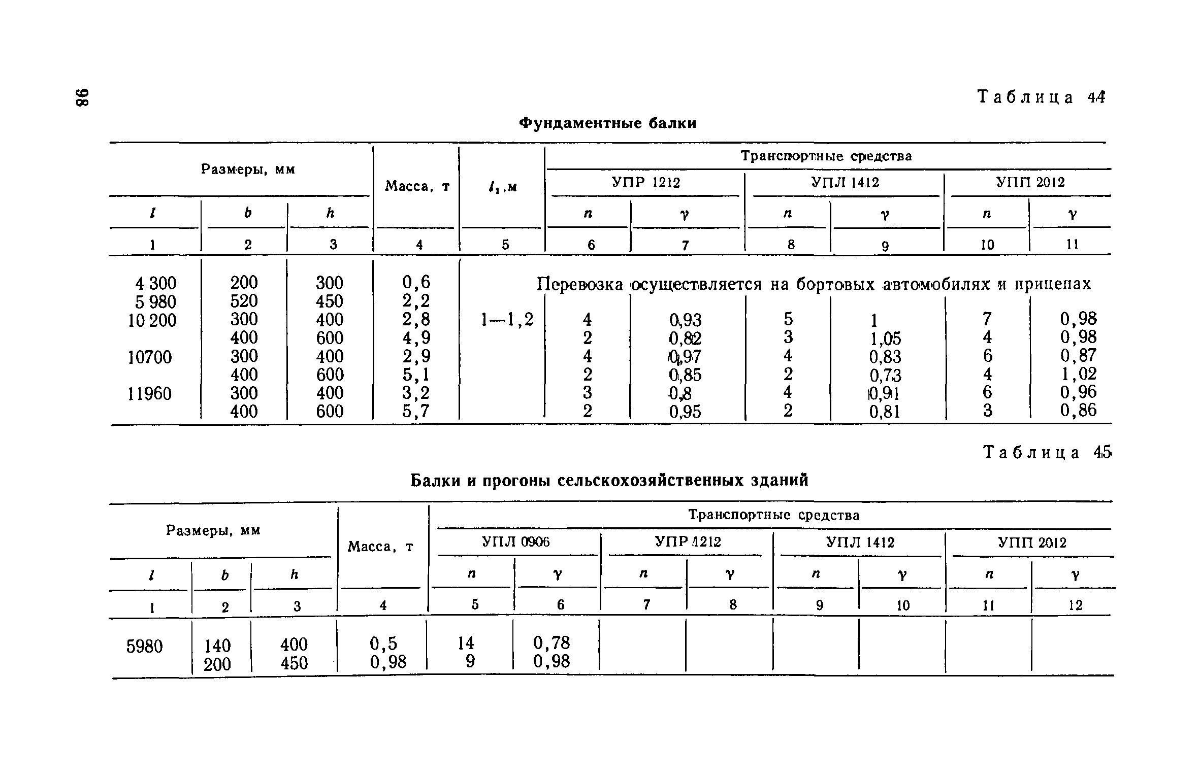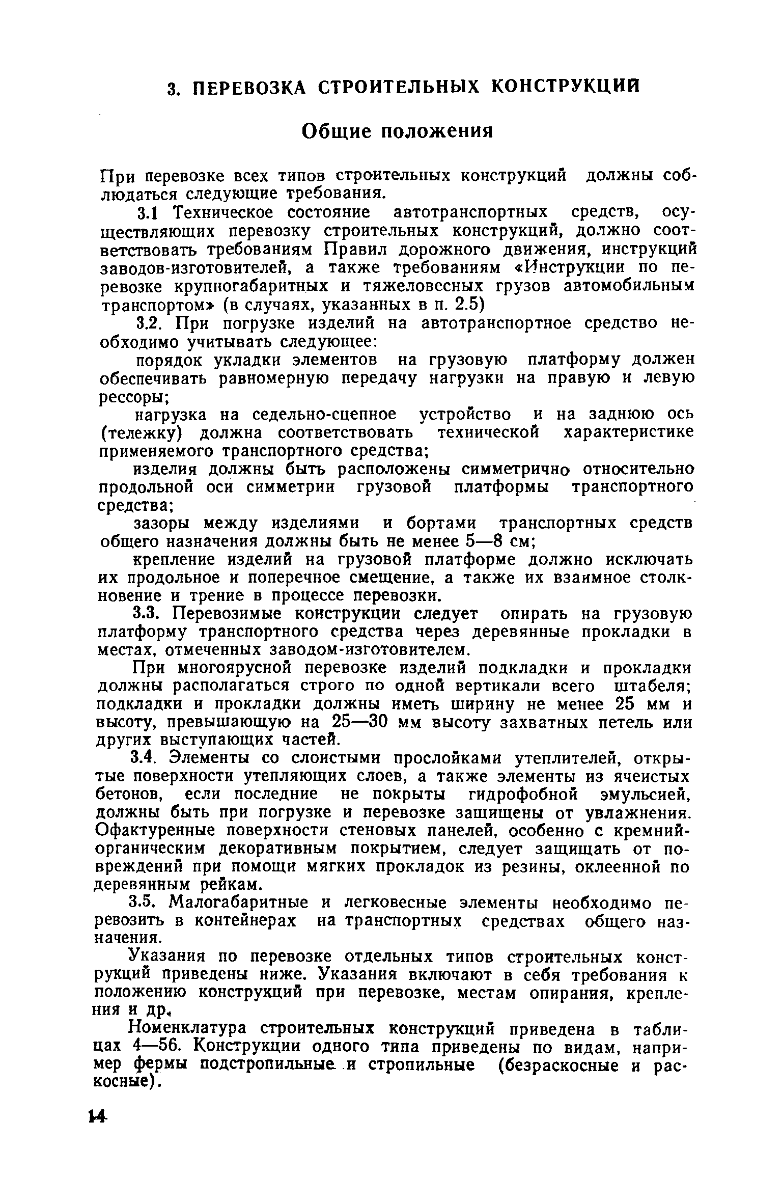Руководство по перевозке автомобильным транспортом строительных конструкций| Статус: | справочные материалы, мп, тпр | | Название рус.: | Руководство по перевозке автомобильным транспортом строительных конструкций | | Дата добавления в базу: | 01.10.2014 | | Дата актуализации: | 01.01.2021 | | Область применения: | В документе приведены указания по перевозке строительных конструкций для жилищного, промышленного и сельскохозяйственного строительства (стеновых панелей, панелей и плит покрытий и перекрытий, диафрагм жесткости, колонн, свай, балок и ригелей, ферм, объемных блоков, санитарно-технических кабин, блоков шахтлифтов, стоек опор воздушных линий электропередач, полурам животноводческих помещений и деревянных клееных конструкций для сельского строительства). Содержит требования к положению изделий при перевозке, местам опирания, крепления и т. д. Для каждого типо-размера конструкций, указаны автотранспортные средства, на которых возможна их перевозка, и количество перевозимых изделий. Приведены данные по себестоимости перевозки строительных конструкций различными автотранспортными средствами.