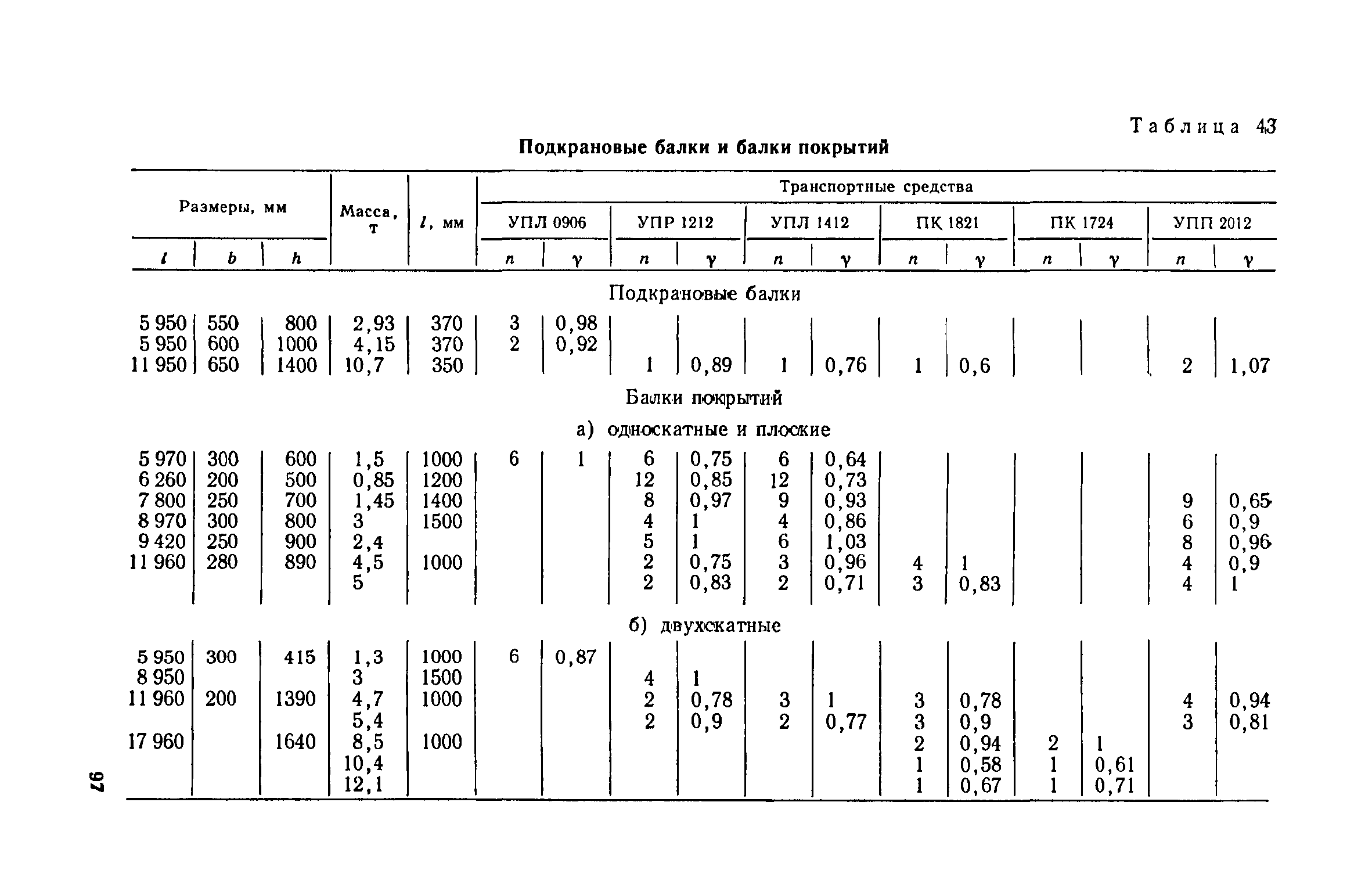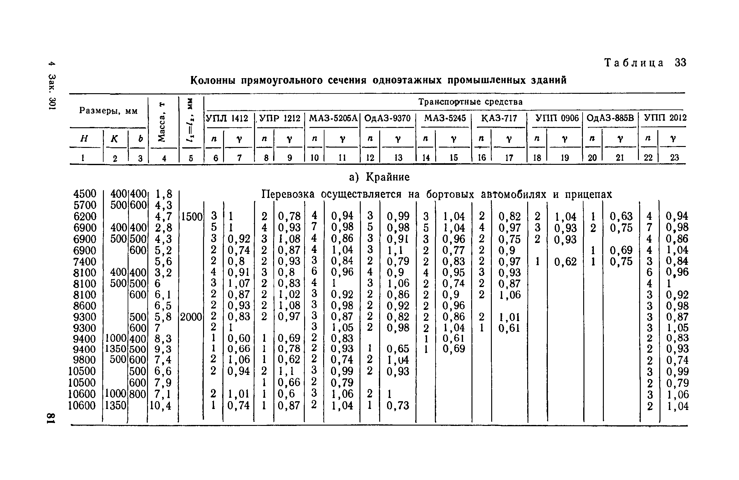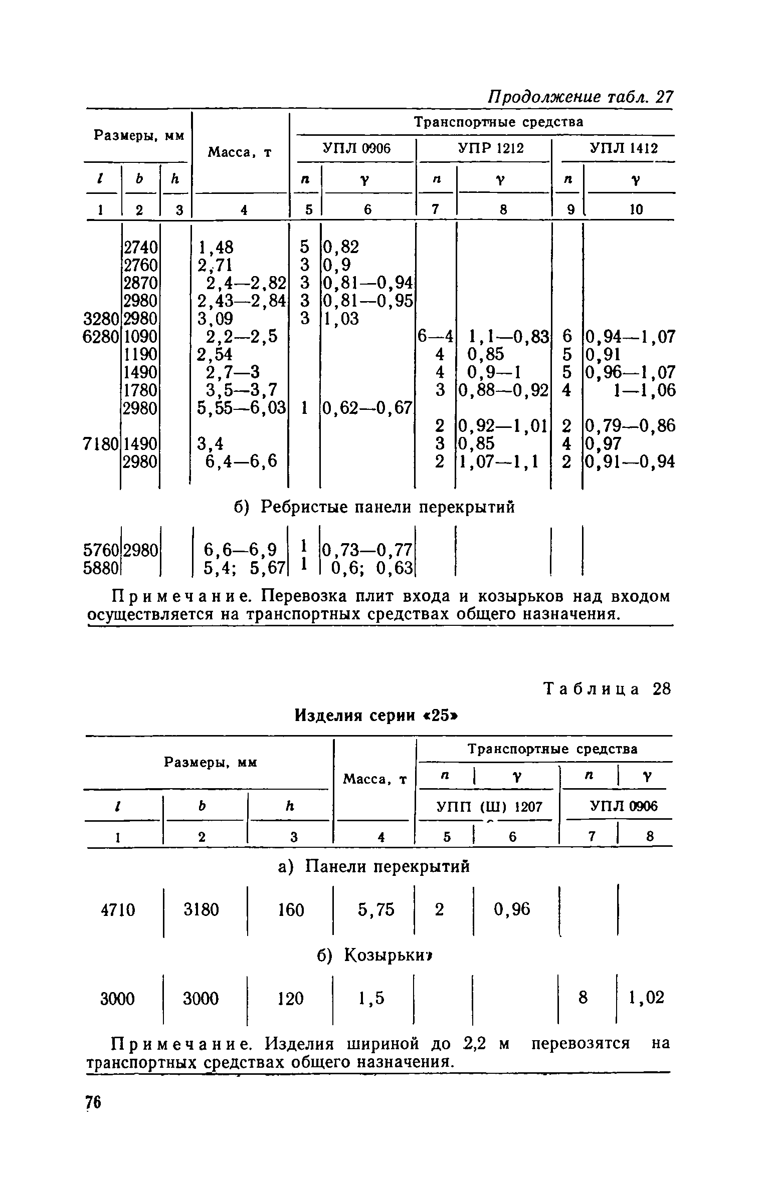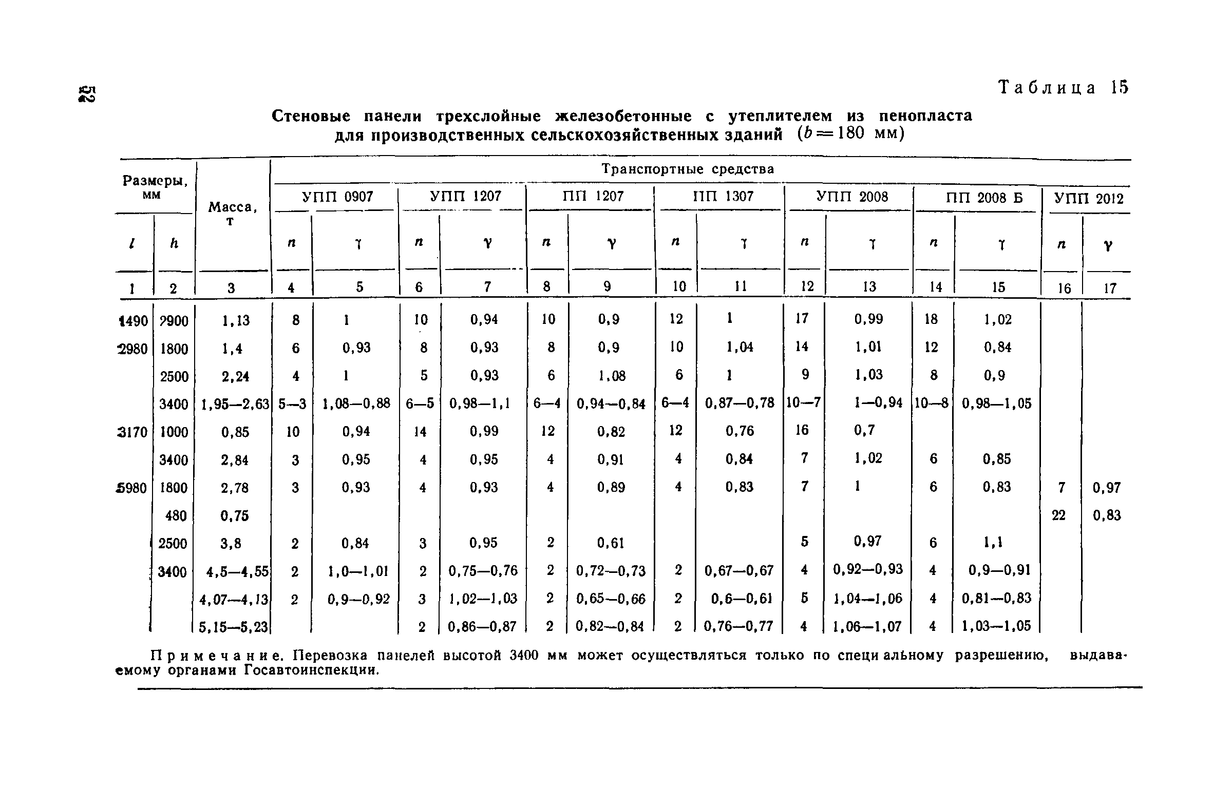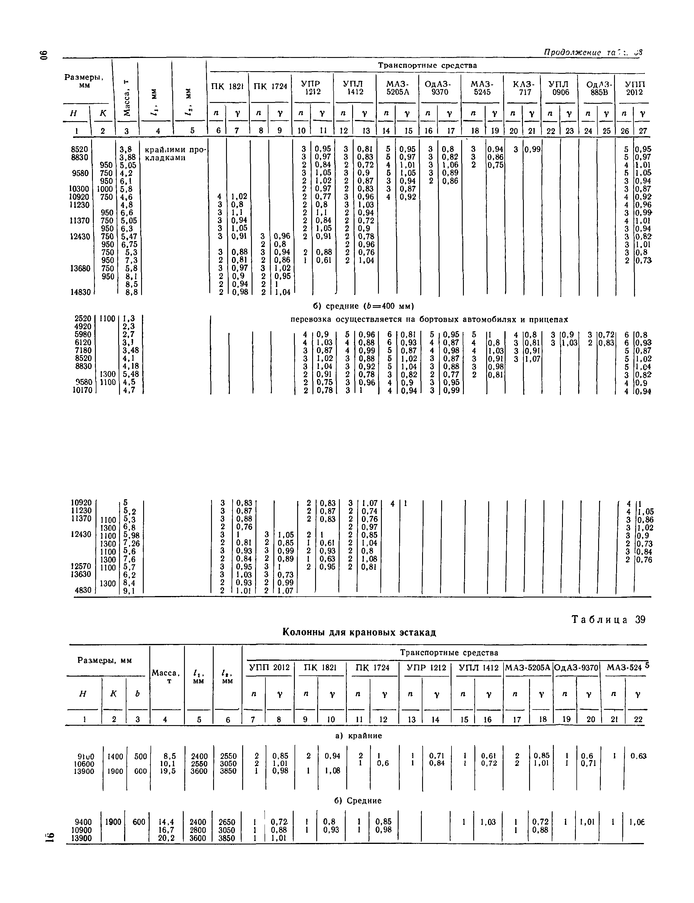 Руководство по перевозке автомобильным транспортом строительных конструкций| Статус: | справочные материалы, мп, тпр | | Название рус.: | Руководство по перевозке автомобильным транспортом строительных конструкций | | Дата добавления в базу: | 01.10.2014 | | Дата актуализации: | 01.01.2021 | | Область применения: | В документе приведены указания по перевозке строительных конструкций для жилищного, промышленного и сельскохозяйственного строительства (стеновых панелей, панелей и плит покрытий и перекрытий, диафрагм жесткости, колонн, свай, балок и ригелей, ферм, объемных блоков, санитарно-технических кабин, блоков шахтлифтов, стоек опор воздушных линий электропередач, полурам животноводческих помещений и деревянных клееных конструкций для сельского строительства). Содержит требования к положению изделий при перевозке, местам опирания, крепления и т. д. Для каждого типо-размера конструкций, указаны автотранспортные средства, на которых возможна их перевозка, и количество перевозимых изделий. Приведены данные по себестоимости перевозки строительных конструкций различными автотранспортными средствами.