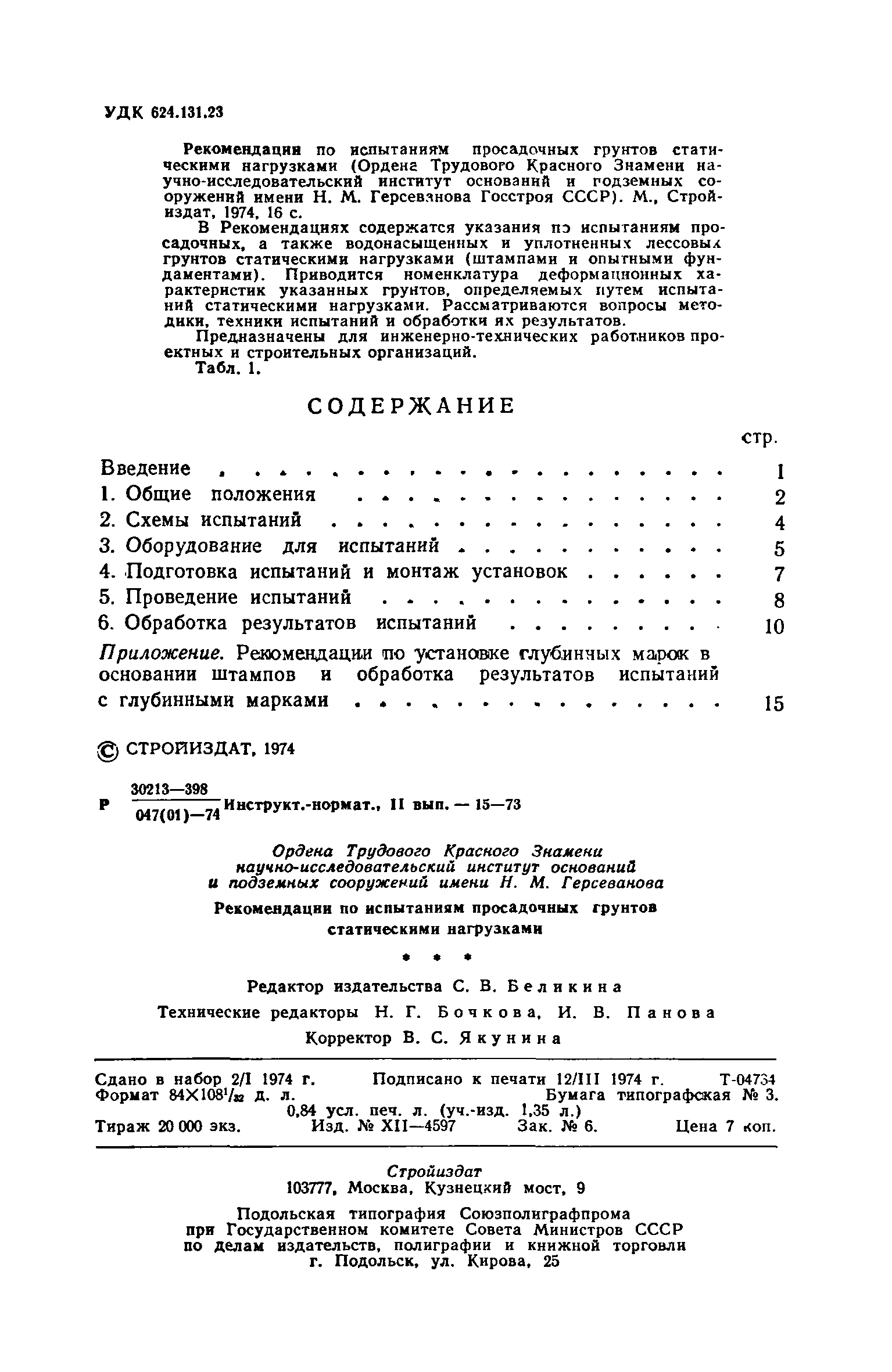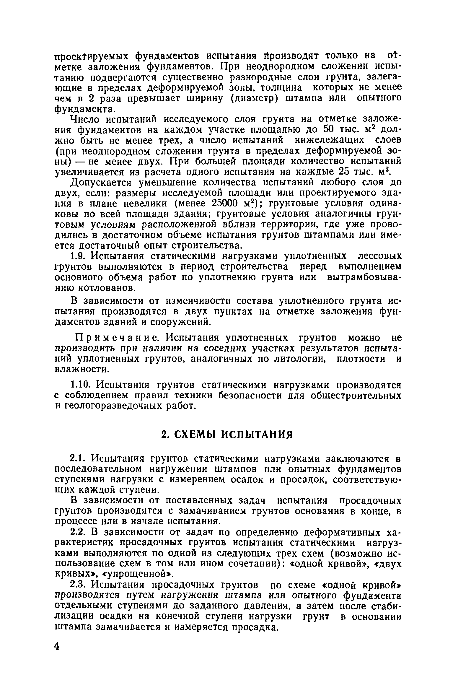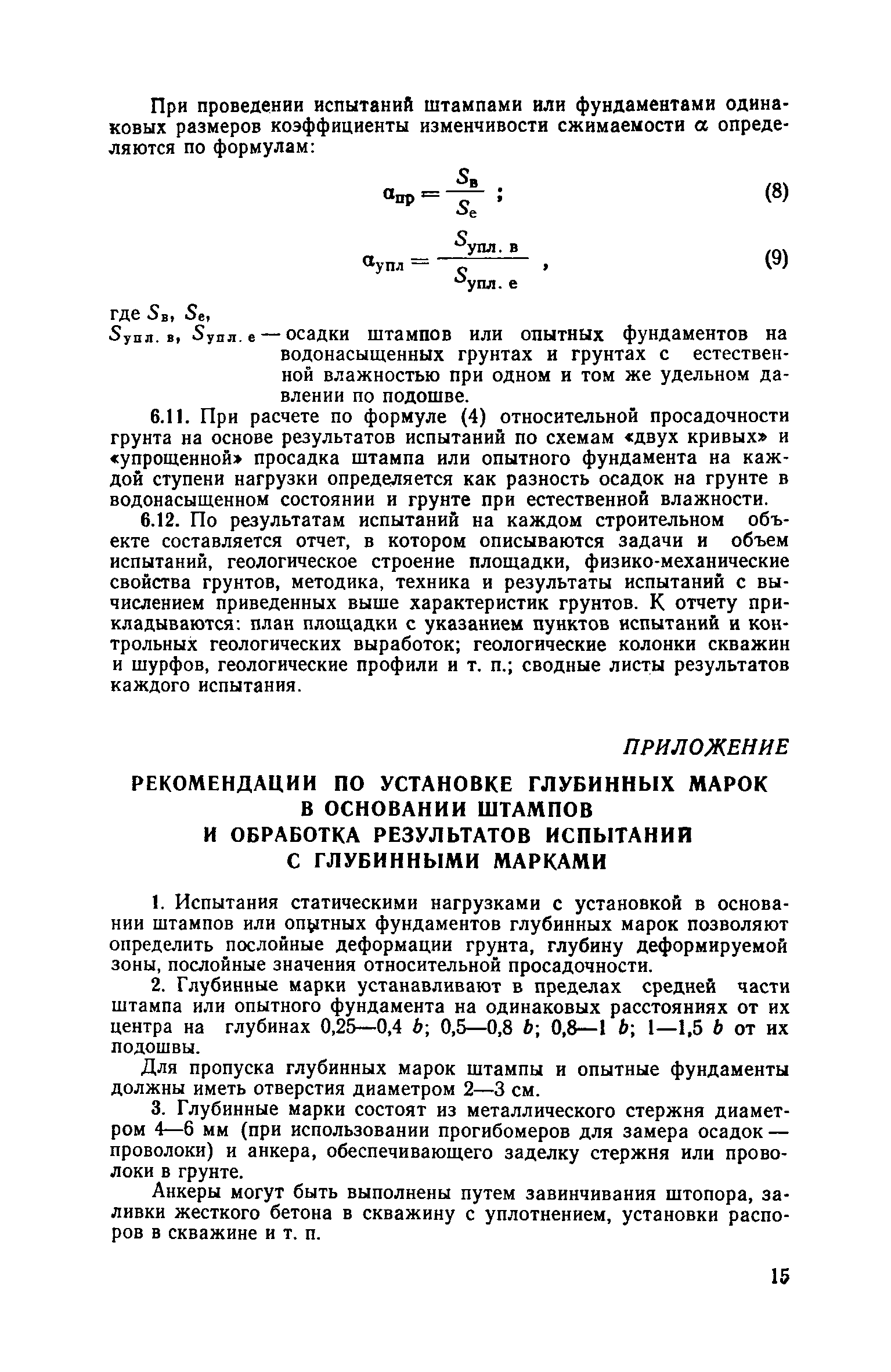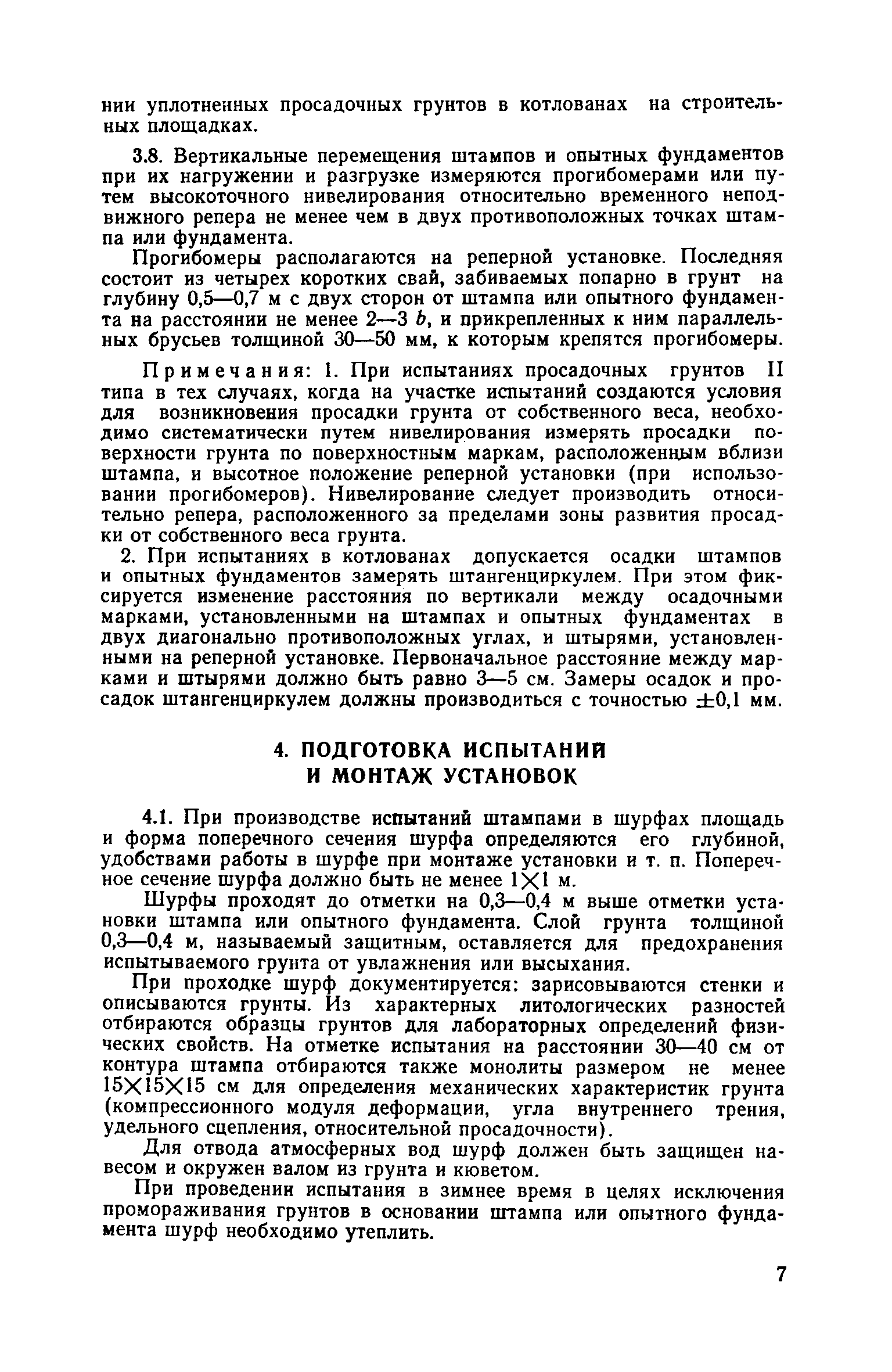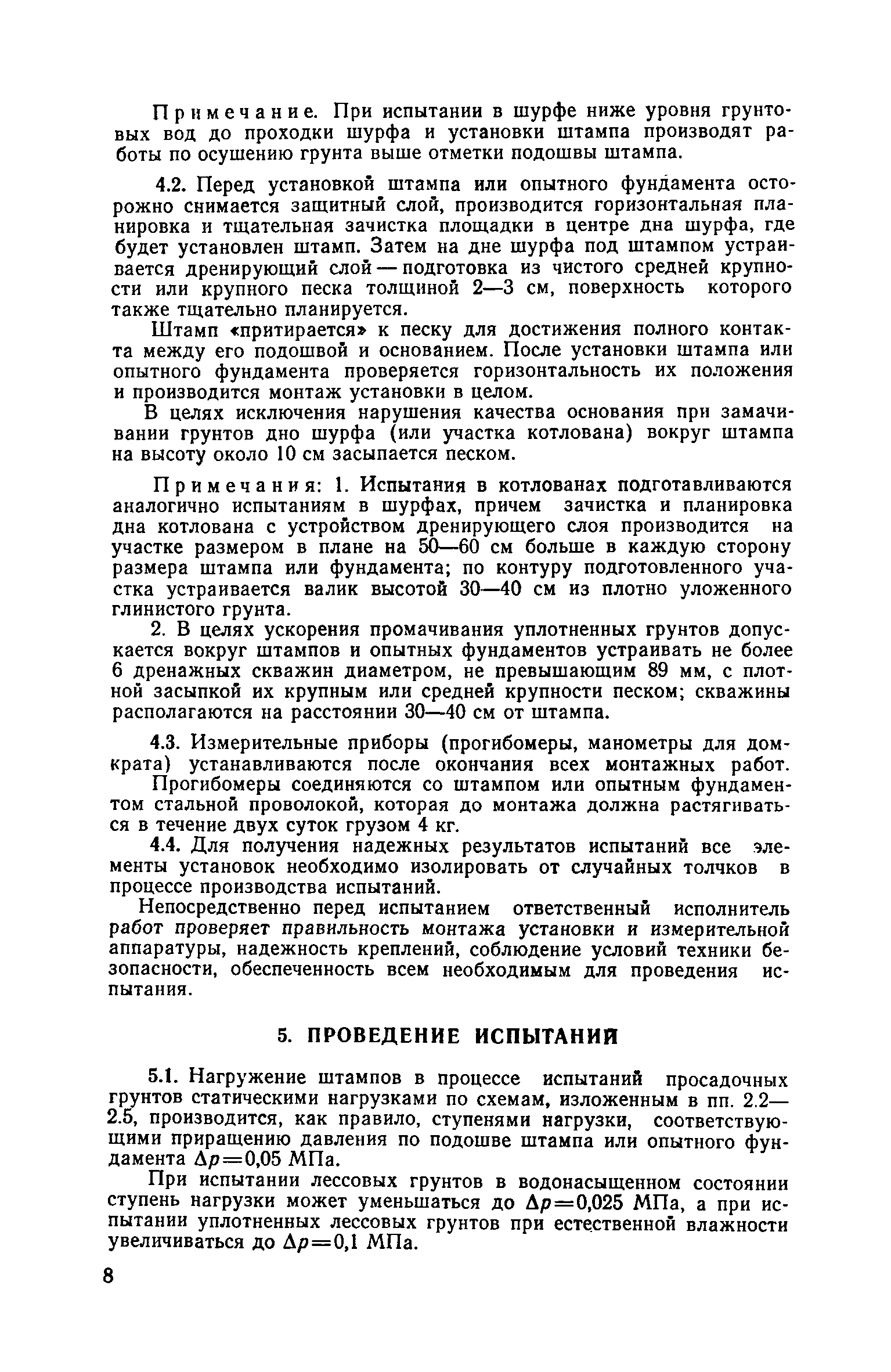 | Оглавление: | Введение 1. Общие положения 2. Схемы испытаний 3. Оборудование для испытаний 4. Подготовка испытаний и монтаж установок 5. Проведение испытаний 6. Обработка результатов испытаний Приложение. Рекомендации по установке глубинных марок в основании штампов и обработка результатов испытаний с глубинными марками |