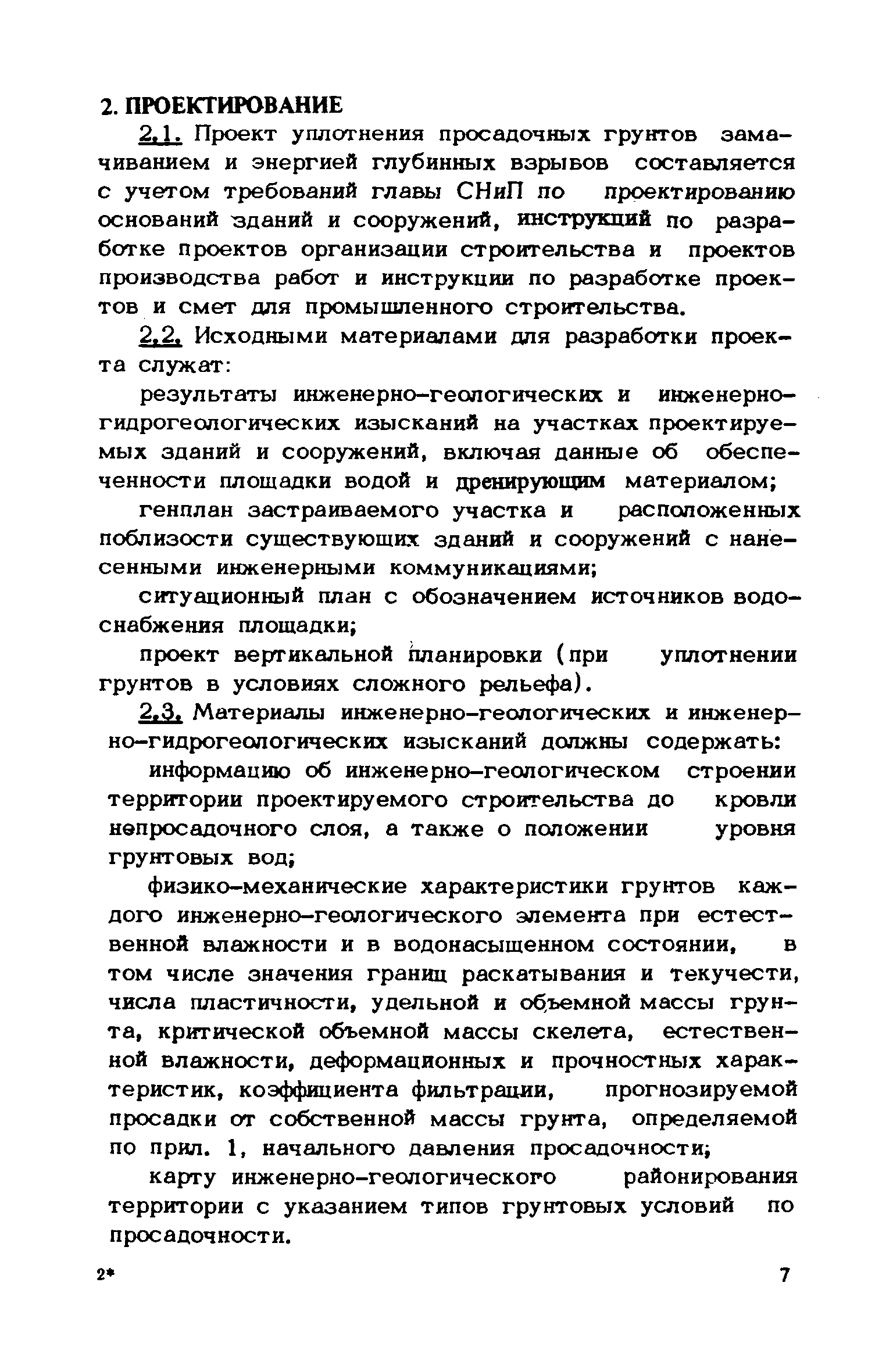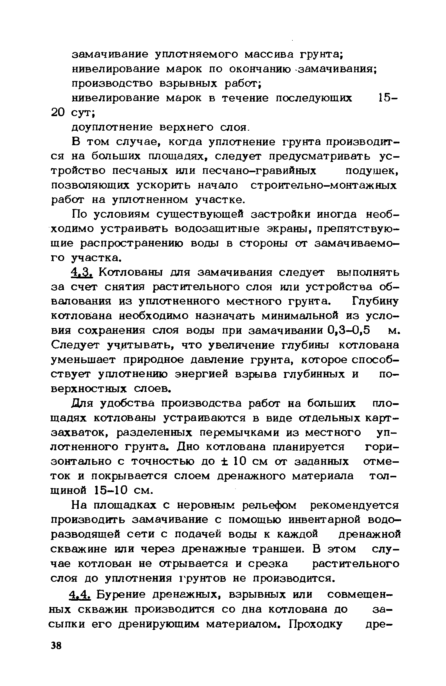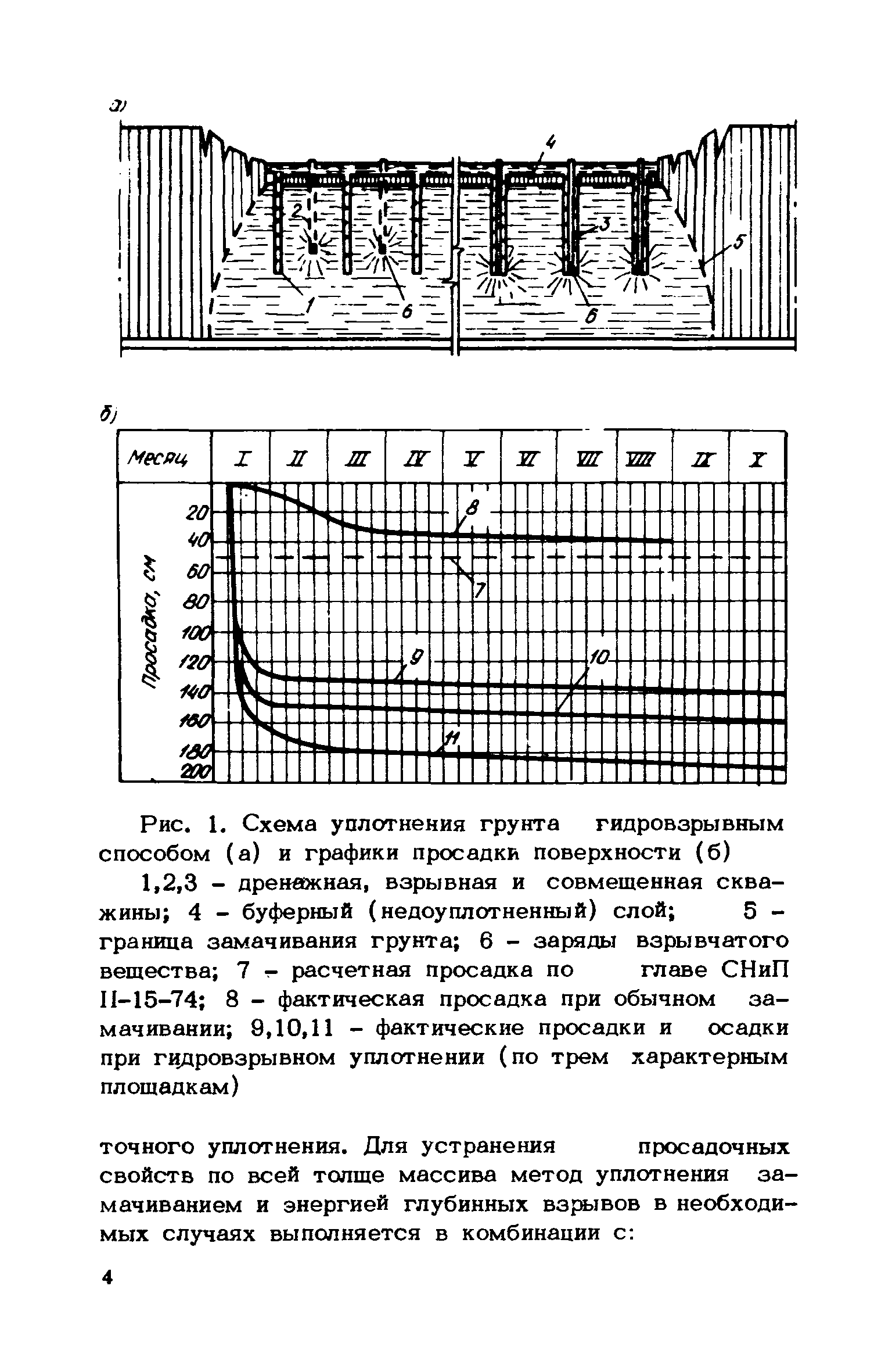 | Оглавление: | 1. Общие положения 2. Проектирование 3. Контрольное уплотнение 4. Производство работ 5. Контроль качества и приемка работ 6. Технико-экономические показатели Приложение 1. Прогноз деформаций Приложение 2. Определение времени условной стабилизации осадки по данным нивелирования Приложение 3. Журнал учета воды при замачивании Приложение 4. Определение зоны нарушения структуры грунта от одиночного взрыва |