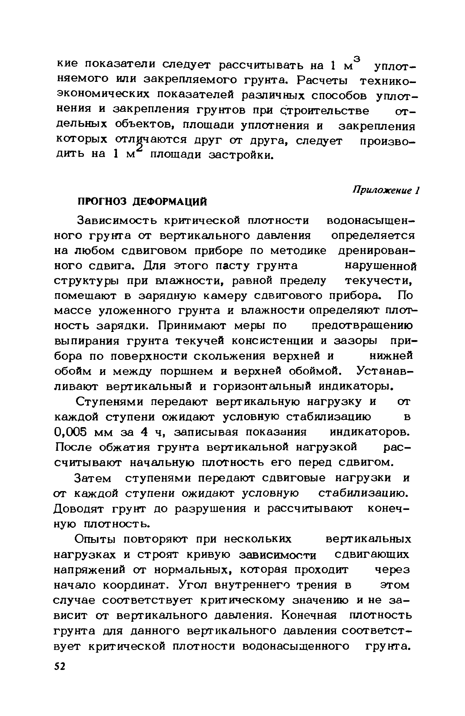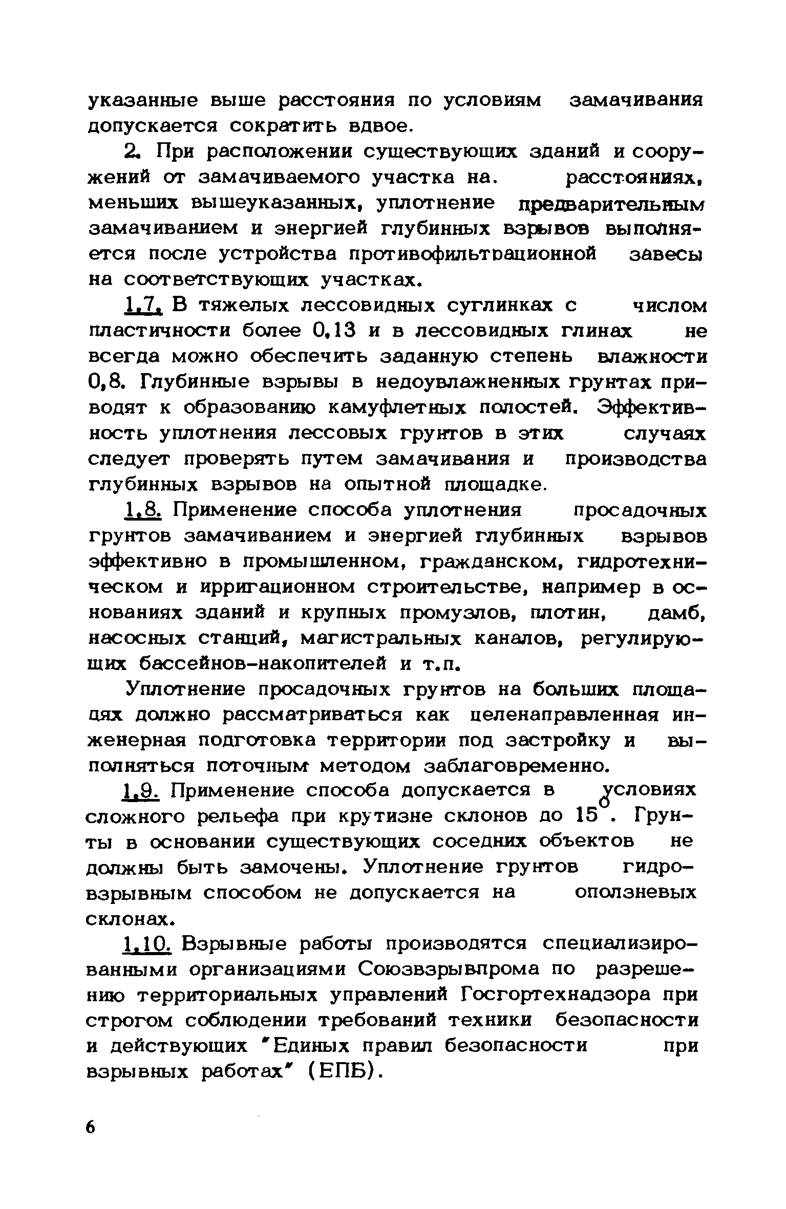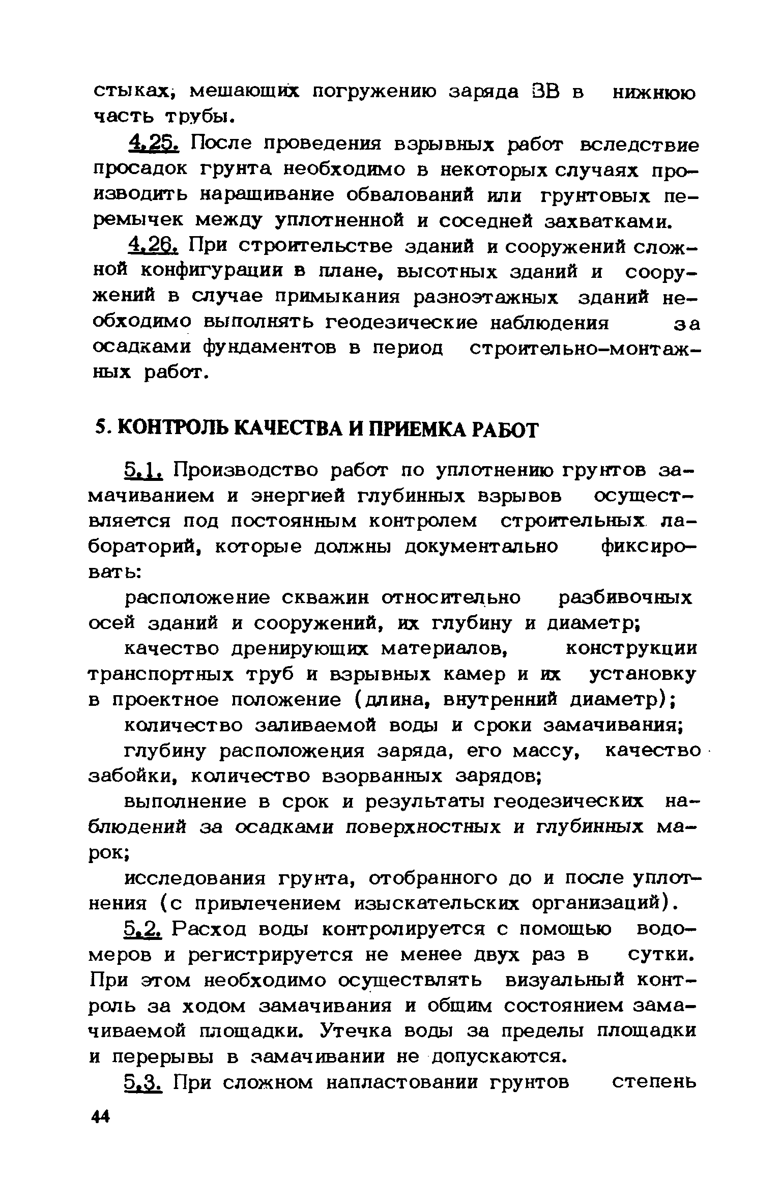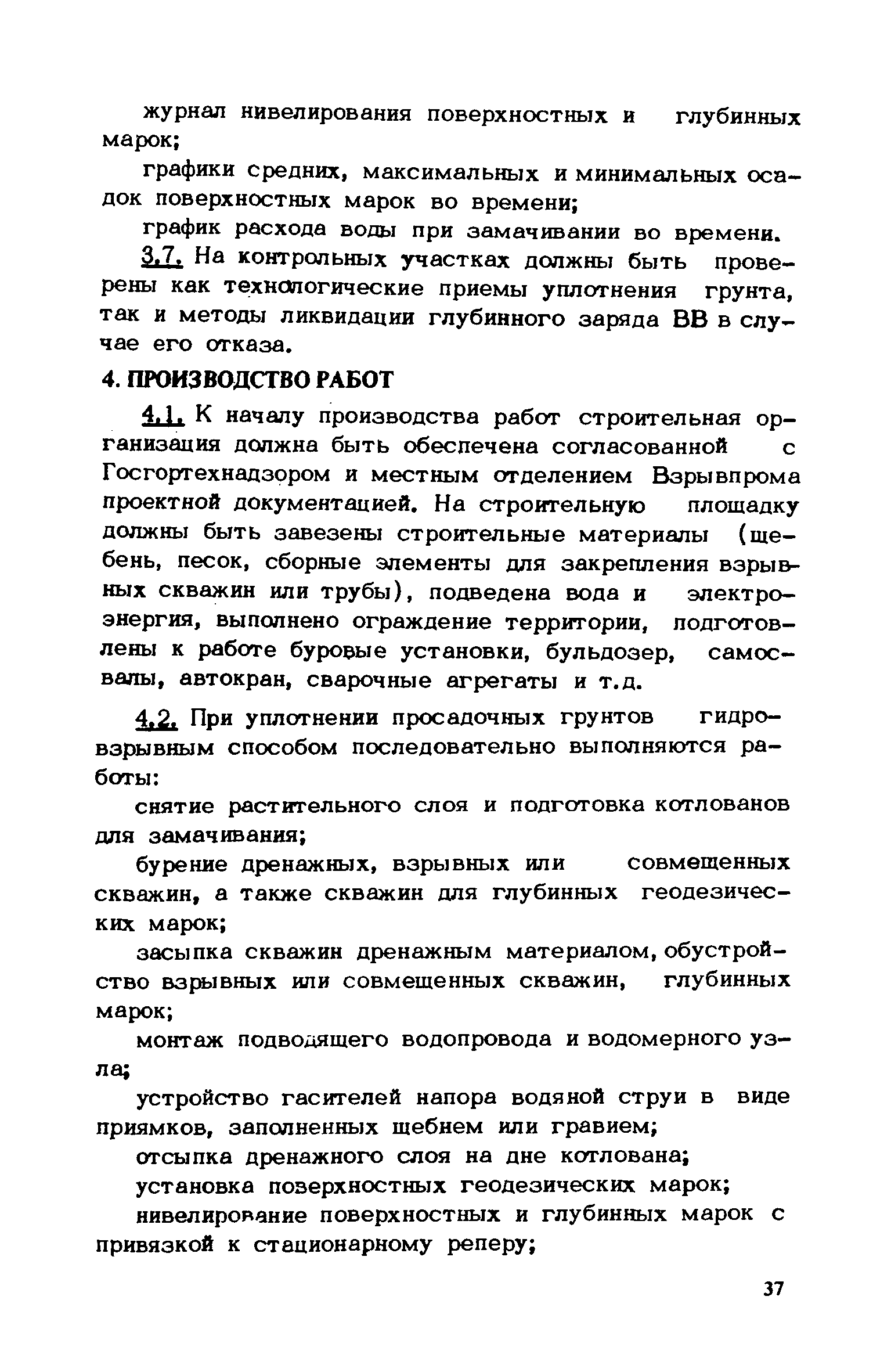 | Оглавление: | 1. Общие положения 2. Проектирование 3. Контрольное уплотнение 4. Производство работ 5. Контроль качества и приемка работ 6. Технико-экономические показатели Приложение 1. Прогноз деформаций Приложение 2. Определение времени условной стабилизации осадки по данным нивелирования Приложение 3. Журнал учета воды при замачивании Приложение 4. Определение зоны нарушения структуры грунта от одиночного взрыва |