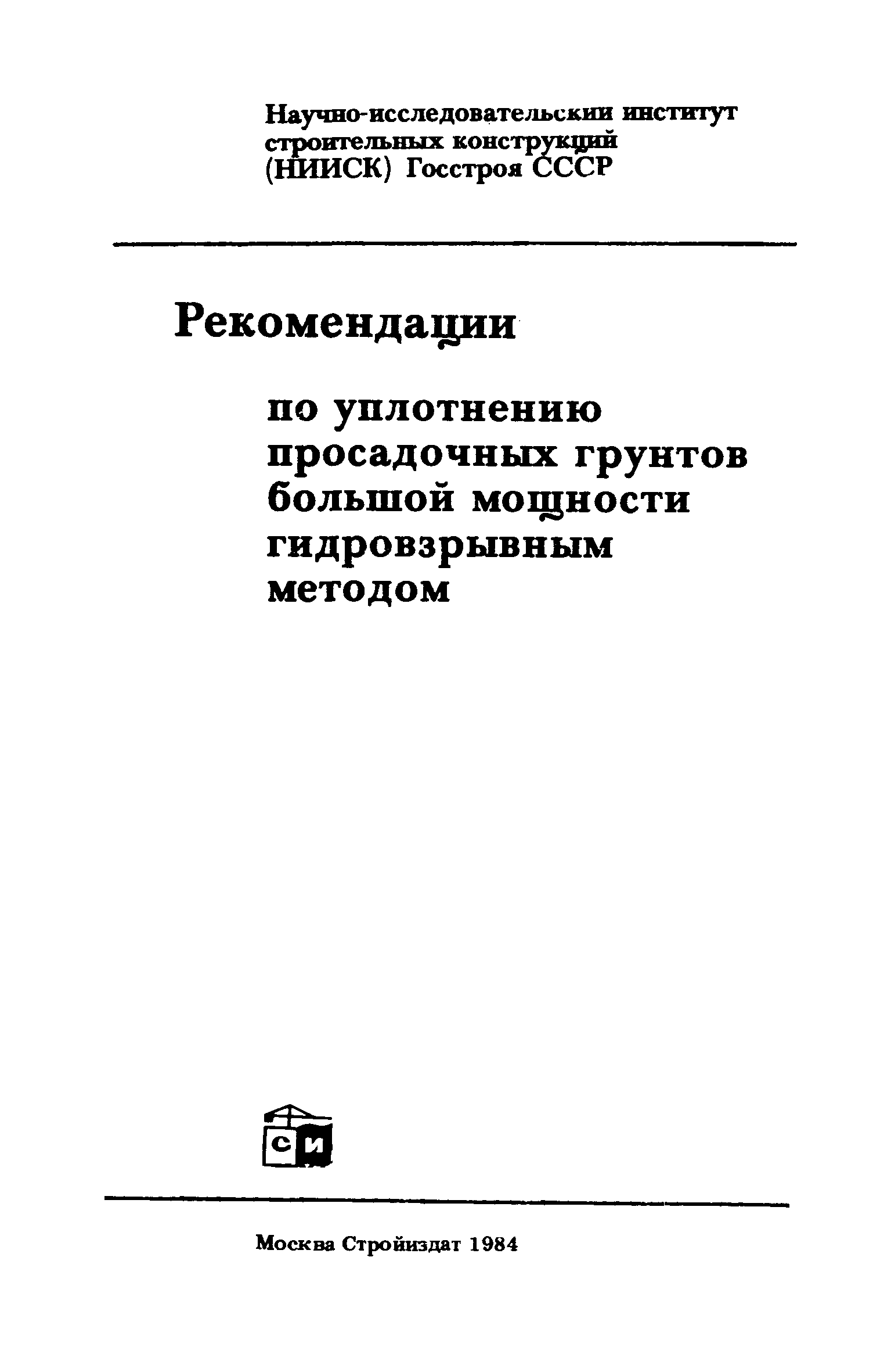| Название рус.: | Рекомендации по уплотнению просадочных грунтов большой мощности гидровзрывным методом |