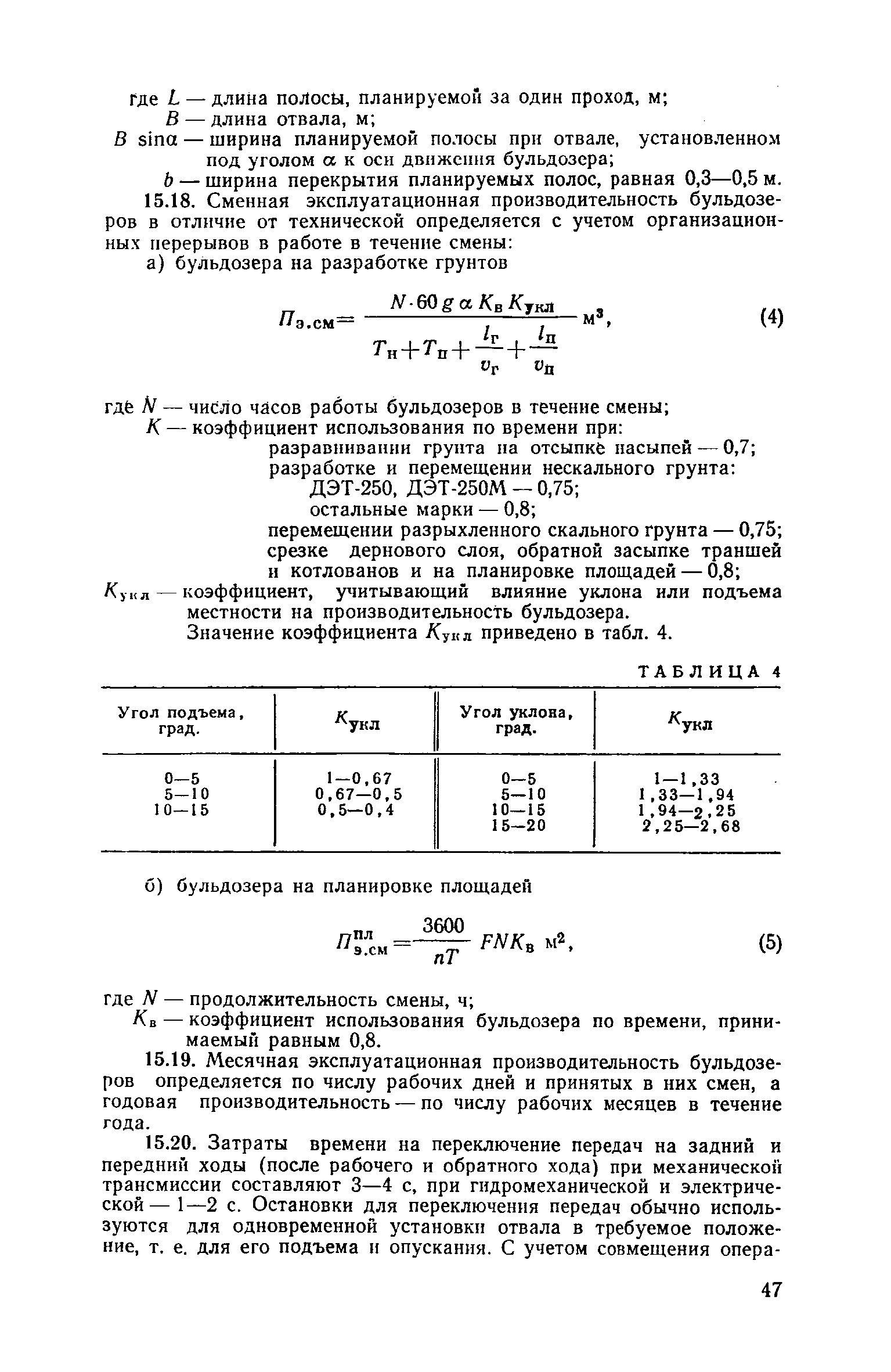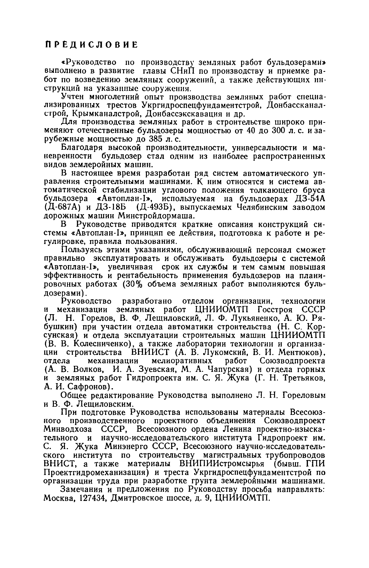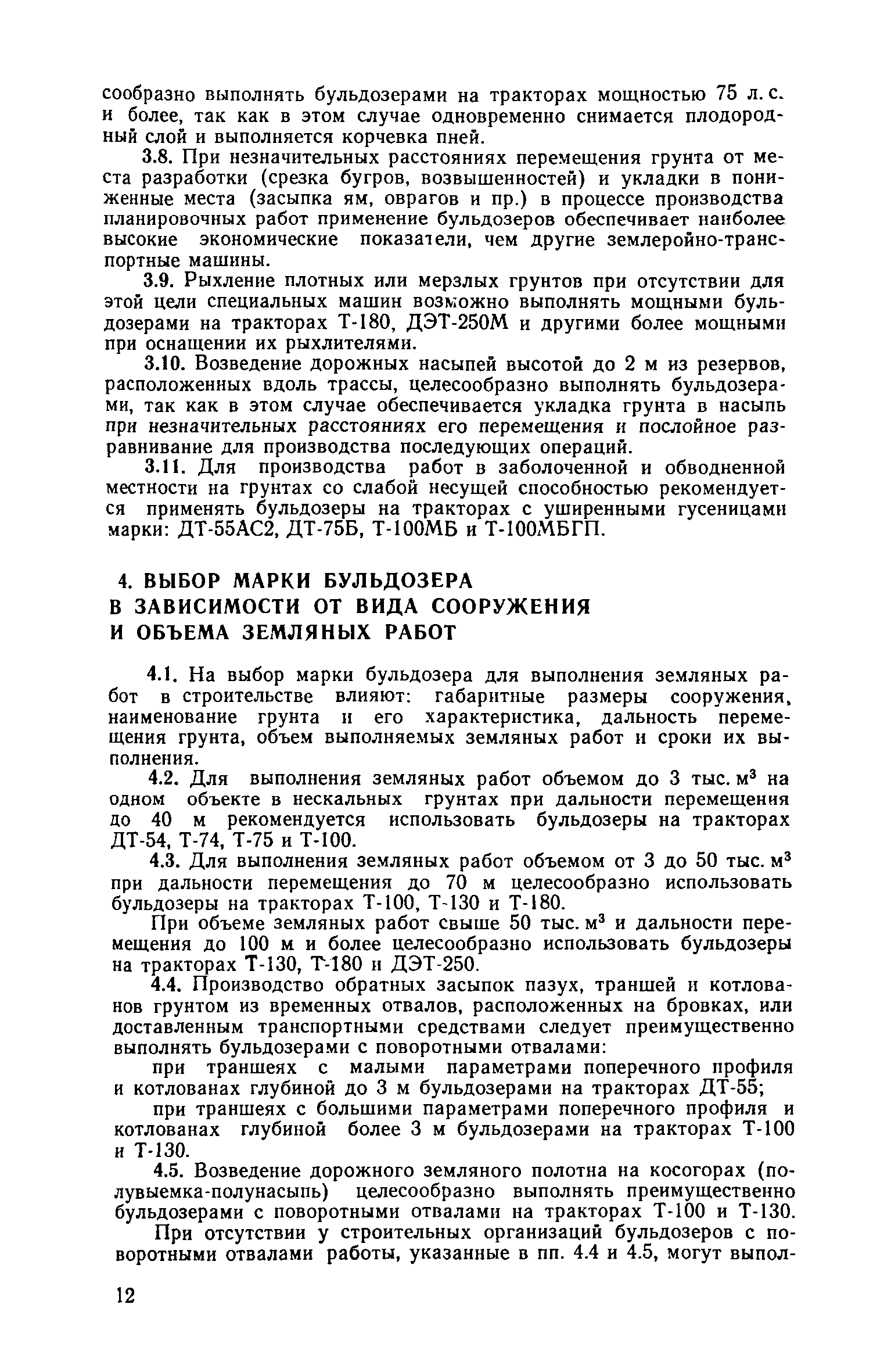Руководство по производству земляных работ бульдозерами| Статус: | справочные материалы, мп, тпр | | Название рус.: | Руководство по производству земляных работ бульдозерами | | Дата добавления в базу: | 01.10.2014 | | Дата актуализации: | 01.01.2021 | | Область применения: | В документе рассматриваются вопросы рационального выполнения элементов цикла разработки грунта, применения прогрессивных технологических схем и способов при проектировании и производстве земляных работ, выбора марки и типа бульдозера для земляных работ, разработки грунта как бульдозерами с канатно-блочным и гидравлическим управлением, так и бульдозерами с автоматическим отвалом "Автоллан-1". Освещены производство подготовительных и вспомогательных работ и организация комплексных бульдозерных бригад. Отражены вопросы технического обслуживания бульдозеров, контроля качества производства земляных работ и их приемки, указания по технике безопасности и противопожарным мероприятиям. Руководство предназначено для инженерно-технических работников строительных и проектных организаций и машинистов бульдозерных бригад, занимающихся производством земляных работ. | | Оглавление: | Предисловие 1. Виды земляных сооружений, подготовительных и вспомогательных работ, выполняемых бульдозерами 2. Общие сведения о бульдозерах 3. Факторы, определяющие область применения бульдозеров 4. Выбор марки бульдозера в зависимости от вида сооружения и объема земляных работ 5. Подготовительные и вспомогательные работы 6. Указания по выполнению элементов цикла работы бульдозеров 7. Рациональные схемы производства работ 8. Разработка грунта выемок и возведение насыпей 9. Разработка грунта в каналах и возведение дамб 10. Разработка котлованов и траншей 11. Планировка территории 12. Обратные засыпки котлованов, траншей и пазух грунтом 13. Зачистка и планировка откосов 14. Разные работы, выполняемые бульдозерами 15. Способы повышения и определения производительности бульдозеров 16. Разработка мерзлых и скальных грунтов 17. Организация комплексных бульдозерных бригад 18. Контроль качества и приемка работ 19. Переходы и транспортирование бульдозера 20. Техническое обслуживание и ремонт бульдозеров 21. Техника безопасности и противопожарные мероприятия Приложение 1. Техническая характеристика бульдозеров на гусеничном ходу с неповоротным отвалом Приложение 2. Техническая характеристика бульдозеров на гусеничном ходу с поворотным отвалом Приложение 3. Техническая характеристика бульдозеров на пневмоколесном ходу с неповоротным отвалом Приложение 4. Техническая характеристика рыхлителей Приложение 5. Техническая характеристика гусеничных тракторов Приложение 6. Техническая характеристика колесных тракторов Приложение 7. Описание аппаратуры автоматического управления системы "Автоплан-1" на бульдозерах Д3-54А (Д-687А) и Д3-18Б (Д-493Б) Приложение 8. Ежесменное техническое обслуживание и возможные неисправности бульдозеров Д3-54 (Д-687А) и Д3-18Б (Д-493Б) с системой "Автоплан-1" Приложение 9. Таблица объемов грунта (в плотном теле) на отвалах бульдозеров в зависимости от степени разрыхления грунта | | Разработан: | ЦНИИОМТП Госстроя СССР