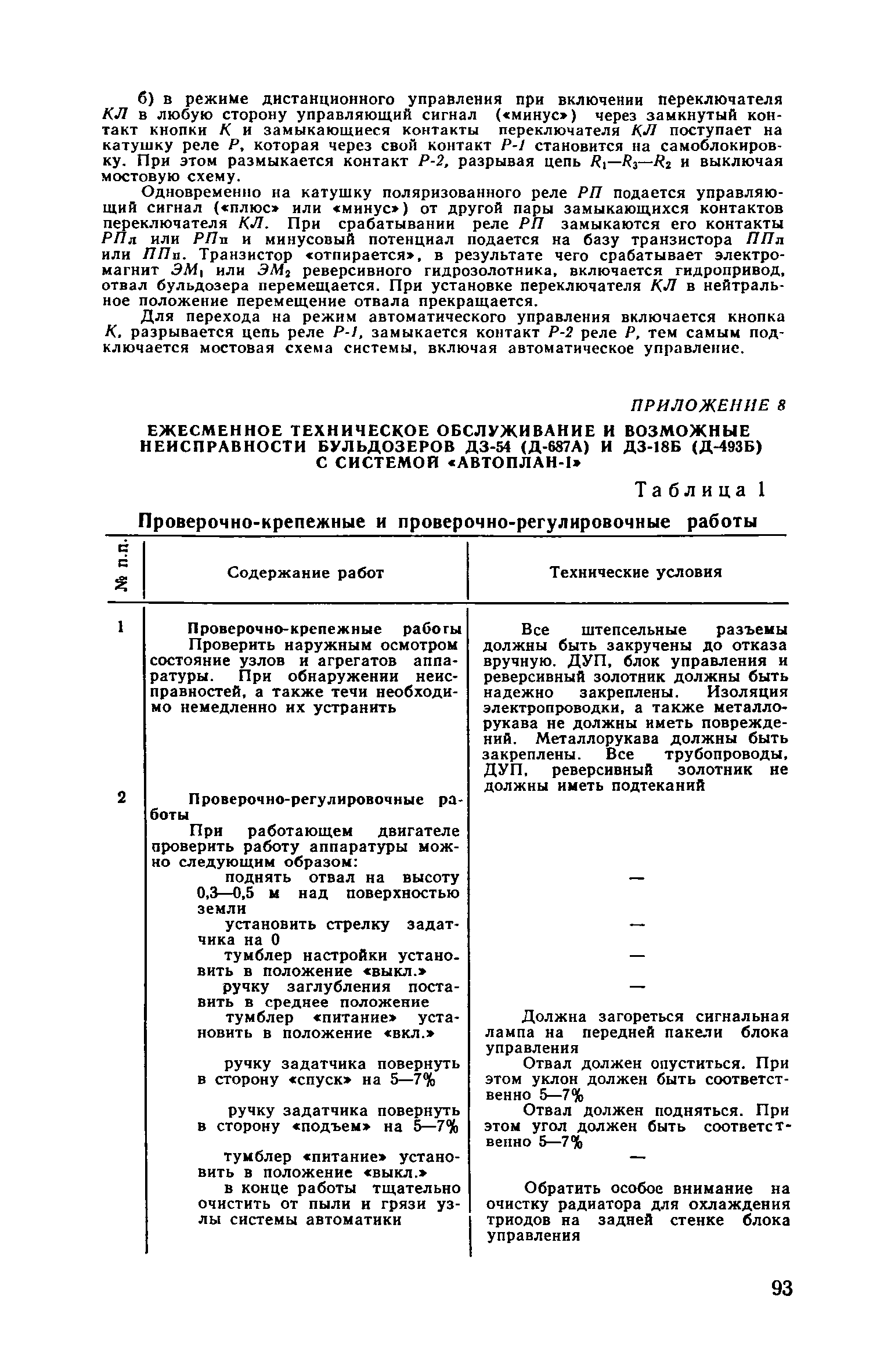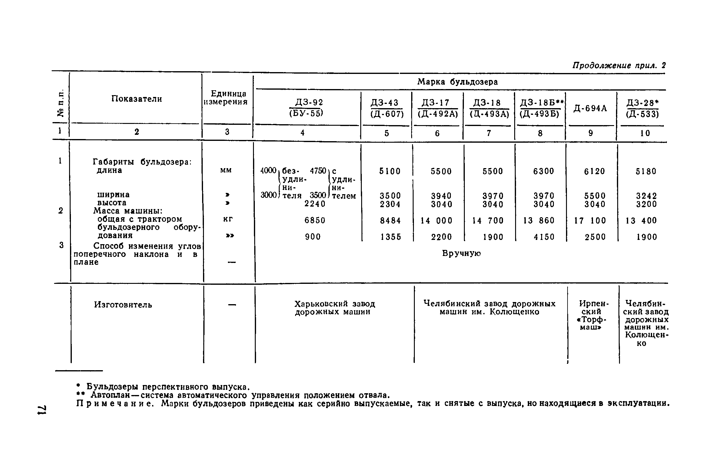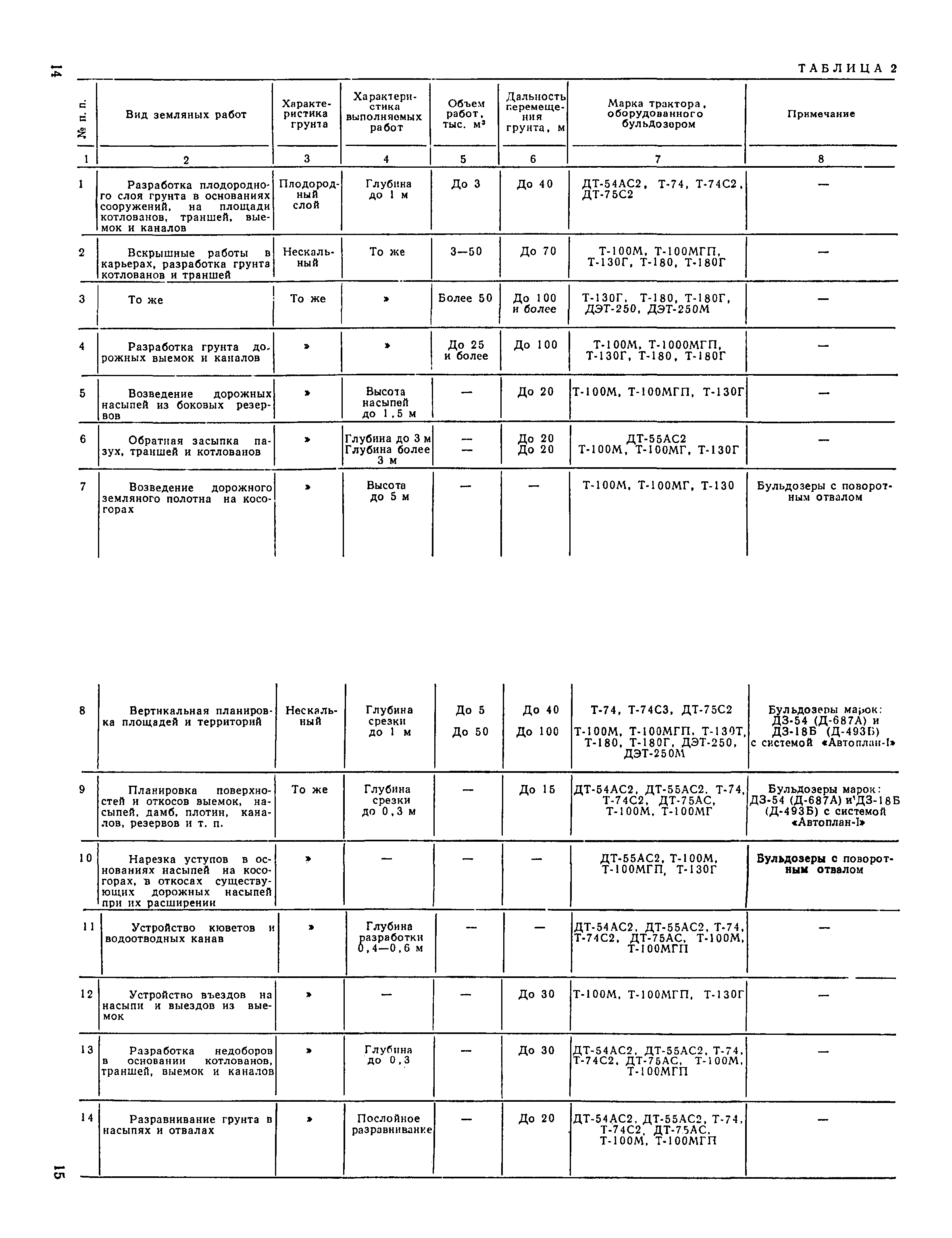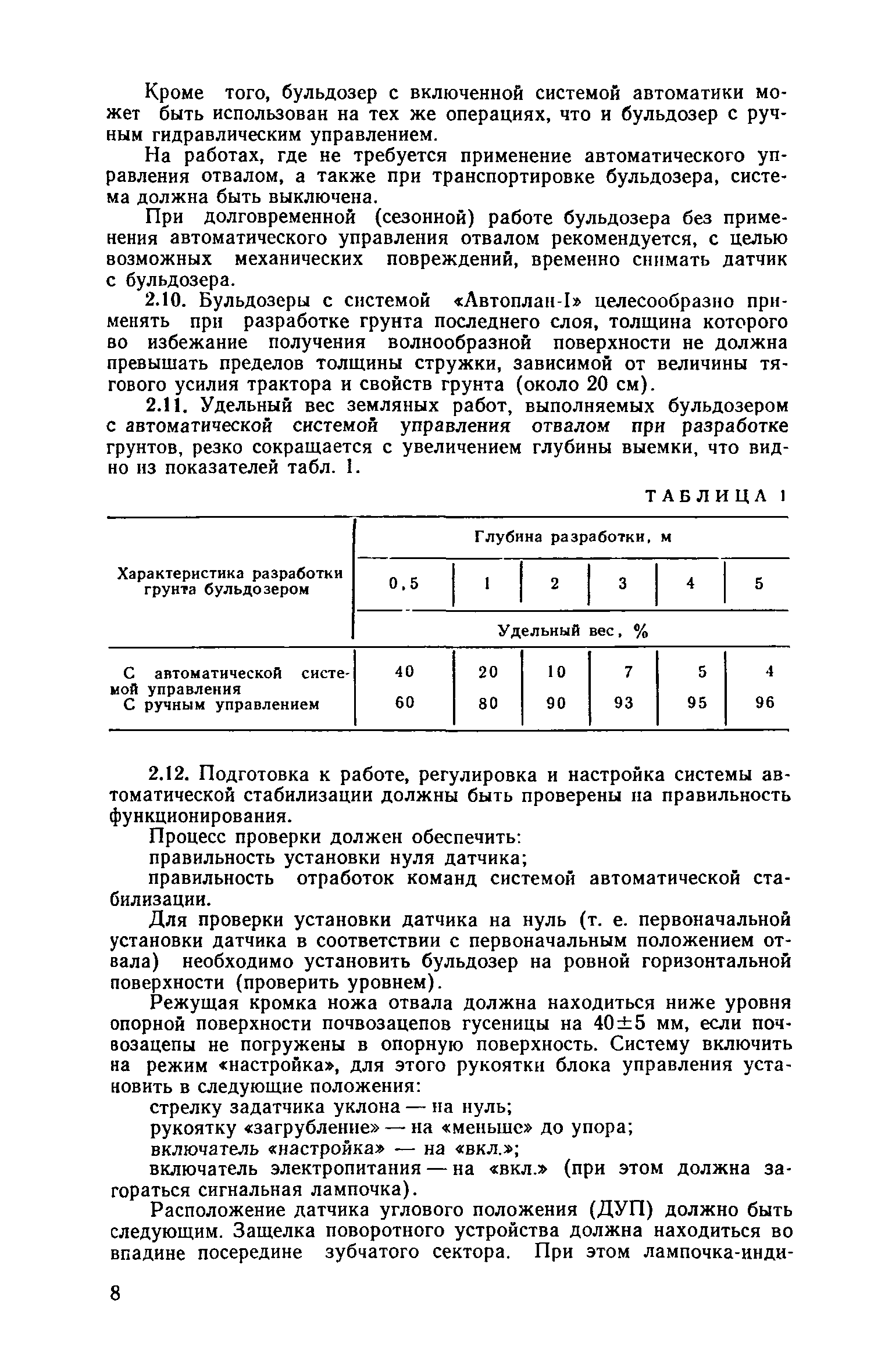 Руководство по производству земляных работ бульдозерами| Статус: | справочные материалы, мп, тпр | | Название рус.: | Руководство по производству земляных работ бульдозерами | | Дата добавления в базу: | 01.10.2014 | | Дата актуализации: | 01.01.2021 | | Область применения: | В документе рассматриваются вопросы рационального выполнения элементов цикла разработки грунта, применения прогрессивных технологических схем и способов при проектировании и производстве земляных работ, выбора марки и типа бульдозера для земляных работ, разработки грунта как бульдозерами с канатно-блочным и гидравлическим управлением, так и бульдозерами с автоматическим отвалом "Автоллан-1". Освещены производство подготовительных и вспомогательных работ и организация комплексных бульдозерных бригад. Отражены вопросы технического обслуживания бульдозеров, контроля качества производства земляных работ и их приемки, указания по технике безопасности и противопожарным мероприятиям. Руководство предназначено для инженерно-технических работников строительных и проектных организаций и машинистов бульдозерных бригад, занимающихся производством земляных работ. | | Оглавление: | Предисловие 1. Виды земляных сооружений, подготовительных и вспомогательных работ, выполняемых бульдозерами 2. Общие сведения о бульдозерах 3. Факторы, определяющие область применения бульдозеров 4. Выбор марки бульдозера в зависимости от вида сооружения и объема земляных работ 5. Подготовительные и вспомогательные работы 6. Указания по выполнению элементов цикла работы бульдозеров 7. Рациональные схемы производства работ 8. Разработка грунта выемок и возведение насыпей 9. Разработка грунта в каналах и возведение дамб 10. Разработка котлованов и траншей 11. Планировка территории 12. Обратные засыпки котлованов, траншей и пазух грунтом 13. Зачистка и планировка откосов 14. Разные работы, выполняемые бульдозерами 15. Способы повышения и определения производительности бульдозеров 16. Разработка мерзлых и скальных грунтов 17. Организация комплексных бульдозерных бригад 18. Контроль качества и приемка работ 19. Переходы и транспортирование бульдозера 20. Техническое обслуживание и ремонт бульдозеров 21. Техника безопасности и противопожарные мероприятия Приложение 1. Техническая характеристика бульдозеров на гусеничном ходу с неповоротным отвалом Приложение 2. Техническая характеристика бульдозеров на гусеничном ходу с поворотным отвалом Приложение 3. Техническая характеристика бульдозеров на пневмоколесном ходу с неповоротным отвалом Приложение 4. Техническая характеристика рыхлителей Приложение 5. Техническая характеристика гусеничных тракторов Приложение 6. Техническая характеристика колесных тракторов Приложение 7. Описание аппаратуры автоматического управления системы "Автоплан-1" на бульдозерах Д3-54А (Д-687А) и Д3-18Б (Д-493Б) Приложение 8. Ежесменное техническое обслуживание и возможные неисправности бульдозеров Д3-54 (Д-687А) и Д3-18Б (Д-493Б) с системой "Автоплан-1" Приложение 9. Таблица объемов грунта (в плотном теле) на отвалах бульдозеров в зависимости от степени разрыхления грунта | | Разработан: | ЦНИИОМТП Госстроя СССР
