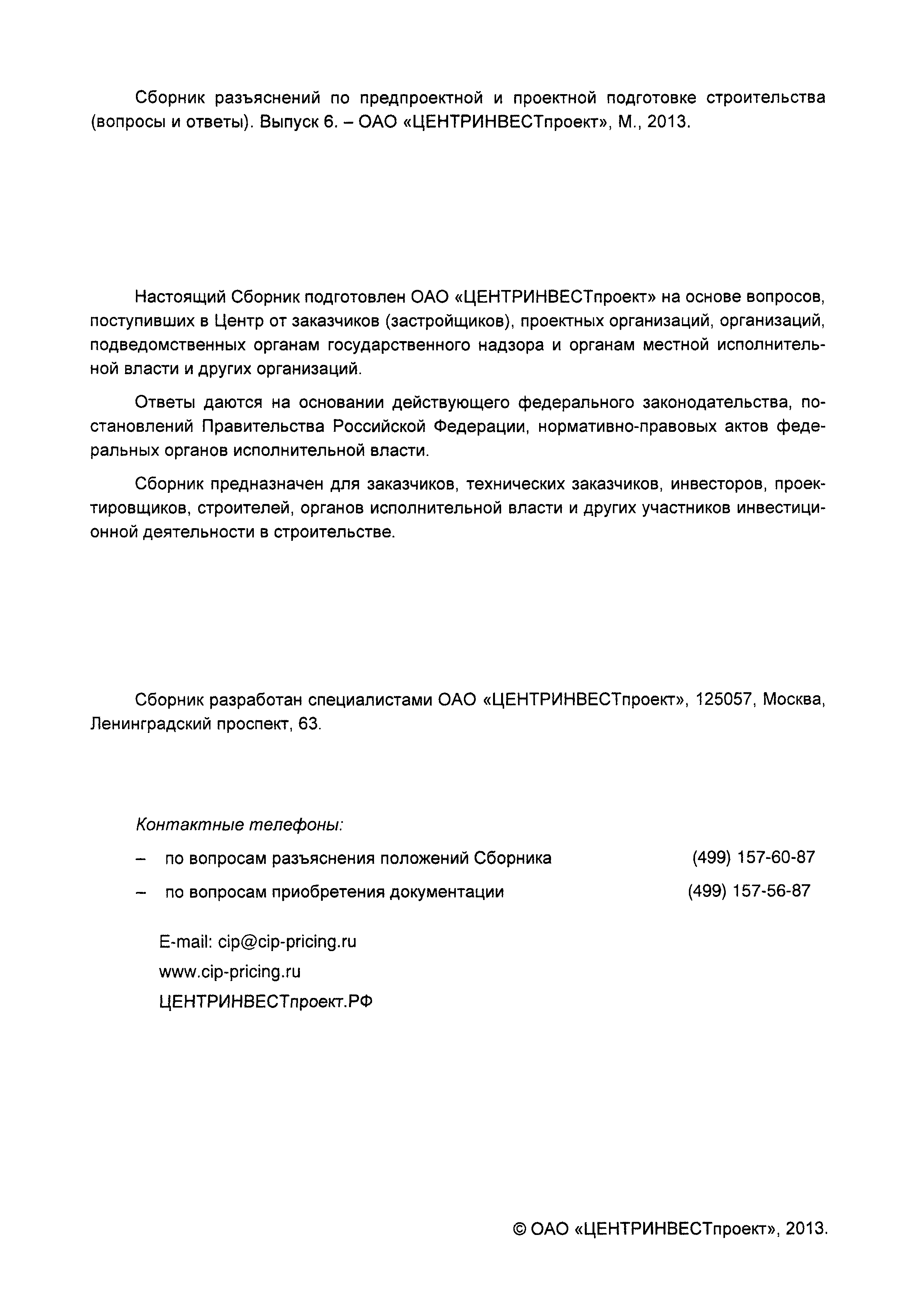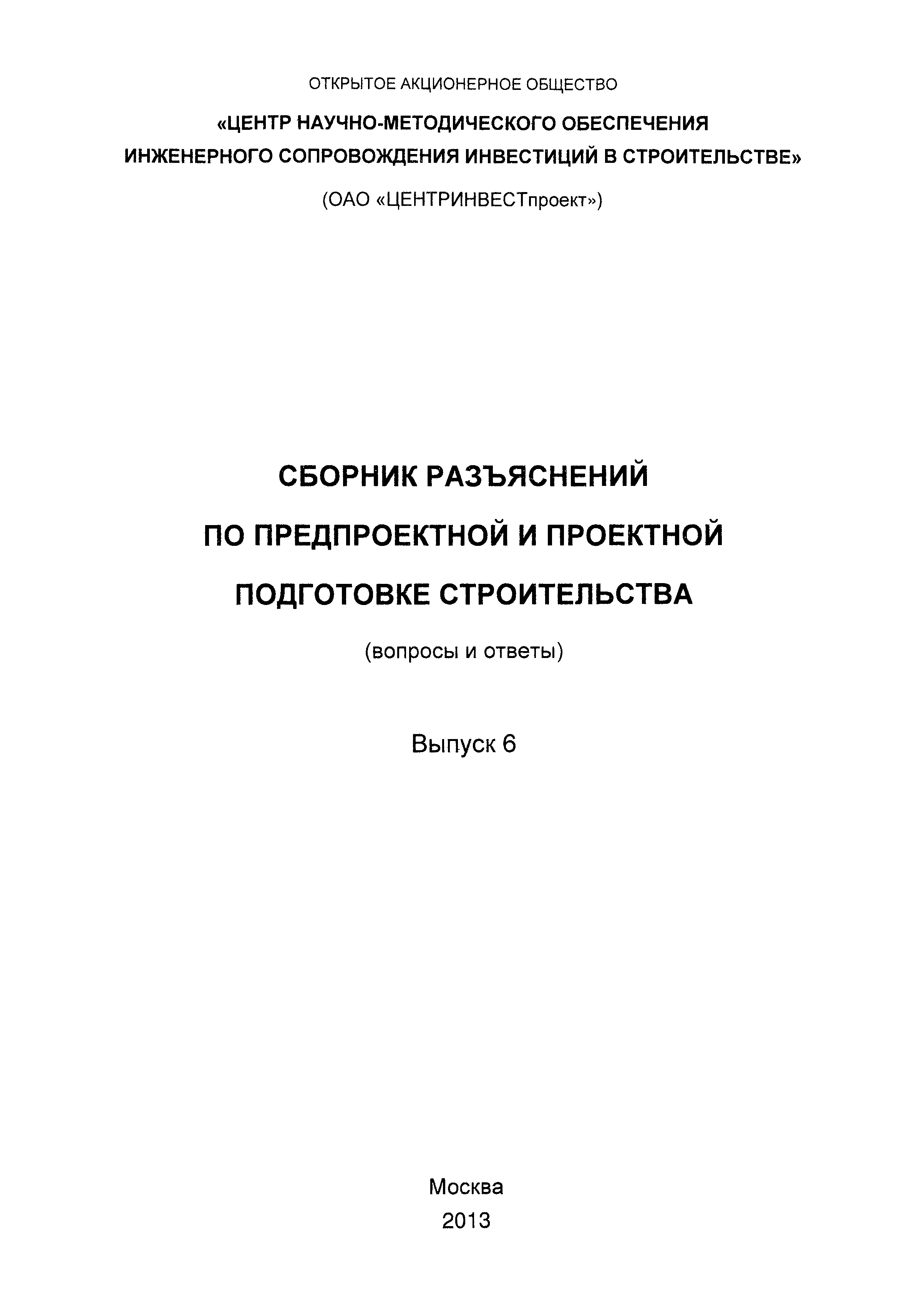 Сборник разъяснений по предпроектной и проектной подготовке строительства (Вопросы и ответы). Выпуск 6