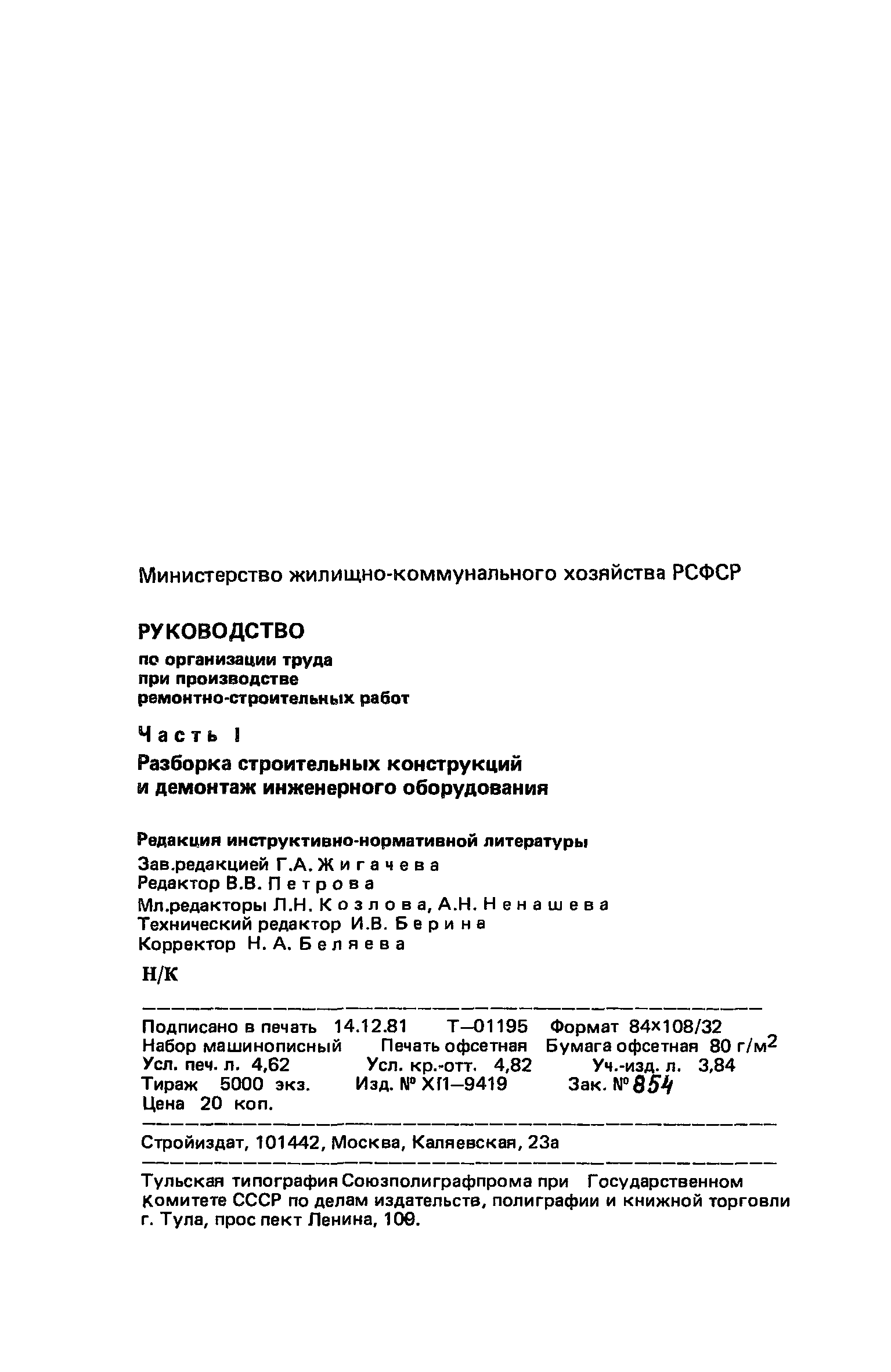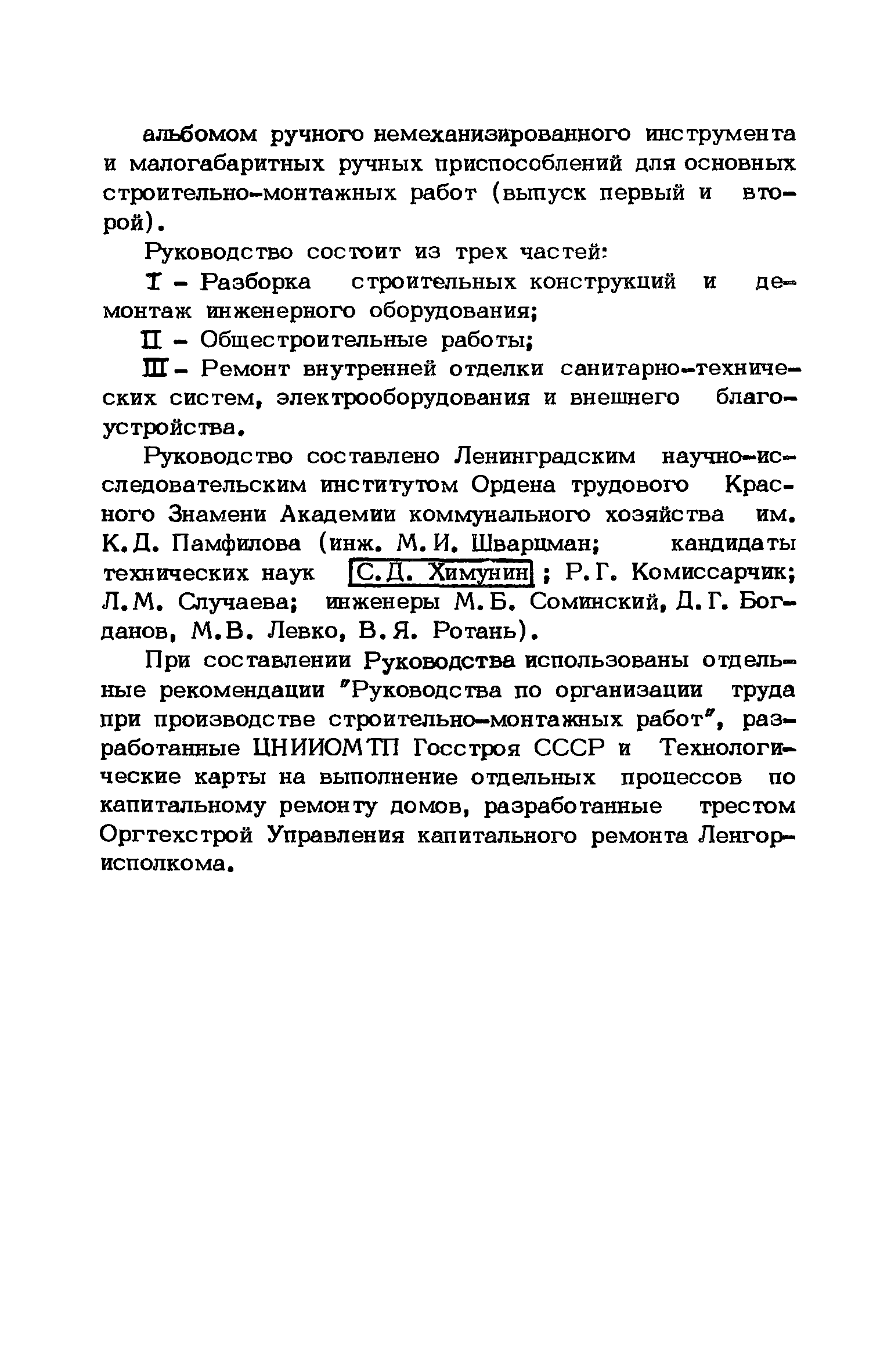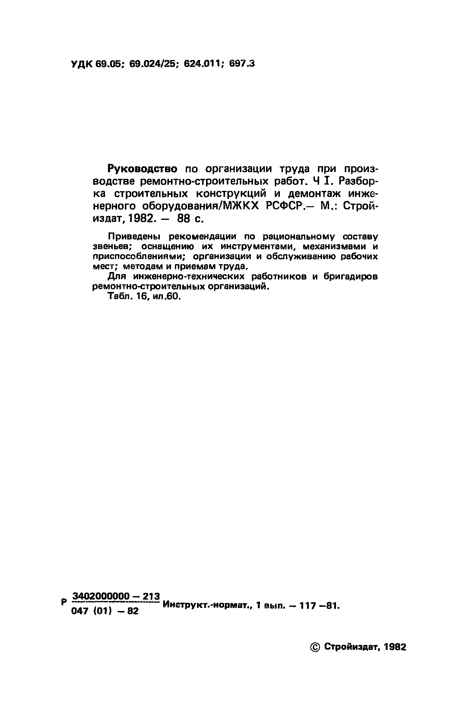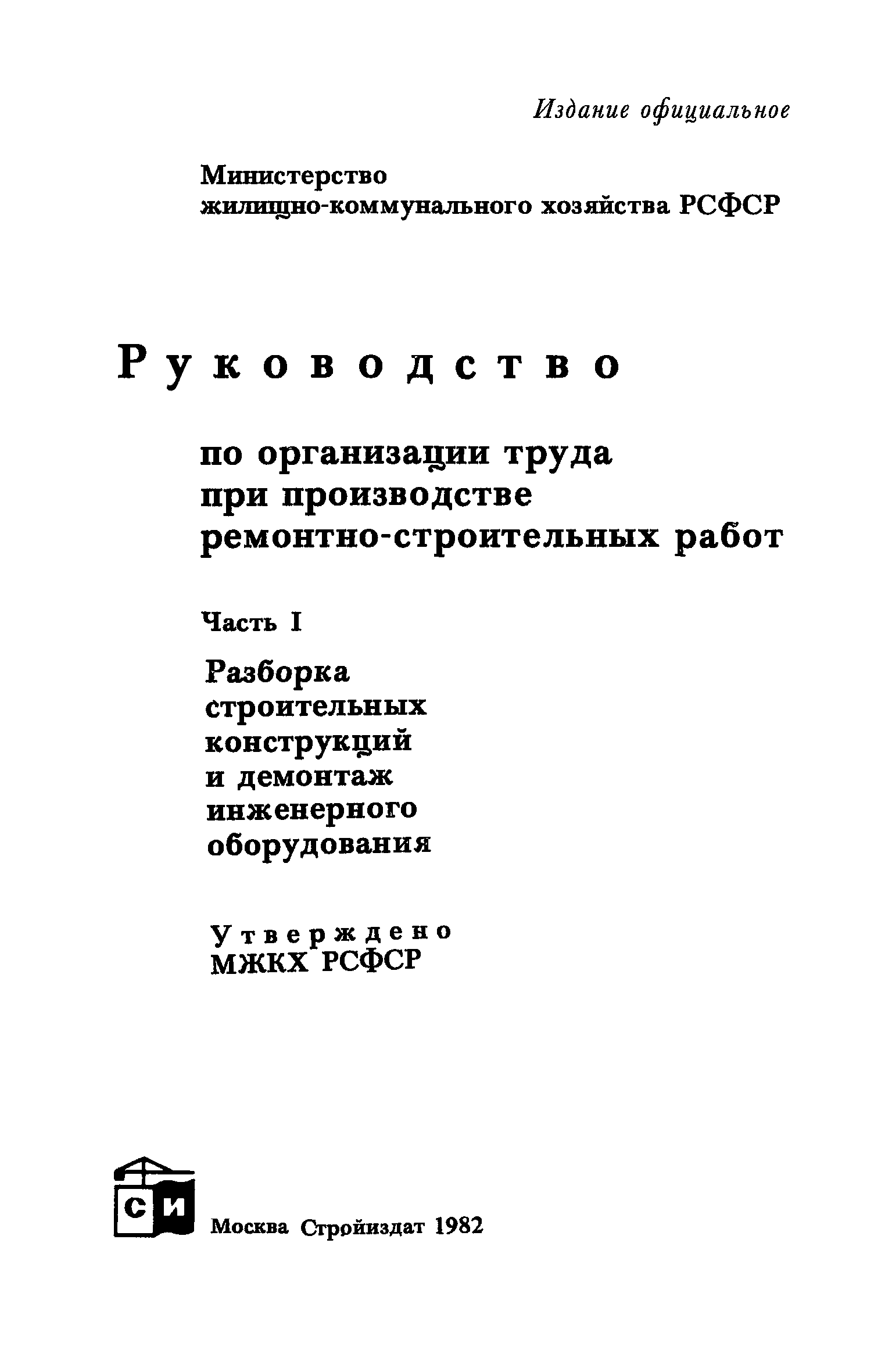 | Название рус.: | Руководство по организации труда при производстве ремонтно-строительных работ. Часть I. Разборка строительных конструкций и демонтаж инженерного оборудования |