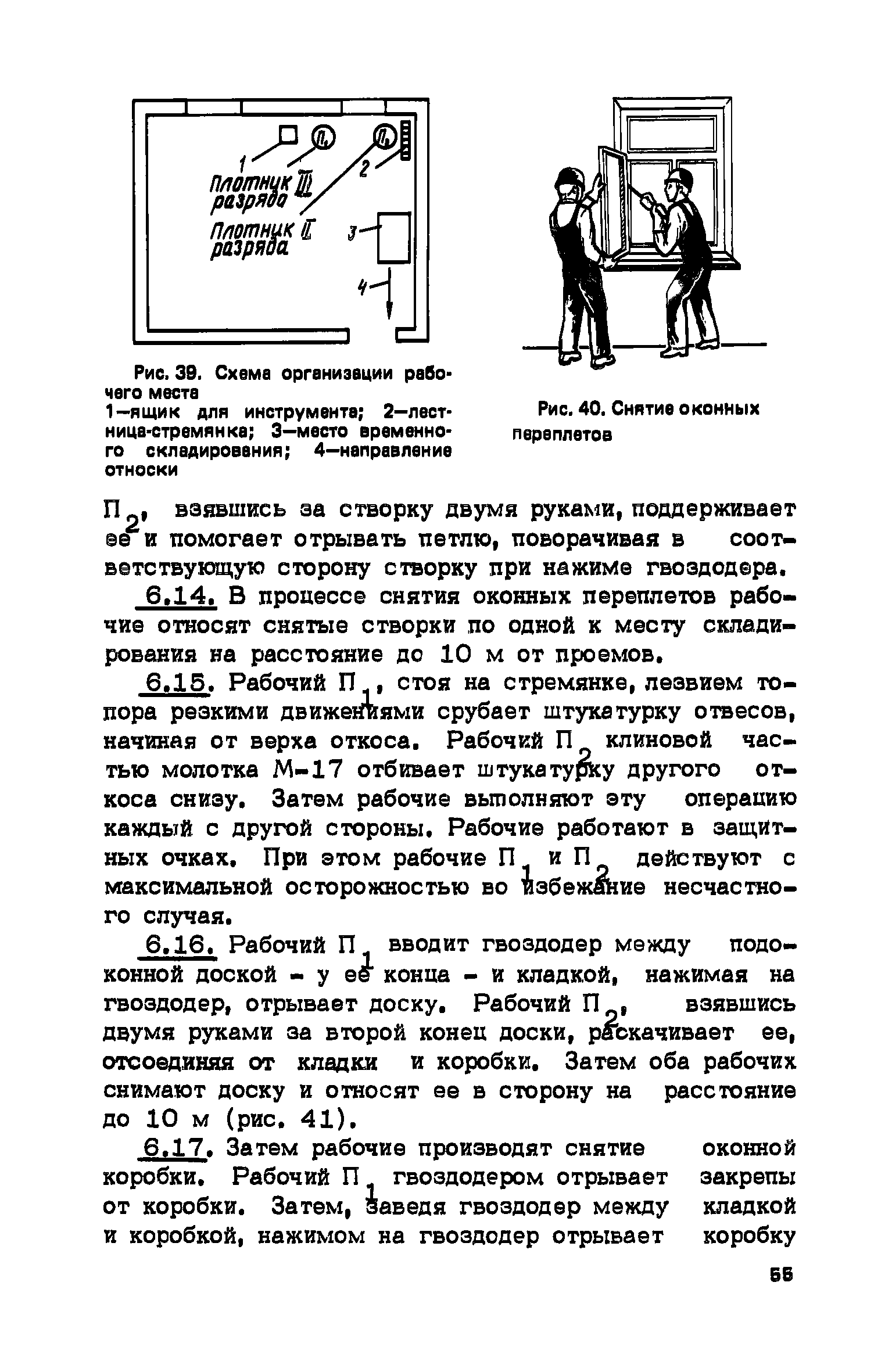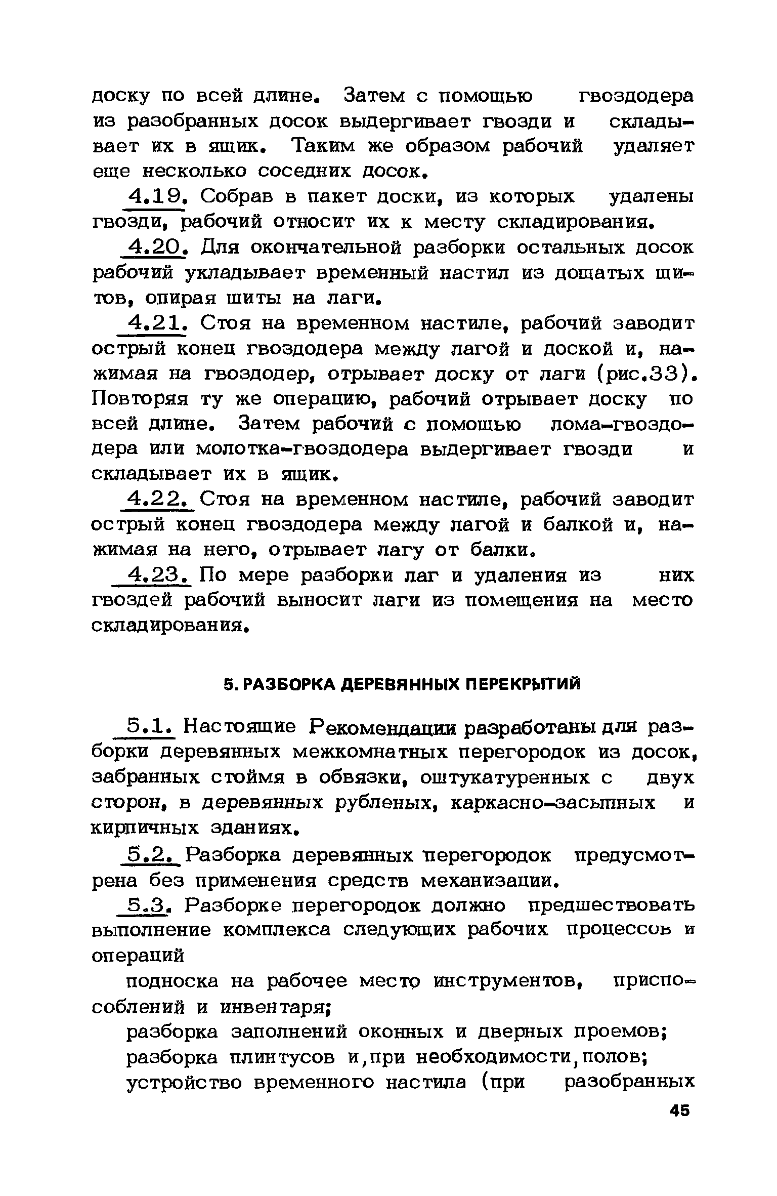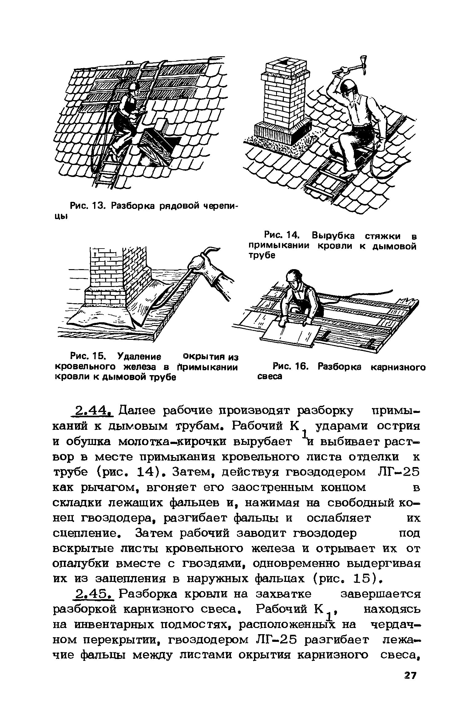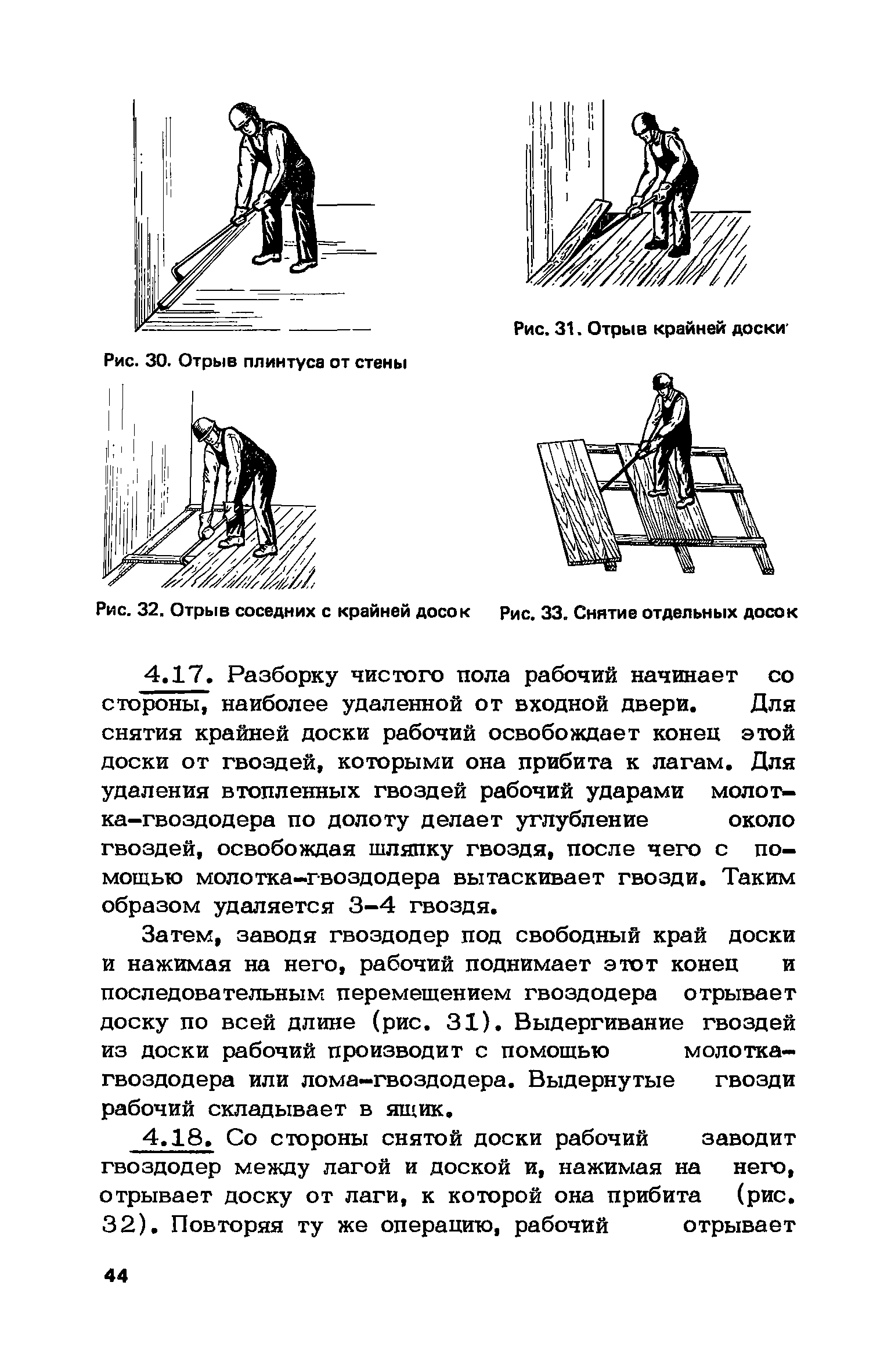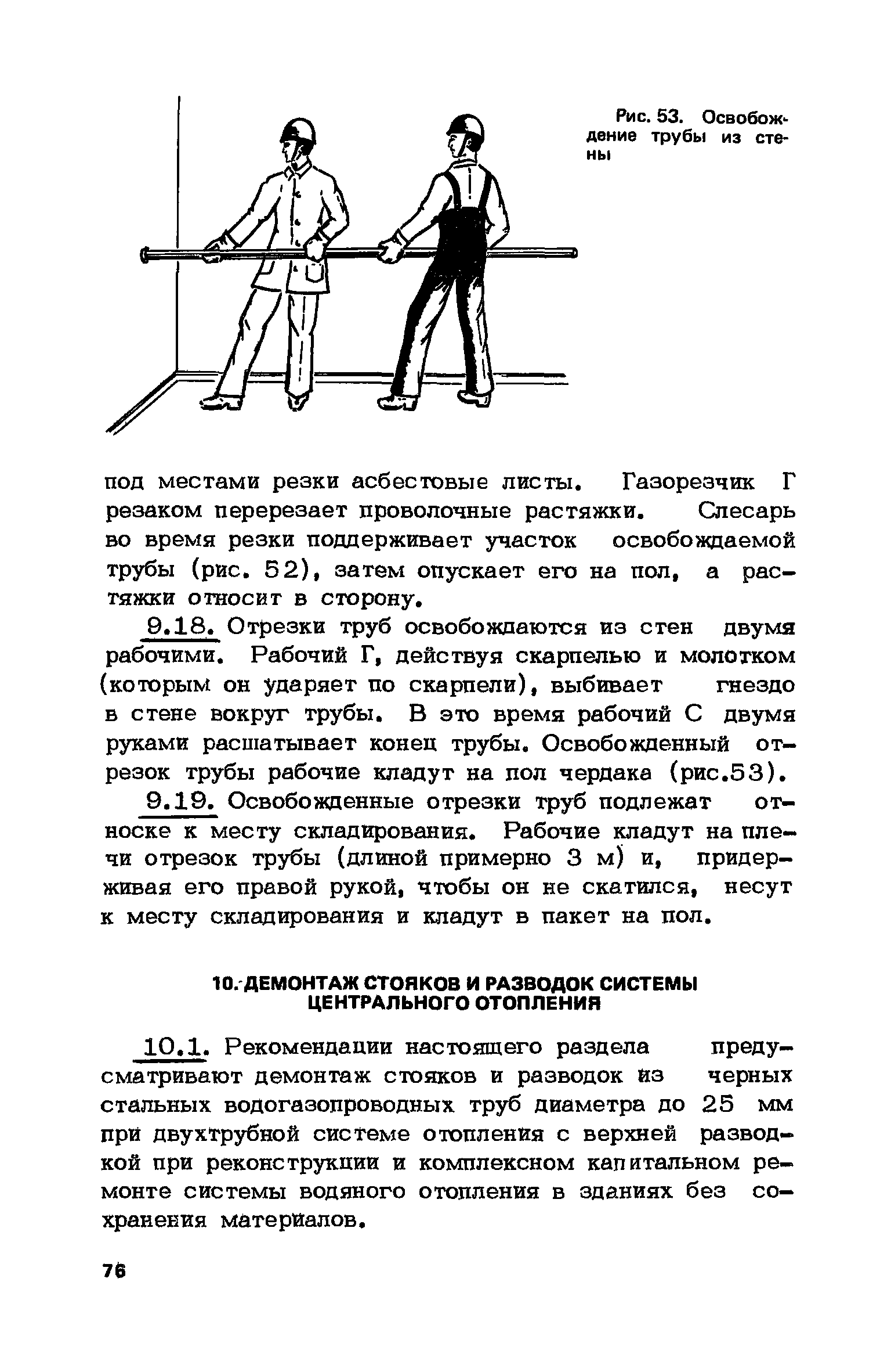 | Оглавление: | Введение Выпуск 1. Разборка строительных конструкций 1. Общие положения 2. Разборка крыш 3. Разборка перекрытий 4. Разборка полов 5. Разборка деревянных перекрытий 6. Разборка оконных заполнений 7. Разборка печей Выпуск II. Демонтаж инженерного оборудования 8. Общие положения 9. Демонтаж разводящих магистралей системы центрального отопления 10. Демонтаж стояков и разводок системы центрального отопления |