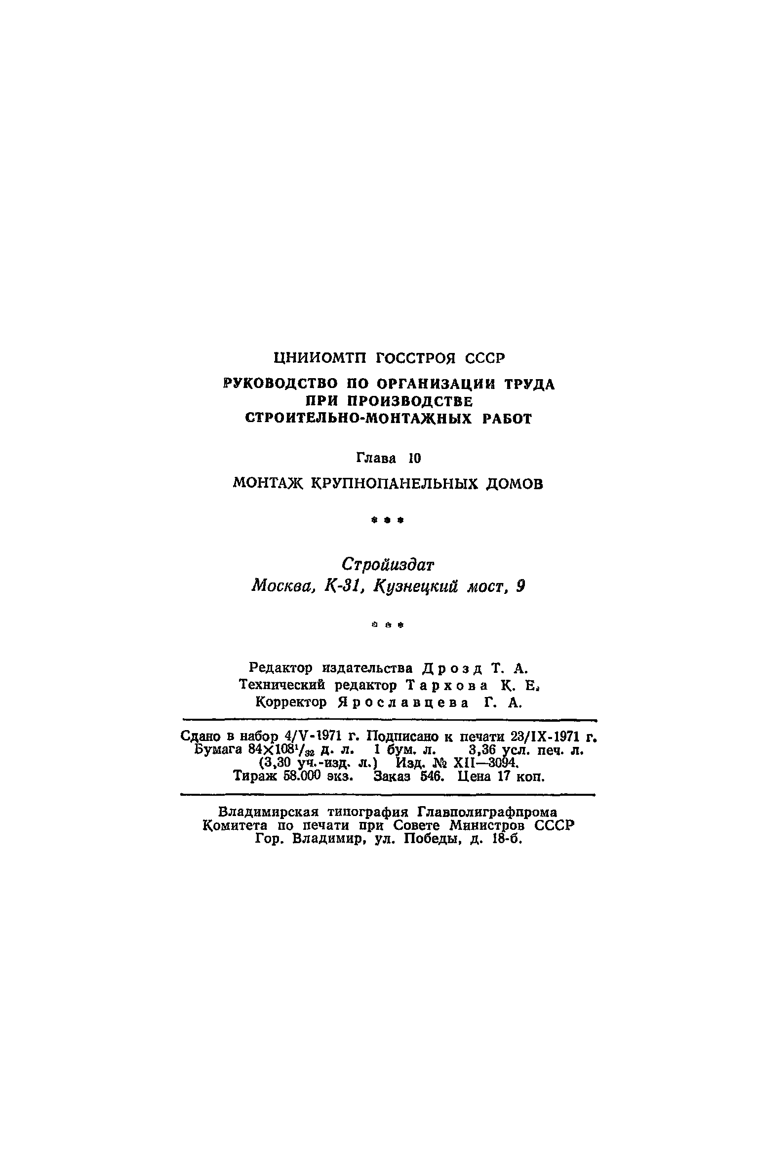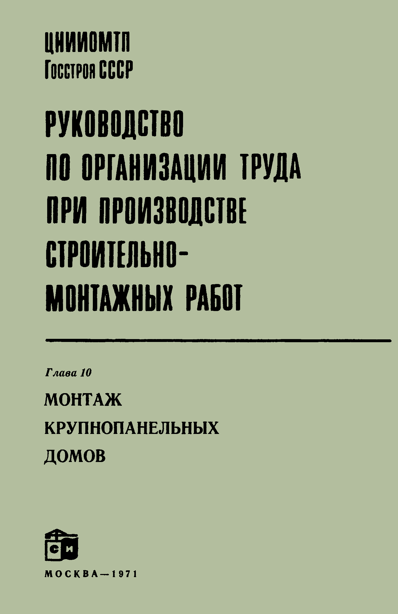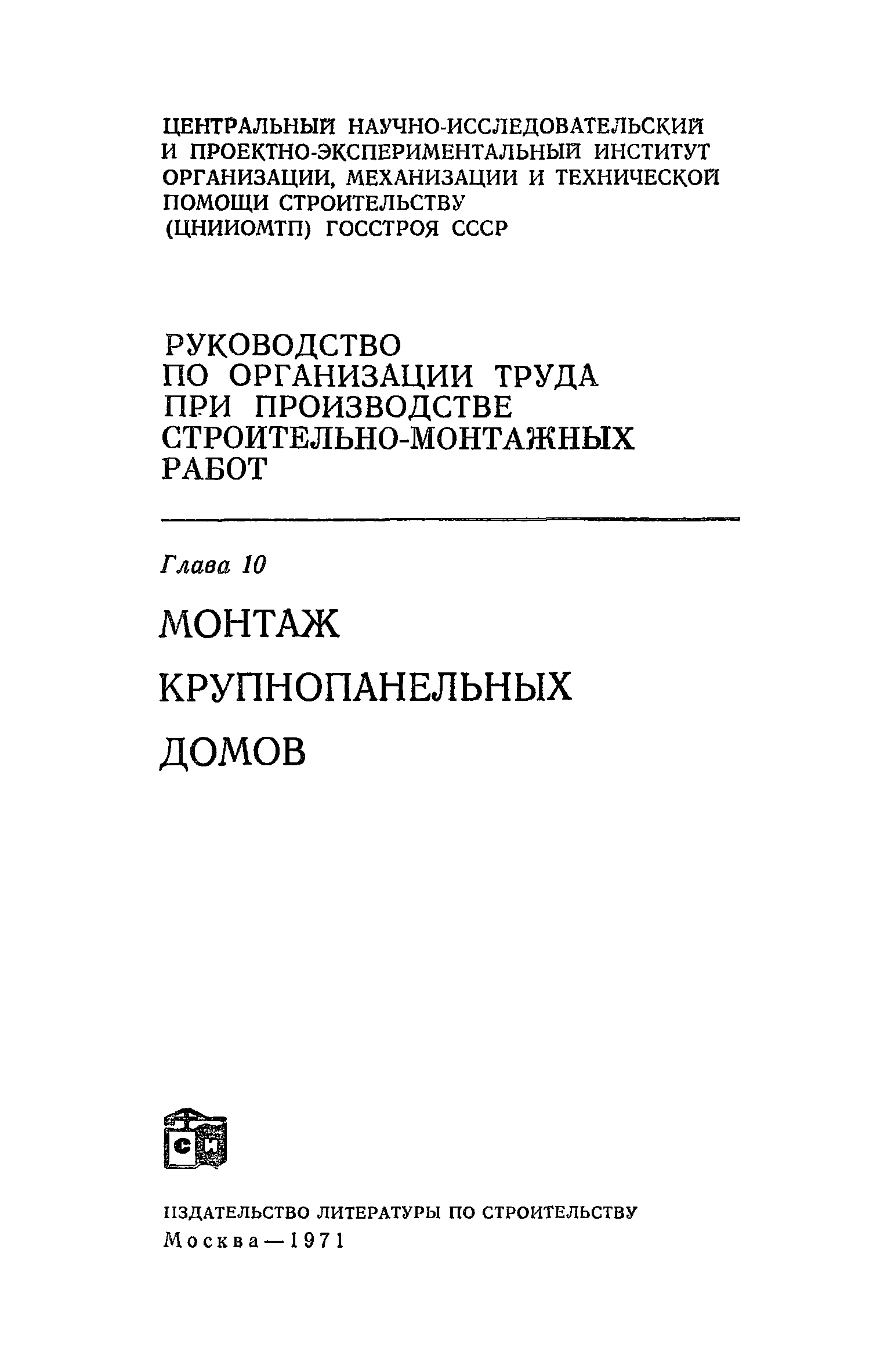 | Название рус.: | Руководство по организации труда при производстве строительно-монтажных работ. Глава 10. Монтаж крупнопанельных домов |