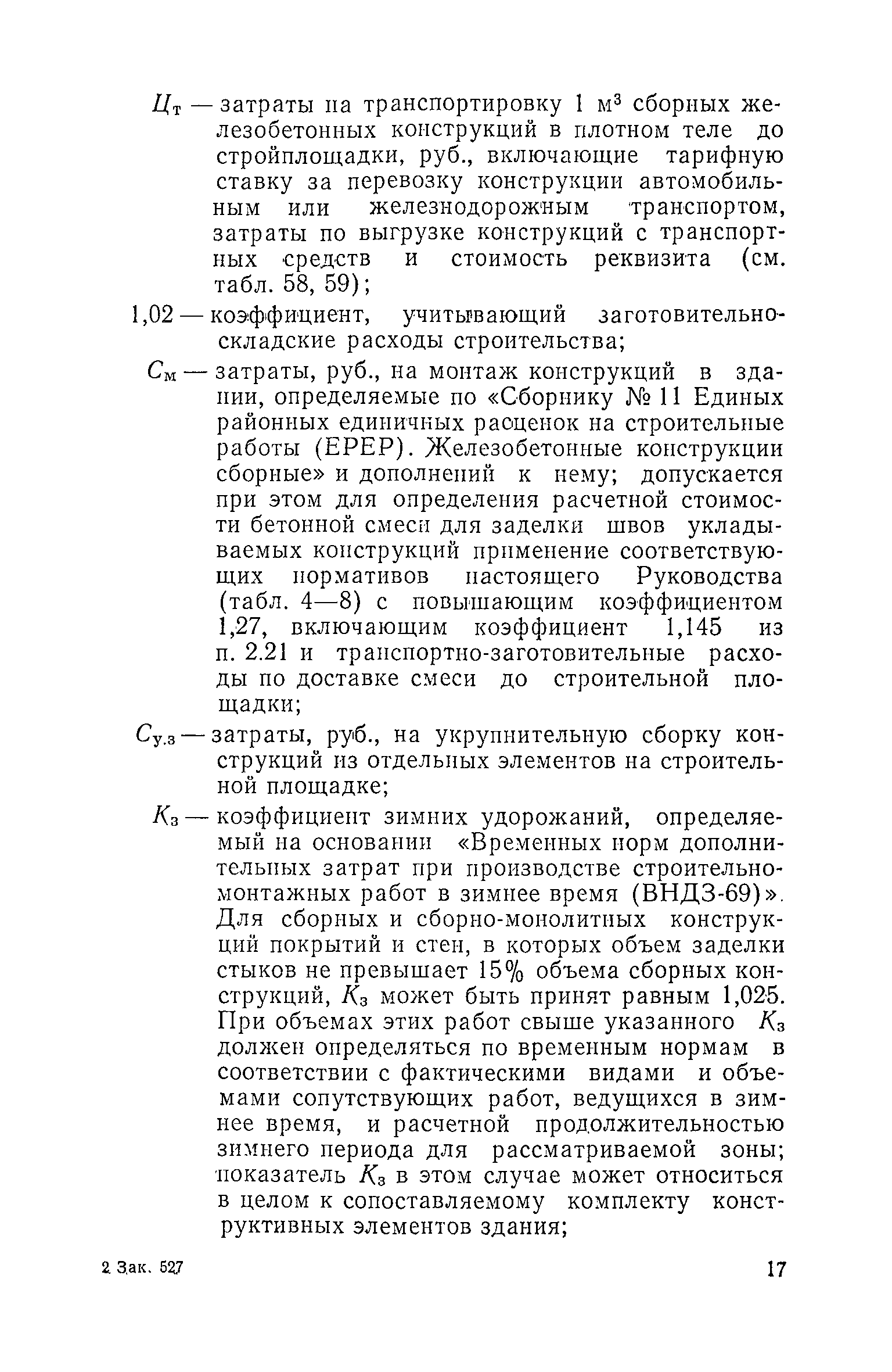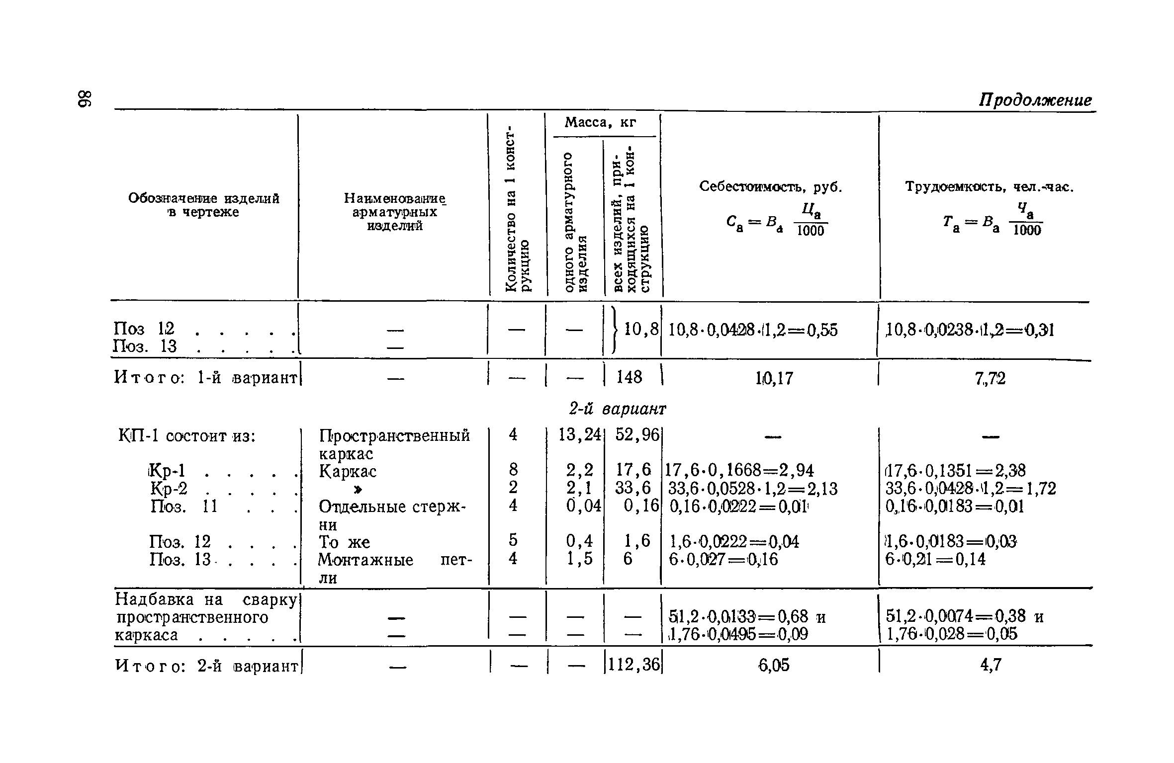 Руководство по определению расчетной стоимости и трудоемкости изготовления сборных железобетонных конструкций на стадии проектирования. Конструкции производственных сельскохозяйственных зданий и гидромелиоративного строительства| Статус: | справочные материалы, мп, тпр | | Название рус.: | Руководство по определению расчетной стоимости и трудоемкости изготовления сборных железобетонных конструкций на стадии проектирования. Конструкции производственных сельскохозяйственных зданий и гидромелиоративного строительства | | Дата добавления в базу: | 01.10.2014 | | Дата актуализации: | 01.01.2021 | | Область применения: | Руководство содержит основные методические положения и нормативы, позволяющие рассчитать себестоимость, трудоемкость и другие технико-экономические показатели вновь создаваемых конструкций и изделий из сборного железобетона производственных сельскохозяйственных зданий и гидромелиоративного строительства. Руководство предназначено для инженерно-технических работников проектных и научно-исследовательских организаций, занятых разработкой, проектированием и внедрением новых видов конструкций. | | Оглавление: | Предисловие 1. Основные положения 2. Методика определения технико-экономических показателей Определение расчетной производственной себестоимости и технологической трудоемкости изготовления конструкций и изделий Себестоимость бетонной смеси, трудовые затраты на ее приготовление и расход вяжущих Затраты на сталь, себестоимость и трудоемкость изготовления арматурных элементов и закладных деталей Определение себестоимости и трудоемкости работ и операций, осуществляемых в формовочном цехе Определение полной расчетной стоимости конструкций и расчетной себестоимости конструкций "в деле" Выбор технологии изготовления конструкций и параметров бетонной смеси (для тяжелого и легкого бетонов) 3. Нормативы для расчета себестоимости и трудоемкости изготовления конструкций Коэффициенты расхода бетонной смеси, себестоимость бетонной смеси и трудоемкость ее приготовления Расход вяжущих Коэффициенты расхода стали Цена арматурной стали Себестоимость и трудоемкость переработки арматурной стали Себестоимость и трудоемкость формования 1 м3 конструкций Затраты на содержание и эксплуатацию форм на 1 м3 бетона конструкций Себестоимость пара на тепловую обработку 1 м3 конструкций Себестоимость и трудоемкость укрупнительной сборки конструкций Себестоимость и трудоемкость операций по повышению заводской готовности конструкций Затраты на транспортирование 1 м3 сборных железобетонных конструкций (в плотном теле) от завода-изготовителя до строительной площадки Приложение. Примеры расчетов Пример 1. Сравнение производственной себестоимости и трудоемкости изготовления прямоугольных пустотных балок (новое решение) и тавровых балок сплошного сечения (эталон) Пример 2. Сравнение производственной себестоимости и трудоемкости изготовления напрягаемых (новое решение) и ненапрягаемых (эталон) объемных стеновых блоков для силосов, размер ячейки 3Х3 м Пример 3. Сравнение расчетной себестоимости и трудоемкости изготовления параболических и эллиптических лотков длиной 8 м, глубиной 120 и 110 см для оросительных каналов длиной 8 м, глубиной 120 и 110 см для оросительных каналов | | Разработан: | НИИЭС Госстроя СССР НИИЖБ 