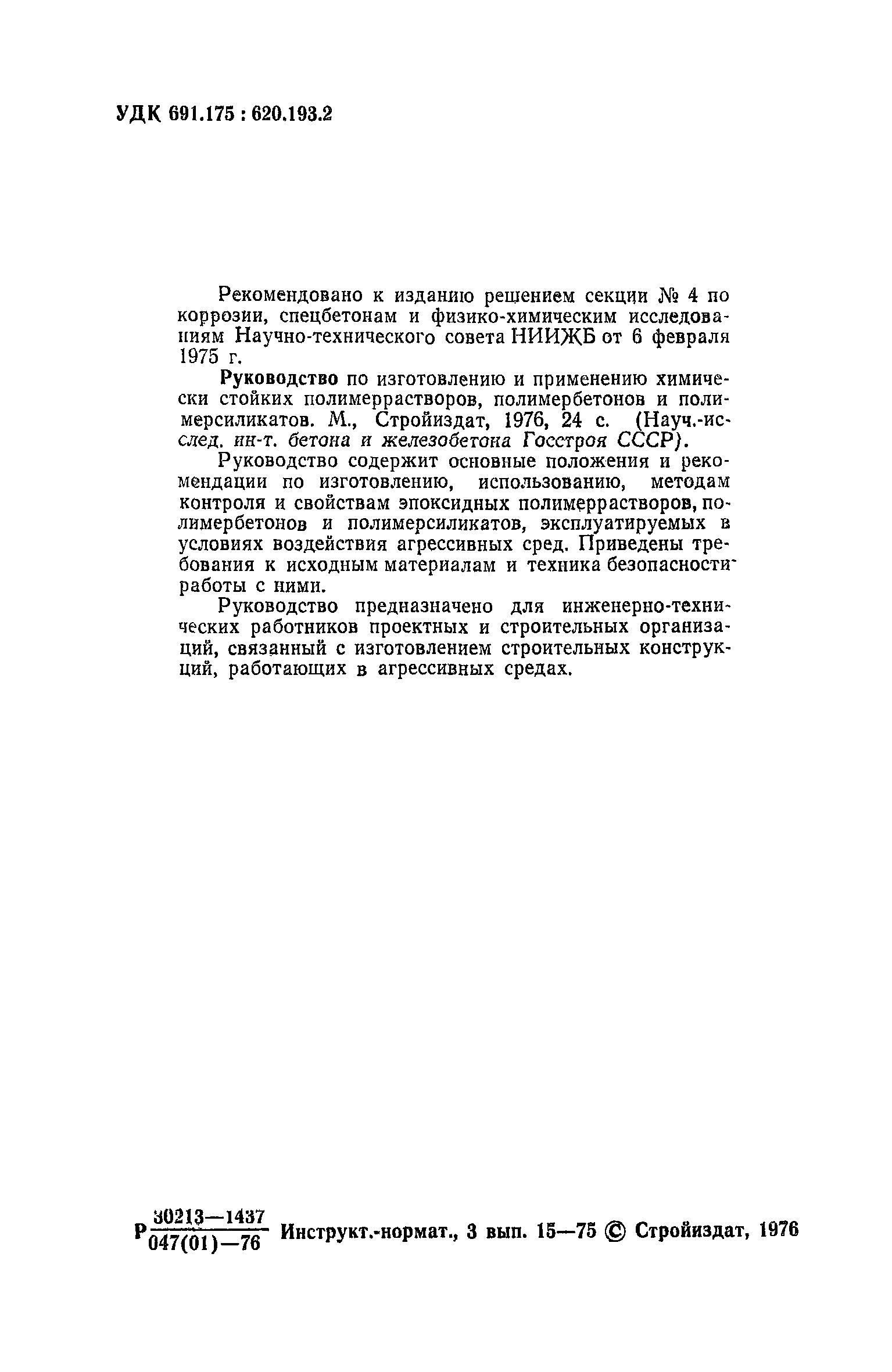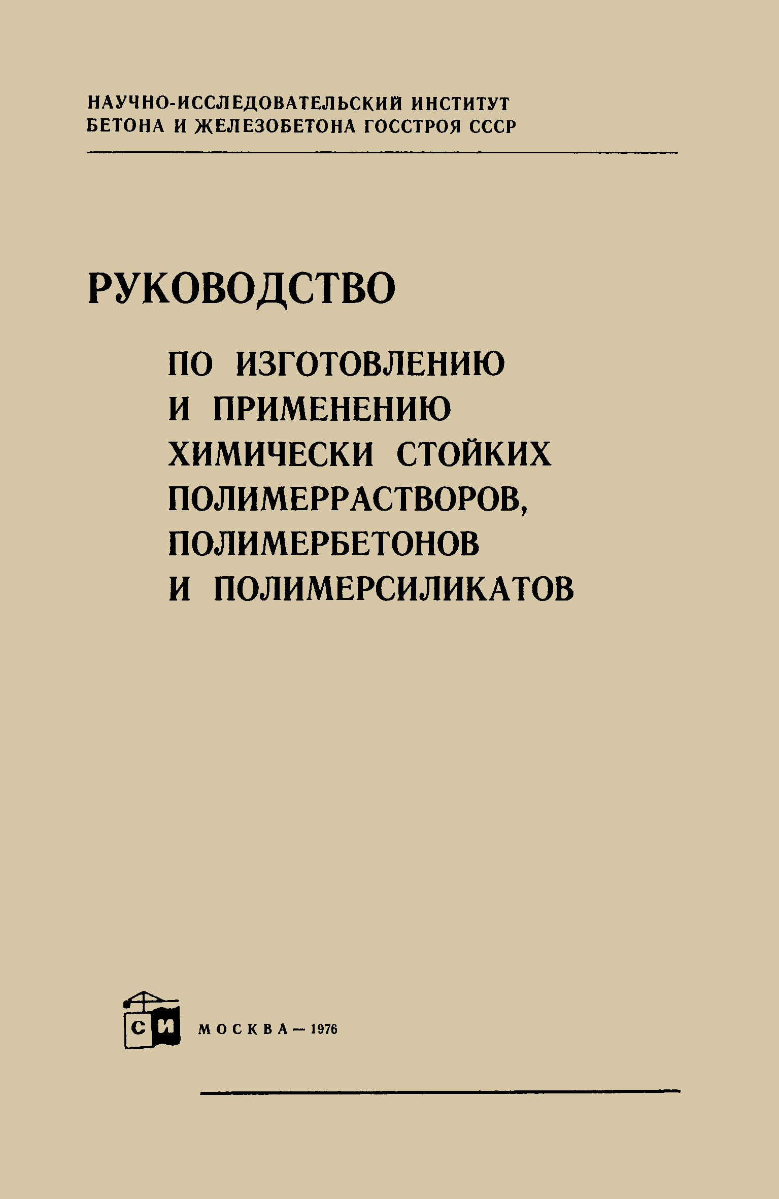 | Название рус.: | Руководство по изготовлению и применению химически стойких полимеррастворов, полимербетонов и полимерсиликатов |
