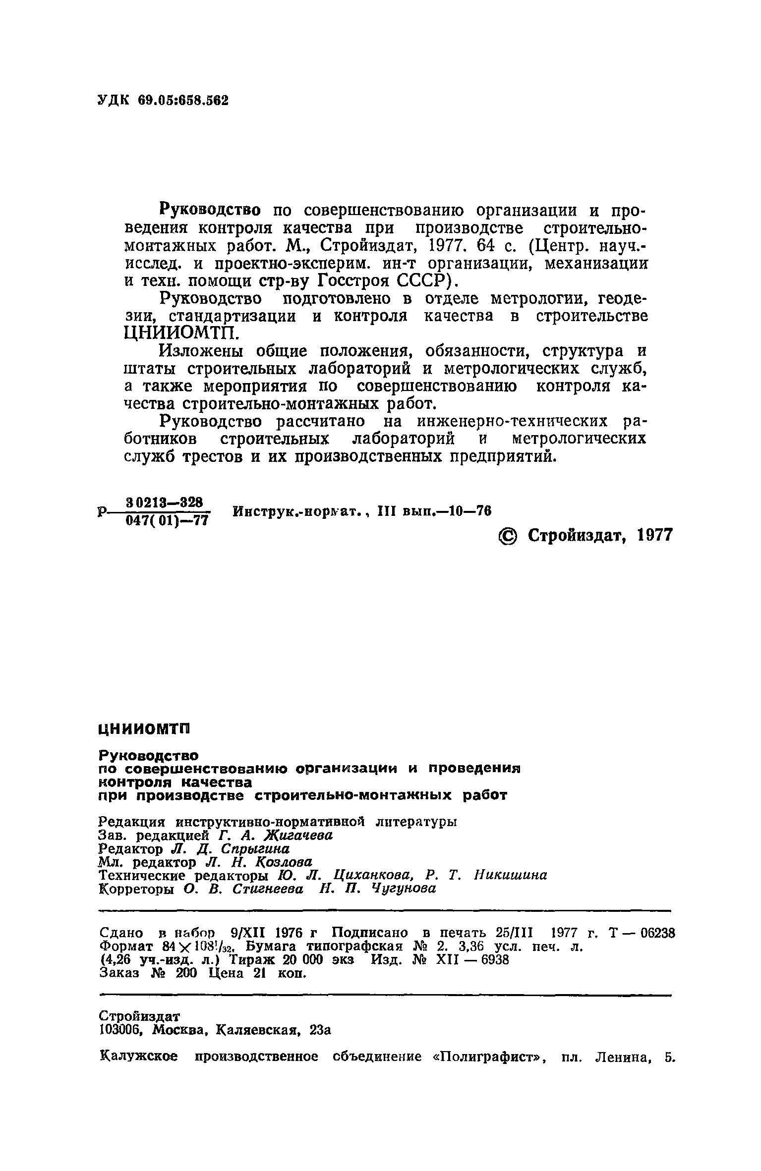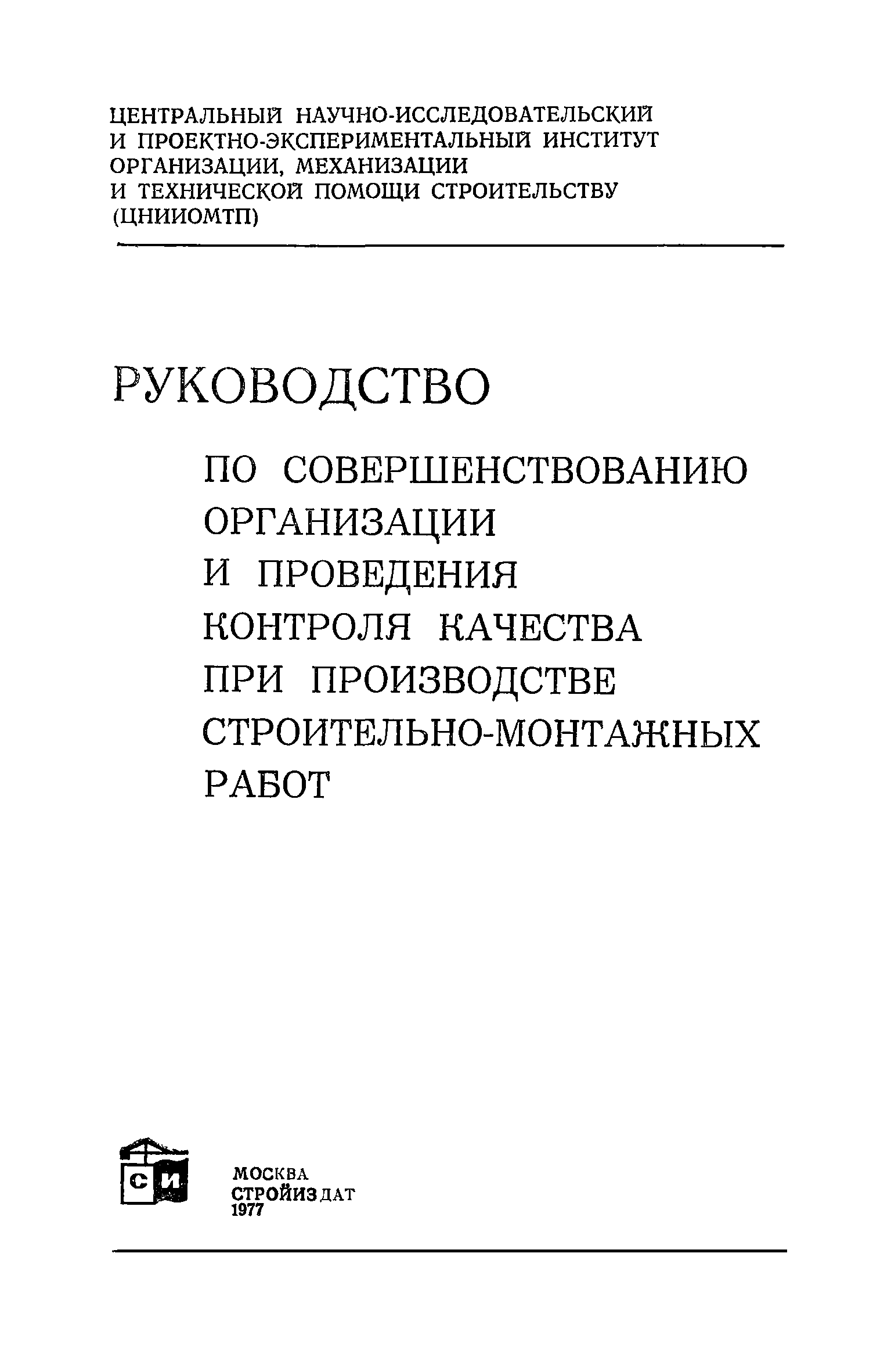 | Название рус.: | Руководство по совершенствованию организации и проведения контроля качества при производстве строительно-монтажных работ |