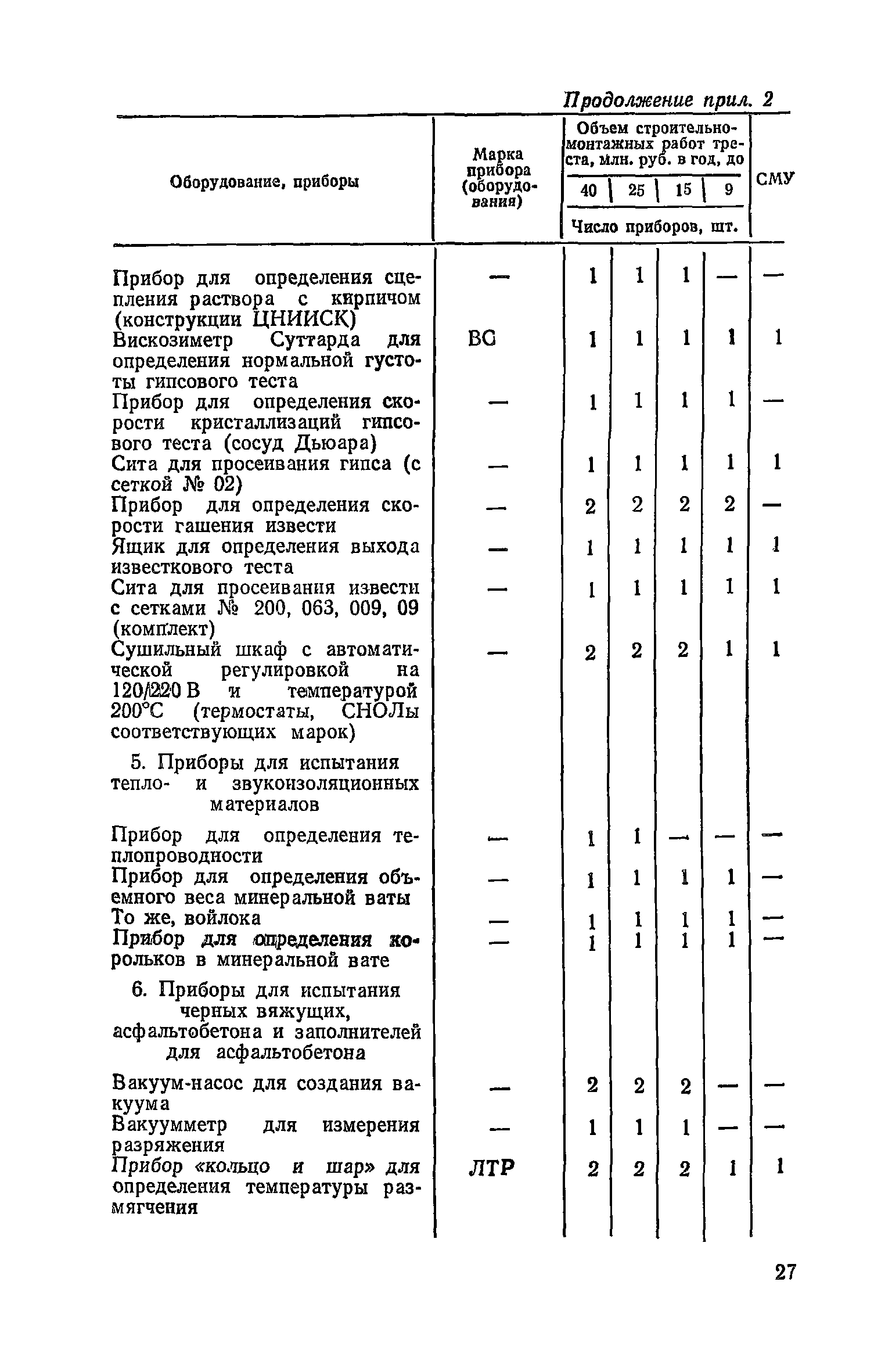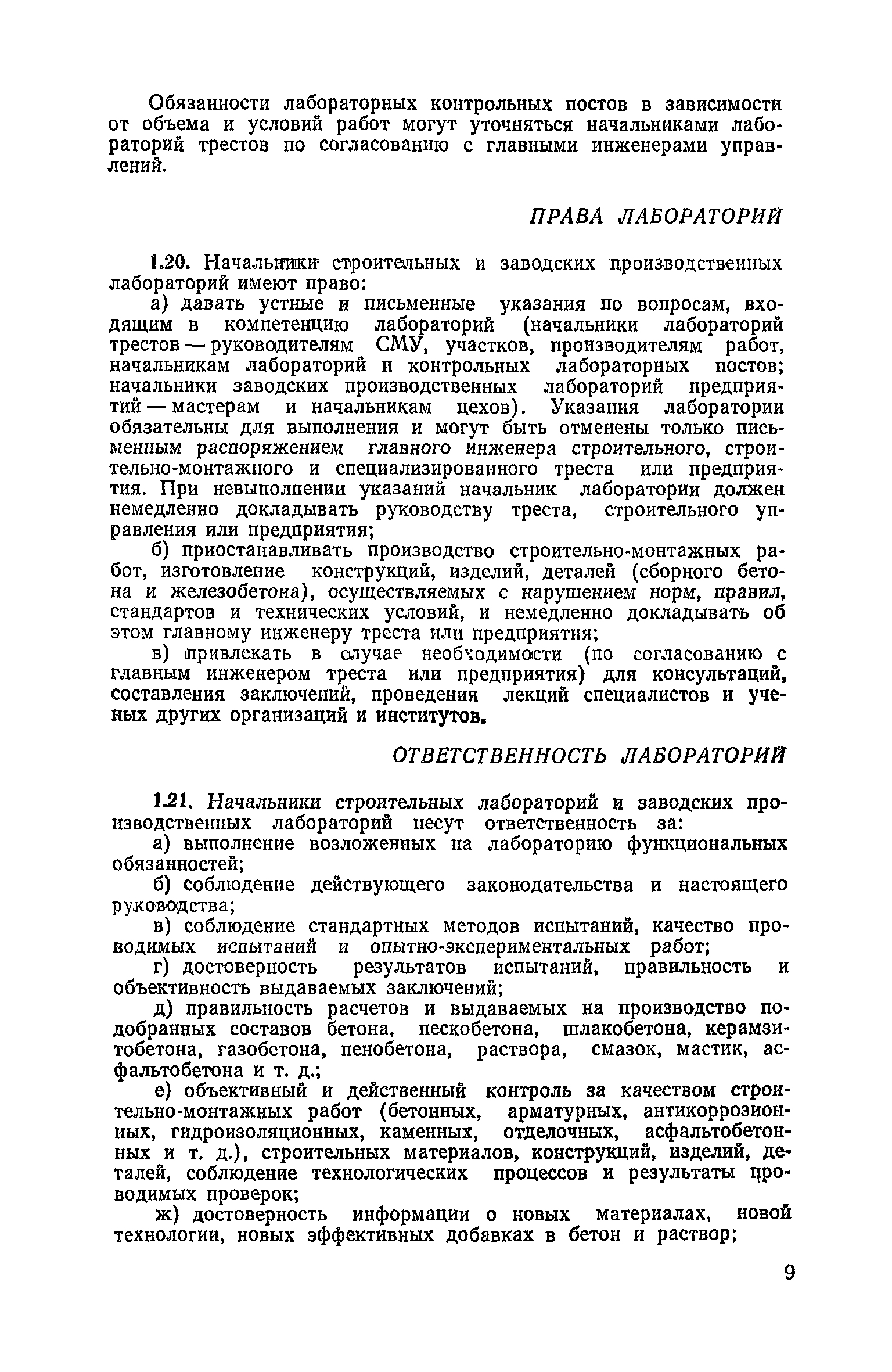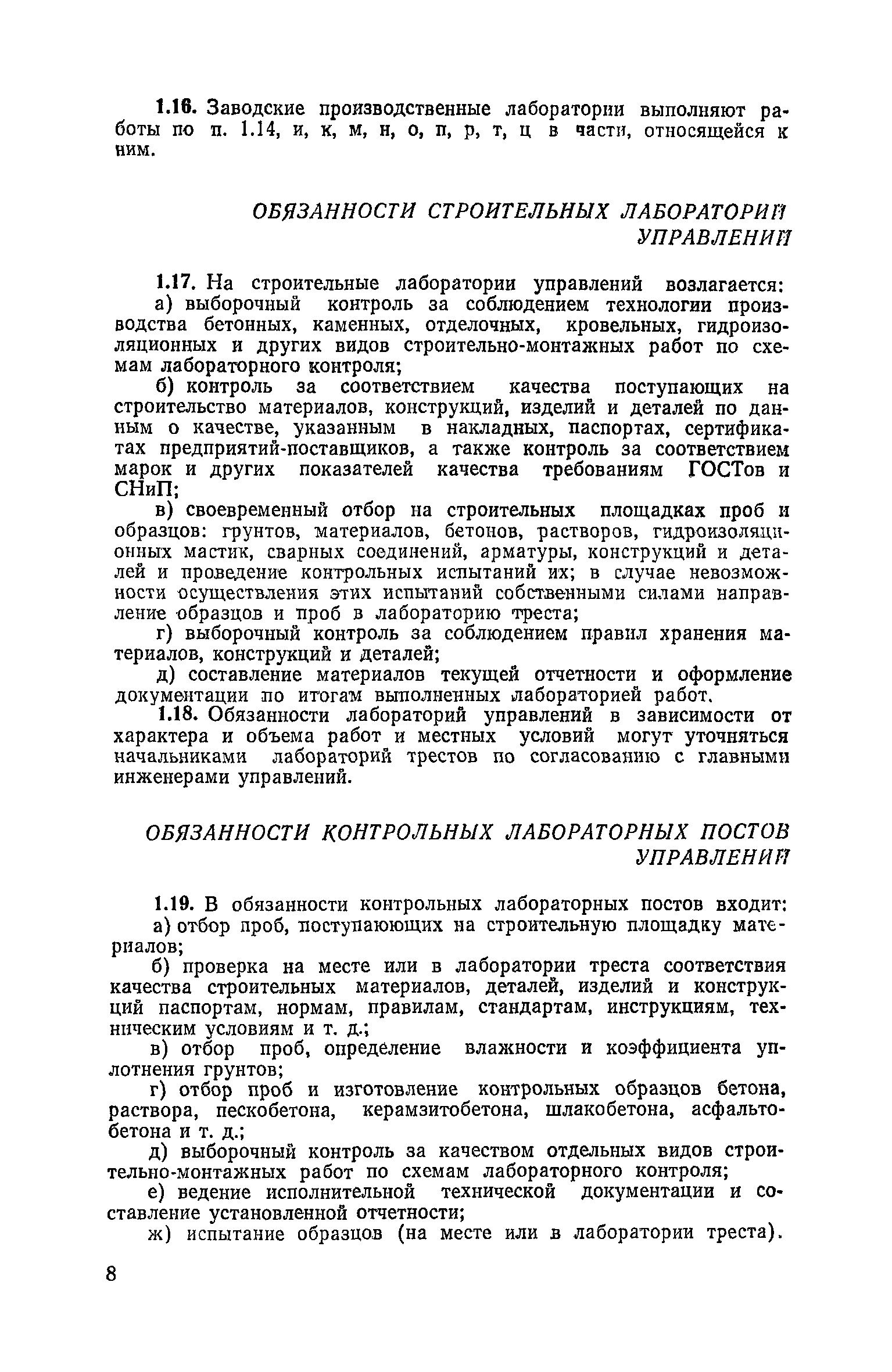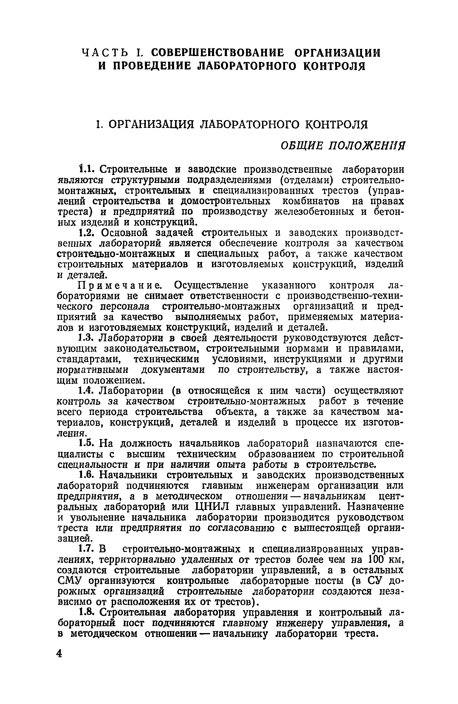 | Оглавление: | Предисловие Часть 1. Совершенствование организации и проведение лабораторного контроля 1. Организация лабораторного контроля 2. Проведение лабораторного контроля Часть II. Совершенствование организации и проведения метрологического контроля 3. Организация метрологической службы в строительно-монтажных организациях (трестах и СМУ) и на предприятиях 4. Проведение метрологического контроля качества продукции при производстве строительно-монтажных работ Приложение 1. Рекомендуемые структура и штаты строительных и заводских производственных лабораторий Приложение 2. Рекомендуемый перечень основного типового оборудования для строительных лабораторий трестов и строительных управлений Приложение 3. Рекомендуемая площадь служебных помещений строительных и заводских производственных лабораторий, м2 Приложение 4. Схема пооперационного лабораторного контроля за качеством строительных материалов и строительно-монтажных работ Приложение 5. Перечень основных документов, оформляемых во время строительно-монтажных работ Приложение 6. Программа обучения лаборантов строительных лабораторий Приложение 7. Основные требования по технике безопасности и размещению оборудования в лабораториях измерительной техники метрологической службы Приложение 8. Подготовка и квалификация кадров метрологической службы организаций Приложение 9. Основные положения Государственной системы обеспечения единства измерений Список использованной литературы |