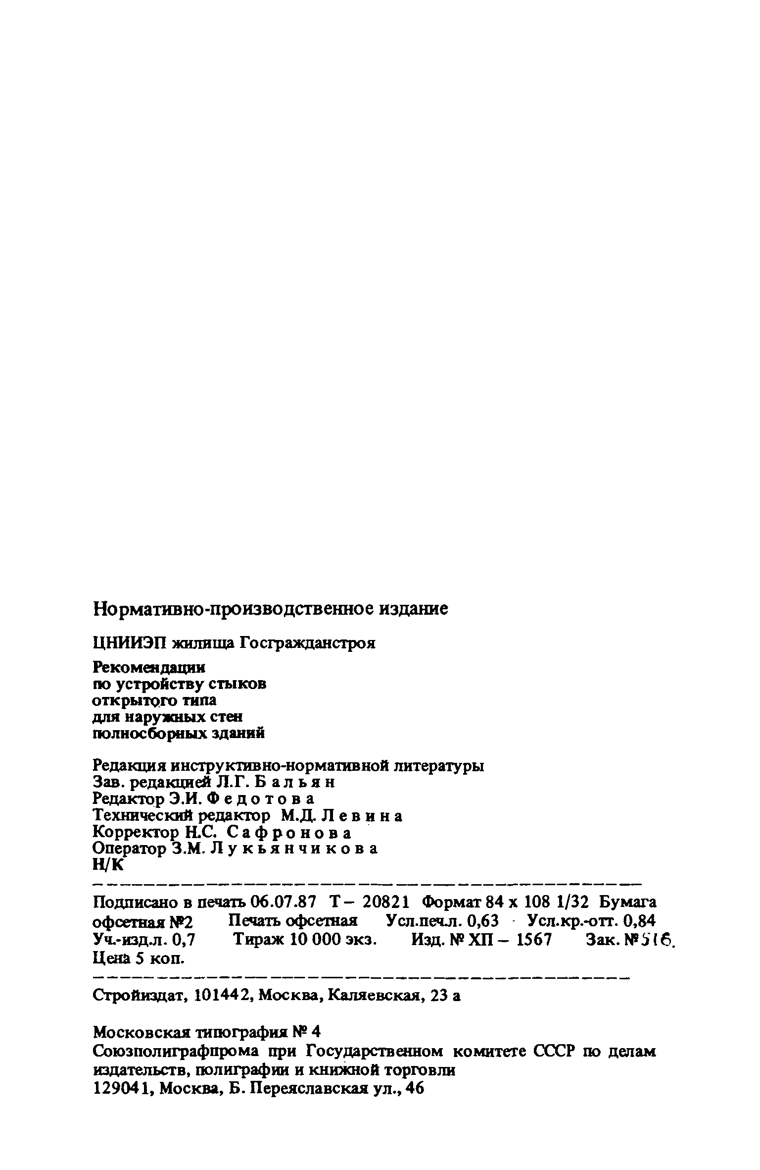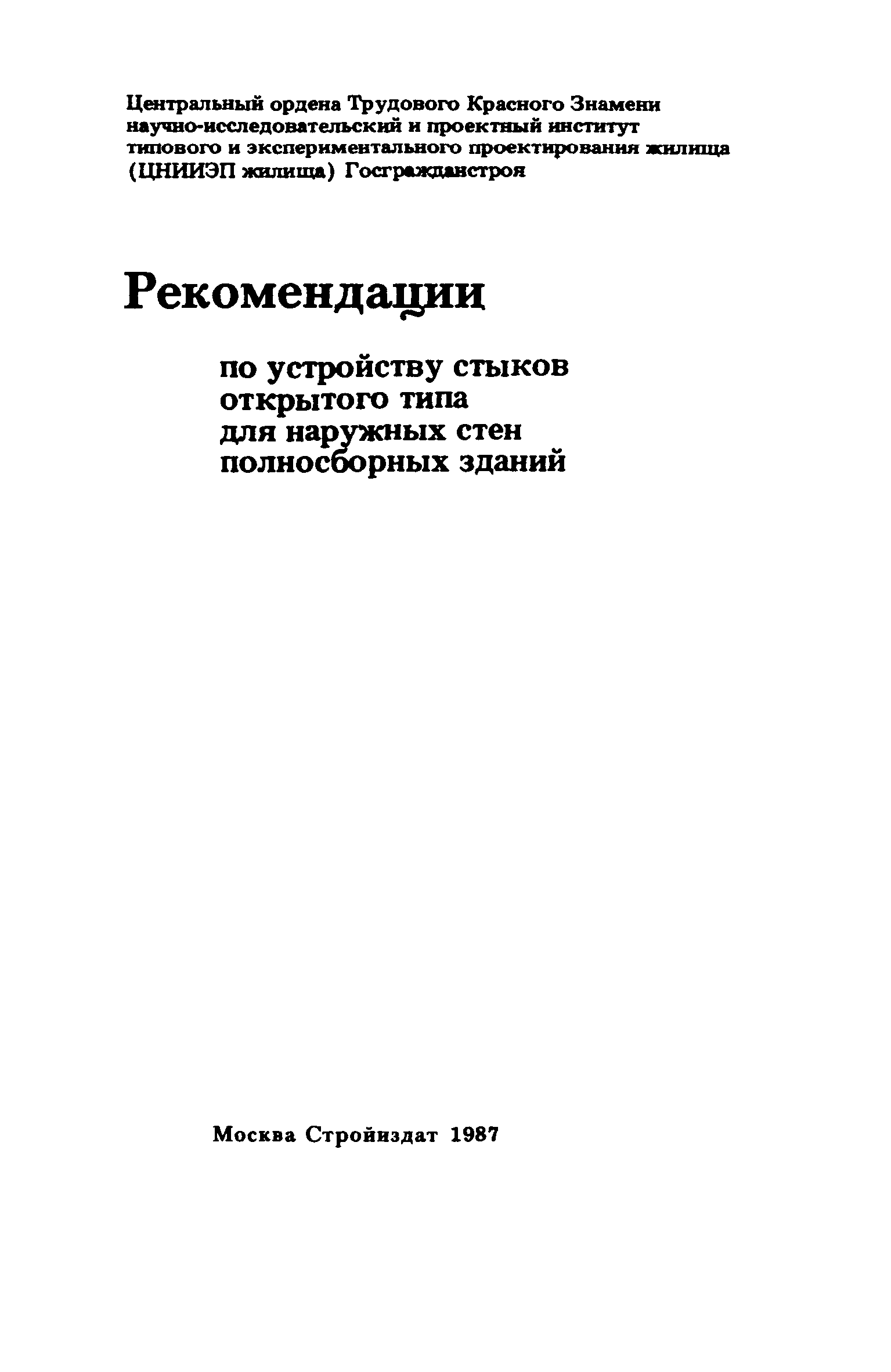 | Название рус.: | Рекомендации по устройству стыков открытого типа для наружных стен полносборных зданий |