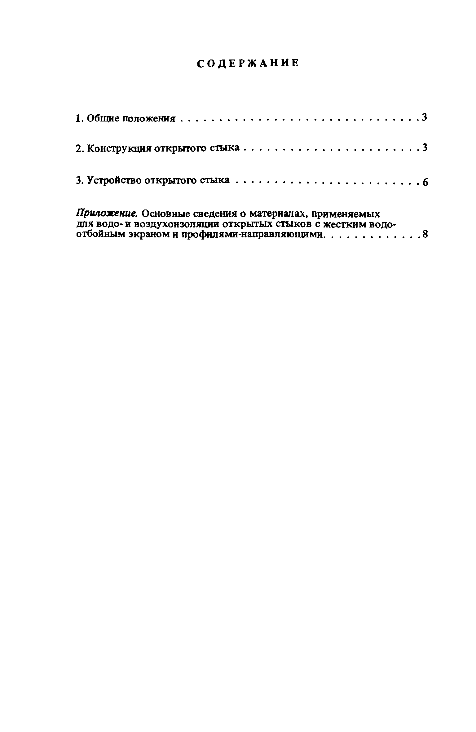 | Оглавление: | 1. Общие положения 2. Конструкция открытого стыка 3. Устройство открытого стыка Приложение. Основные сведения о материалах, применяемых для водо- и воздухоизоляции открытых стыков с жестким водоотбойным экраном и профилями-направляющими |
