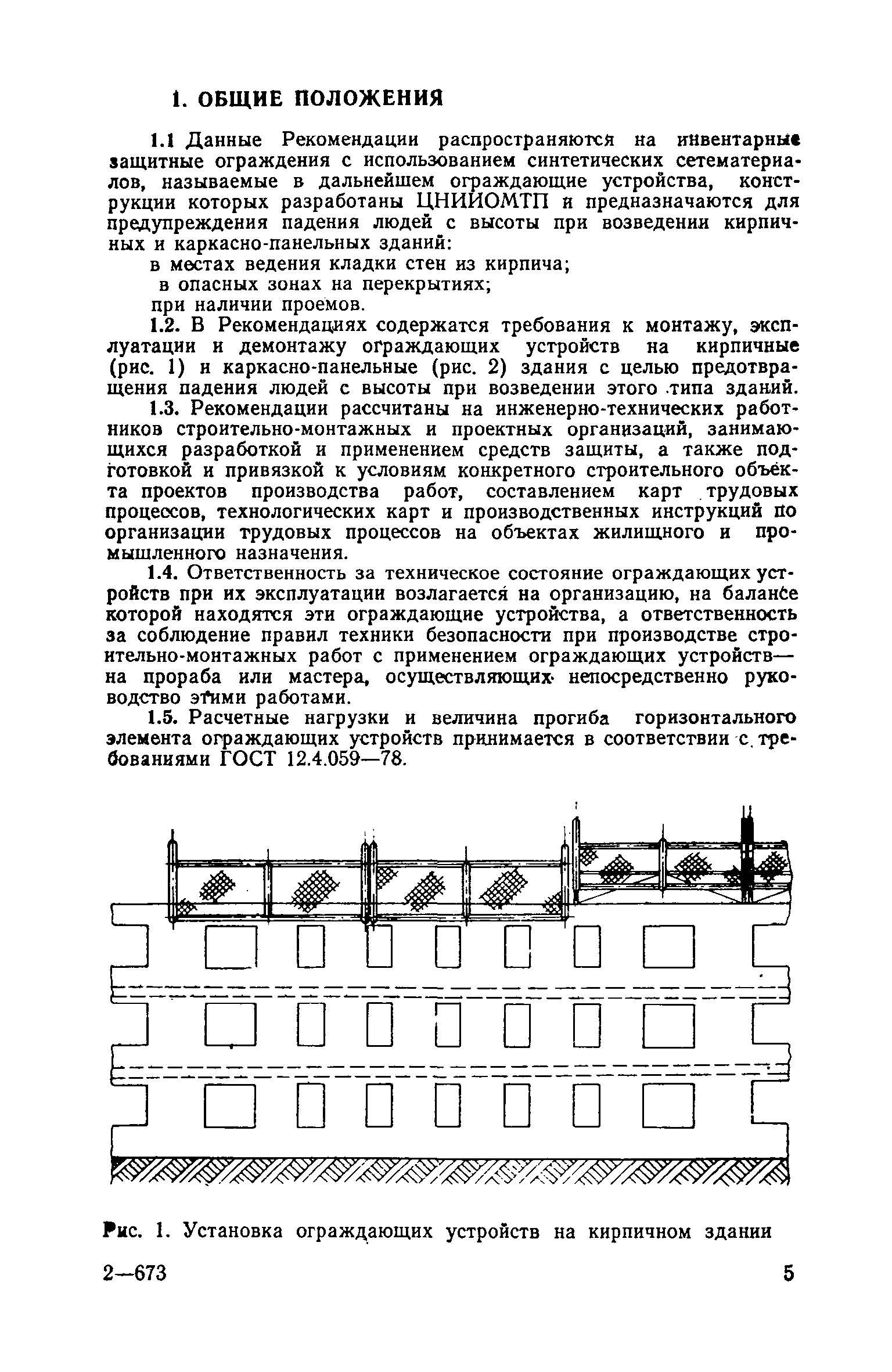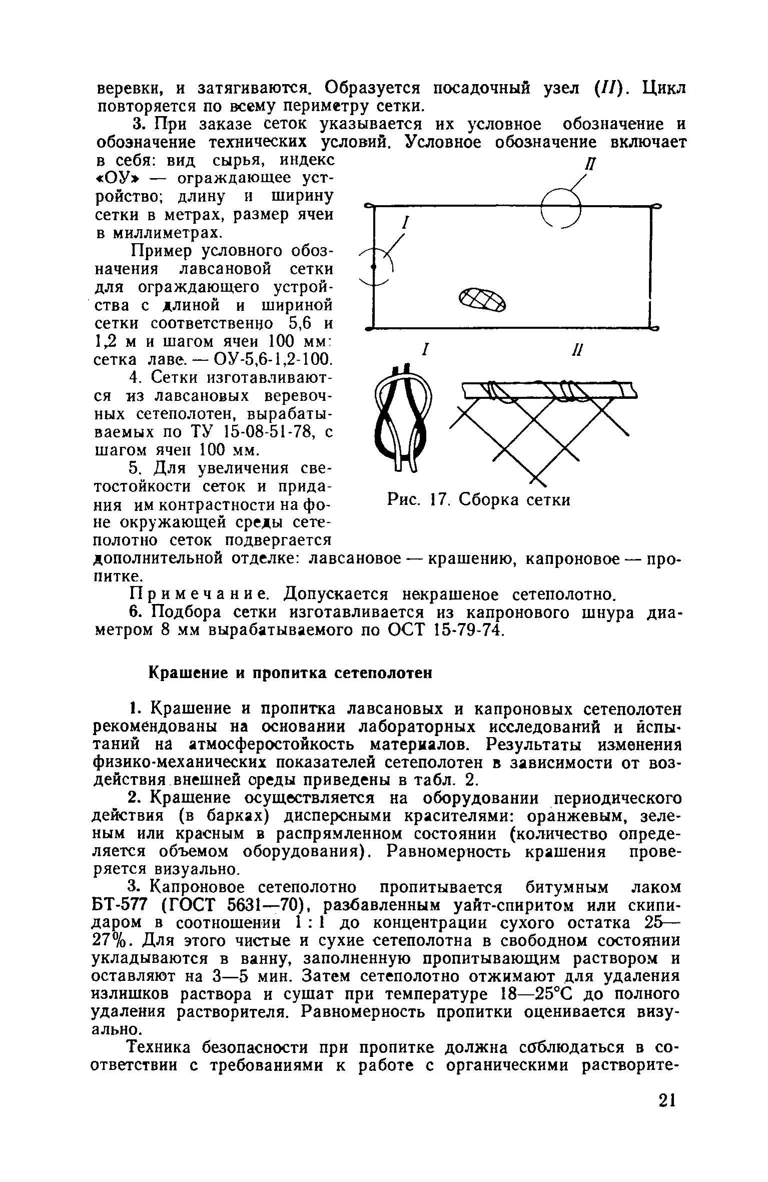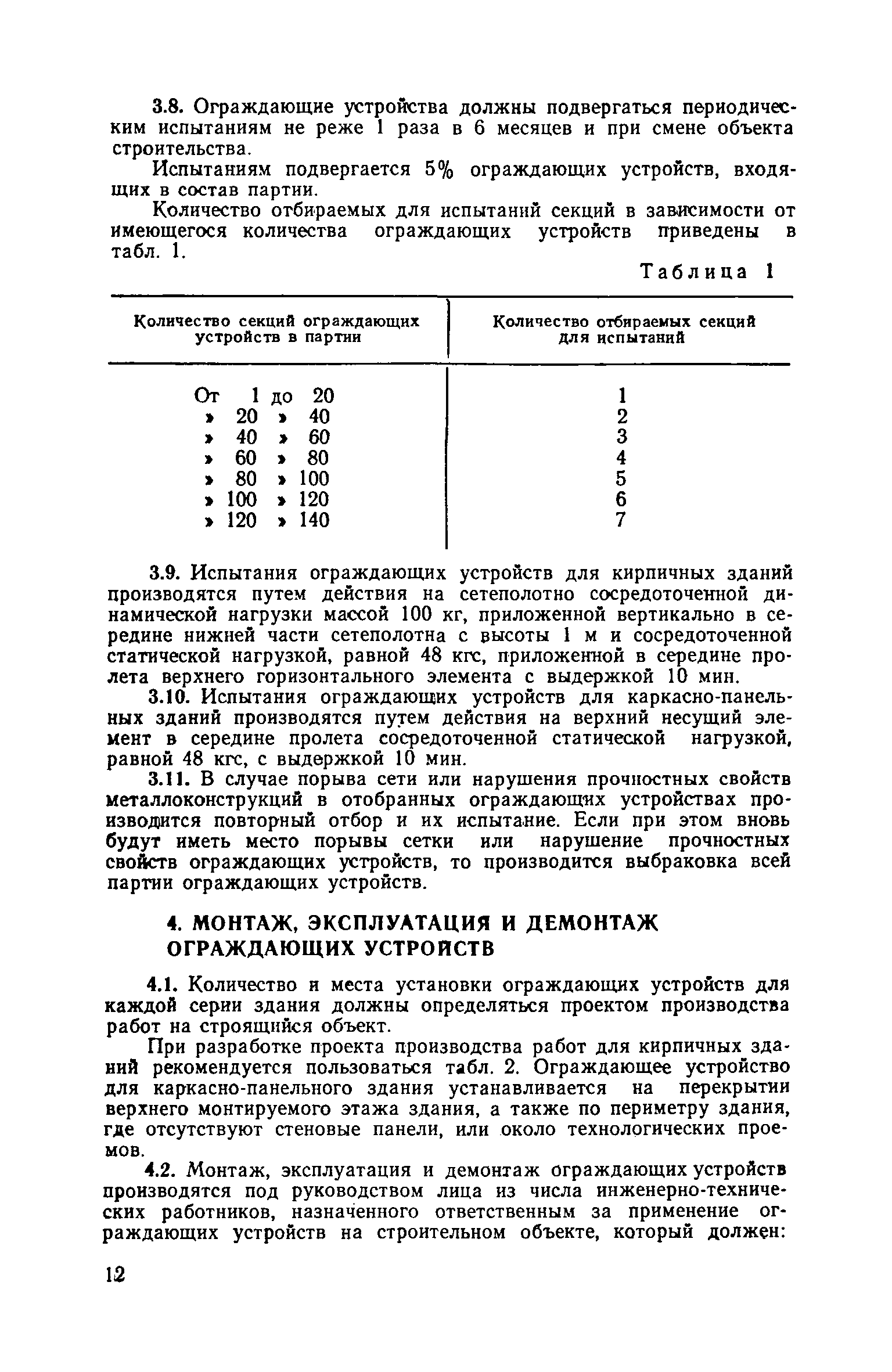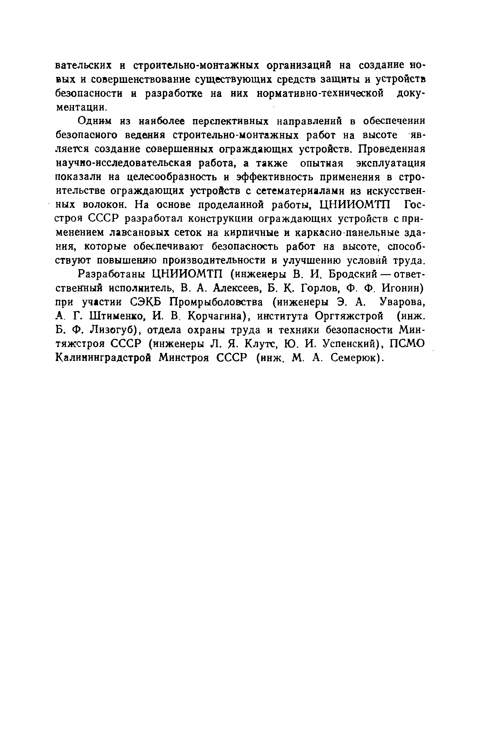 | Оглавление: | Введение 1. Общие положения 2. Характеристика конструкций ограждающих устройств . 3. Правила приемки, испытаний и контроля за состоянием ограждающих устройств на строительной площадке 4. Монтаж, эксплуатация и демонтаж ограждающих устройств 5. Требования техники безопасности 6. Транспортирование и хранение Приложение 1. Технология изготовления сеток ограждающих устройств Приложение 2. Методы проверки сетеполотна Термины и определения |