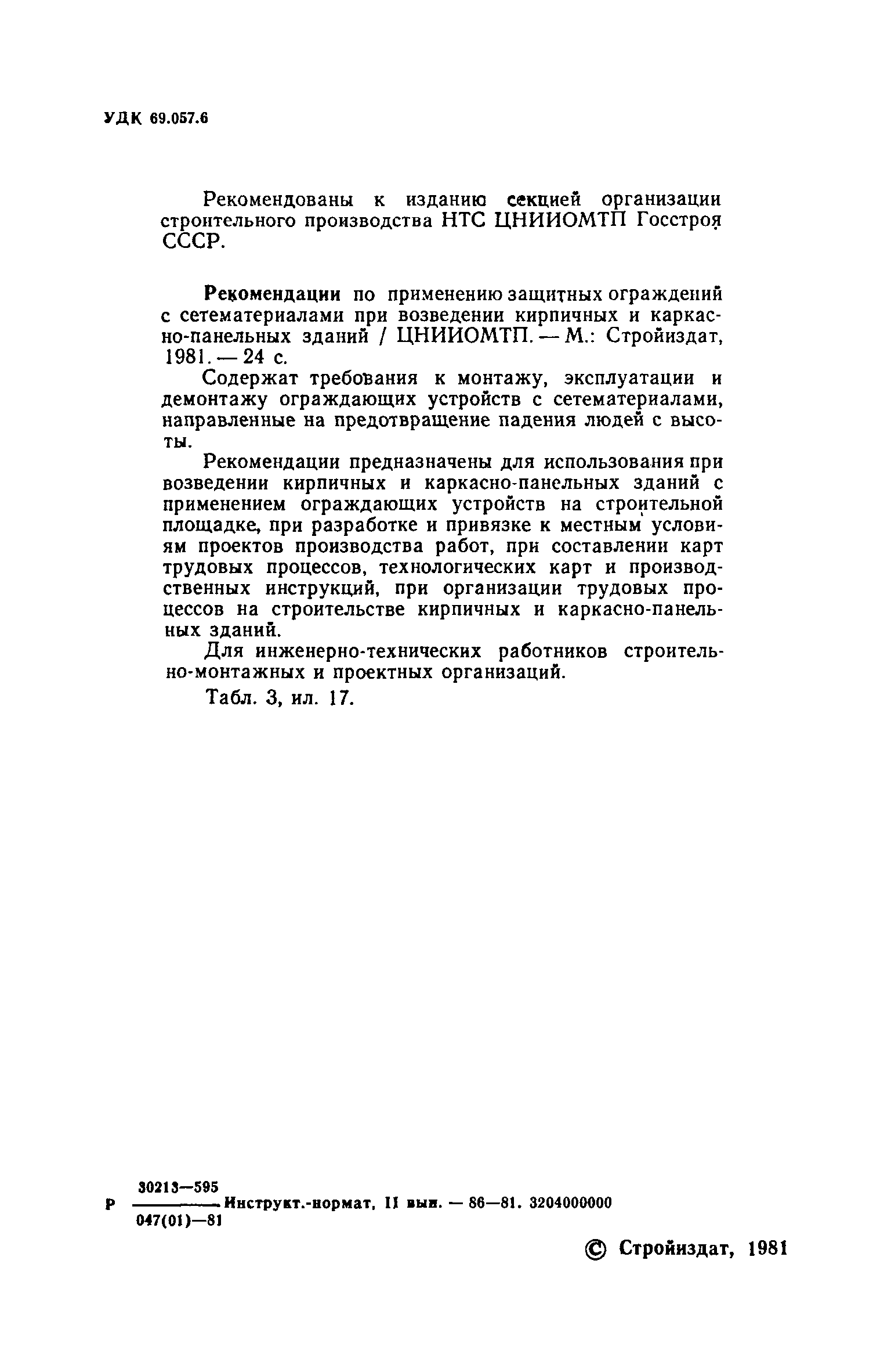 | Название рус.: | Рекомендации по применению защитных ограждений с сетематериалами при возведении кирпичных и каркасно-панельных зданий |