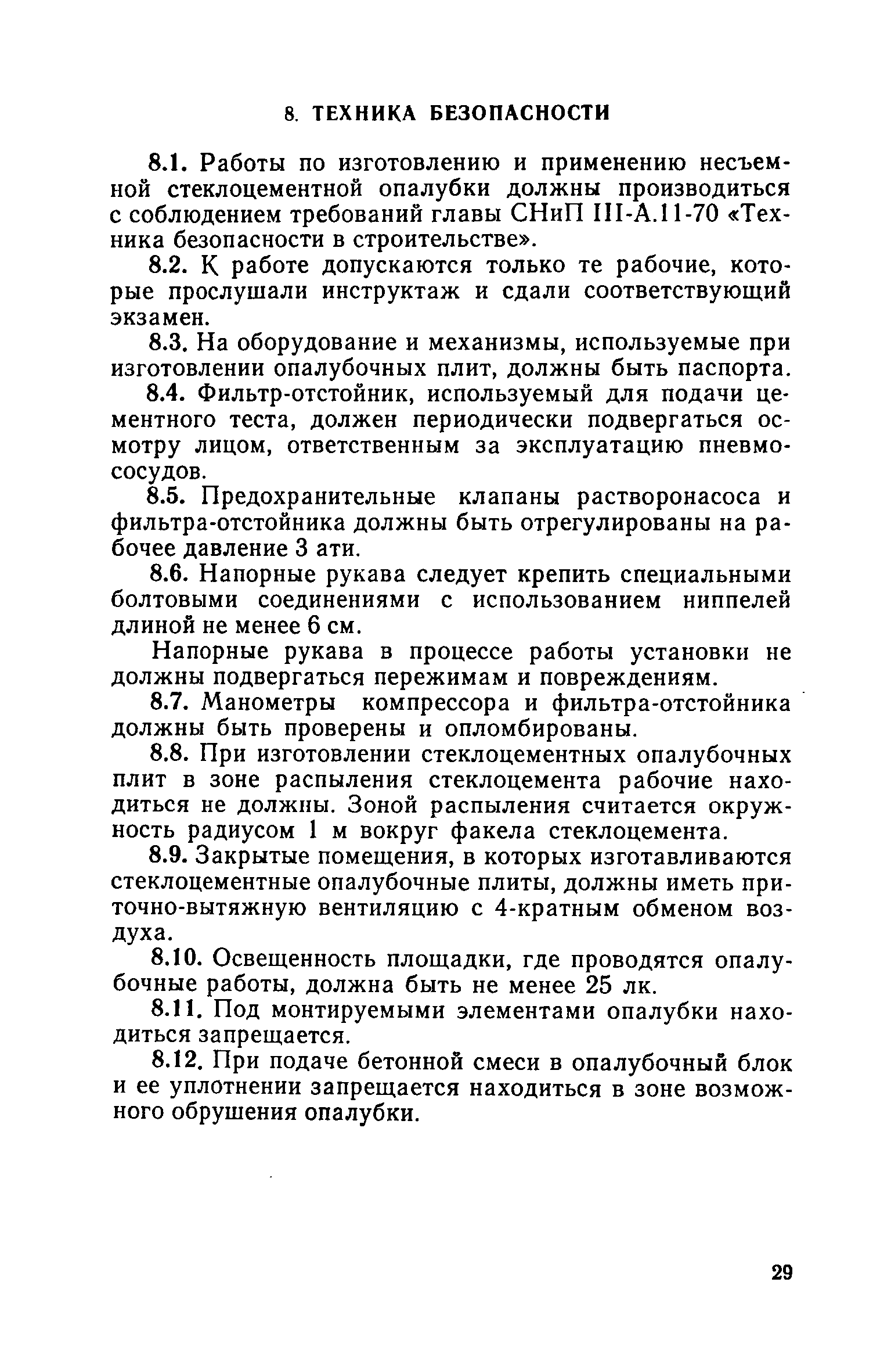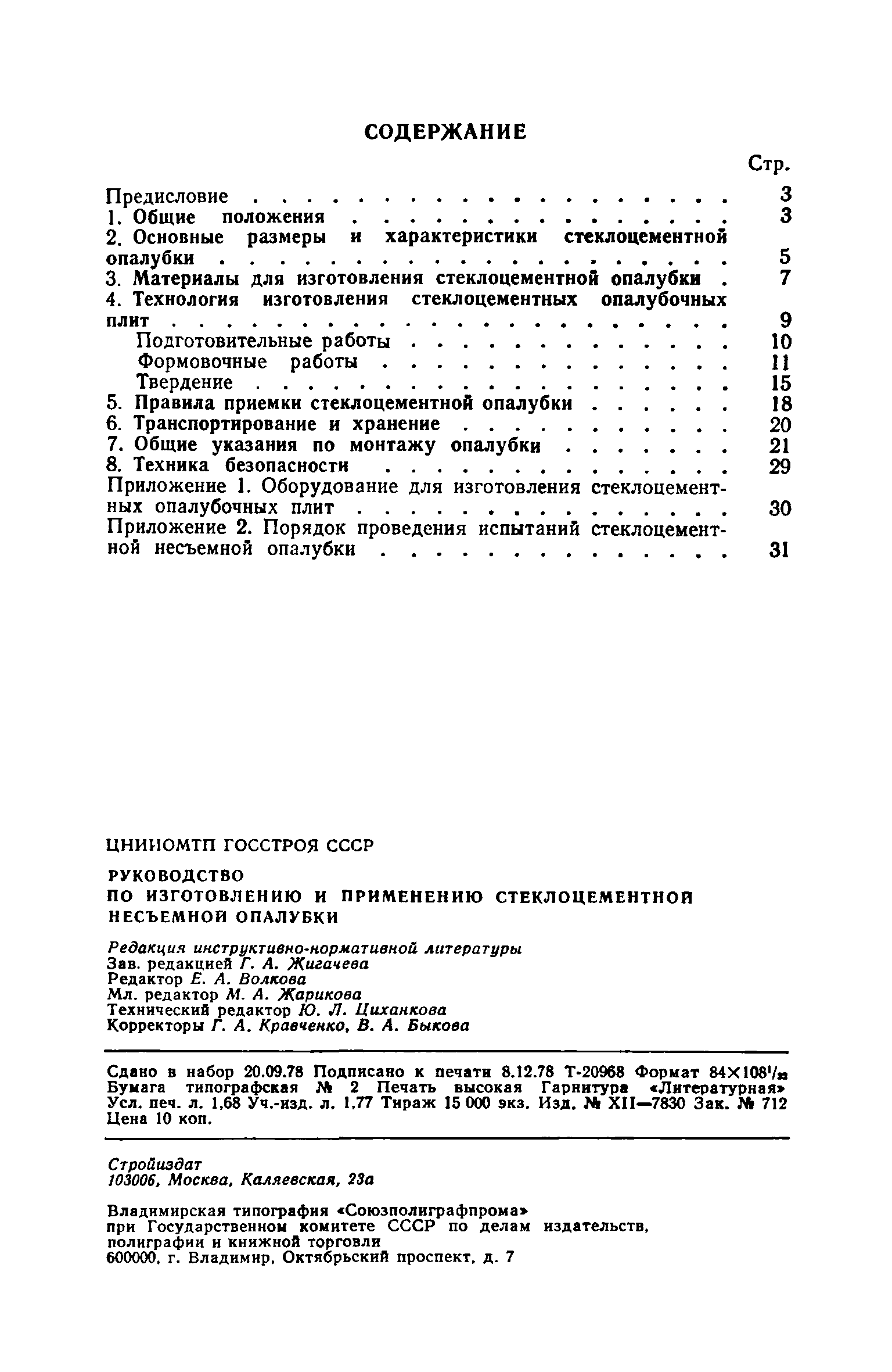 | Оглавление: | Предисловие 1. Общие положения 2. Основные размеры и характеристики стеклоцементной опалубки 3. Материалы для изготовления стеклоцементной опалубки 4. Технология изготовления стеклоцементных опалубочных плит Подготовительные работы Формовочные работы Твердение 5. Правила приемки стеклоцементной опалубки 6. Транспортирование и хранение 7. Общие указания по монтажу опалубки 8. Техника безопасности Приложение 1. Оборудование для изготовления стеклоцементных опалубочных плит Приложение 2. Порядок проведения испытаний стеклоцементной несъемной опалубки |