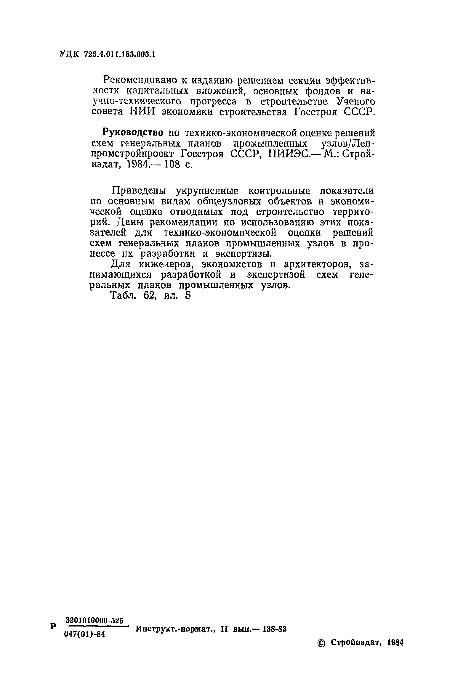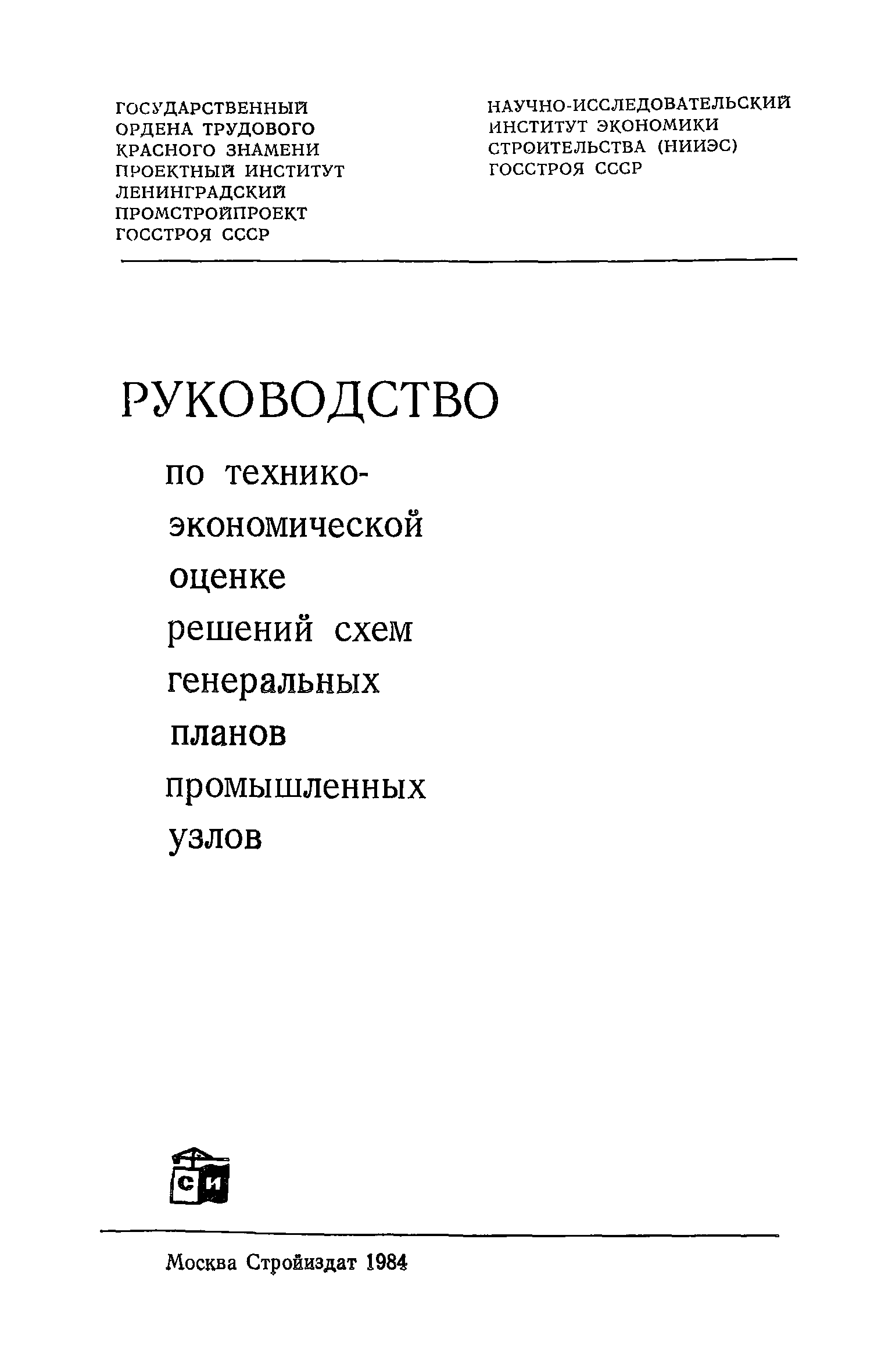 | Название рус.: | Руководство по технико-экономической оценке решений схем генеральных планов промышленных узлов |