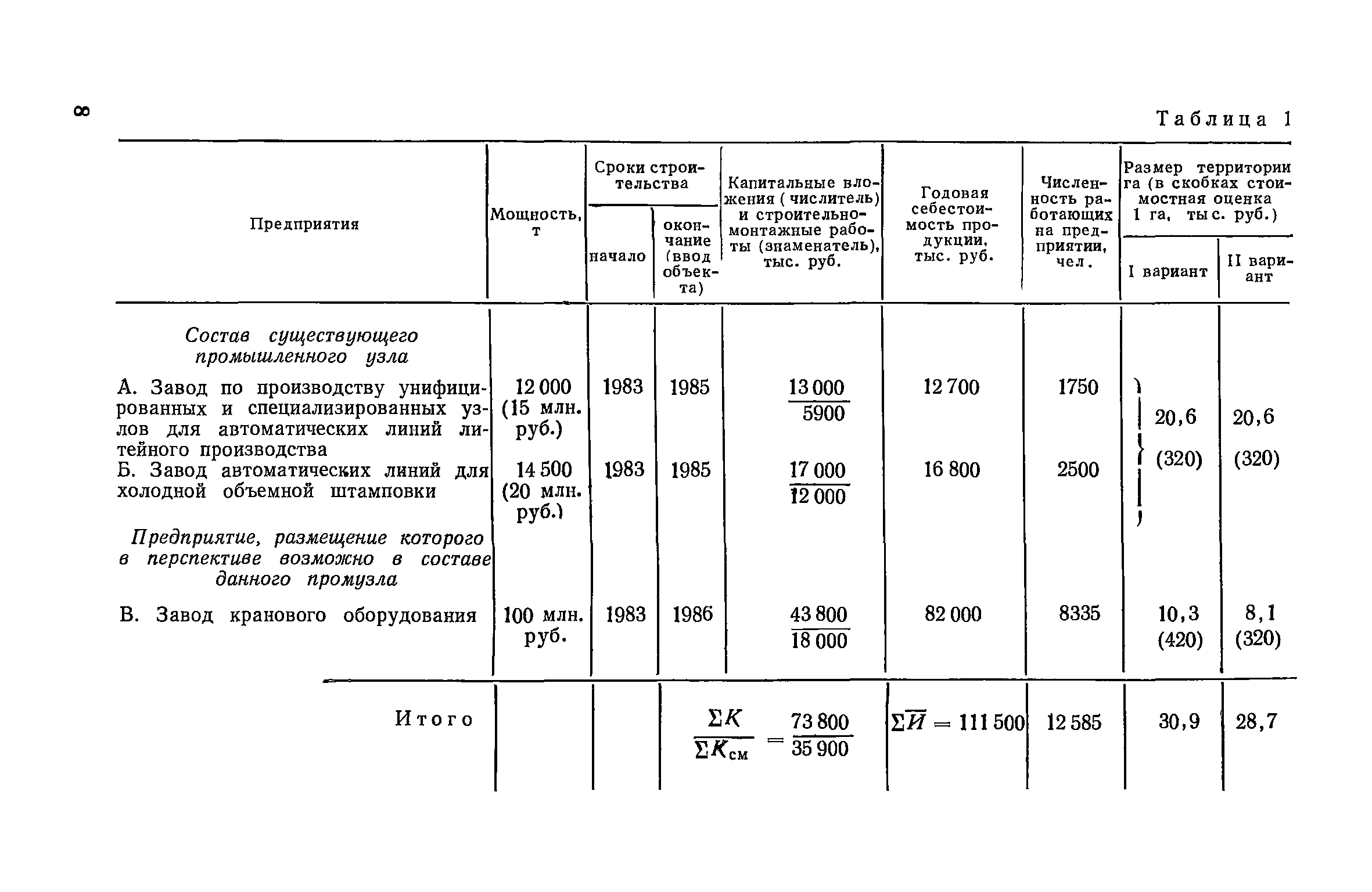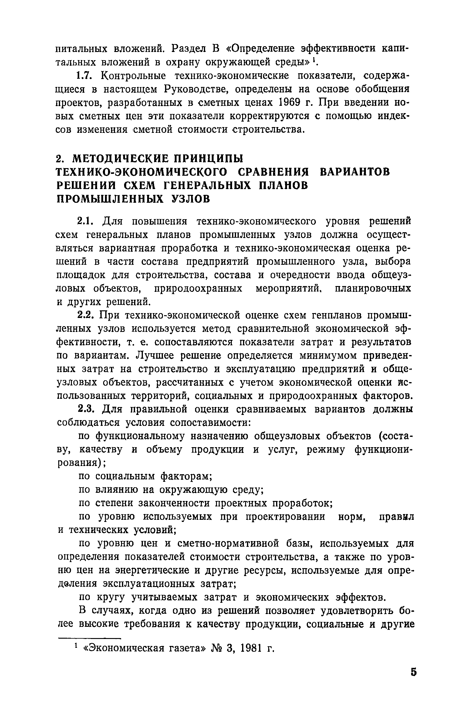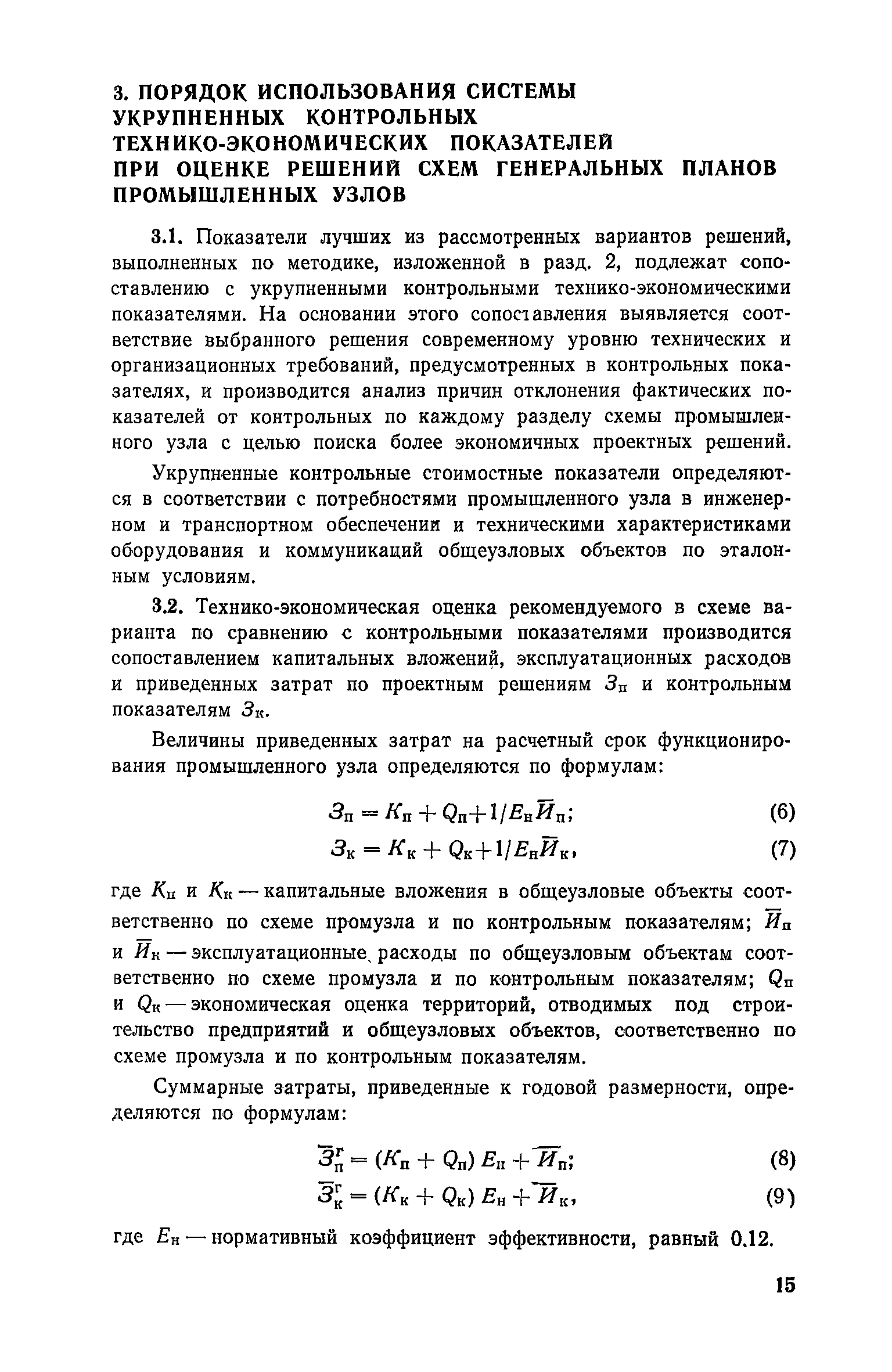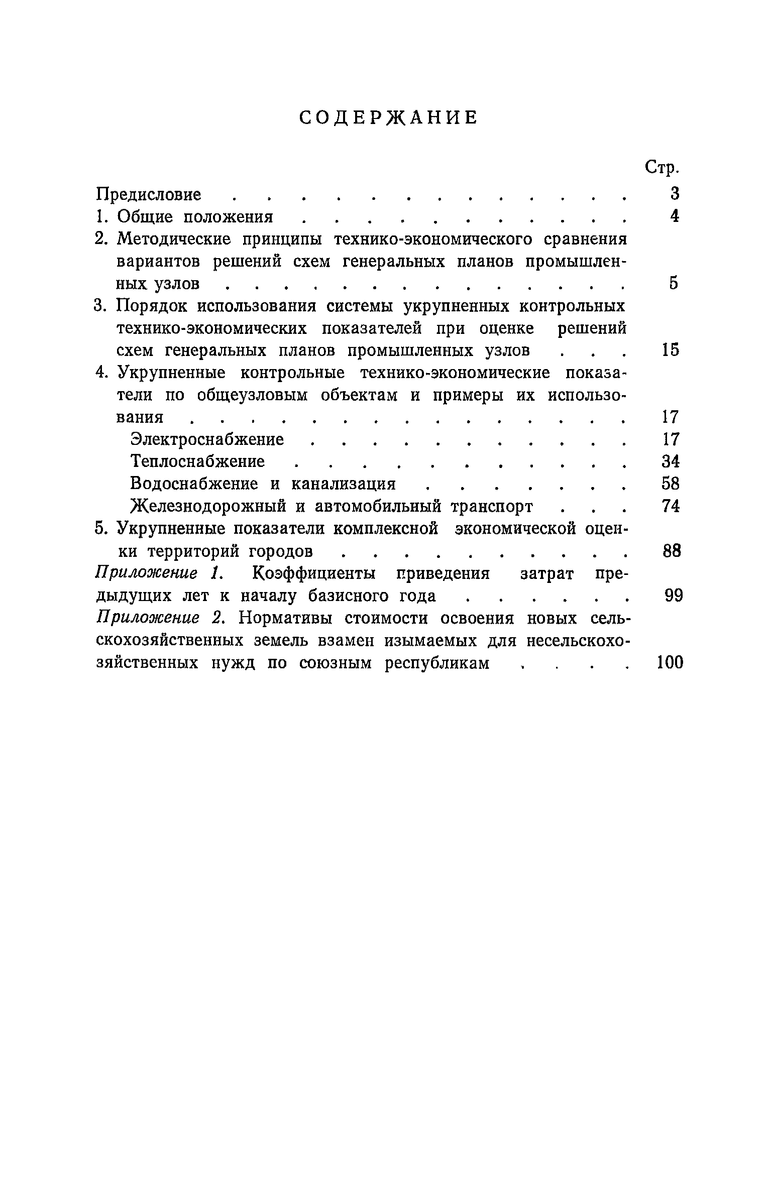 | Оглавление: | Предисловие 1. Общие положения 2. Методические принципы технико-экономического сравнения вариантов решений схем генеральных планов промышленных узлов 3. Порядок использования системы укрупненных контрольных технико-экономических показателей при оценке решений схем генеральных планов промышленных узлов 4. Укрупненные контрольные технико-экономические показатели по общеузловым объектам и примеры их использования Электроснабжение Теплоснабжение Водоснабжение и канализация Железнодорожный и автомобильный транспорт 5. Укрупненные показатели комплексной экономической оценки территорий городов Приложение 1. Коэффициенты приведения затрат предыдущих лет к началу базисного года Приложение 2. Нормативы стоимости освоения новых сельскохозяйственных земель взамен изымаемых для несельскохозяйственных нужд по союзным республикам |