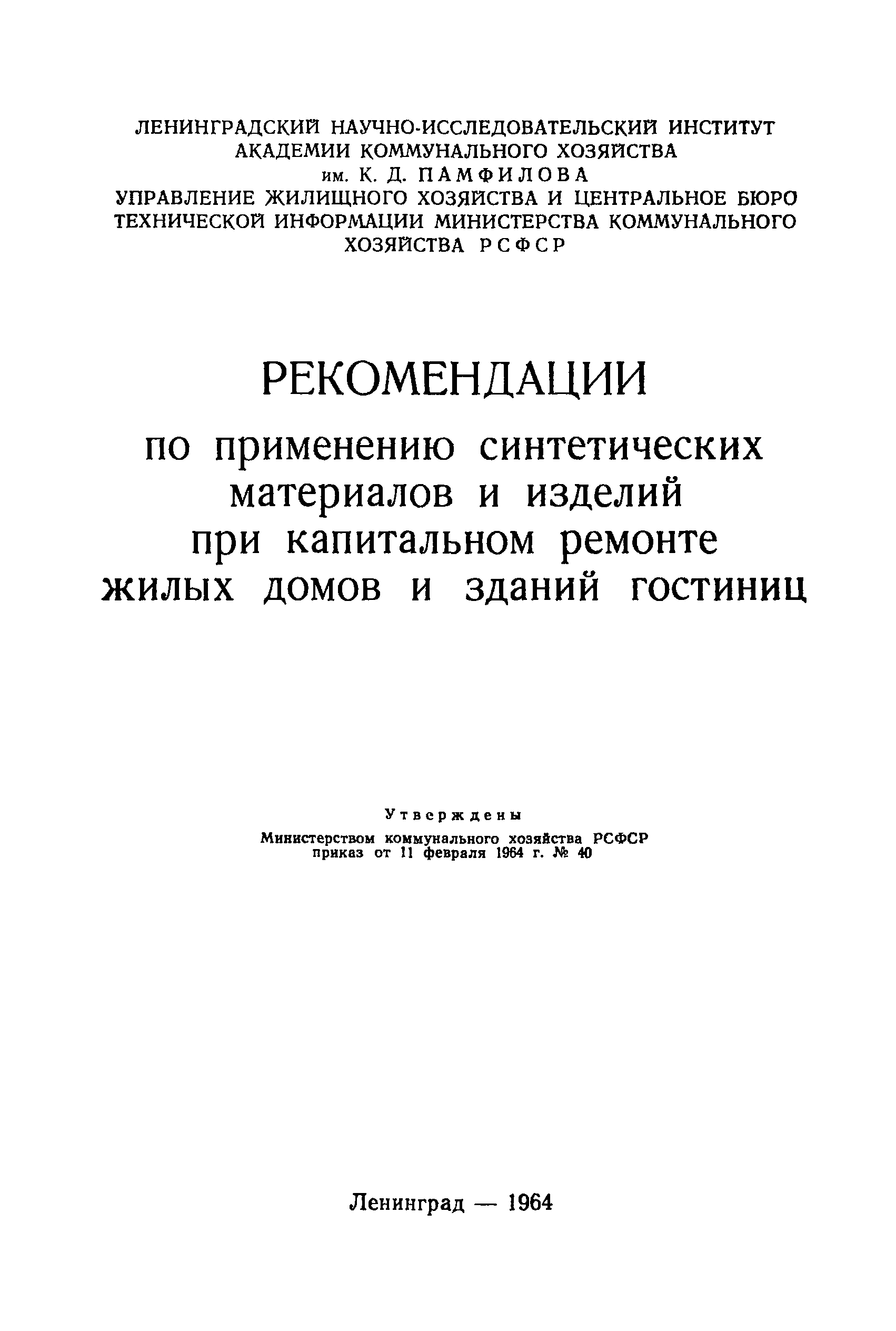 | Утверждён: | 11.02.1964 Министерство коммунального хозяйства РСФСР (40)